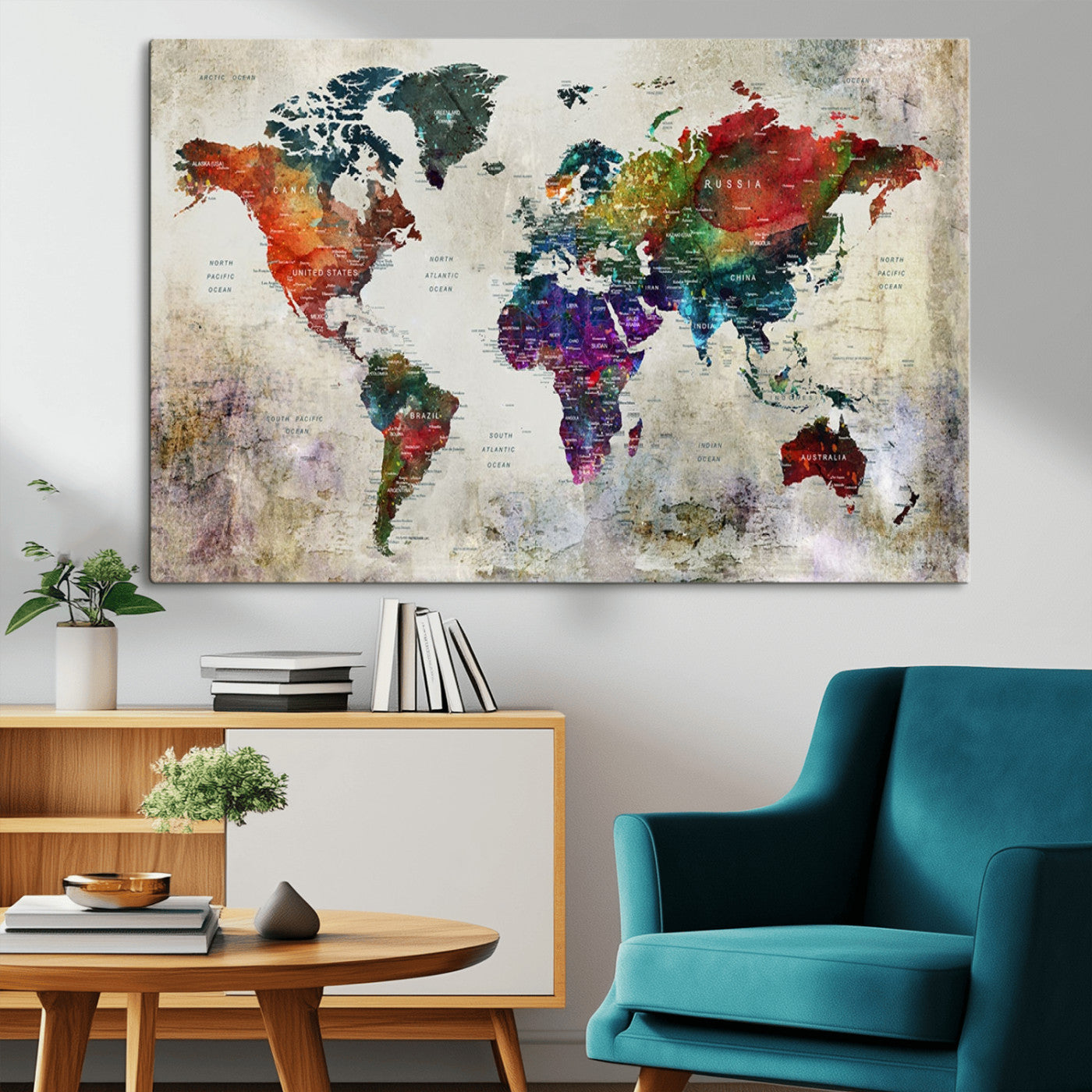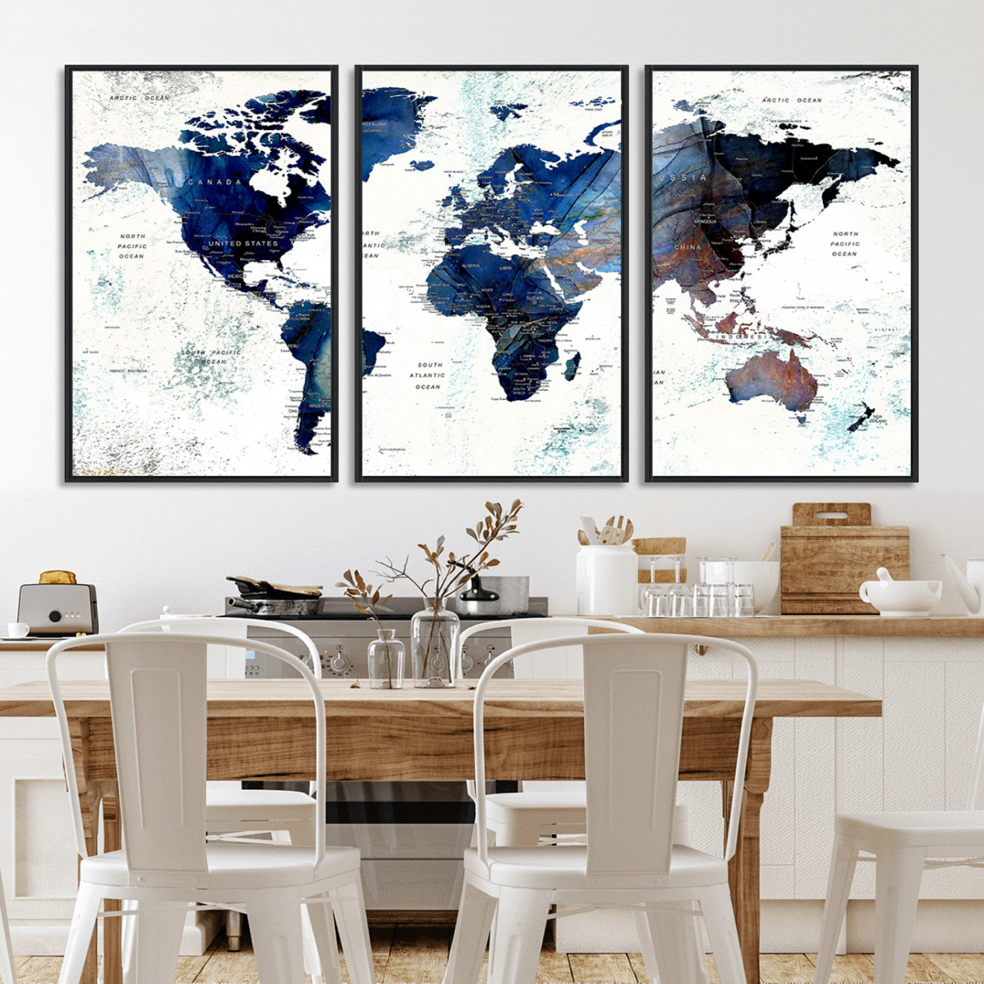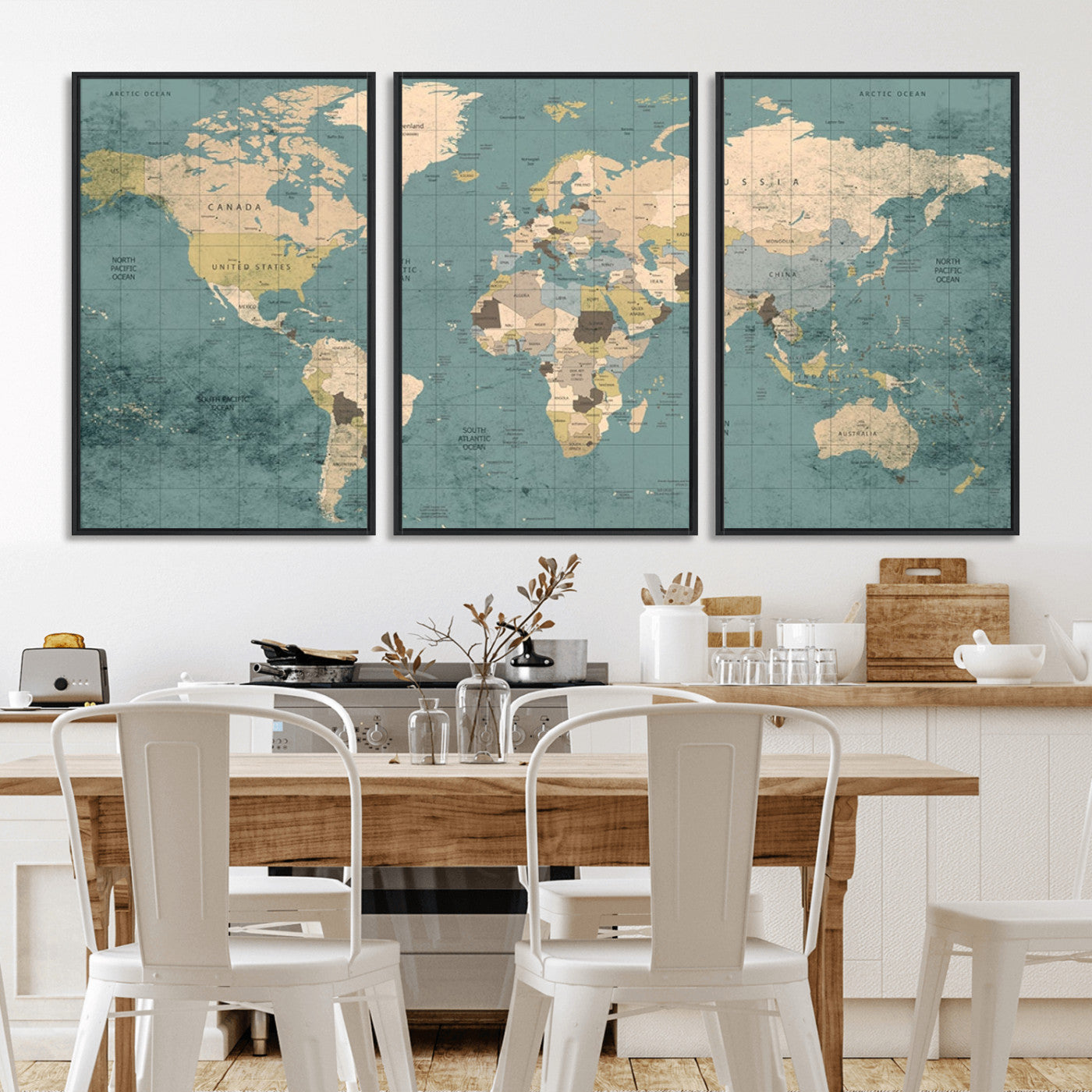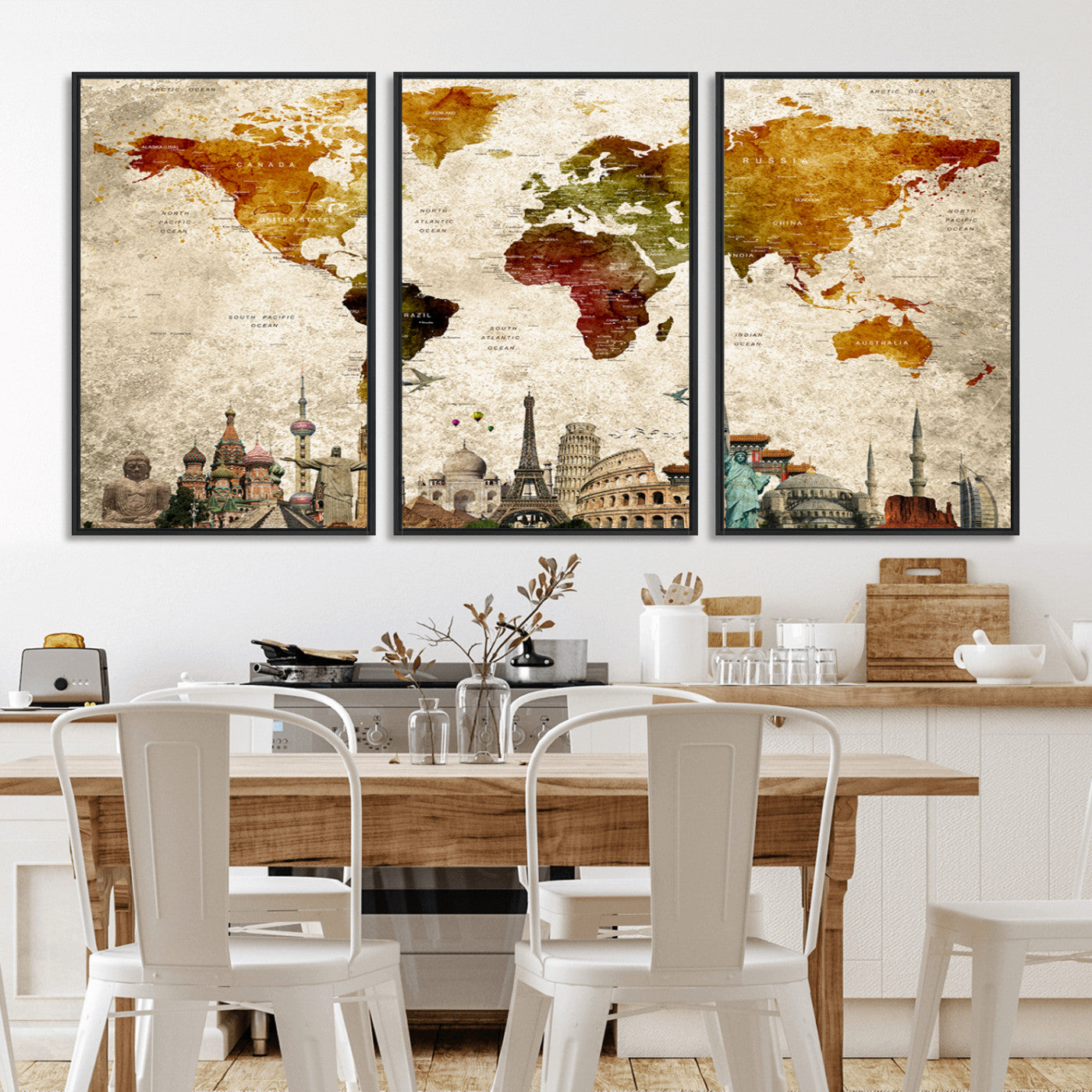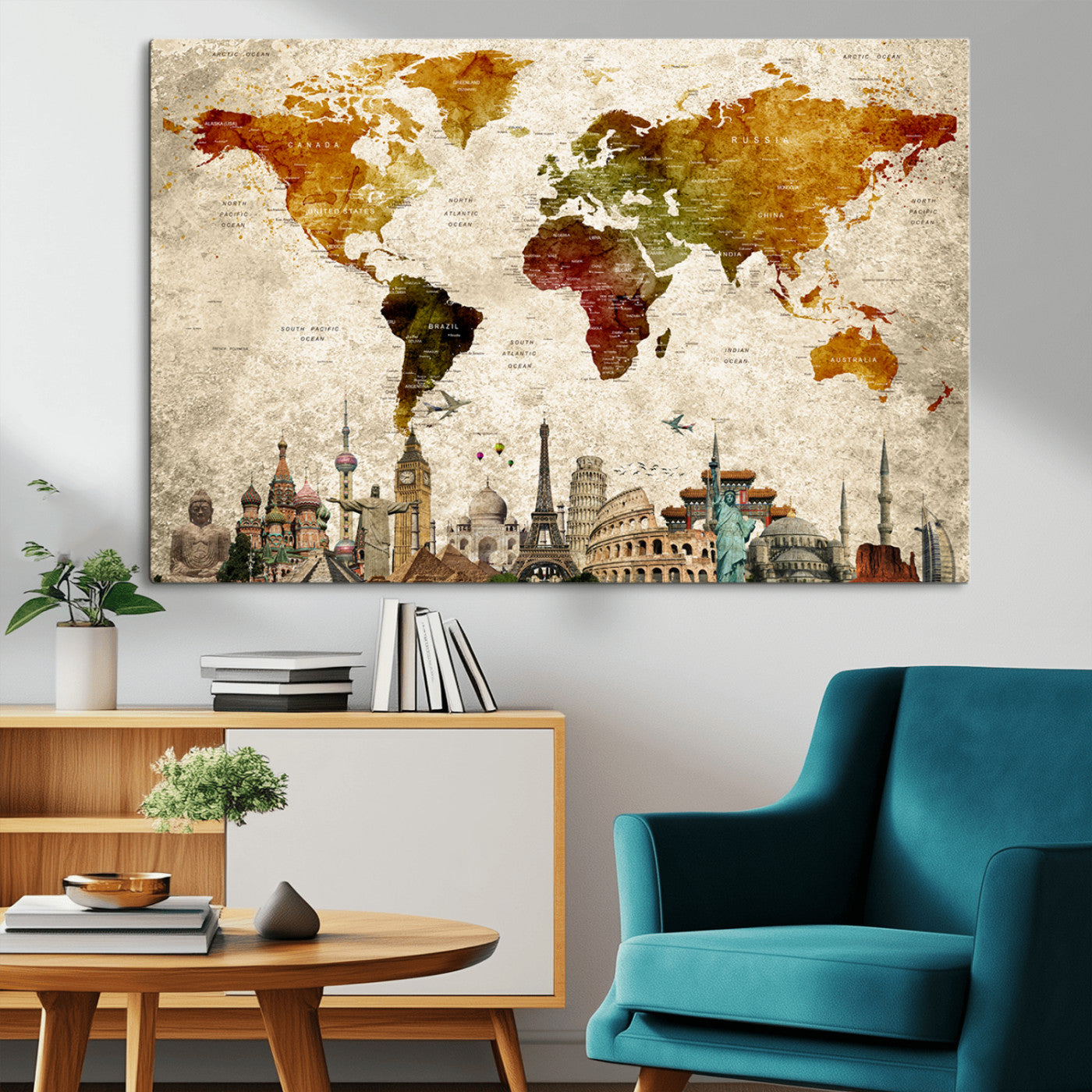 In addition to their aesthetic appeal, world map wall art pieces can also be functional. Some maps are designed with writable surfaces, allowing you to mark places you've visited or plan future trips. Others come with magnetic features, making it easy to add pins or magnets to specific locations. These interactive elements add a personal touch and make your map wall art more engaging.