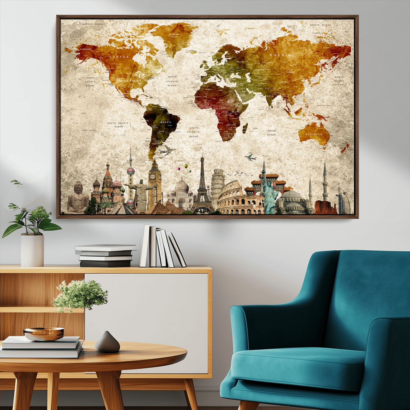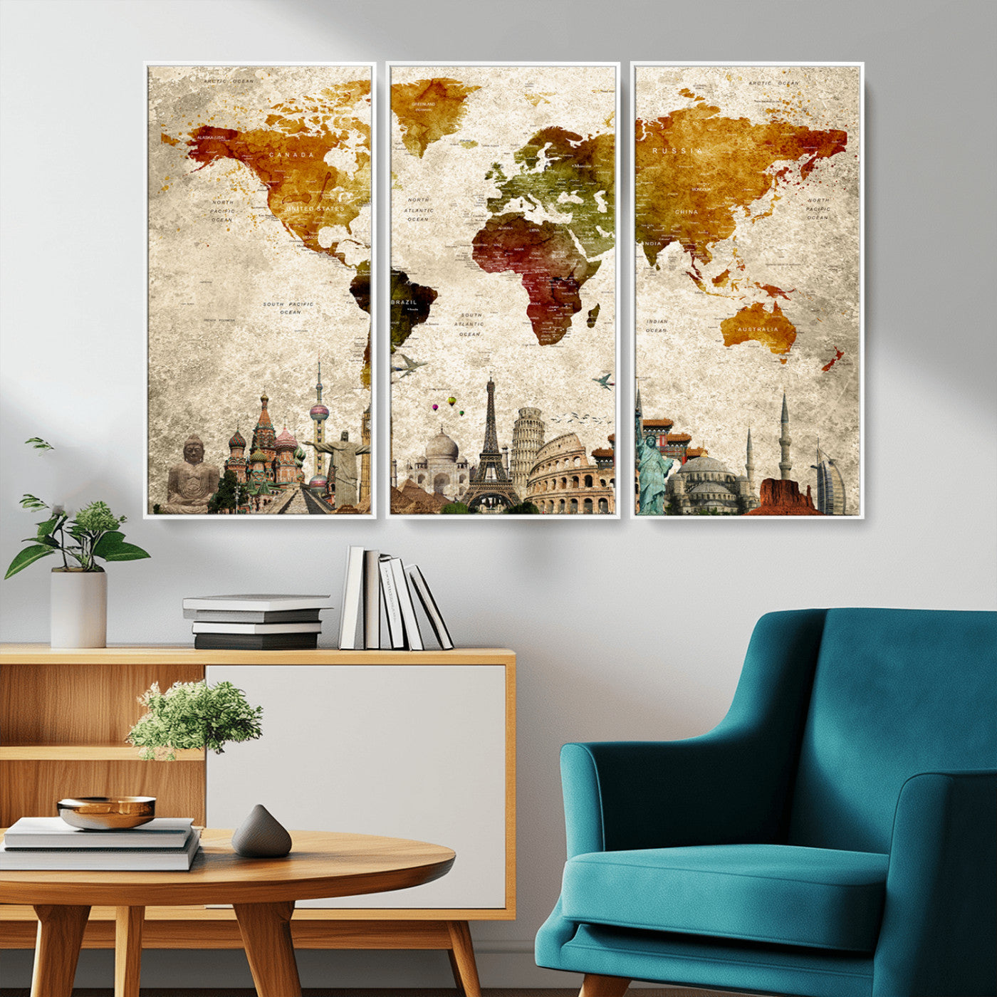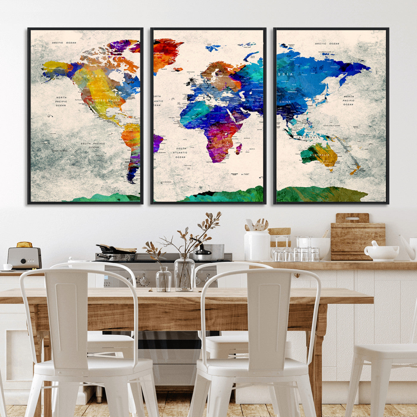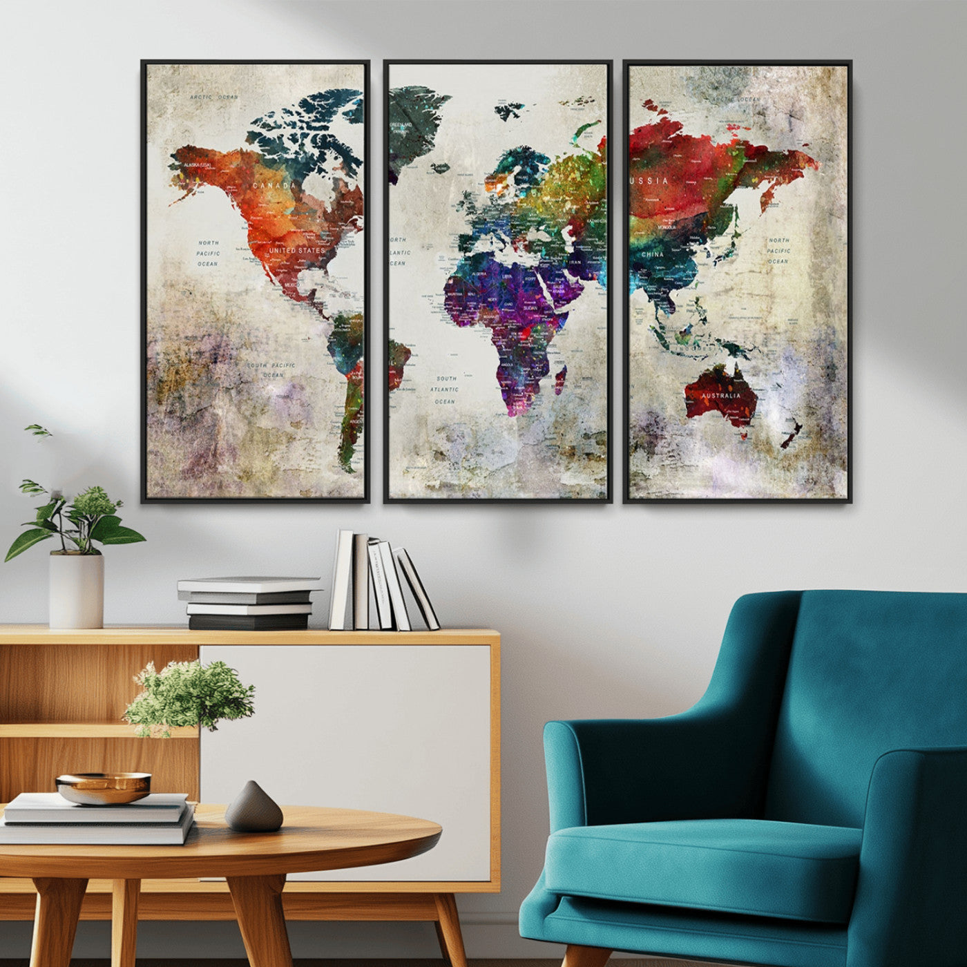In addition to their aesthetic appeal, world map wall art pieces can also be functional. Some maps are designed with writable surfaces, allowing you to mark places you've visited or plan future trips. Others come with magnetic features, making it easy to add pins or magnets to specific locations. These interactive elements add a personal touch and make your map wall art more engaging.