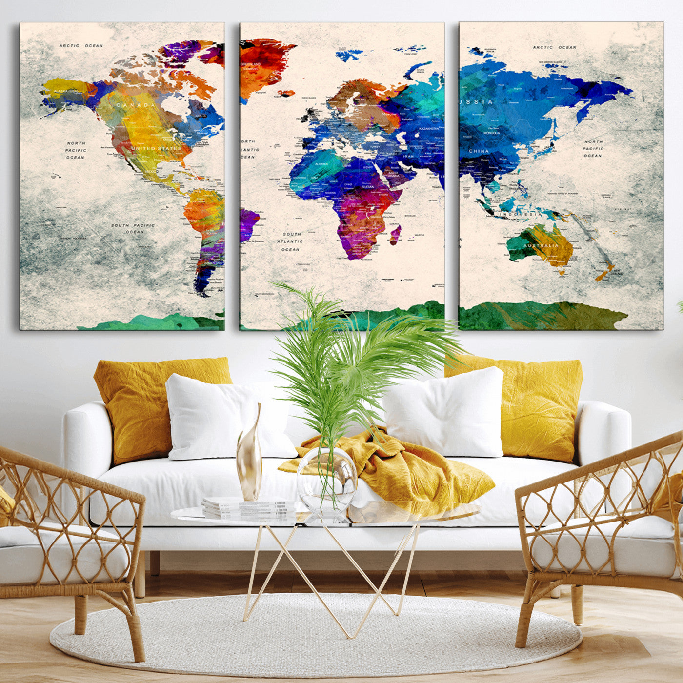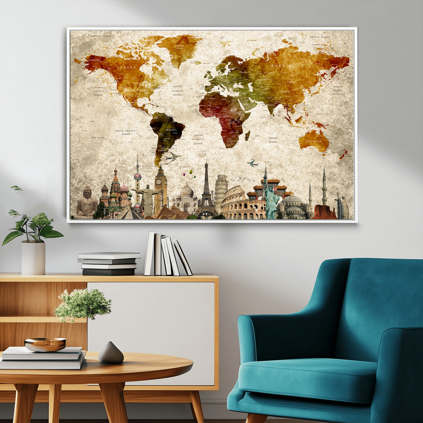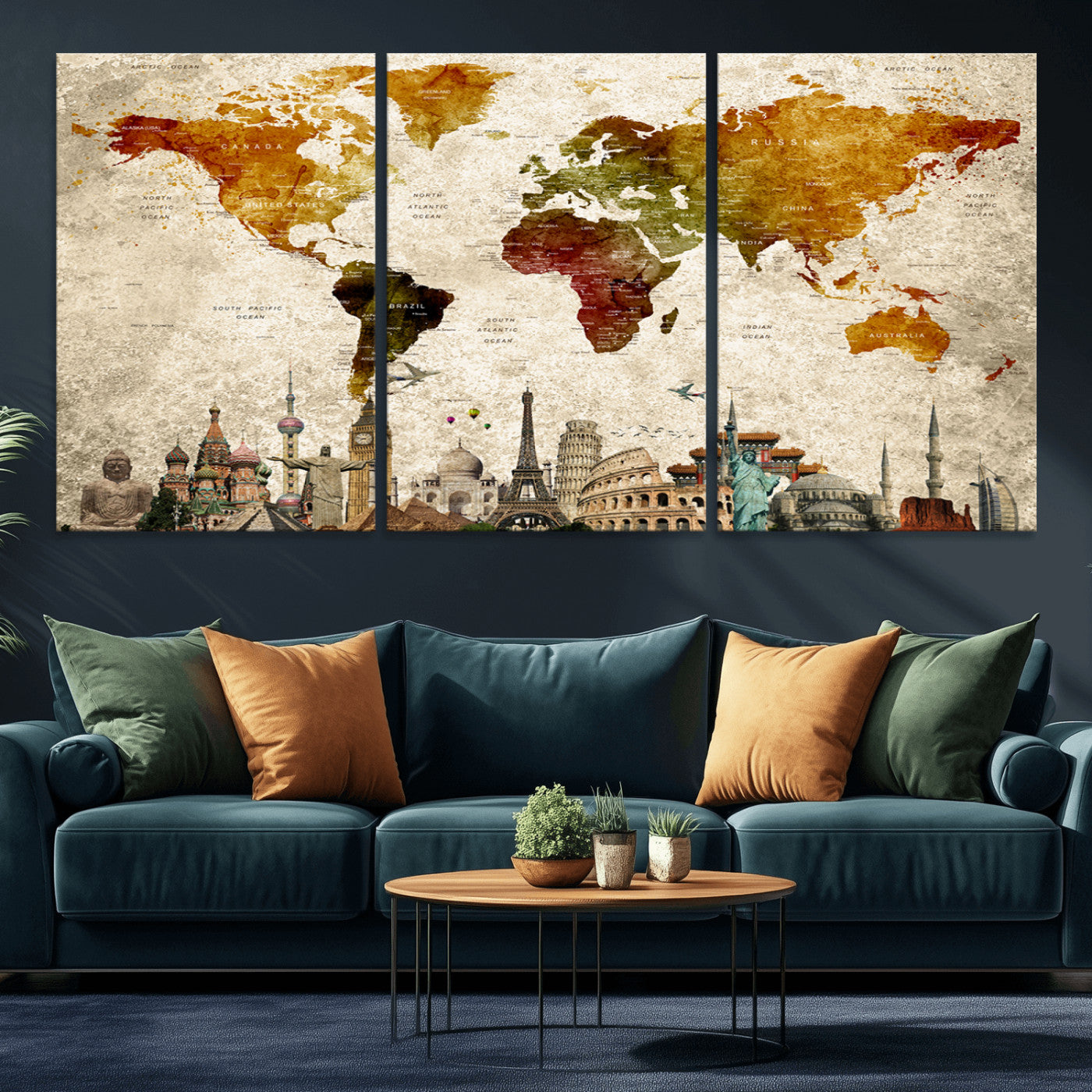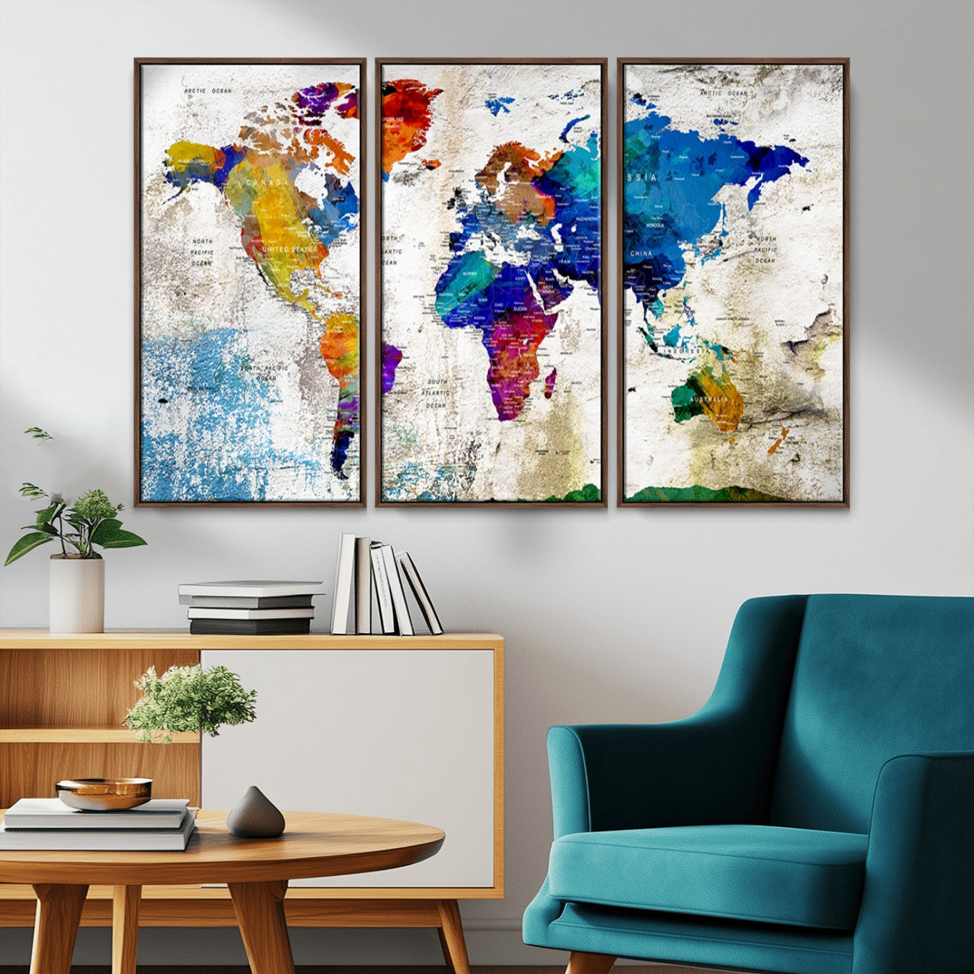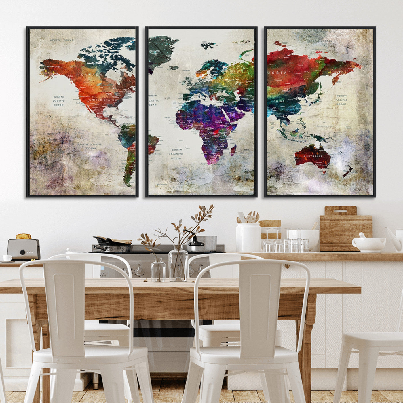 In addition to their aesthetic appeal, world map wall art pieces can also be functional. Some maps are designed with writable surfaces, allowing you to mark places you've visited or plan future trips. Others come with magnetic features, making it easy to add pins or magnets to specific locations. These interactive elements add a personal touch and make your map wall art more engaging.