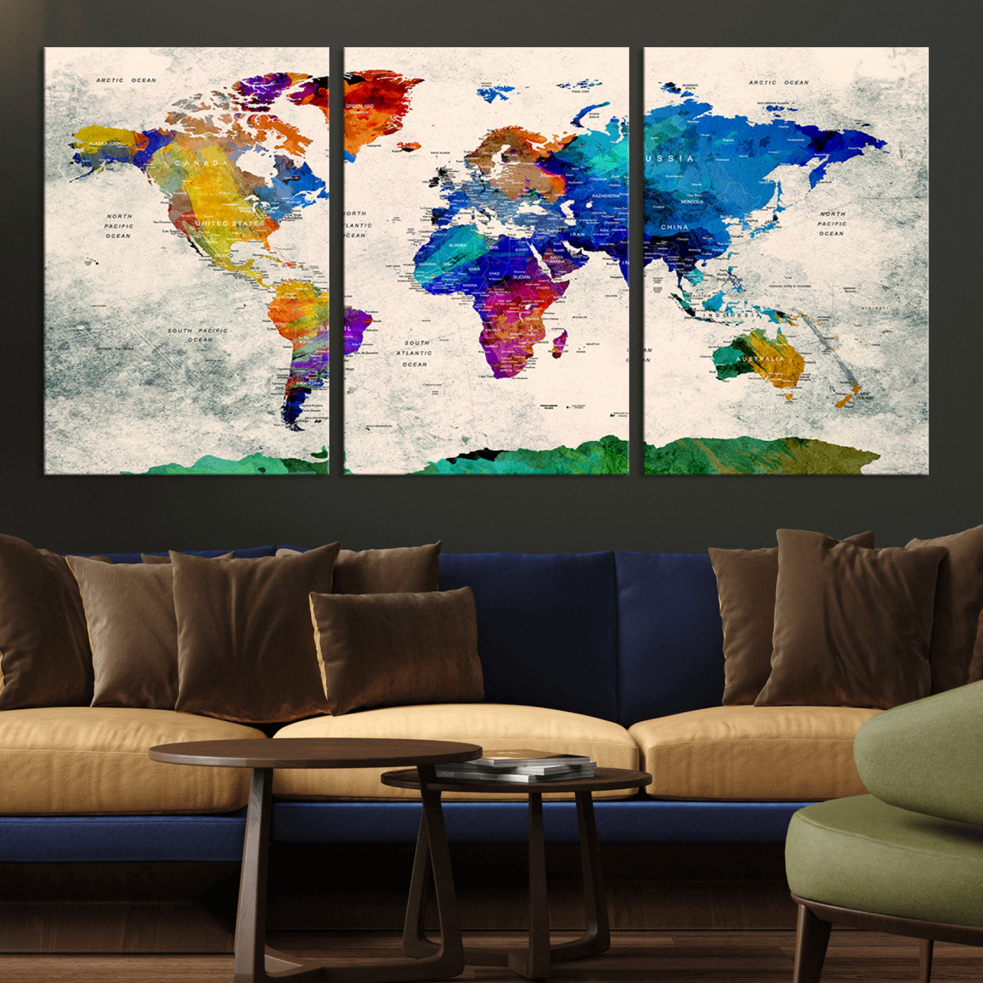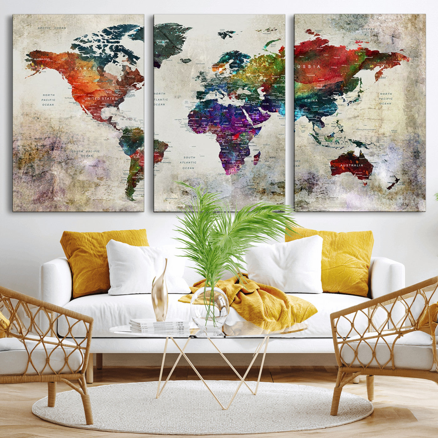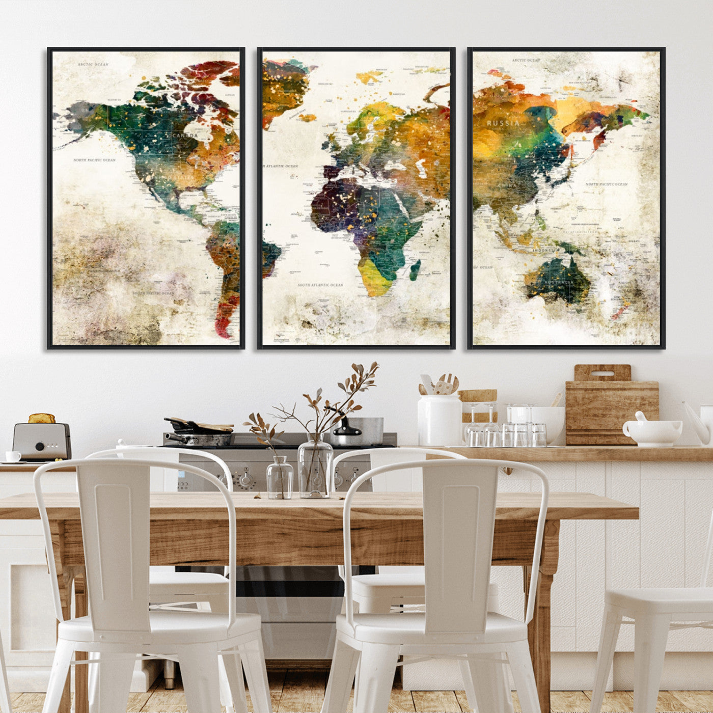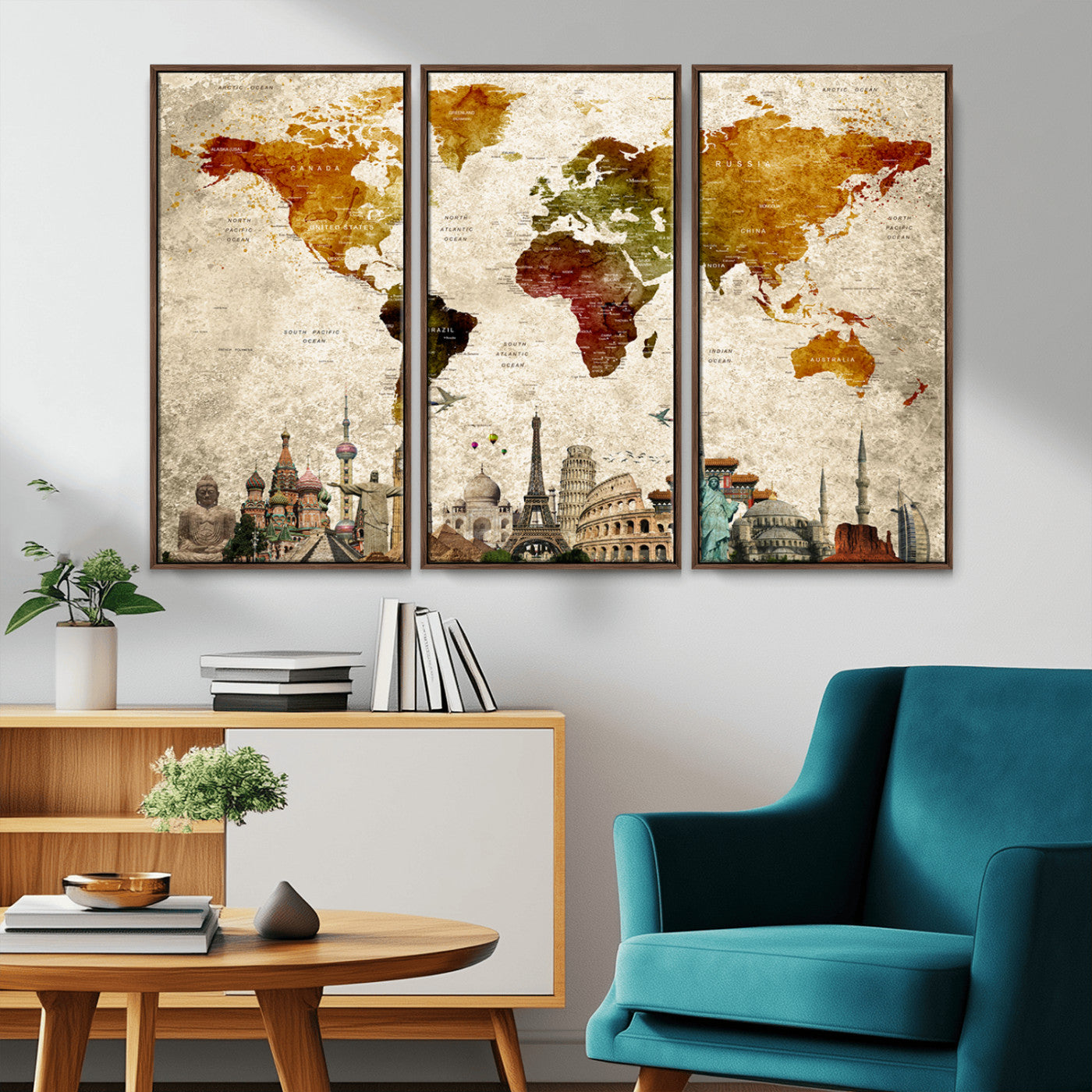 In addition to their aesthetic appeal, world map wall art pieces can also be functional. Some maps are designed with writable surfaces, allowing you to mark places you've visited or plan future trips. Others come with magnetic features, making it easy to add pins or magnets to specific locations. These interactive elements add a personal touch and make your map wall art more engaging.