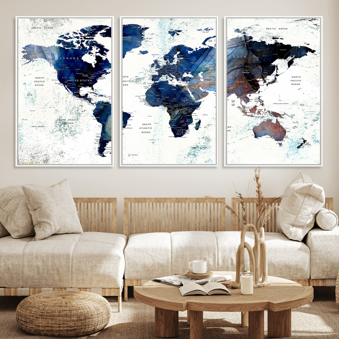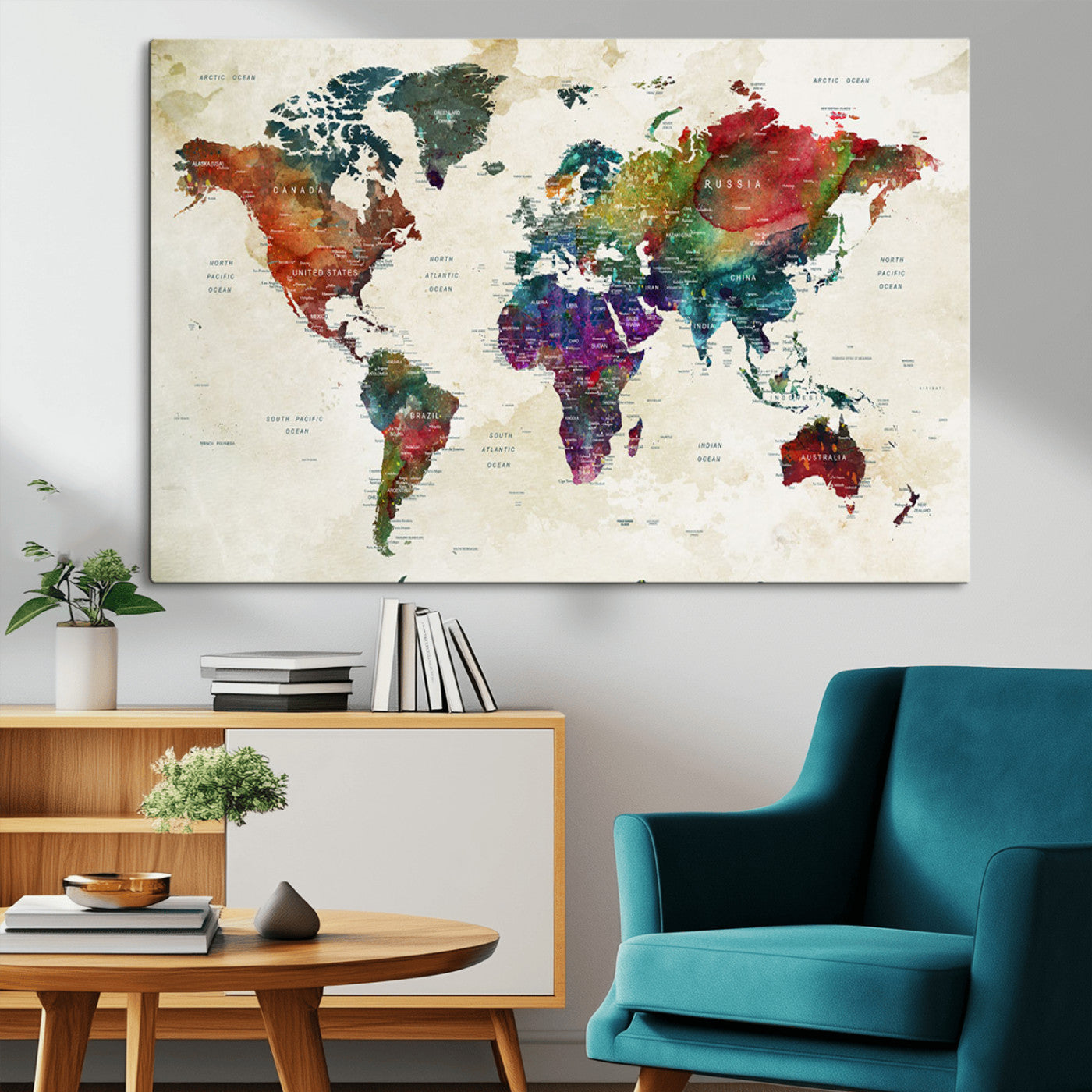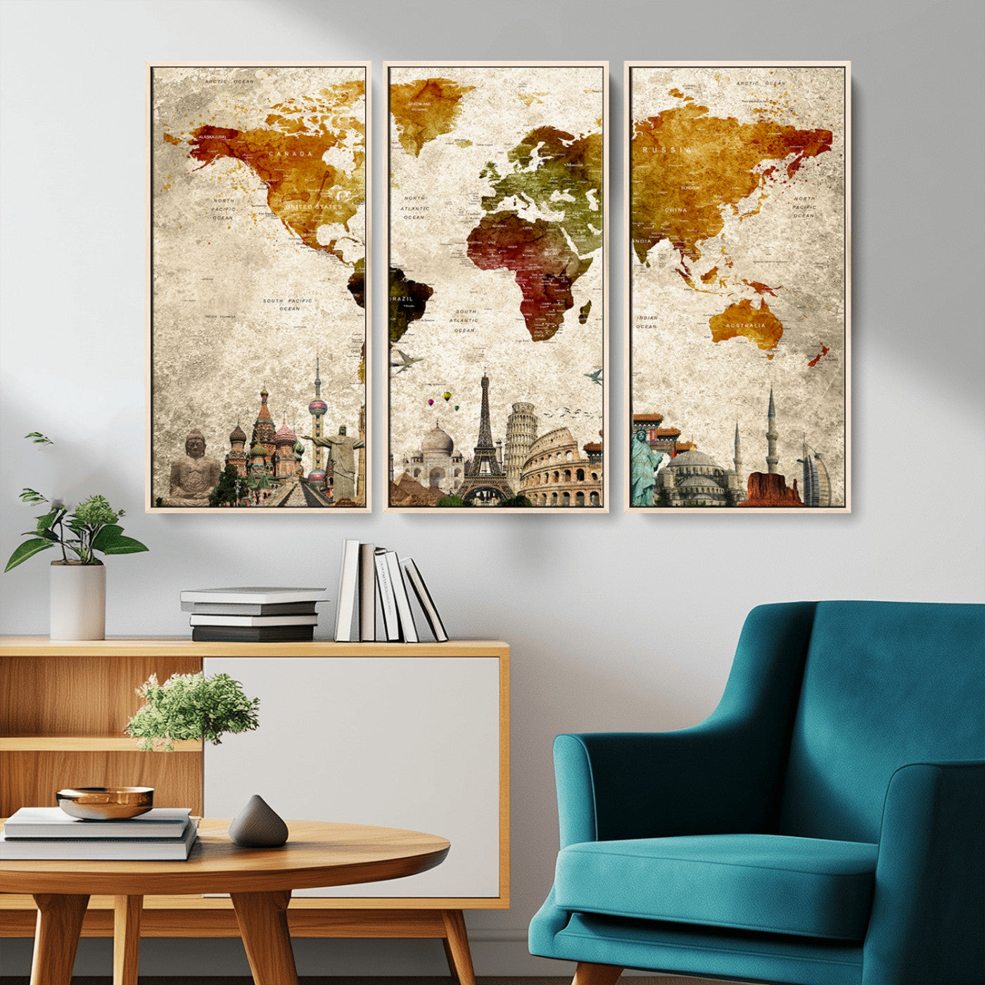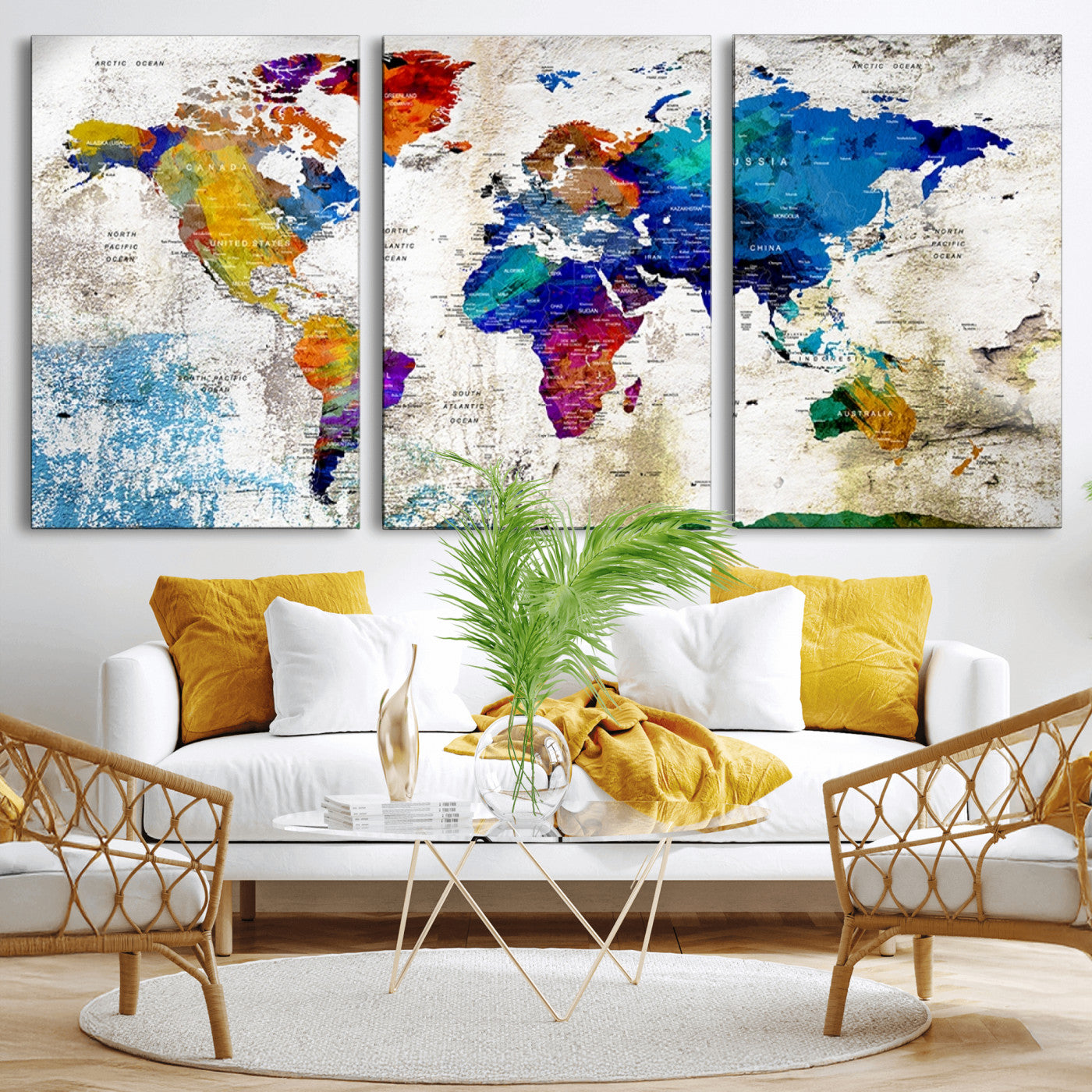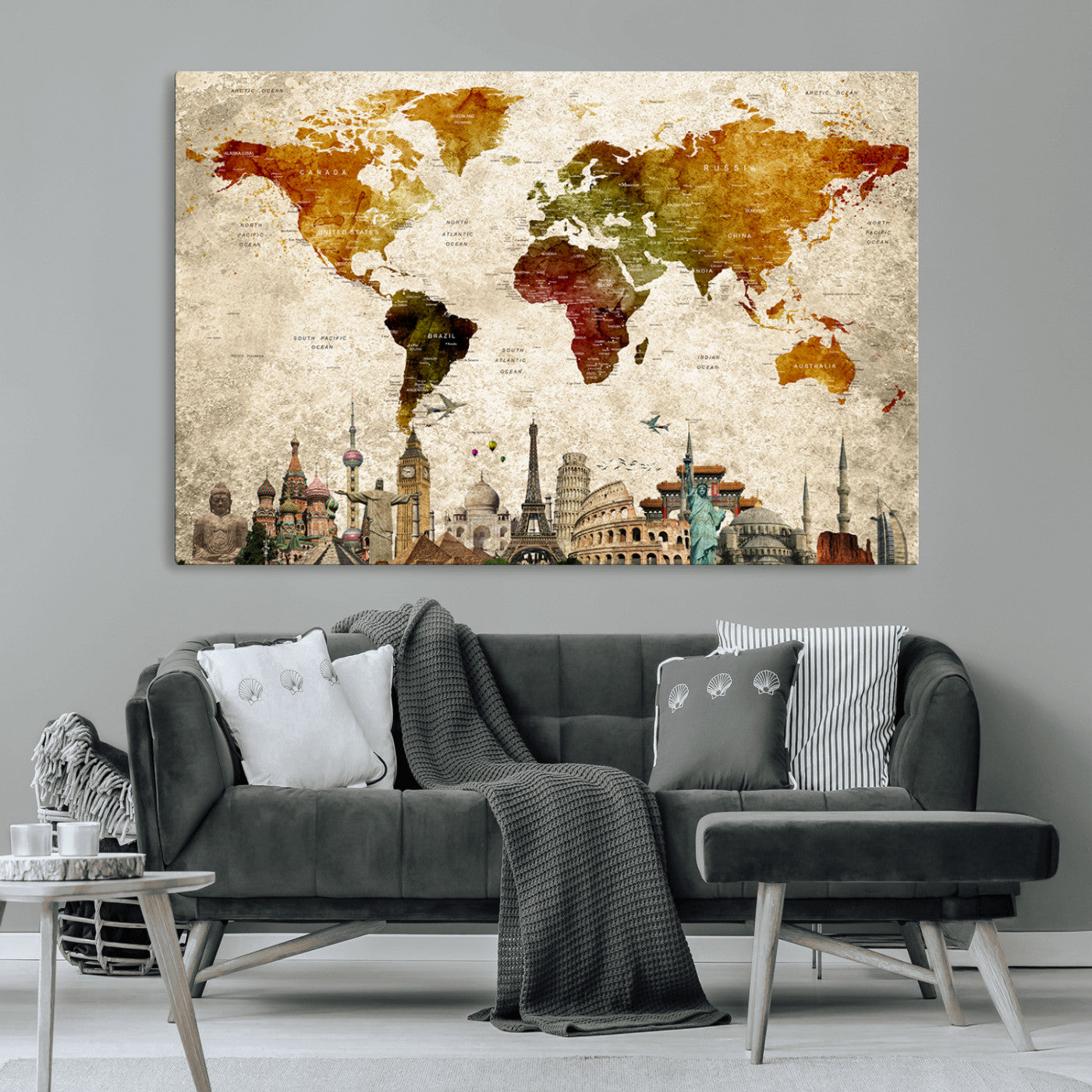 In addition to their aesthetic appeal, world map wall art pieces can also be functional. Some maps are designed with writable surfaces, allowing you to mark places you've visited or plan future trips. Others come with magnetic features, making it easy to add pins or magnets to specific locations. These interactive elements add a personal touch and make your map wall art more engaging.
