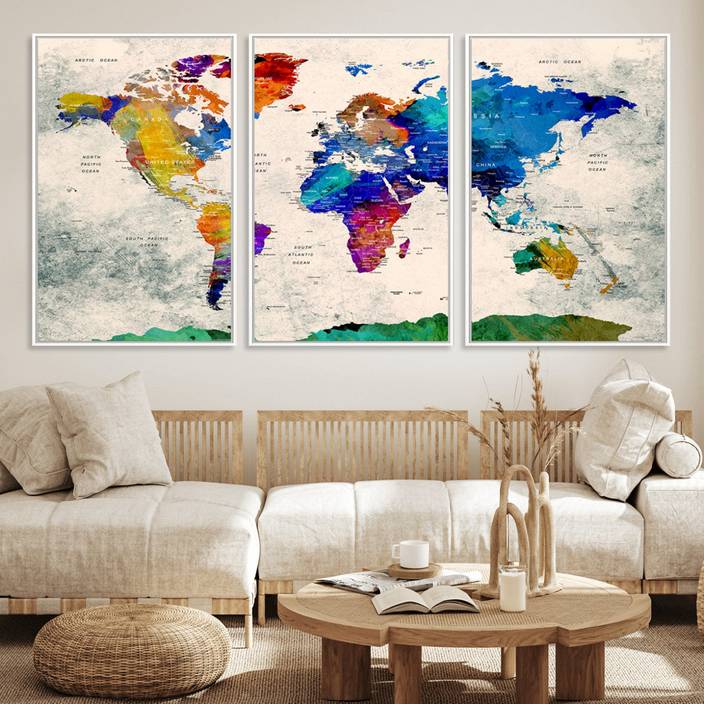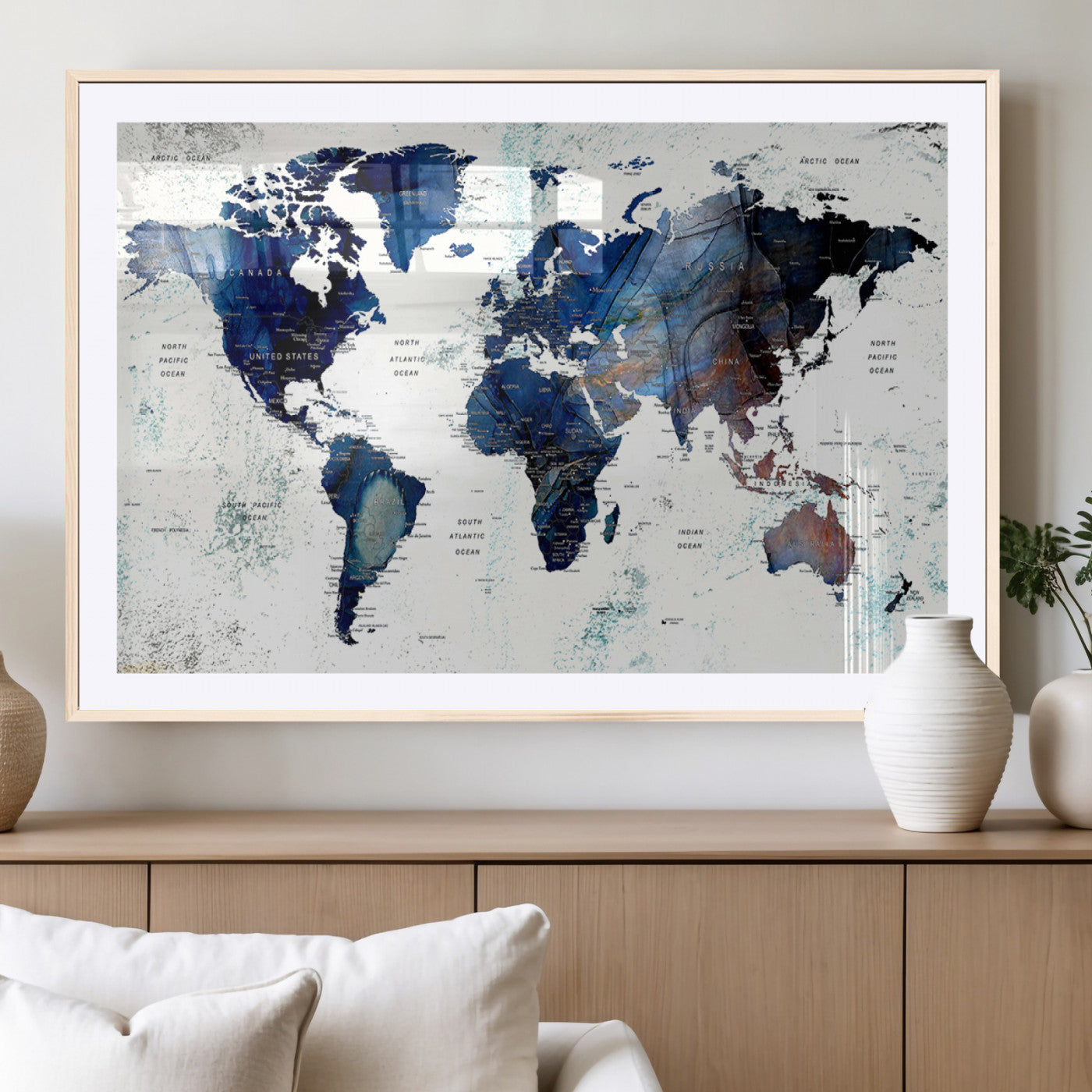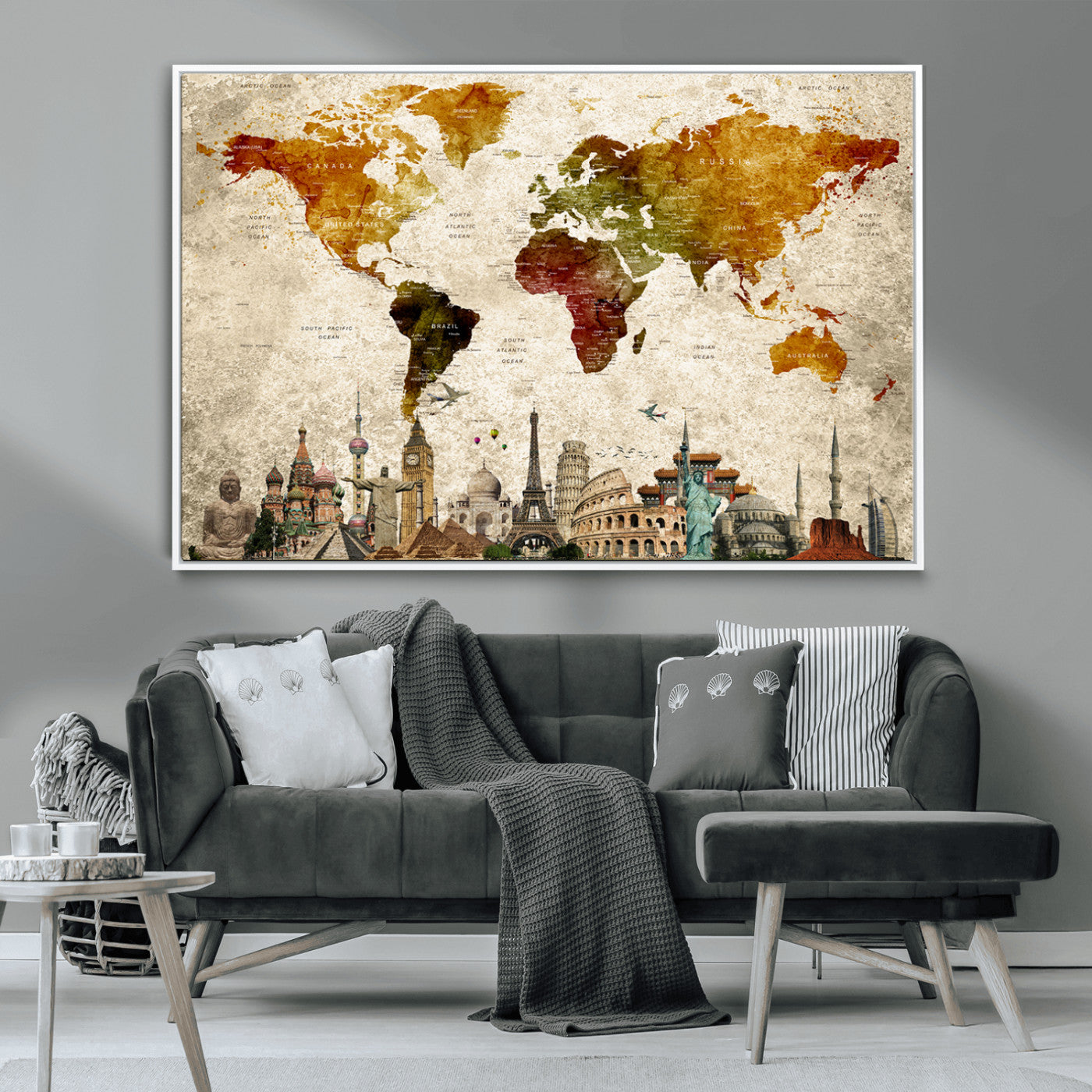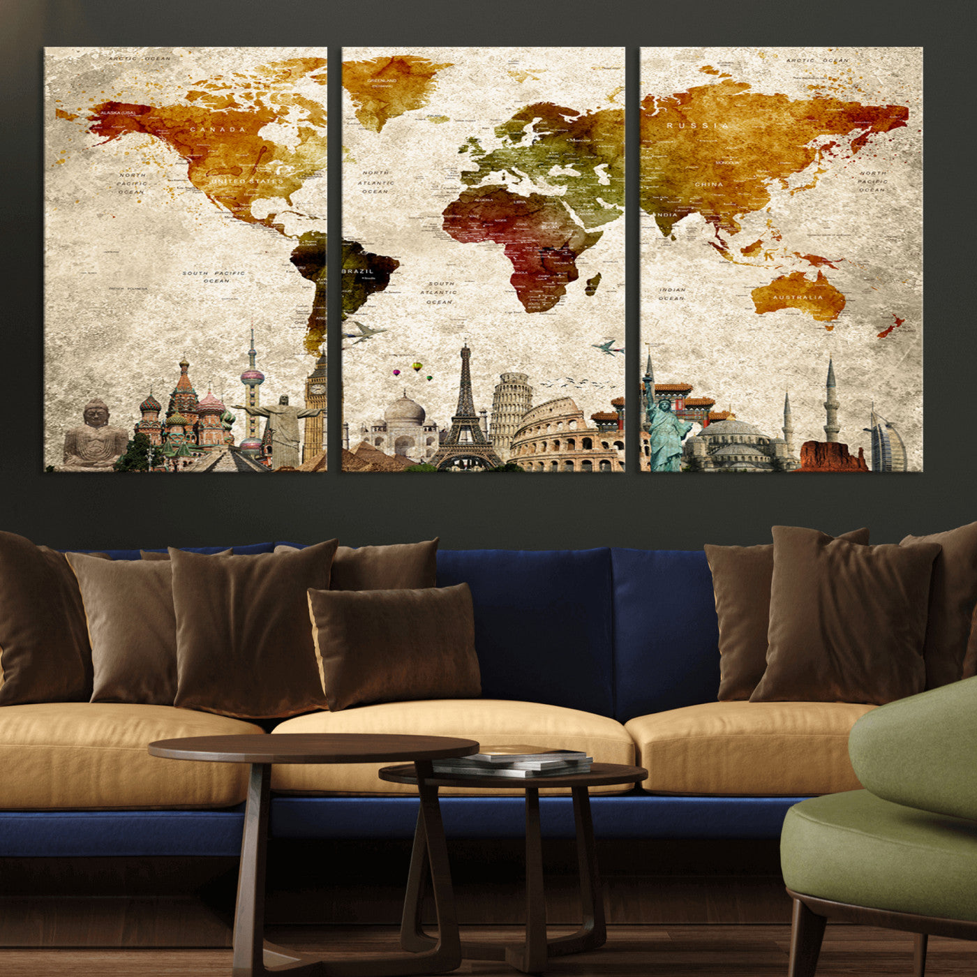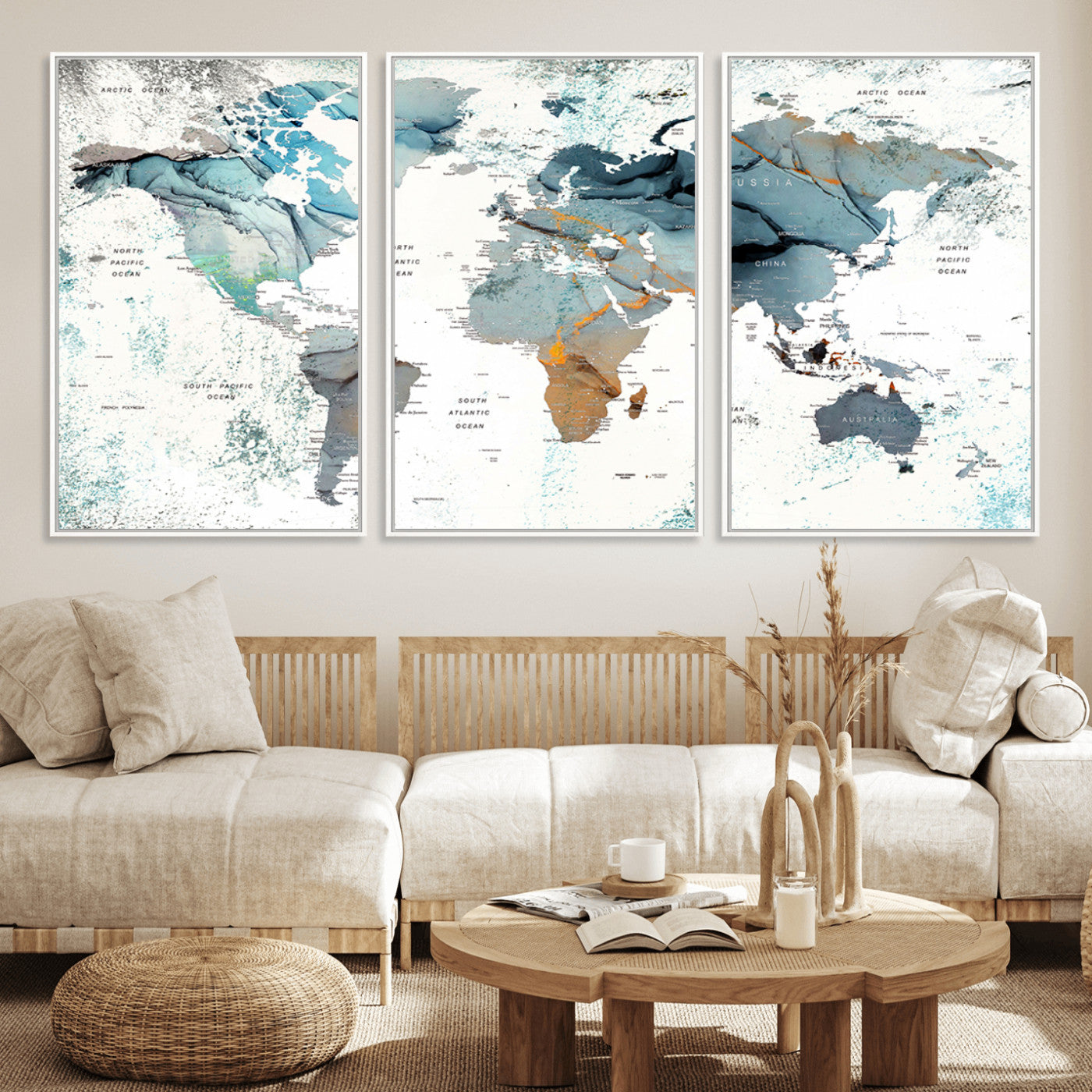 In addition to their aesthetic appeal, world map wall art pieces can also be functional. Some maps are designed with writable surfaces, allowing you to mark places you've visited or plan future trips. Others come with magnetic features, making it easy to add pins or magnets to specific locations. These interactive elements add a personal touch and make your map wall art more engaging.