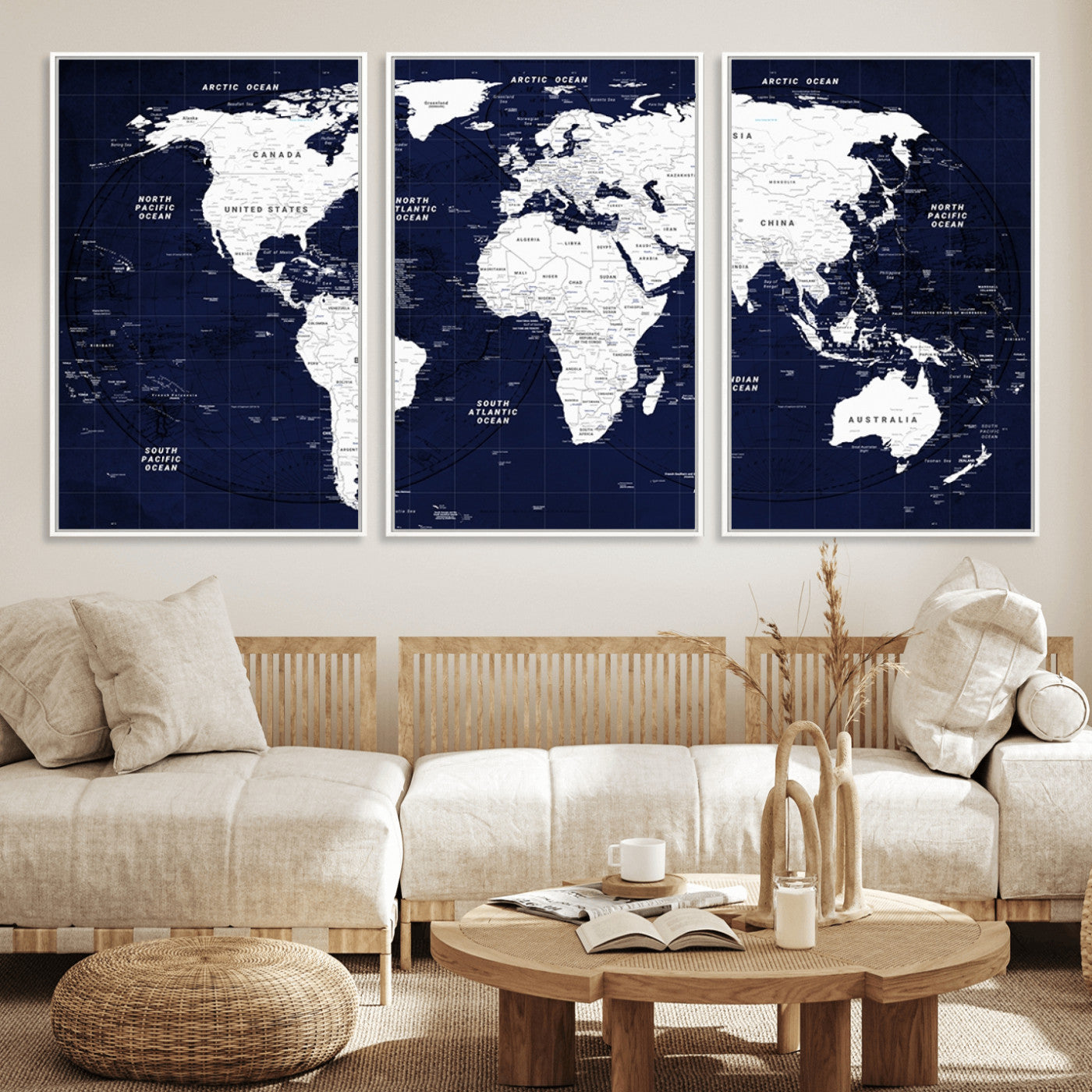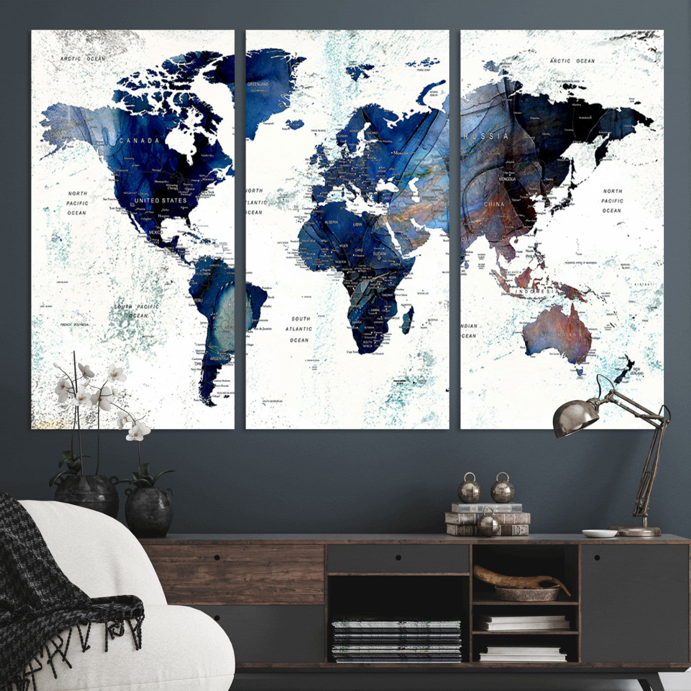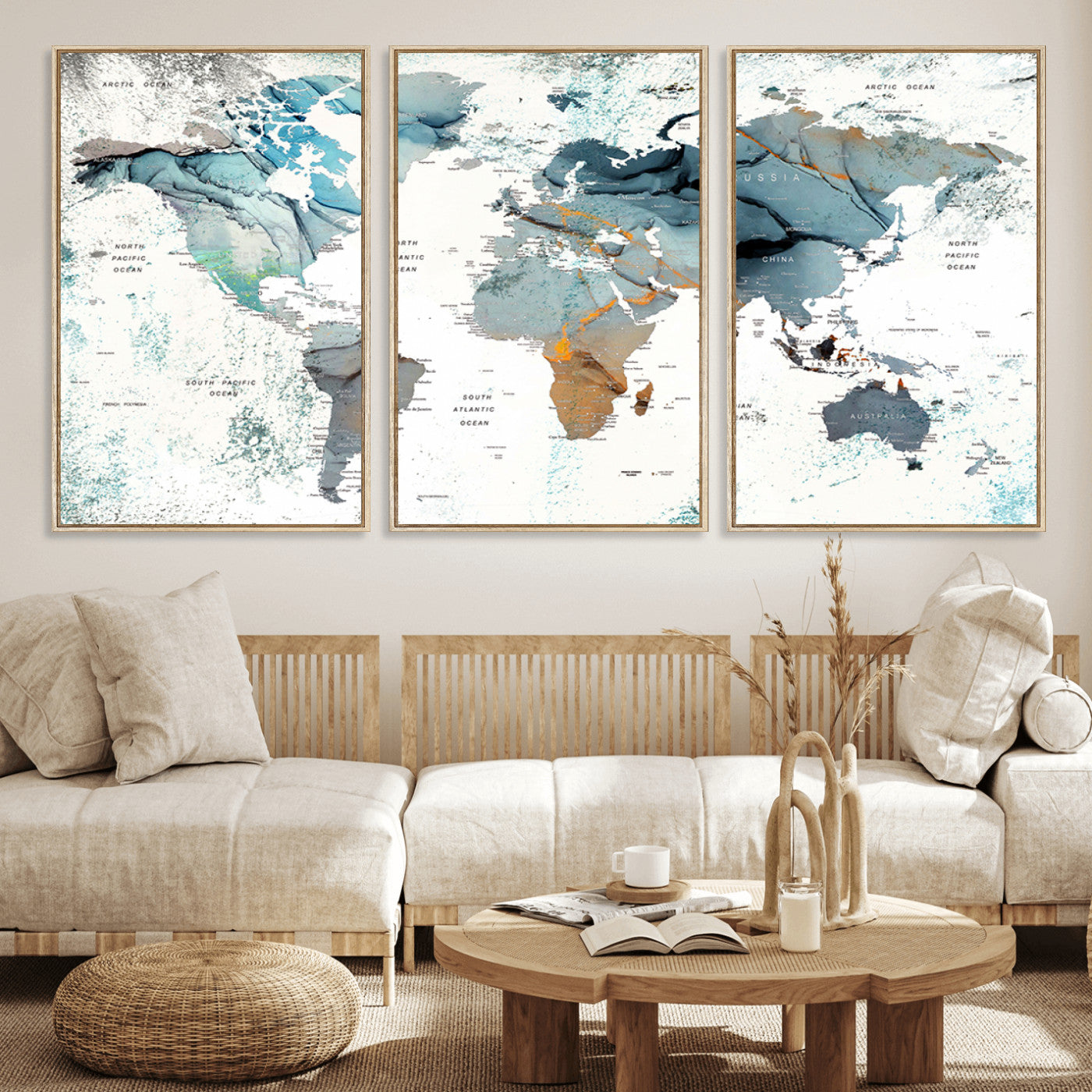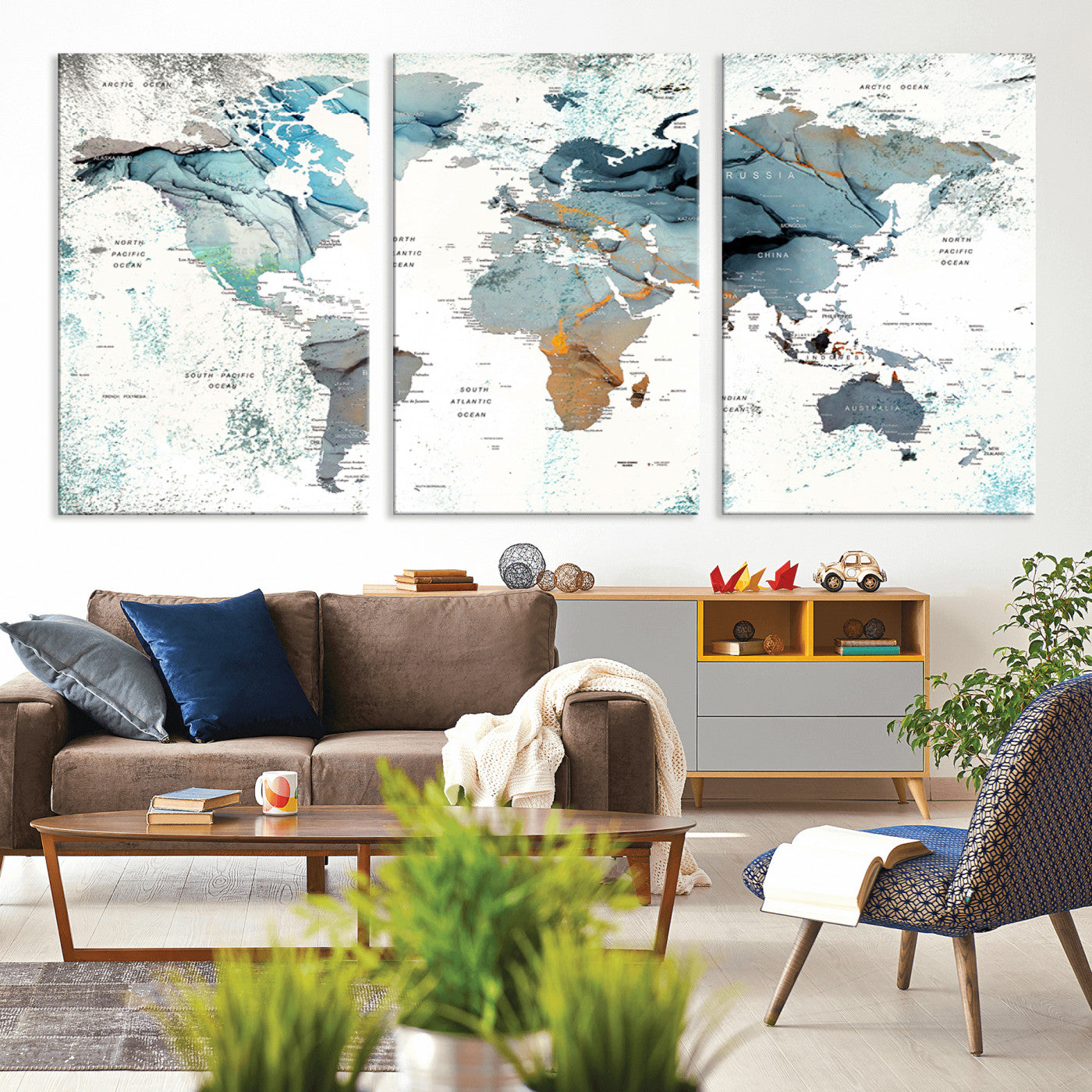 In addition to their aesthetic appeal, world map wall art pieces can also be functional. Some maps are designed with writable surfaces, allowing you to mark places you've visited or plan future trips. Others come with magnetic features, making it easy to add pins or magnets to specific locations. These interactive elements add a personal touch and make your map wall art more engaging.