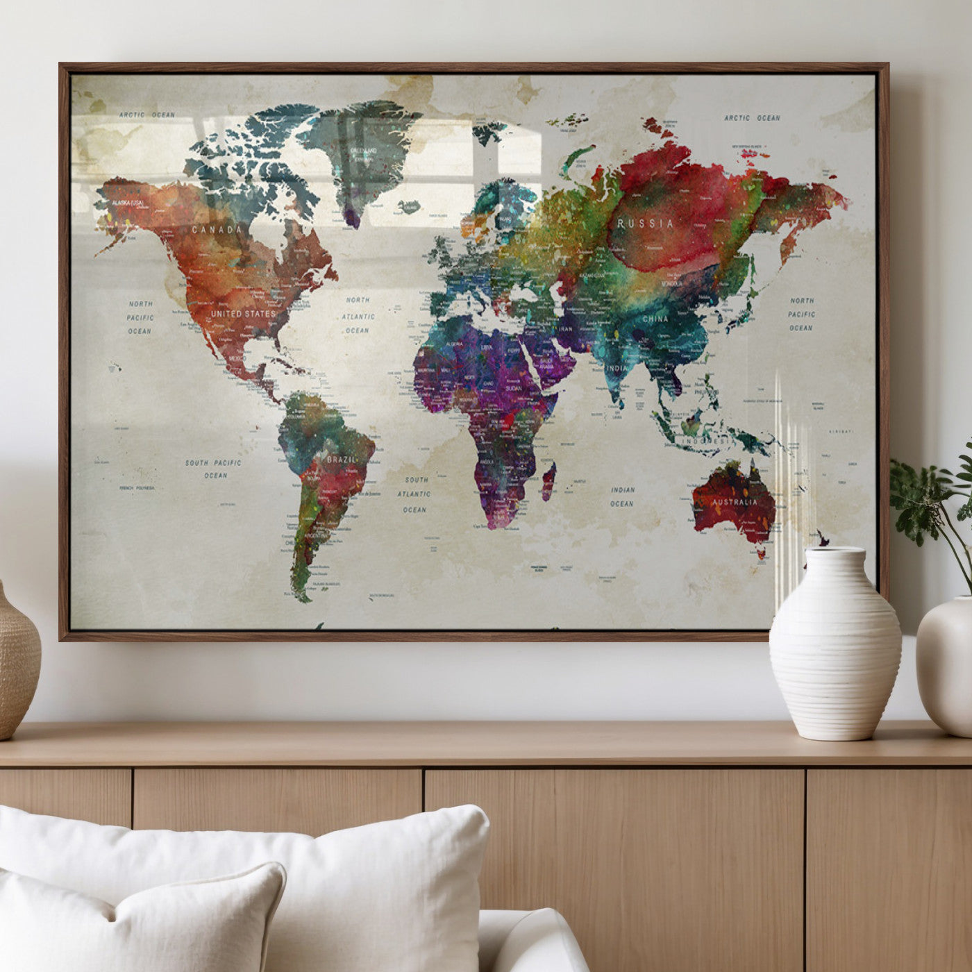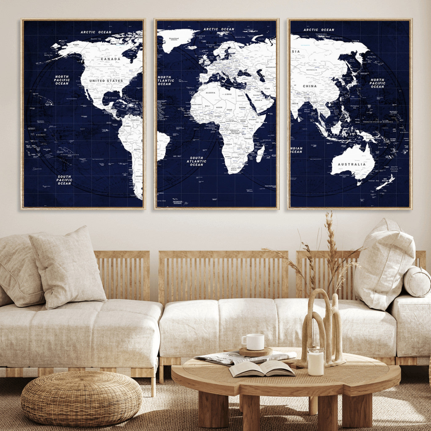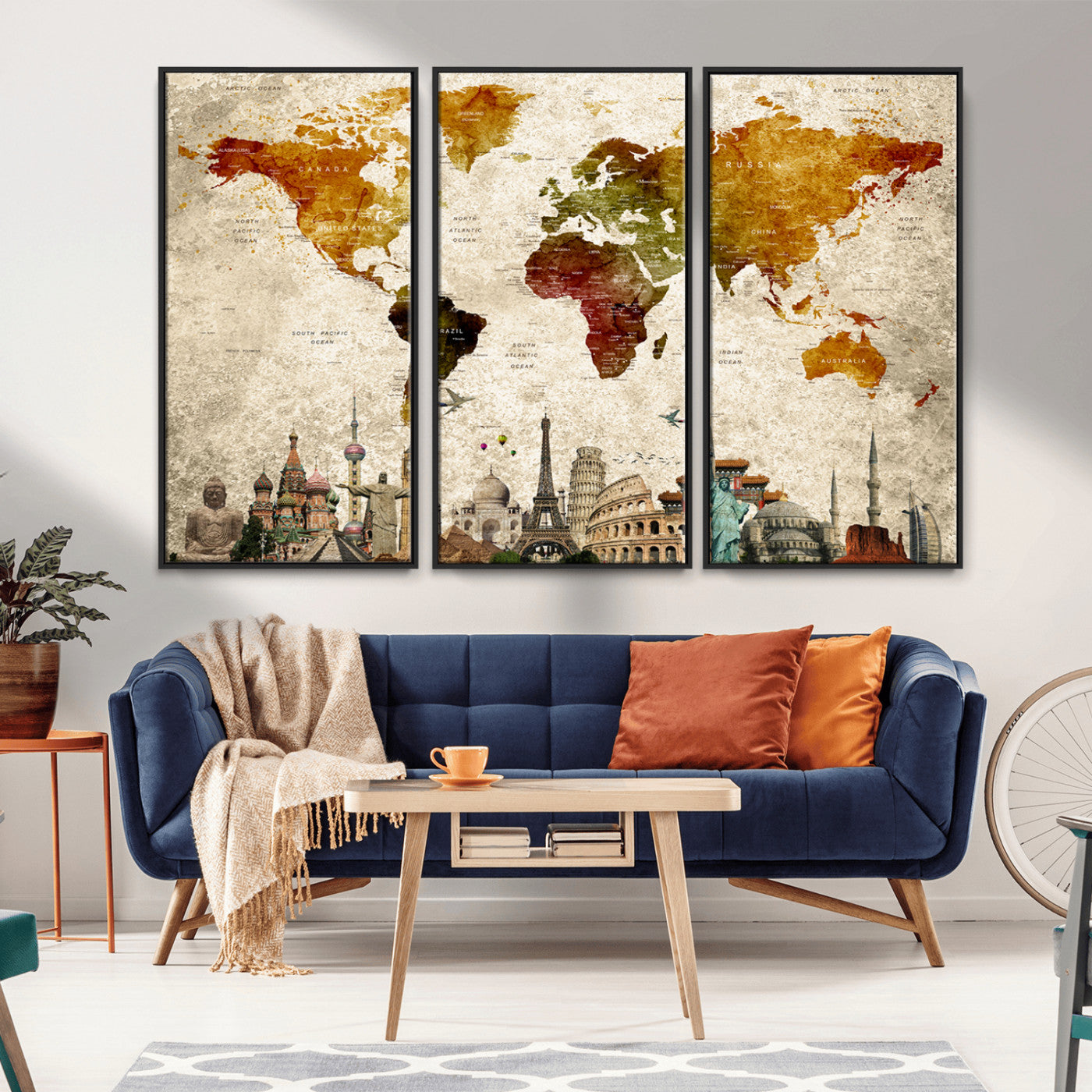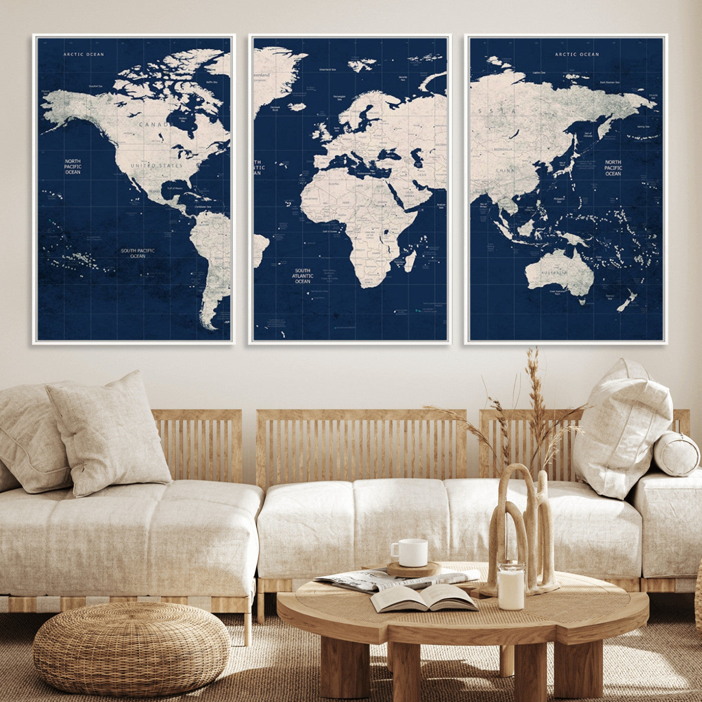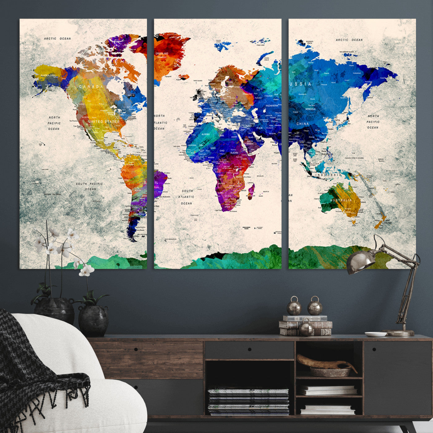 In addition to their aesthetic appeal, world map wall art pieces can also be functional. Some maps are designed with writable surfaces, allowing you to mark places you've visited or plan future trips. Others come with magnetic features, making it easy to add pins or magnets to specific locations. These interactive elements add a personal touch and make your map wall art more engaging.