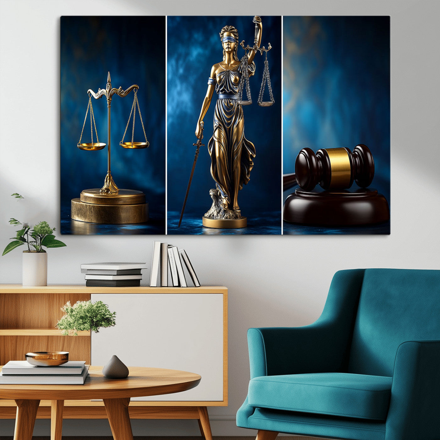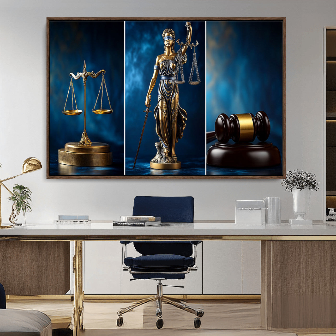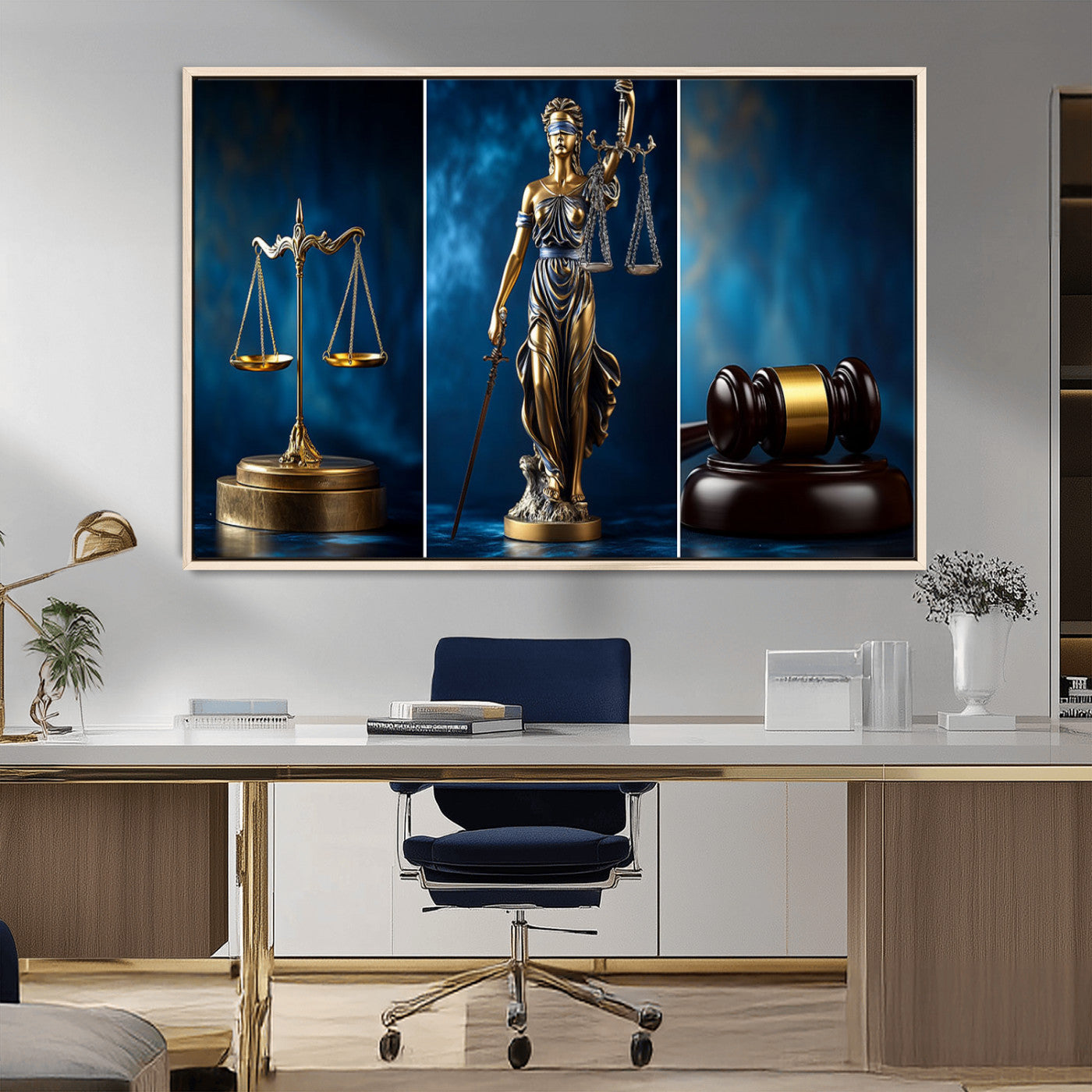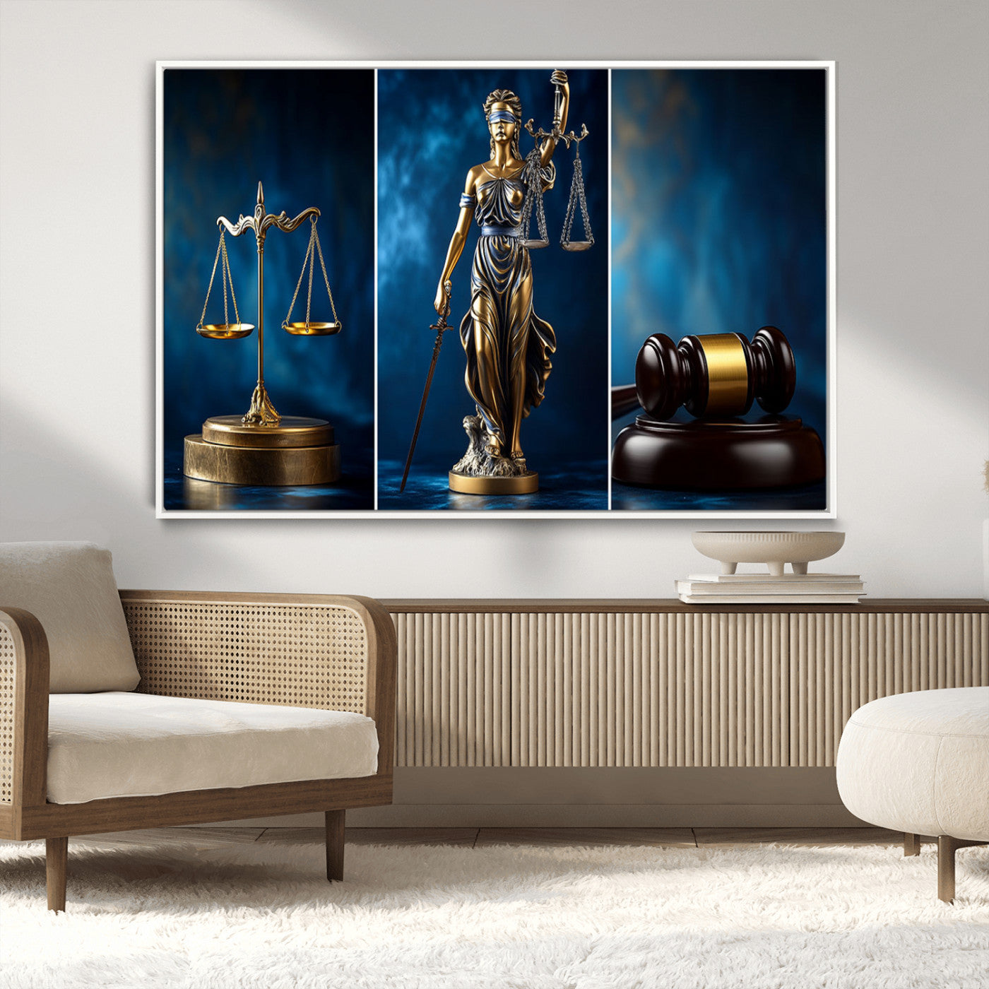 Justice Scales Statue Wall Art, Lady Justice Canvas Print, Legal Law Sculpture Artwork, Courtroom Decor for Home, Office