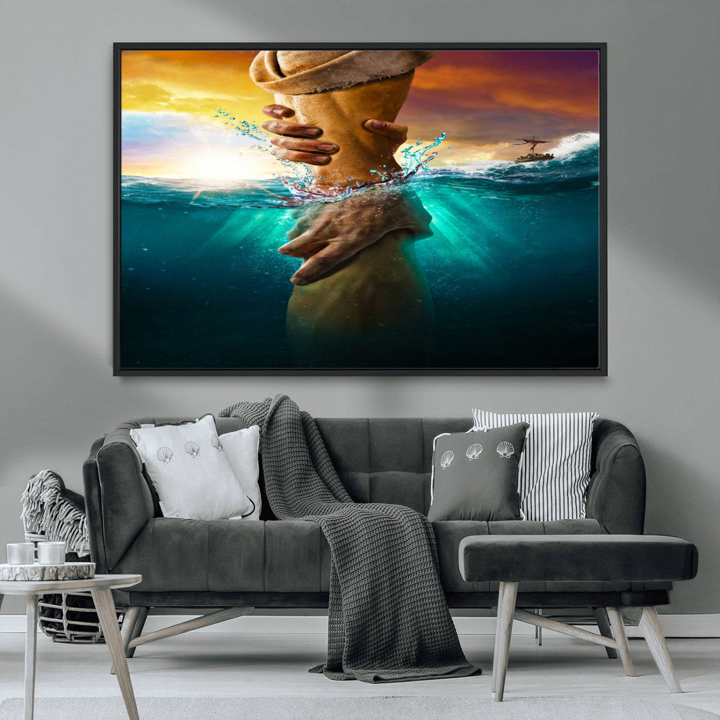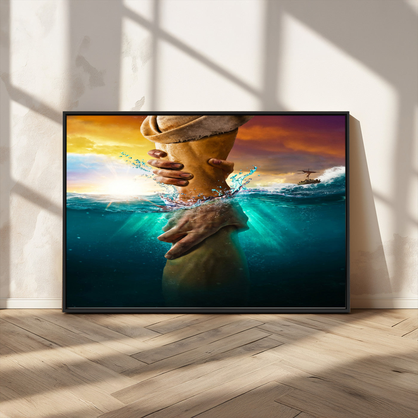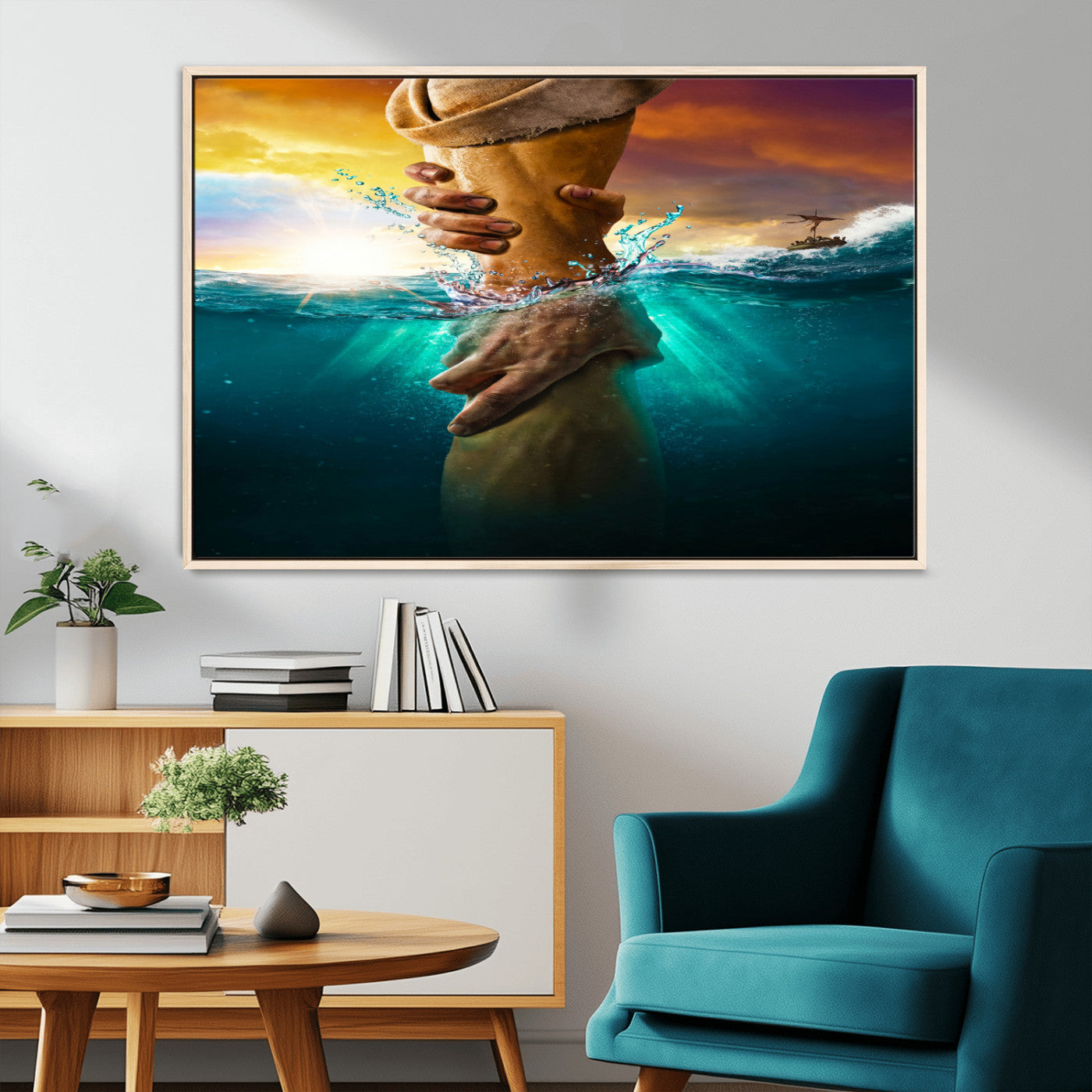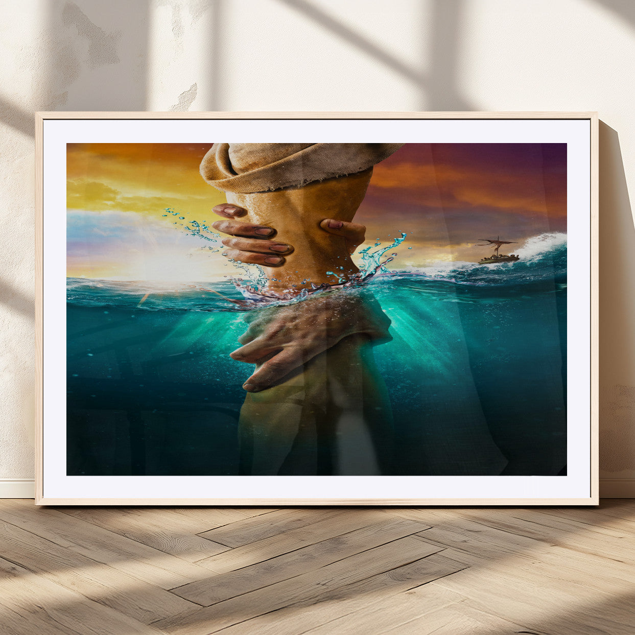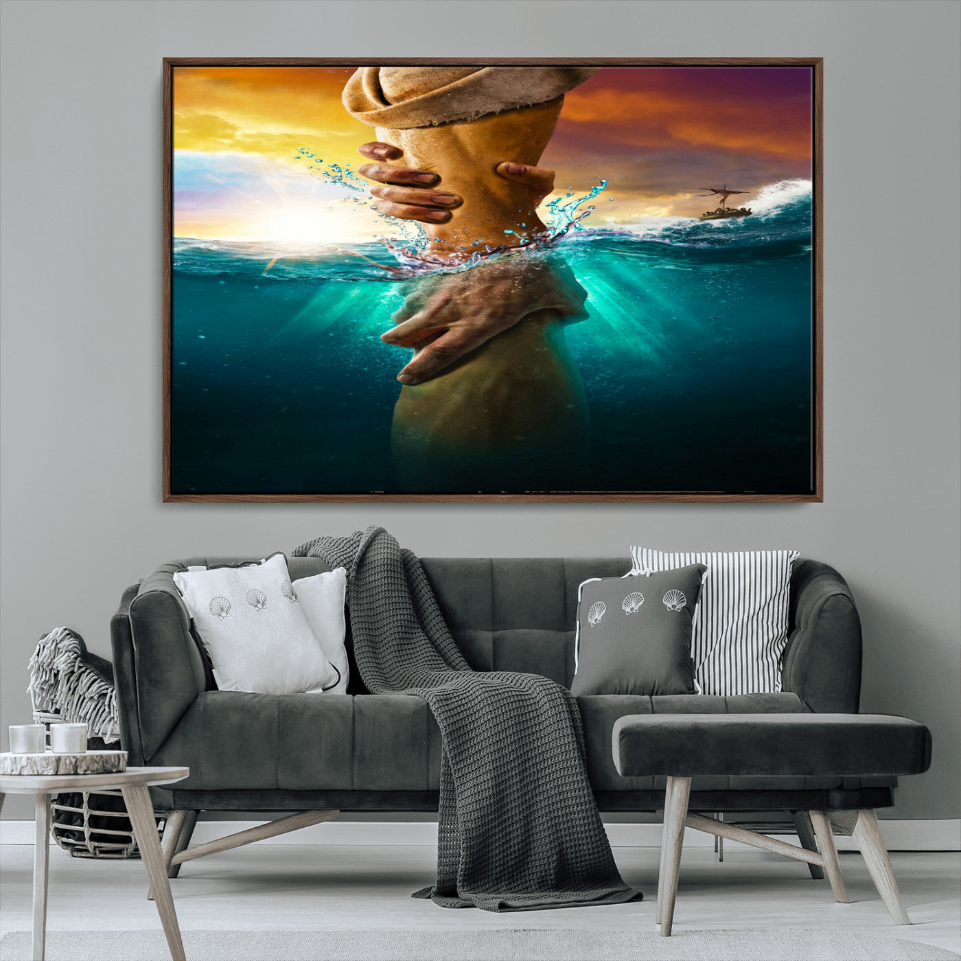 Faith Wall Decor Canvas Print – Framed Christian Art Picture Ocean Rescue Scene Artwork for Home, Office, Living Room