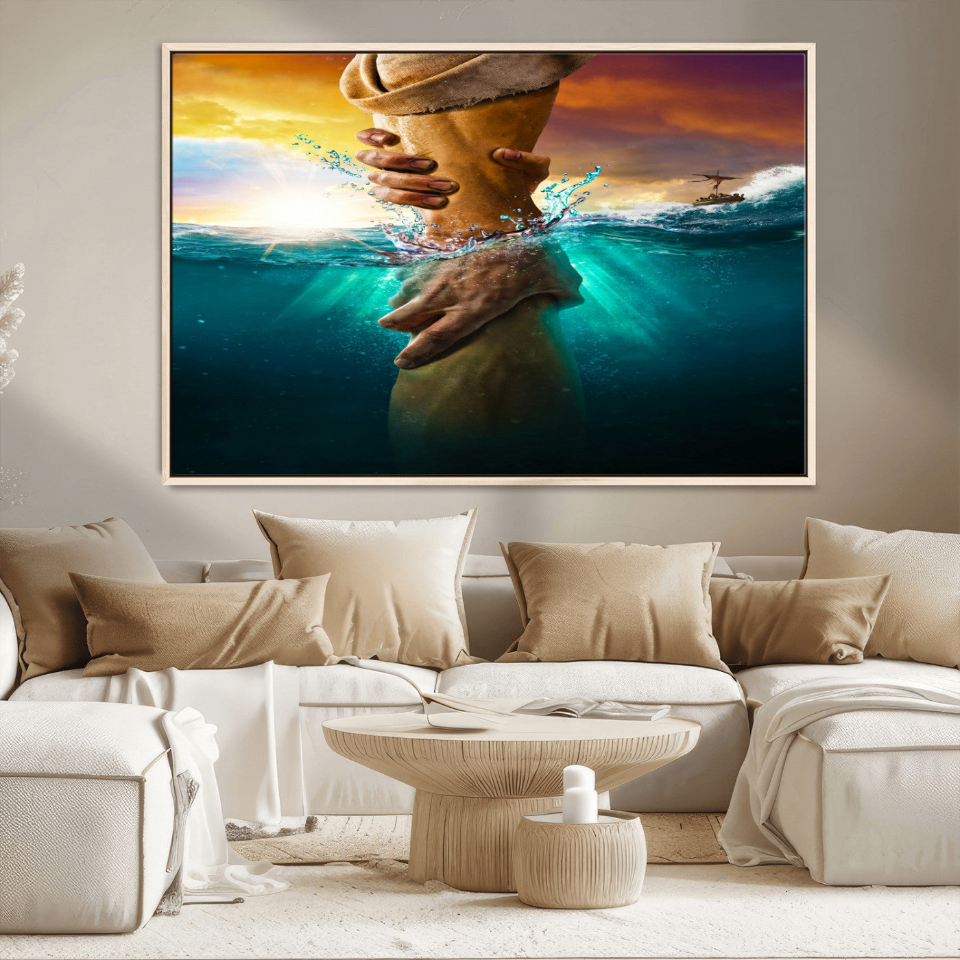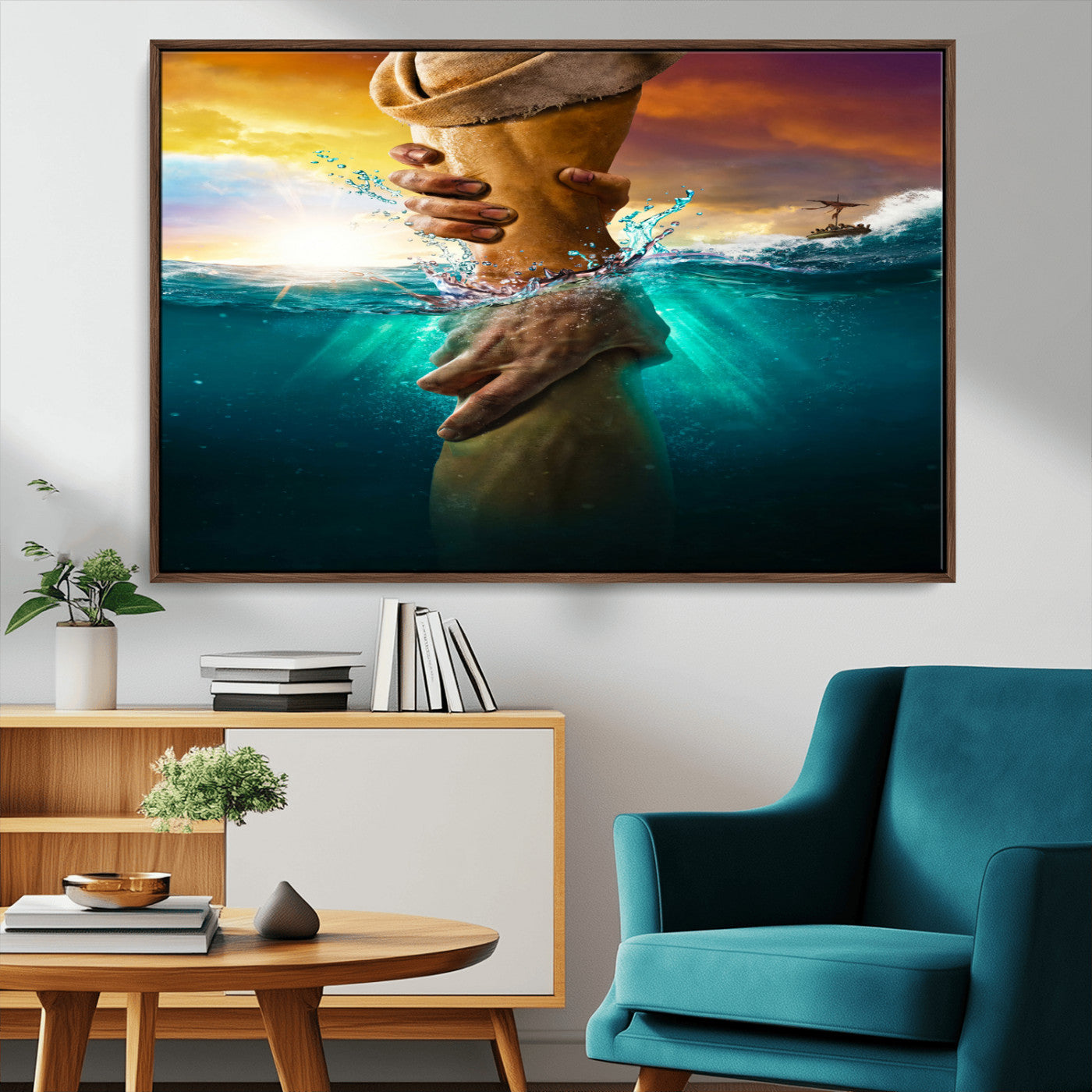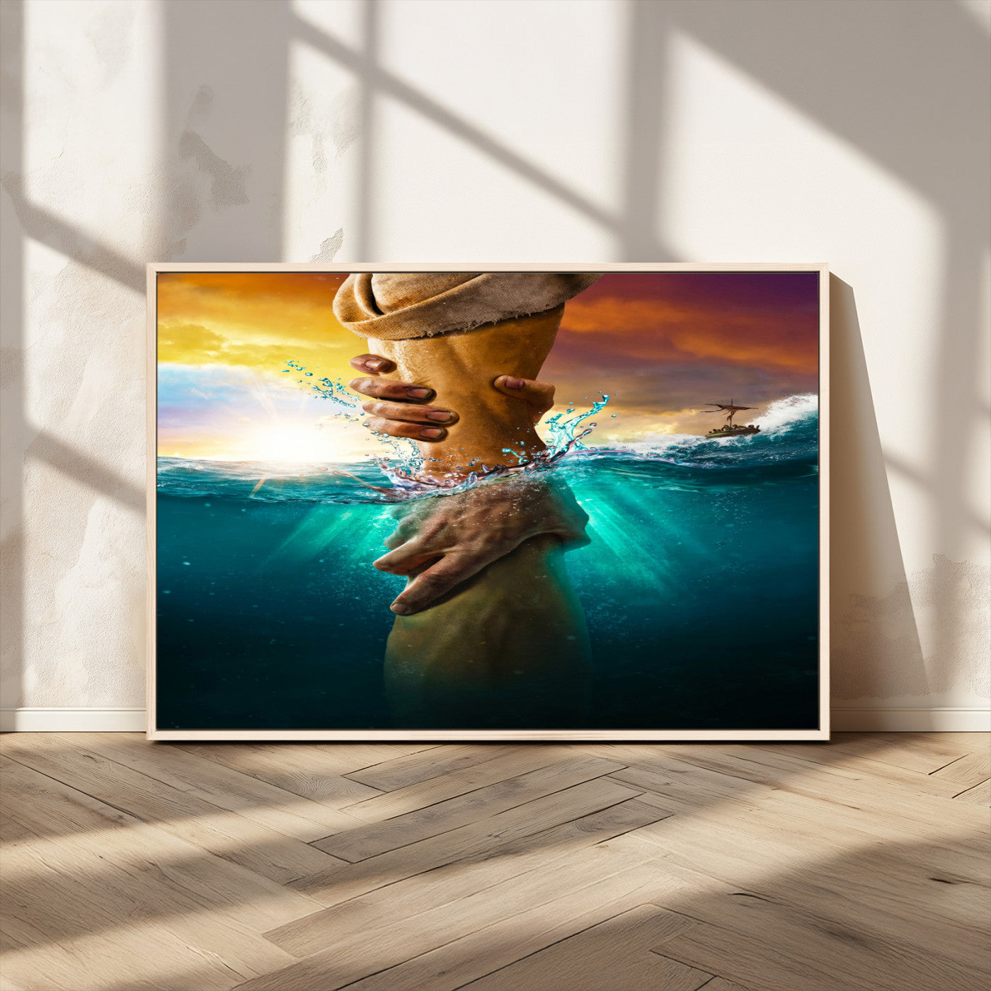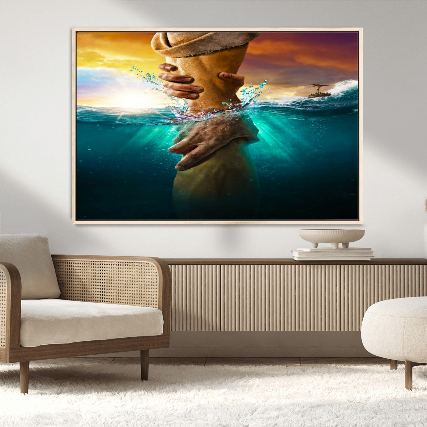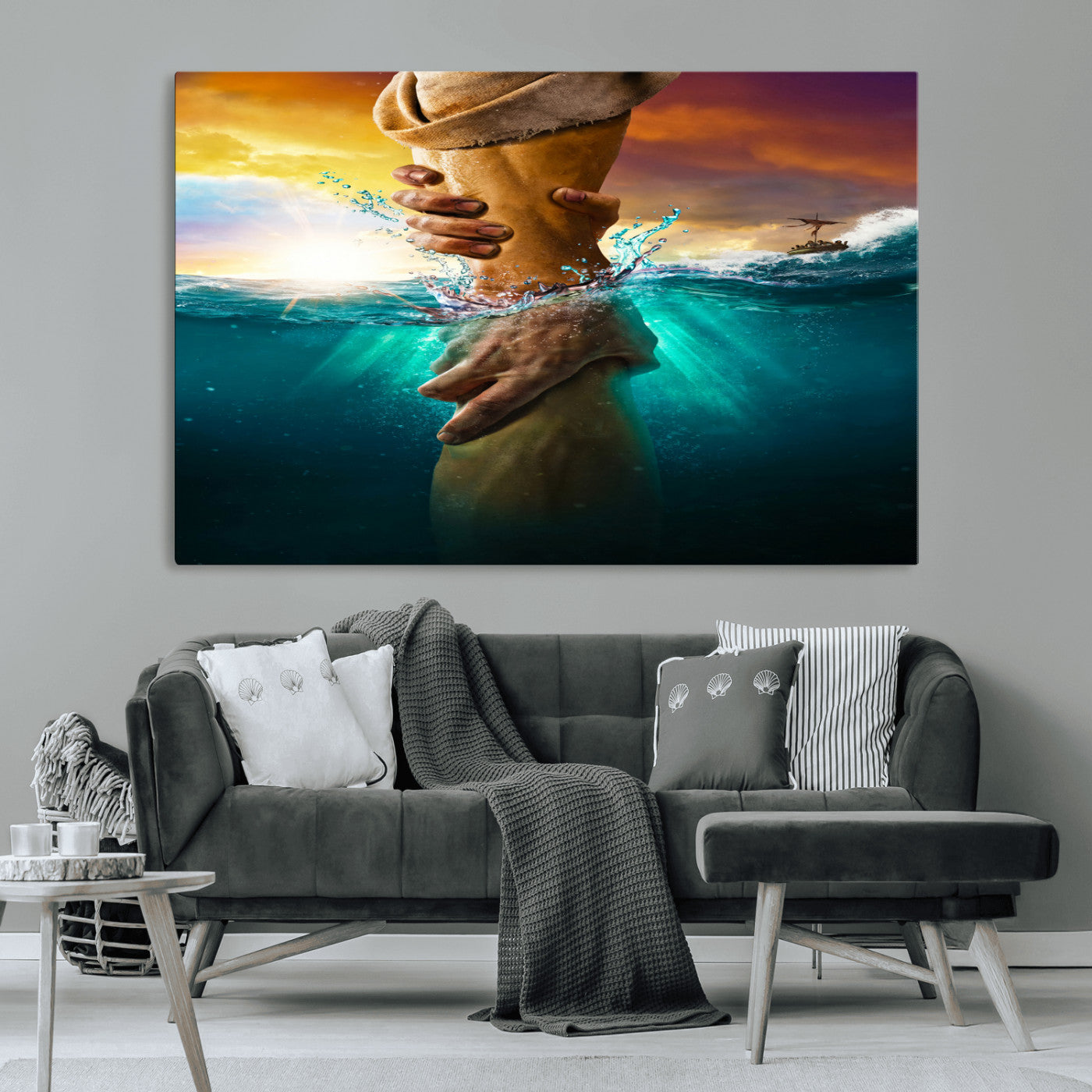 Faith Wall Decor Canvas Print – Framed Christian Art Picture Ocean Rescue Scene Artwork for Home, Office, Living Room