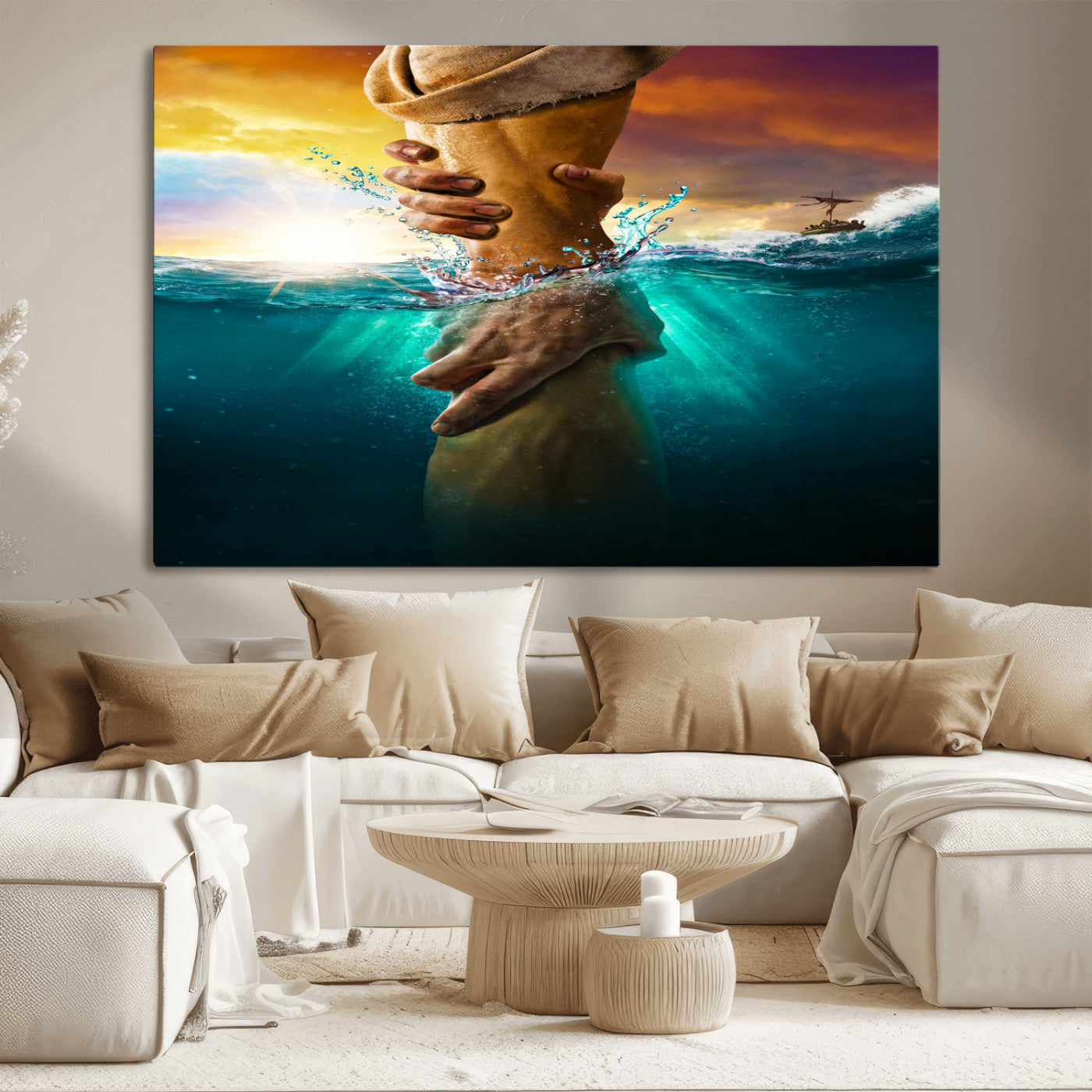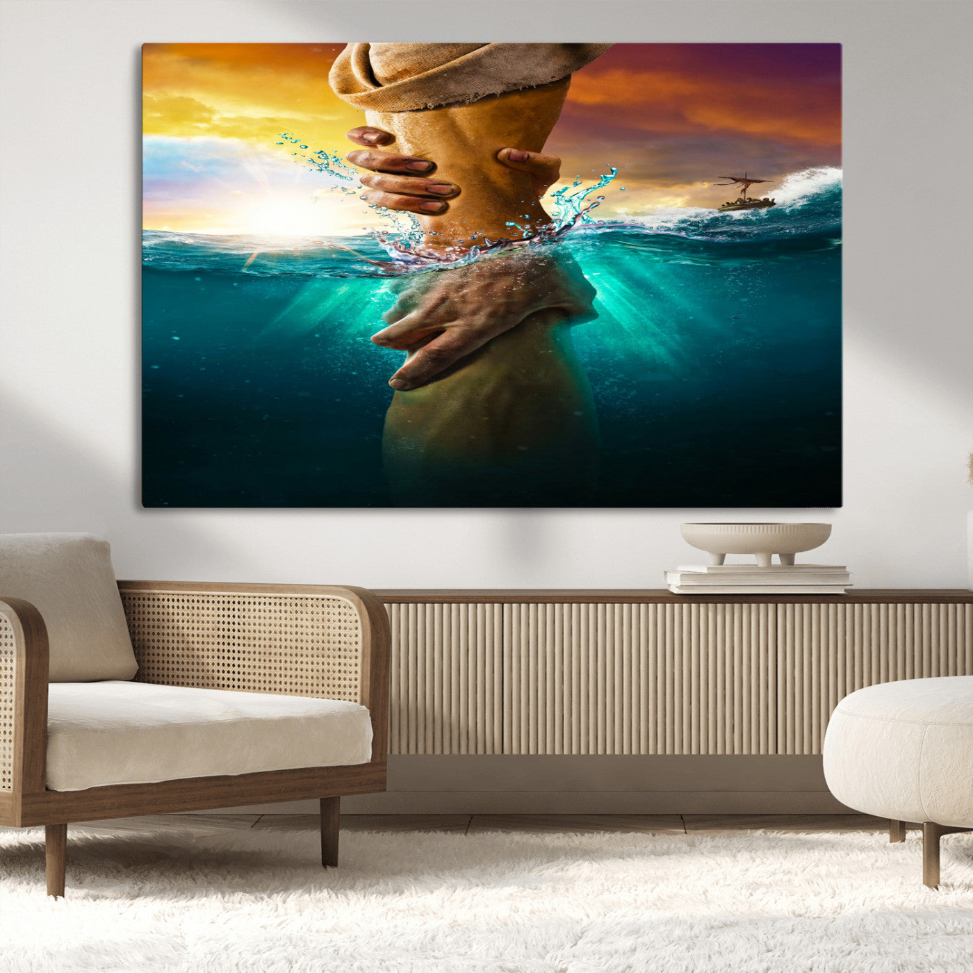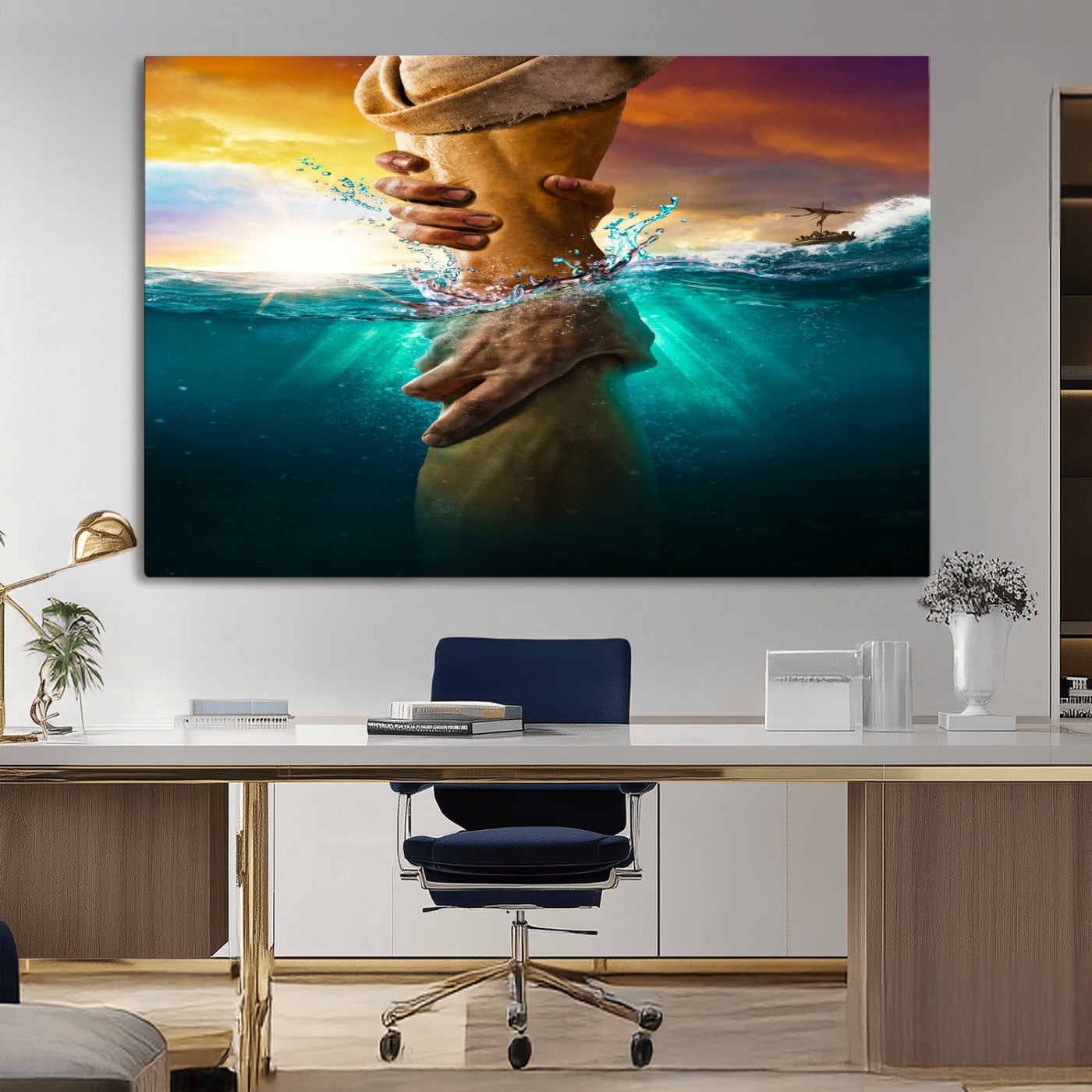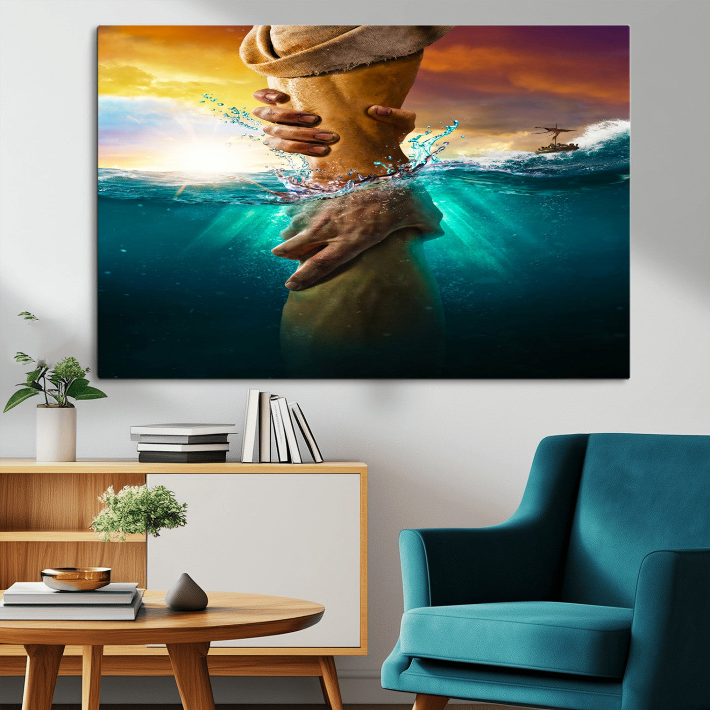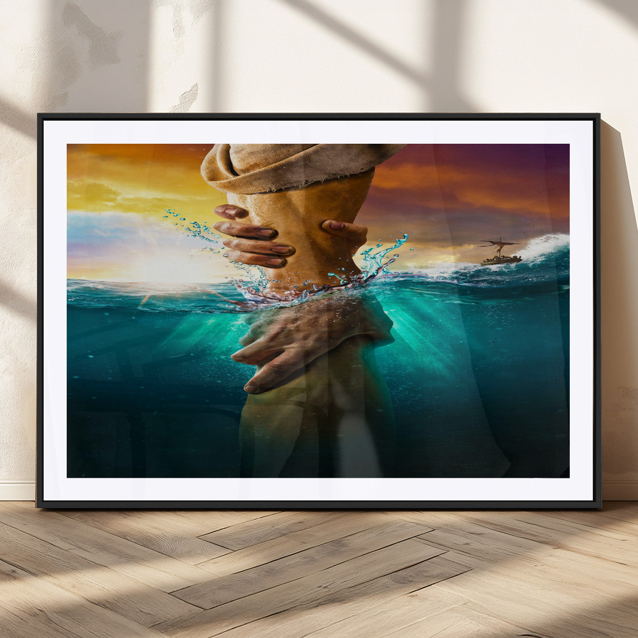 Faith Wall Decor Canvas Print – Framed Christian Art Picture Ocean Rescue Scene Artwork for Home, Office, Living Room