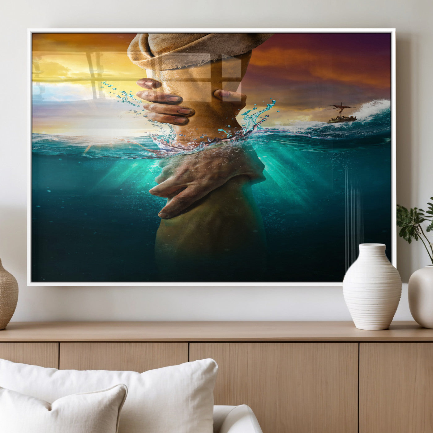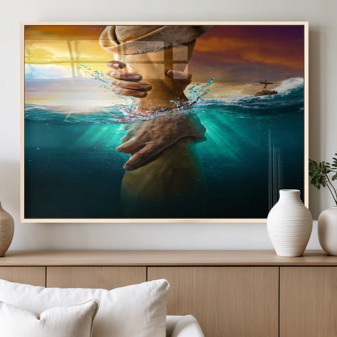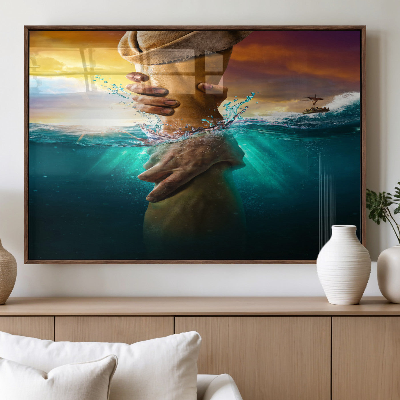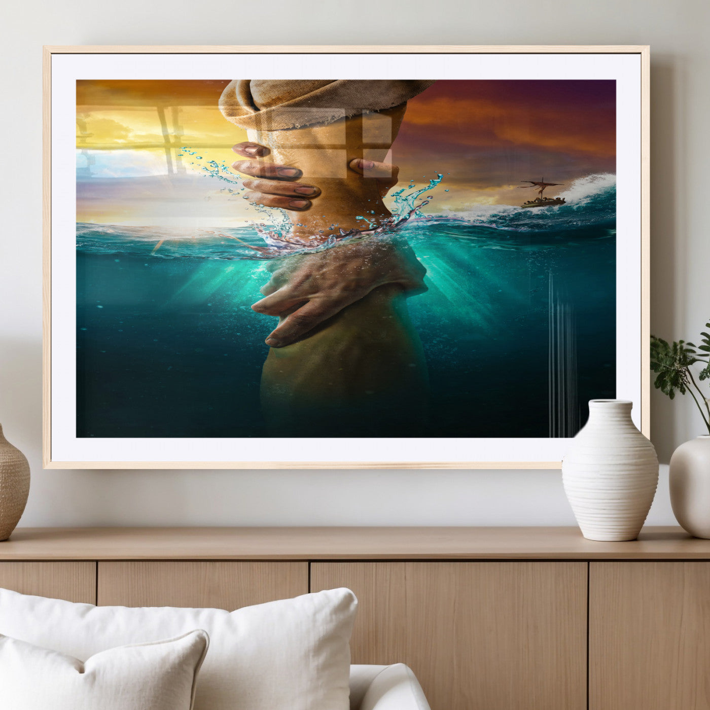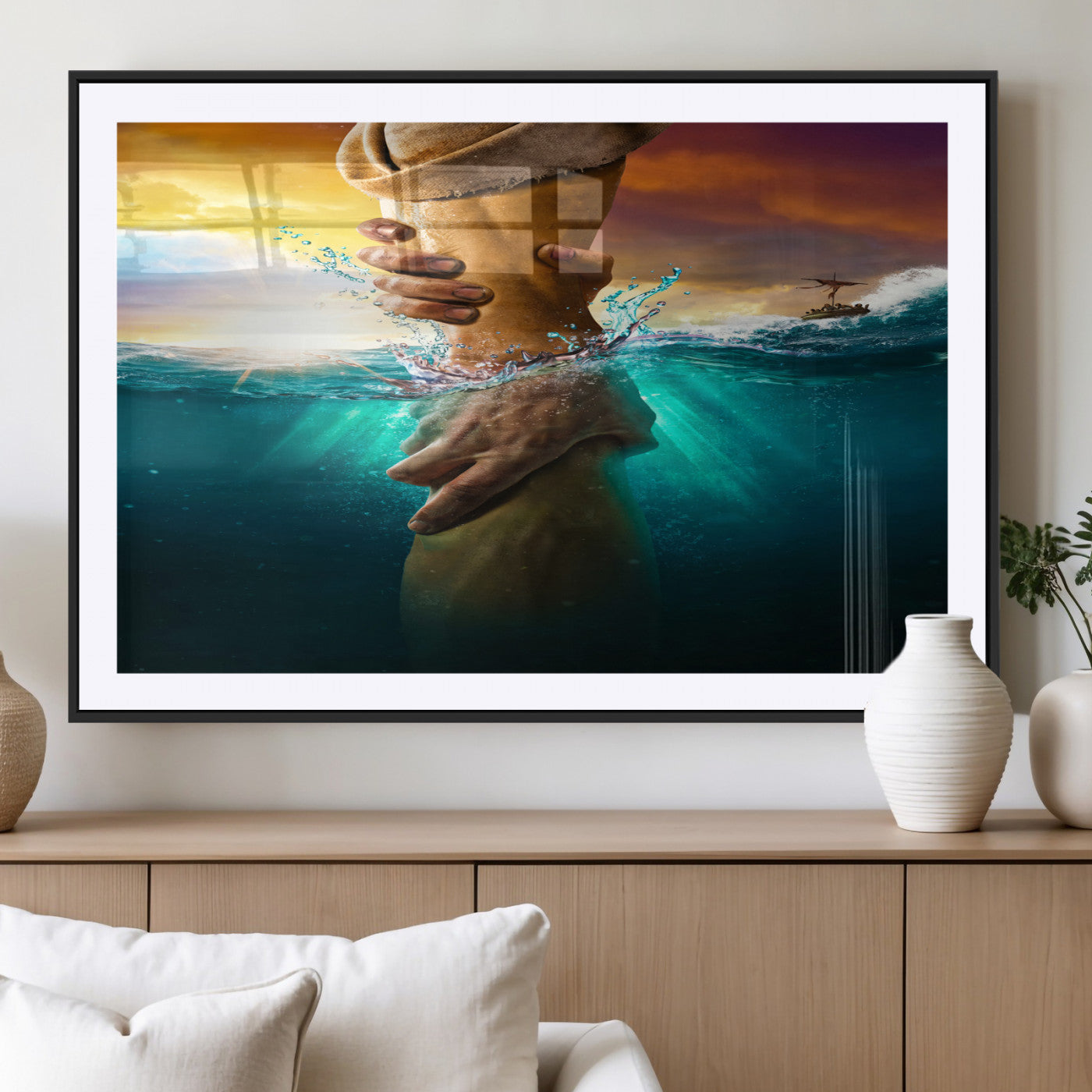Faith Wall Decor Canvas Print – Framed Christian Art Picture Ocean Rescue Scene Artwork for Home, Office, Living Room