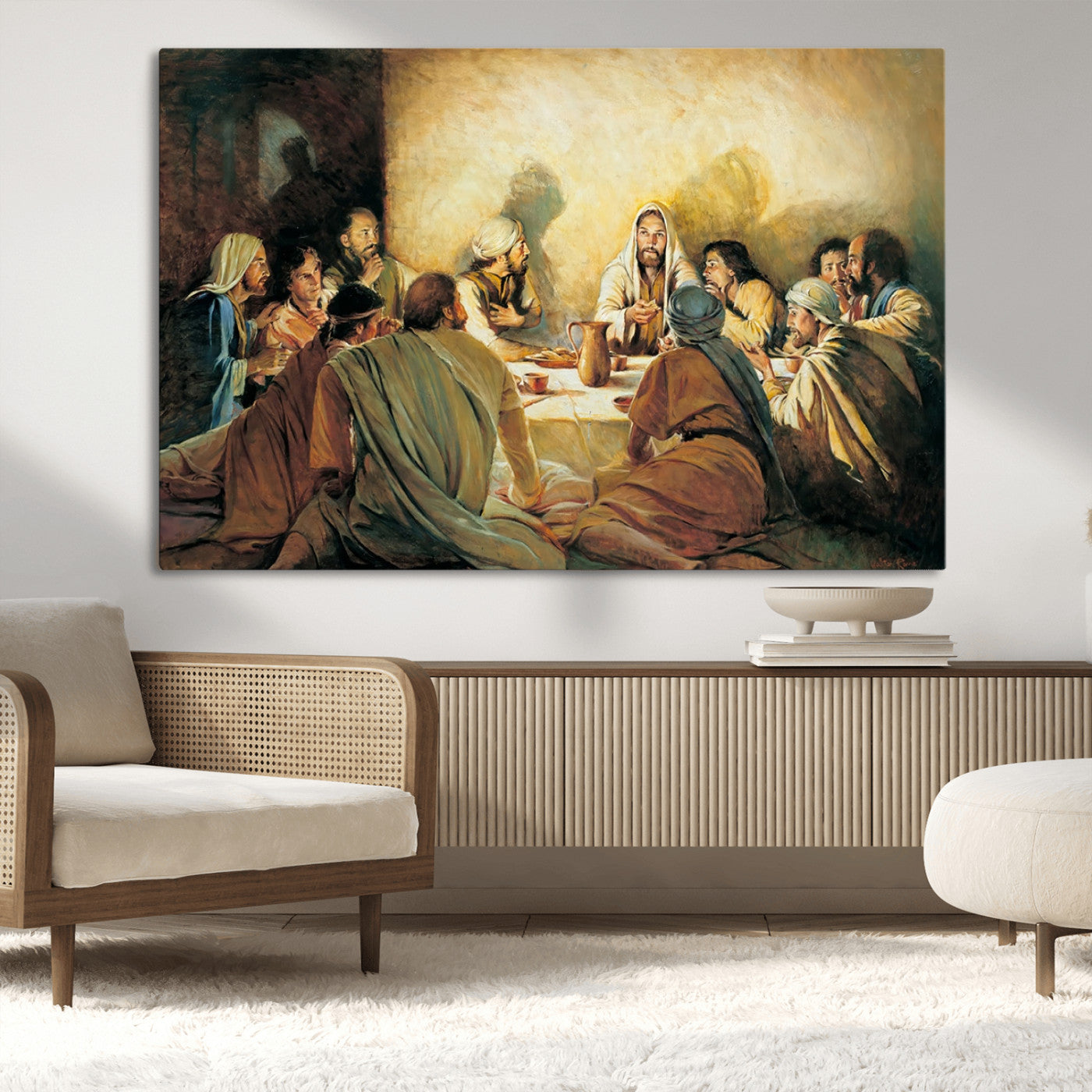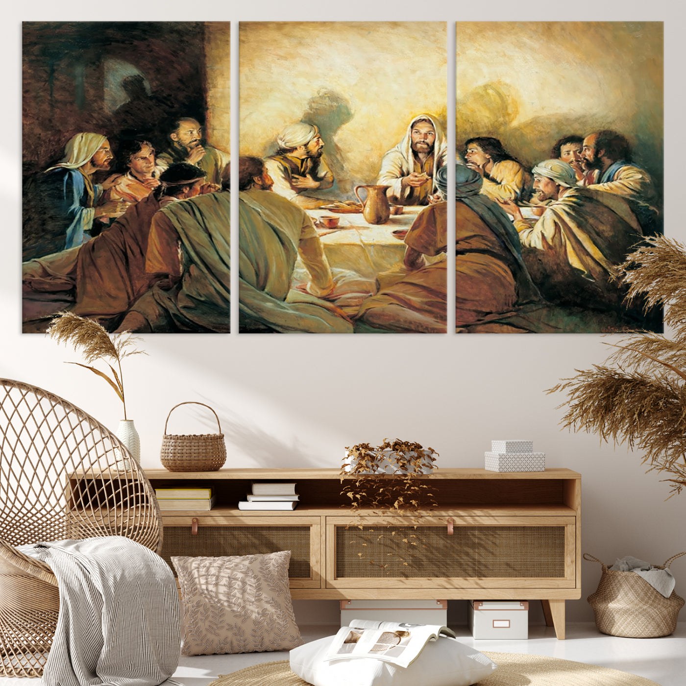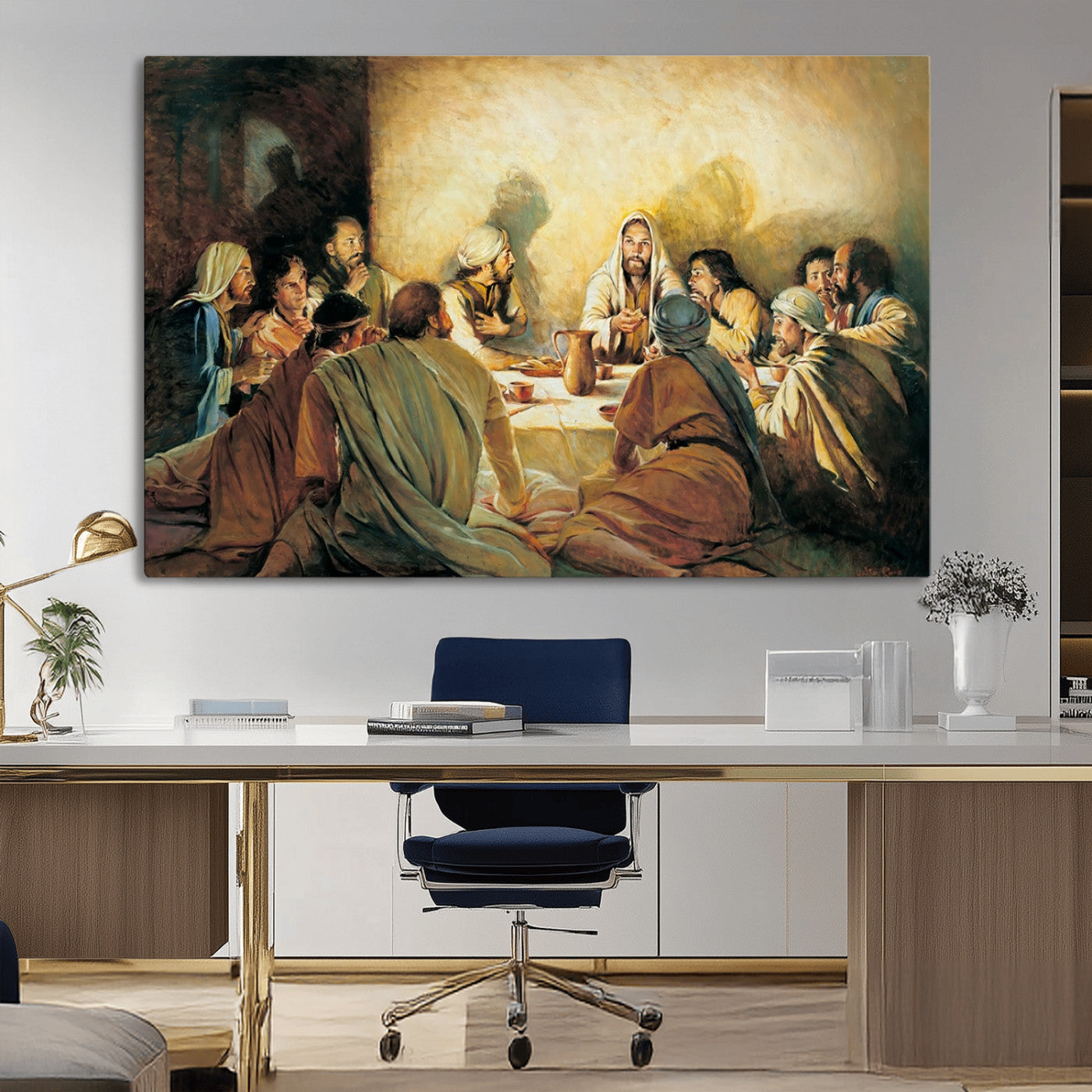 Last Supper Wall Art Canvas Print, Framed Jesus Artwork, Sacred Dining Scene Perfect Decor for Home, Office