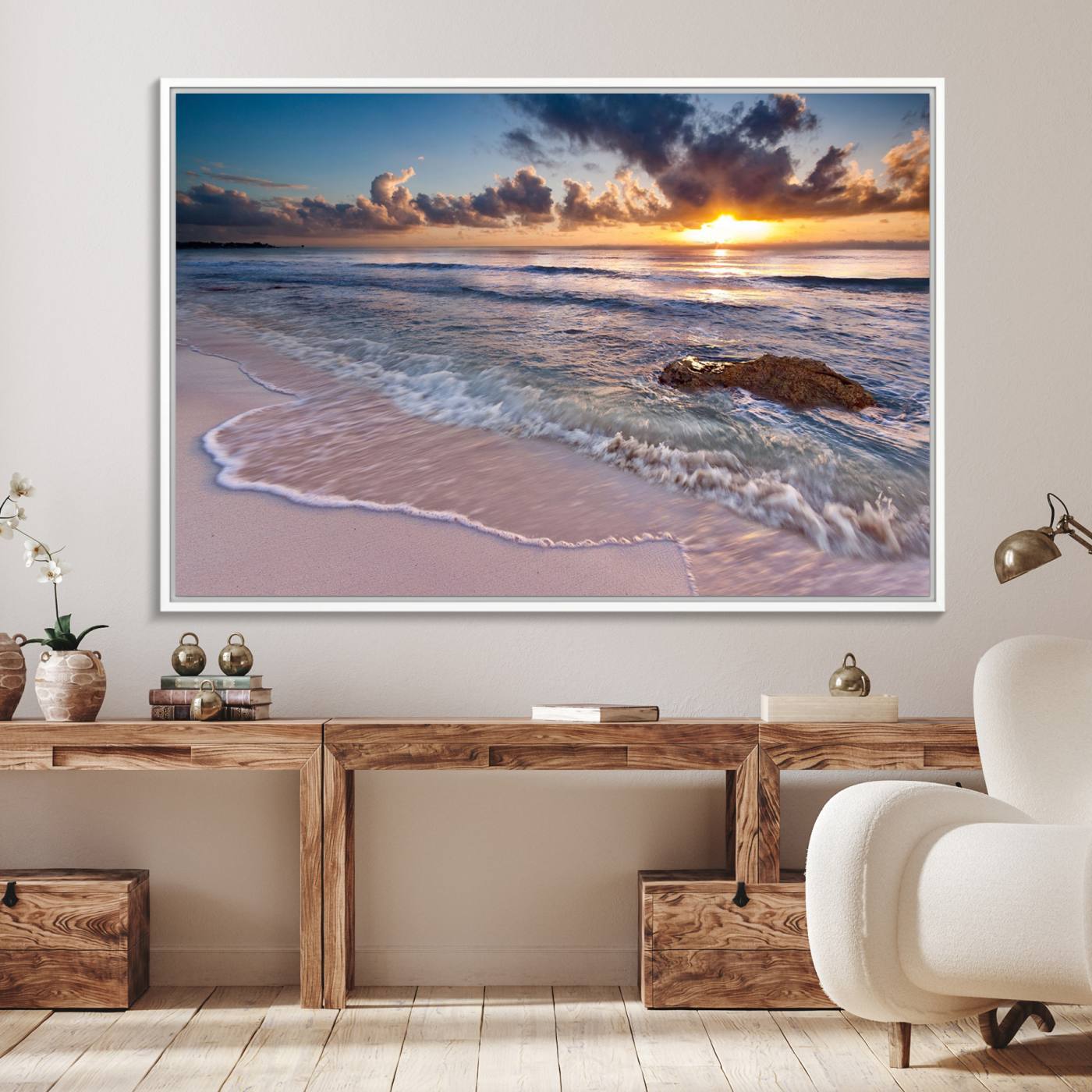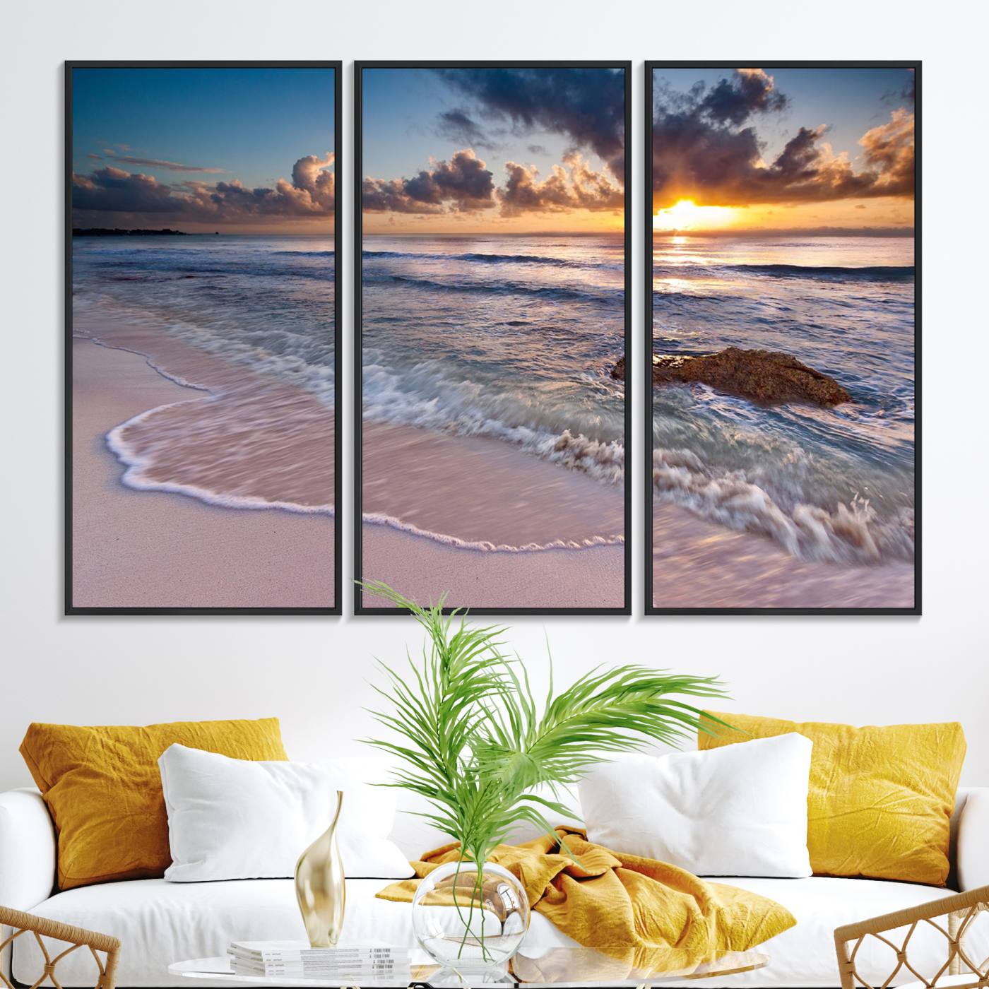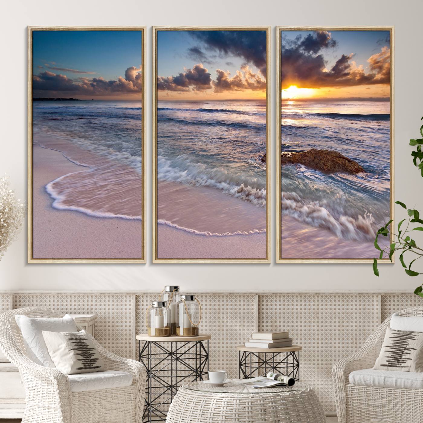Hermosa puesta de sol en la playa tropical lienzo pared arte impresión gran océano playa arte de la pared