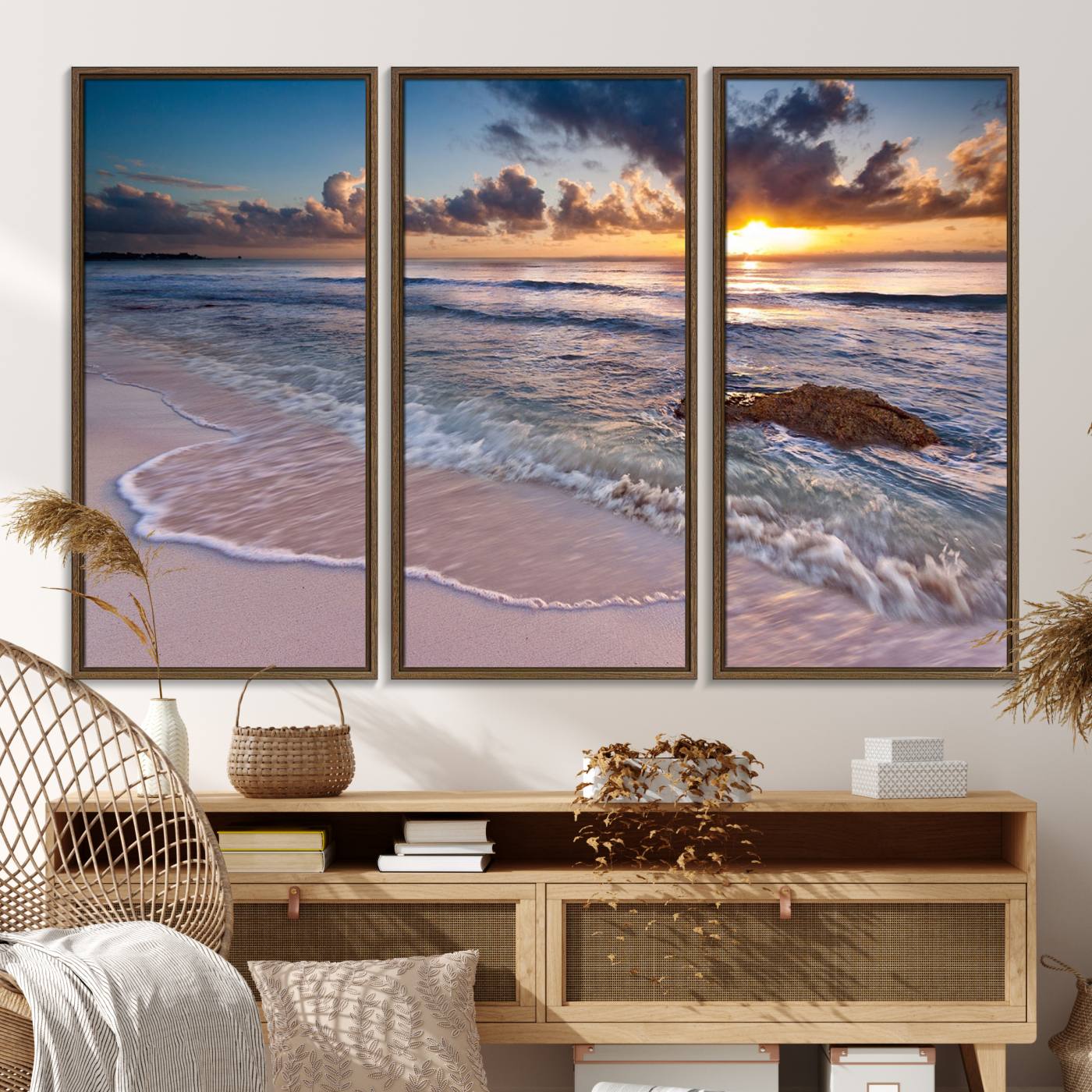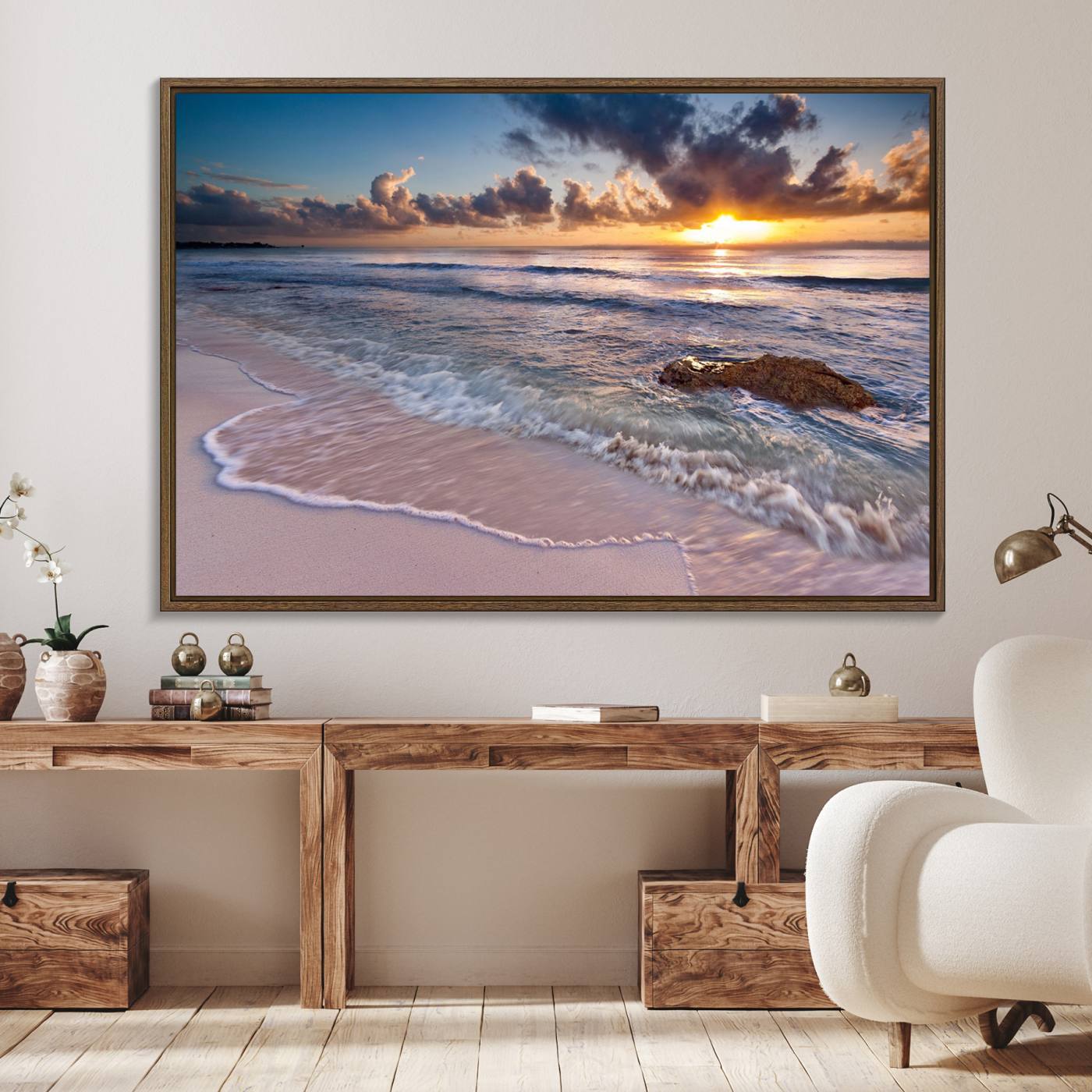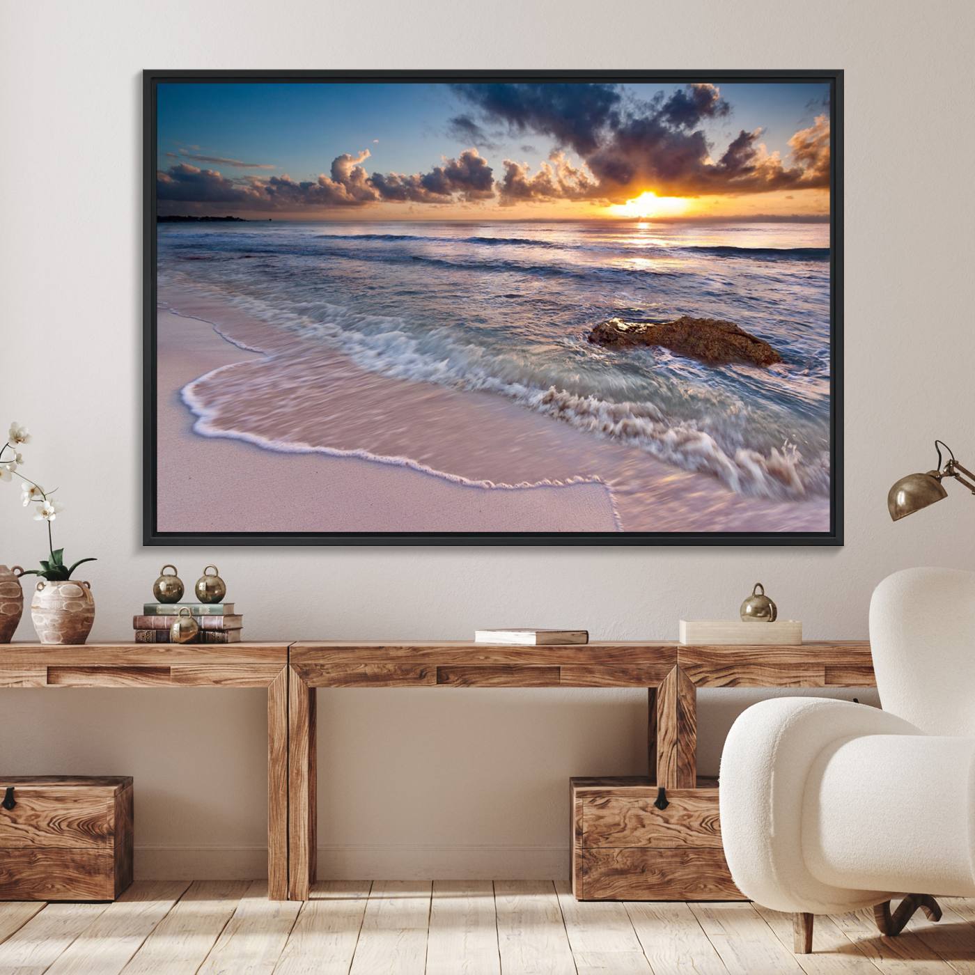 Hermosa puesta de sol en la playa tropical lienzo pared arte impresión gran océano playa arte de la pared