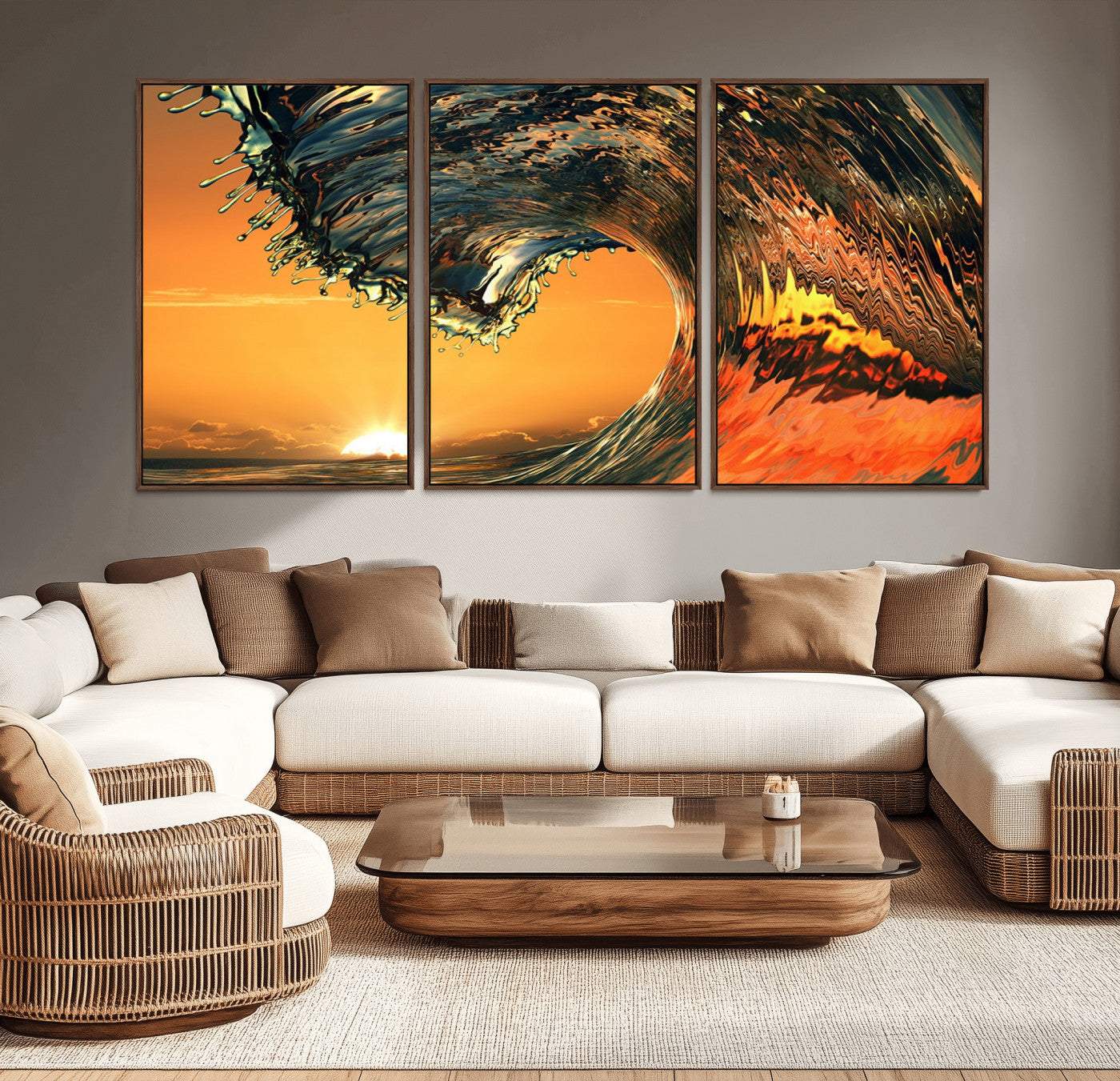 Puesta de sol en la ola de surf en el océano Lienzo de pared Impresión de arte para la decoración de la oficina en el hogar de la sala de estar, Arte de la pared de la playa, Arte de la pared del mar
