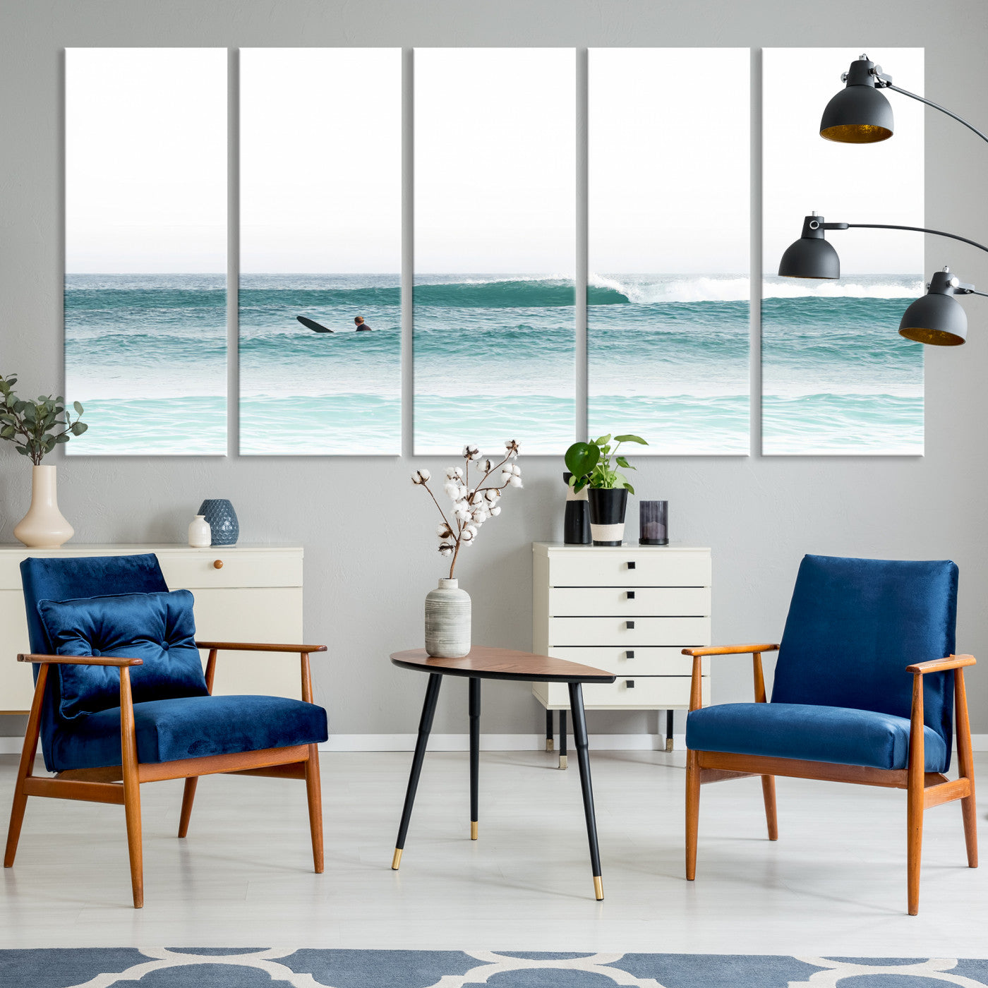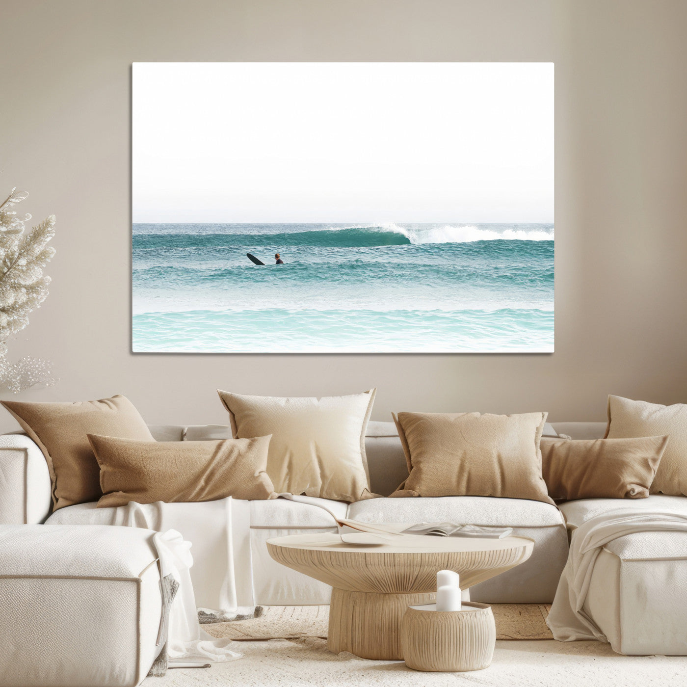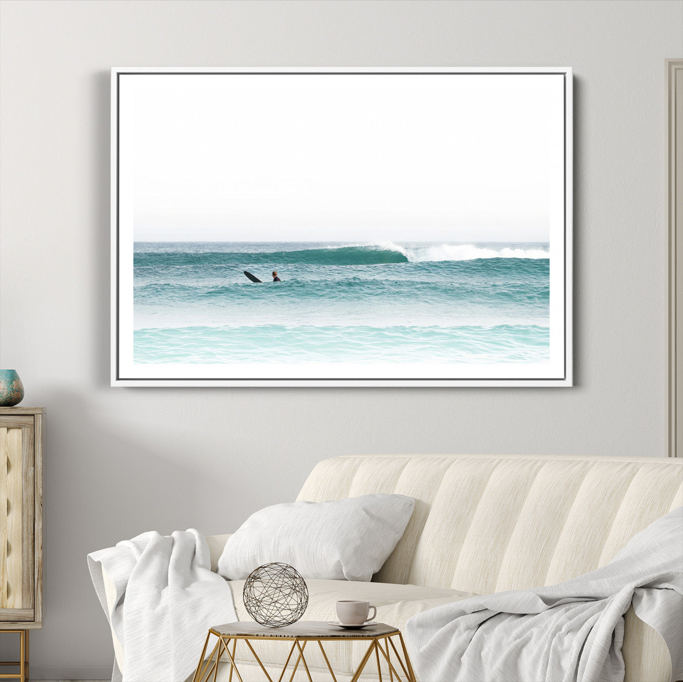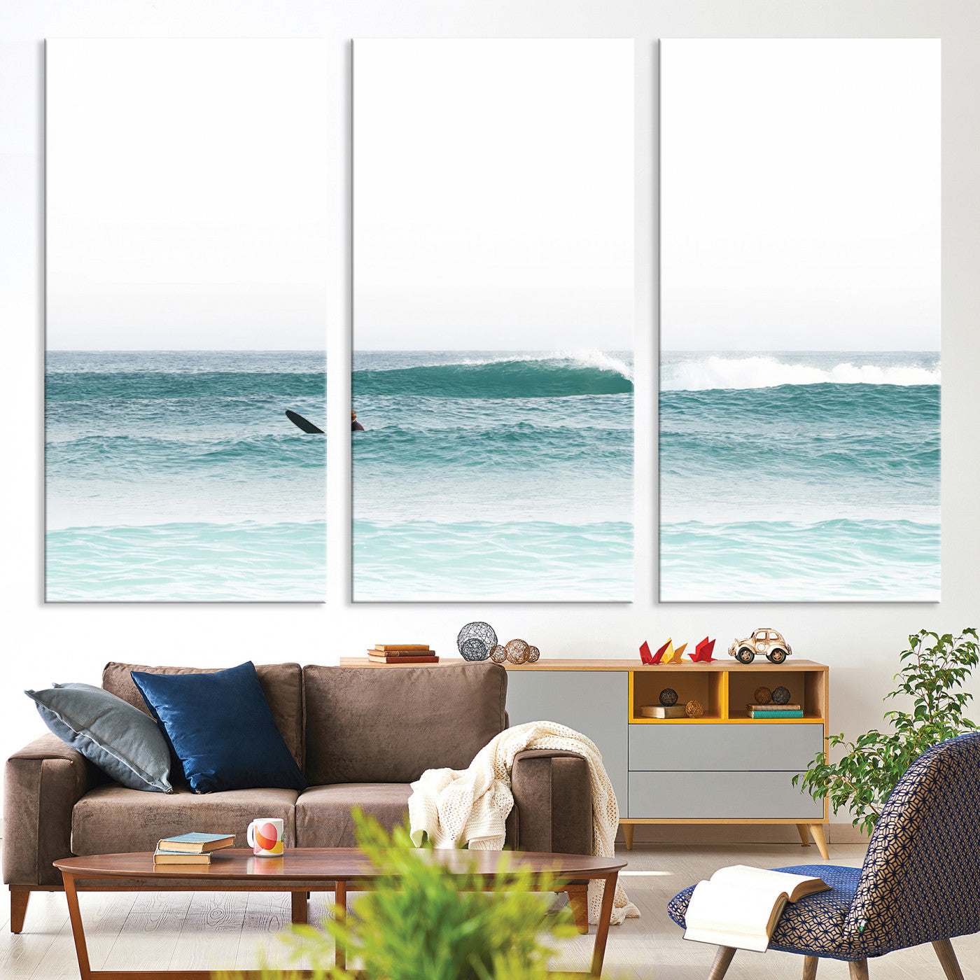 Surfing Wall Art Canvas Print – Framed Ocean Waves Minimalist Beach Artwork for Living Room Bedroom Office, Living Room