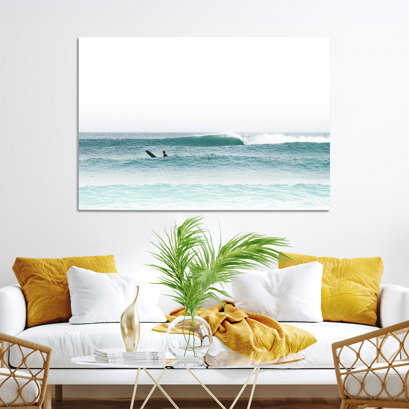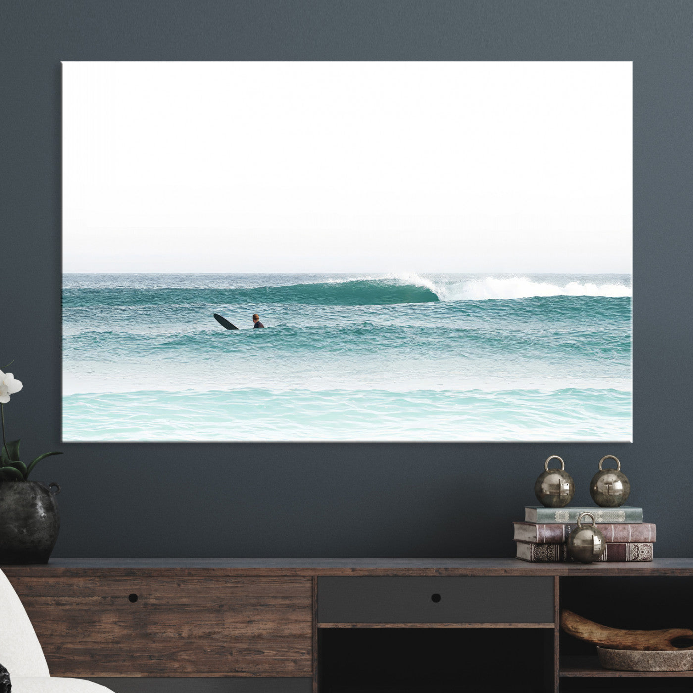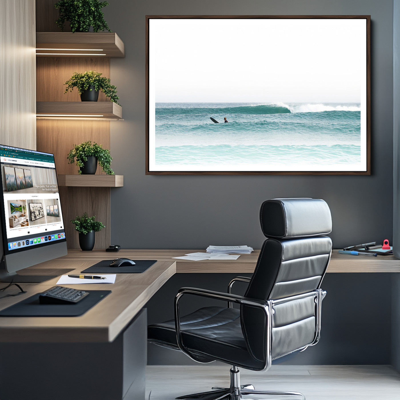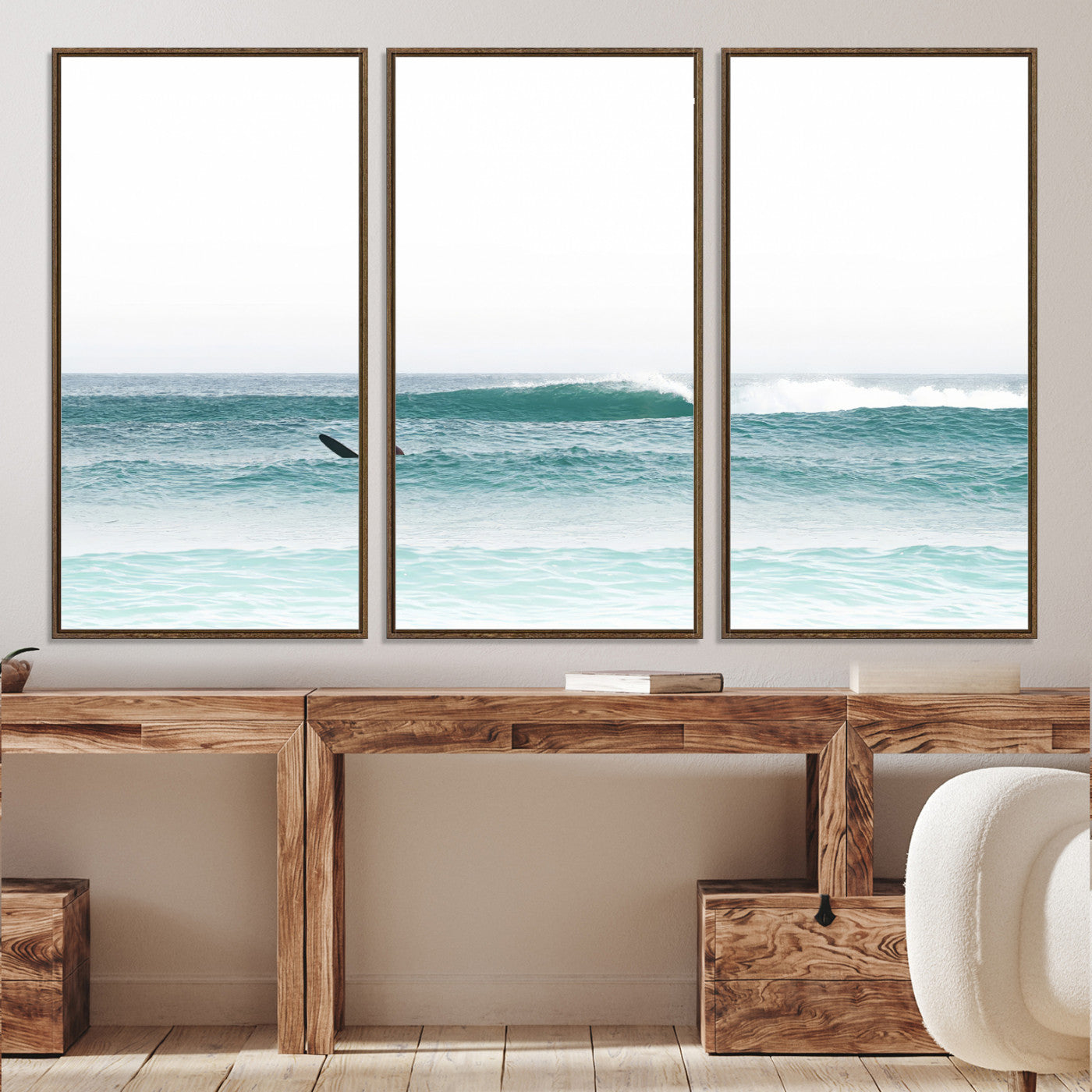Surfing Wall Art Canvas Print – Framed Ocean Waves Minimalist Beach Artwork for Living Room Bedroom Office, Living Room