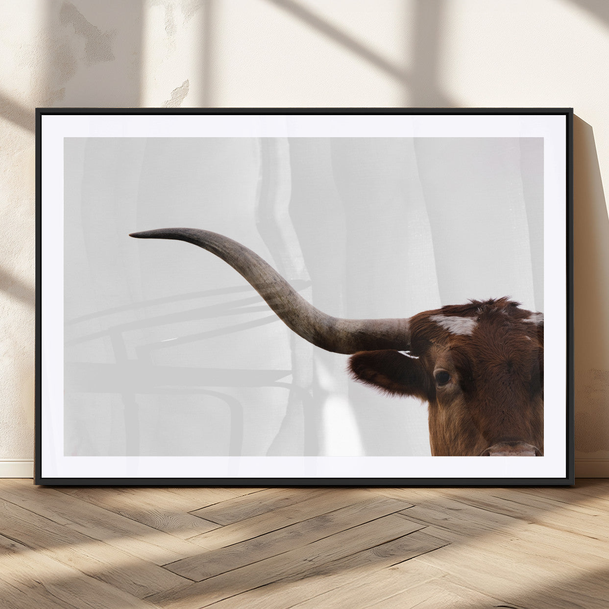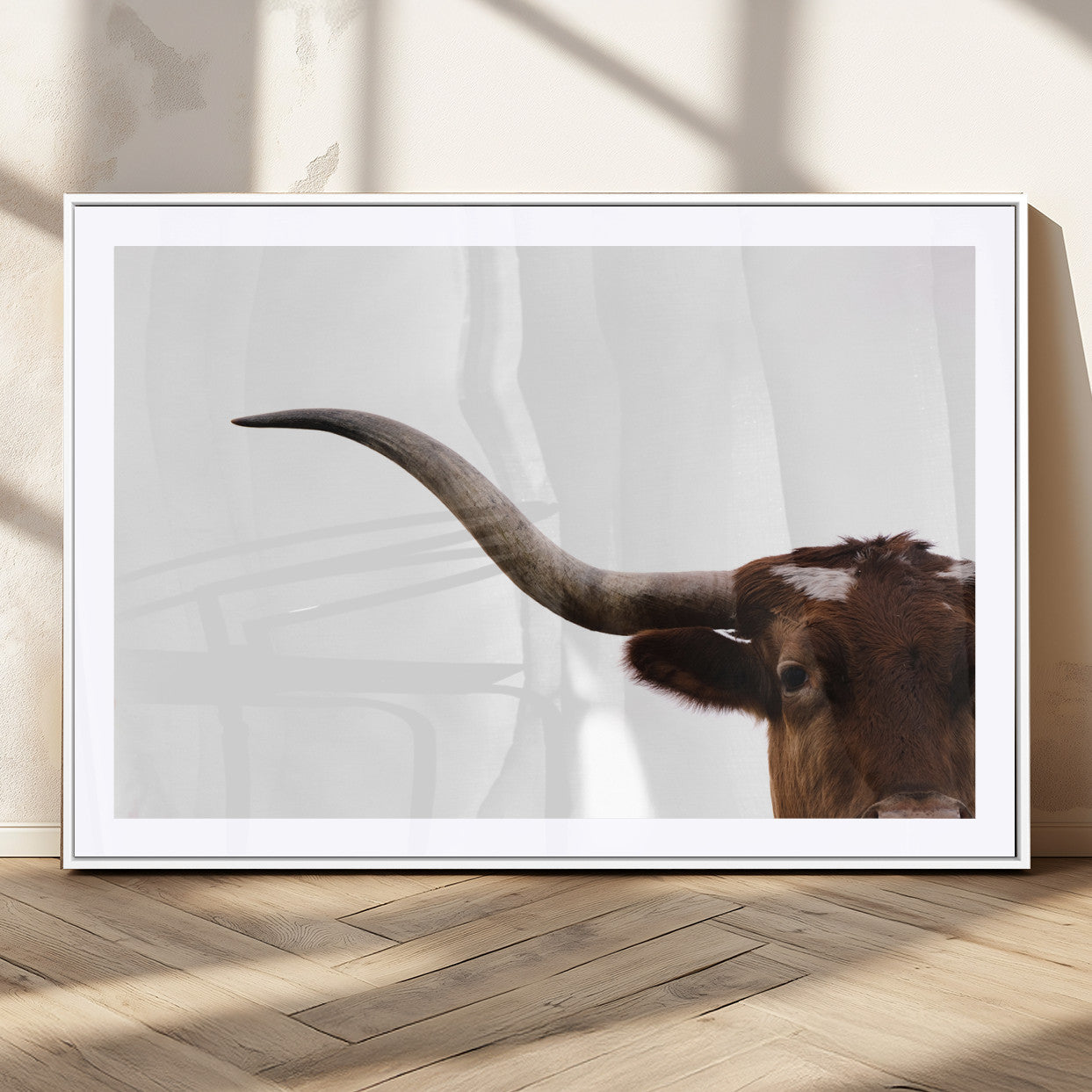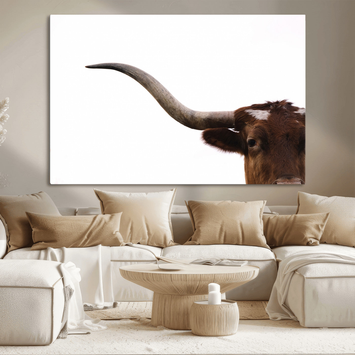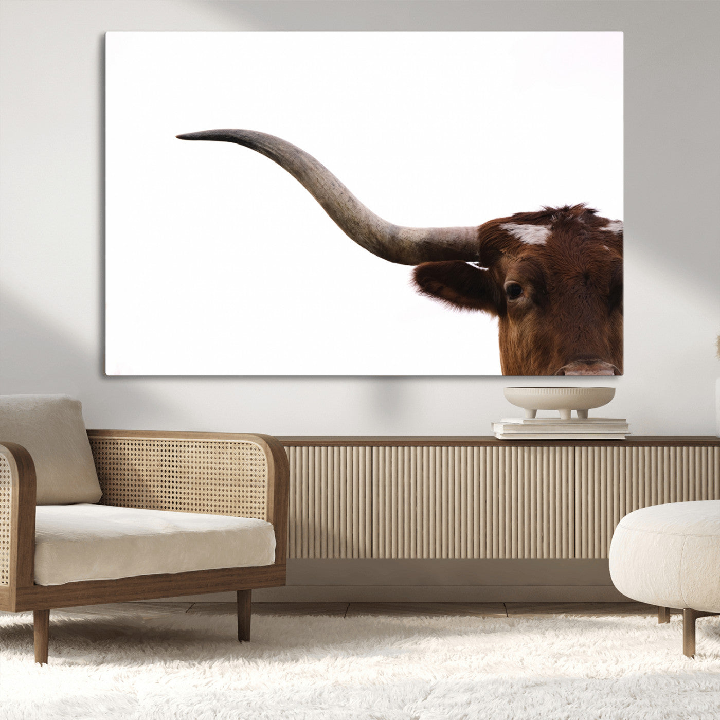Texas Longhorn Wall Art Canvas Print – Framed Minimalist Cow Art Picture Ranch Style Artwork for Home Office
