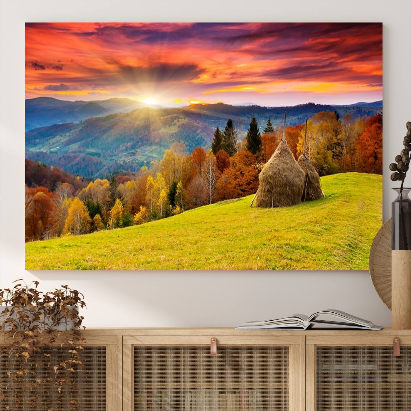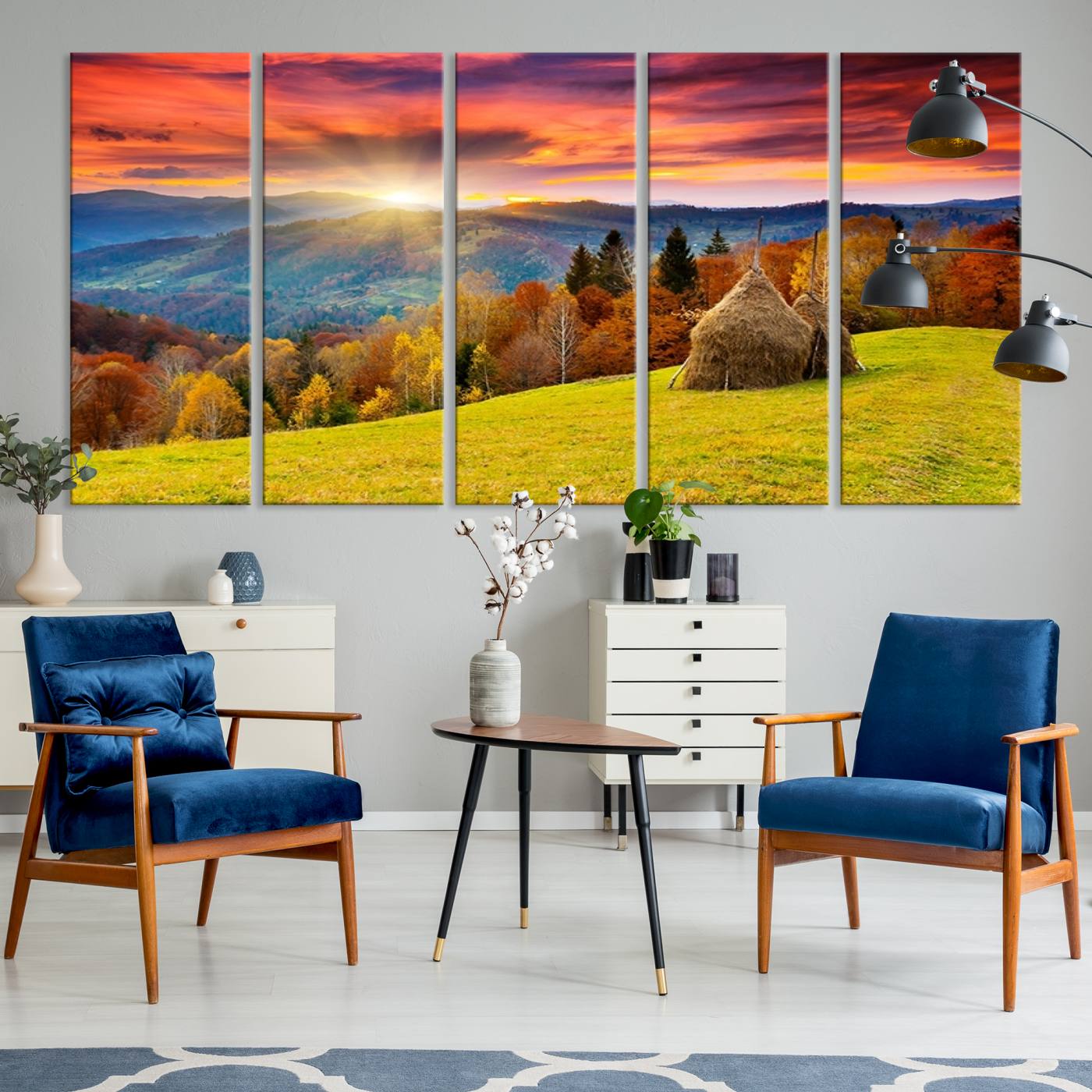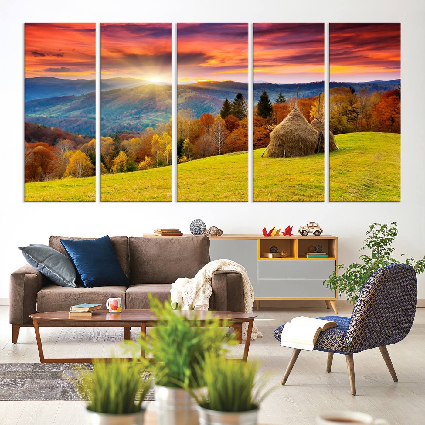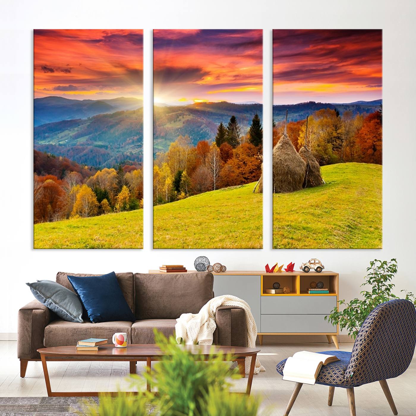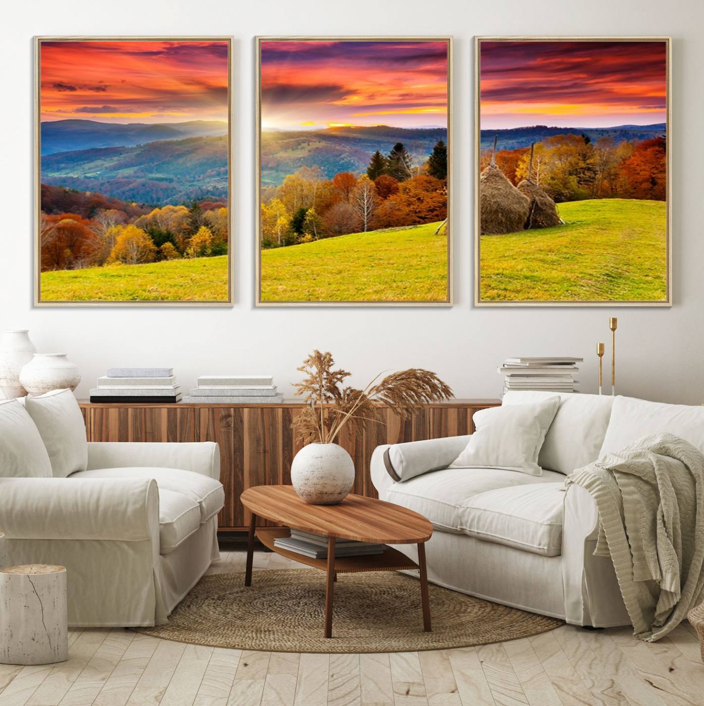 Impresión en lienzo de paisaje de arte de pared grande Todos los tonos de verde en el paisaje del atardecer