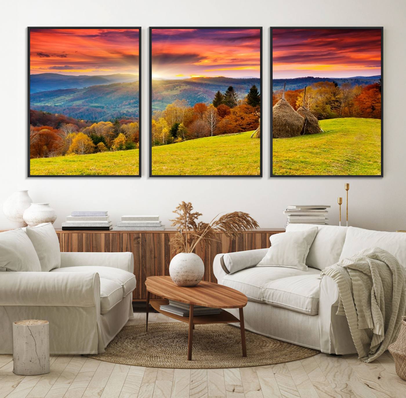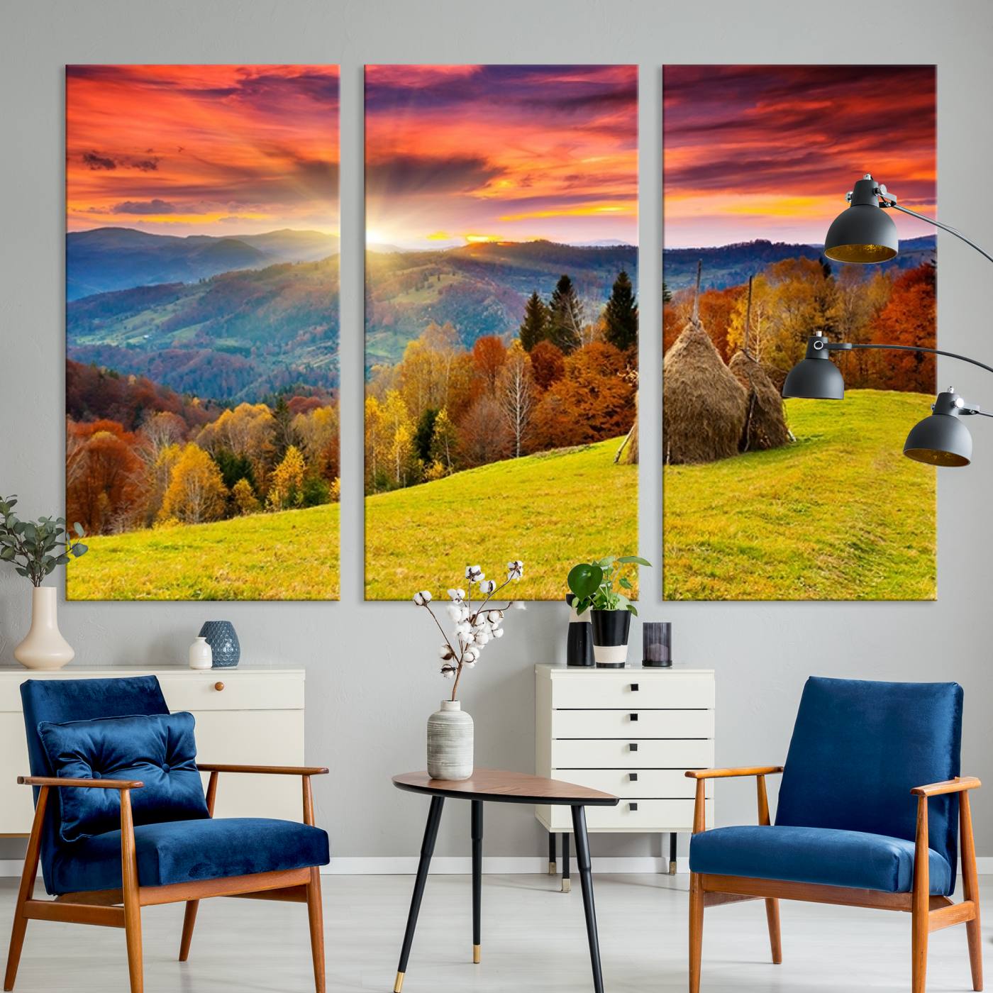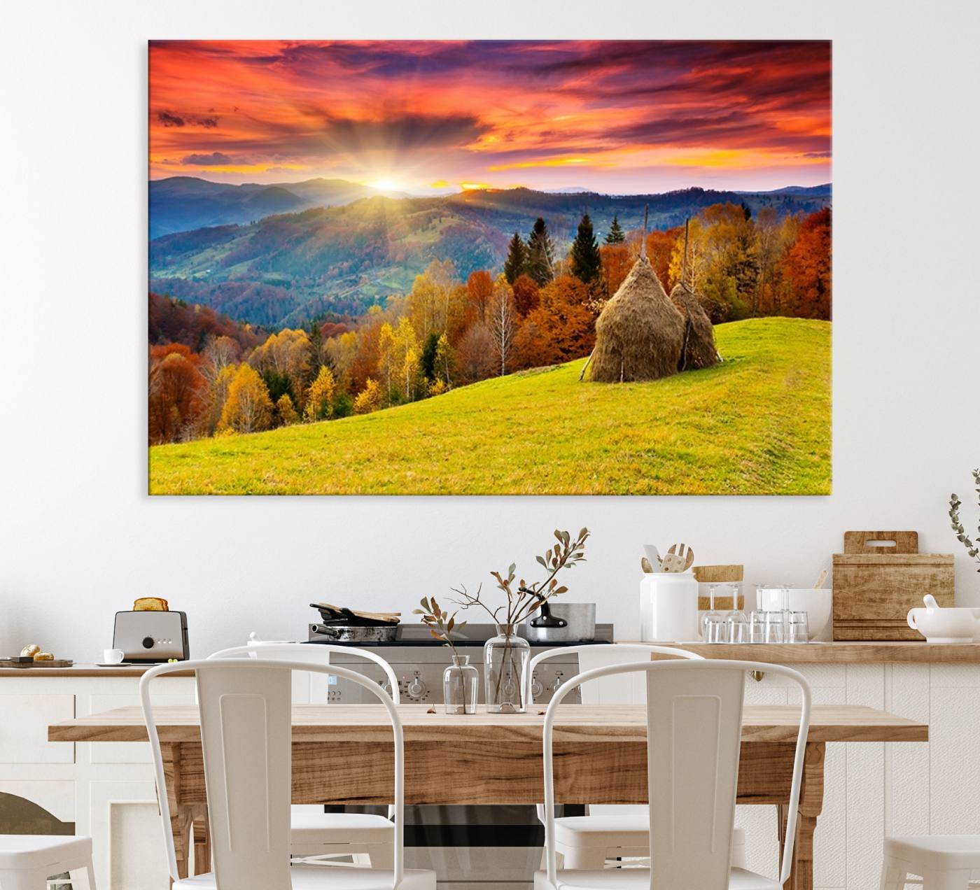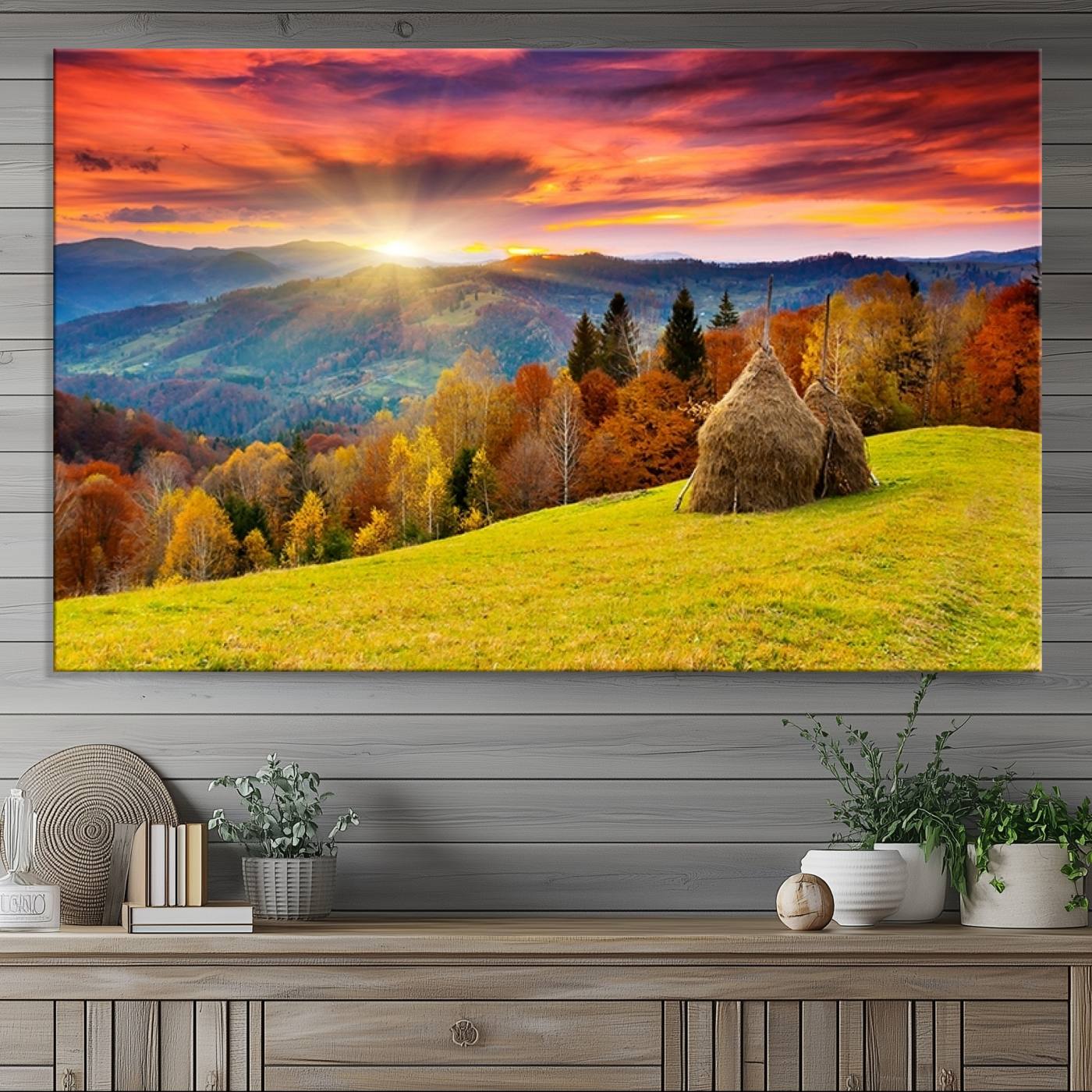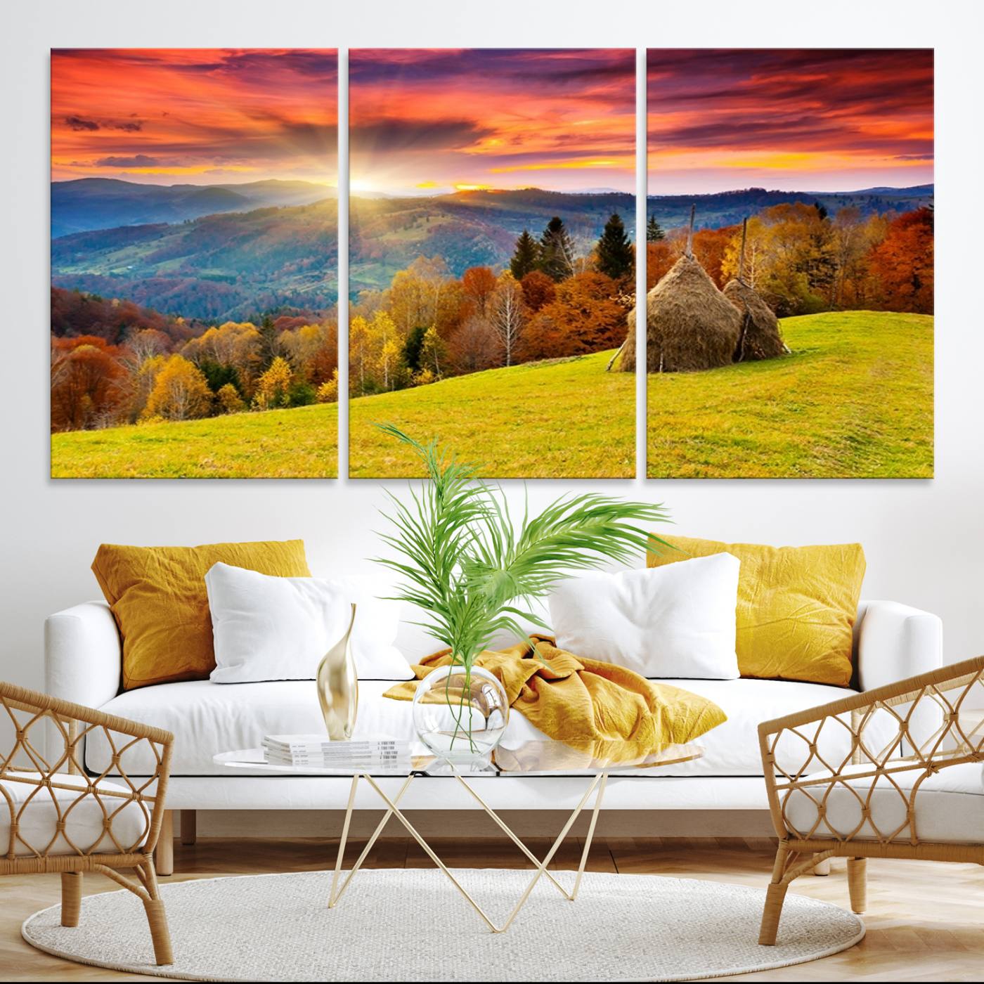Impresión en lienzo de paisaje de arte de pared grande Todos los tonos de verde en el paisaje del atardecer