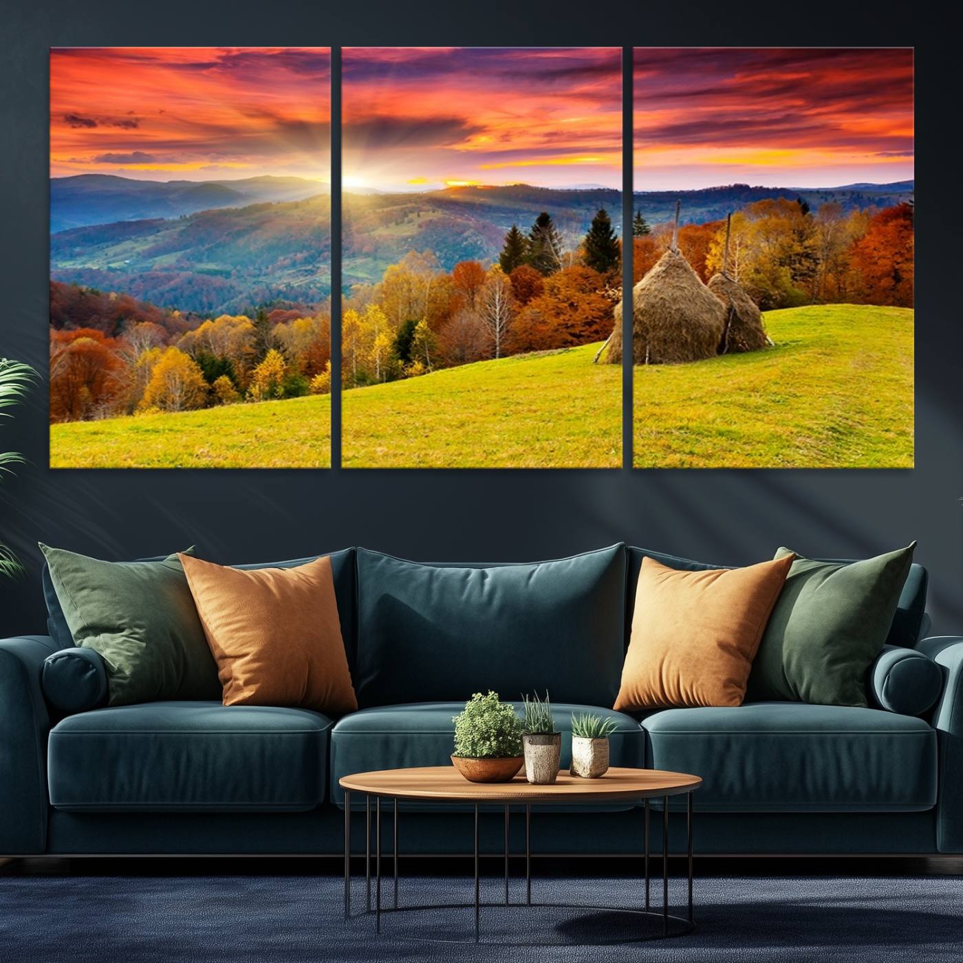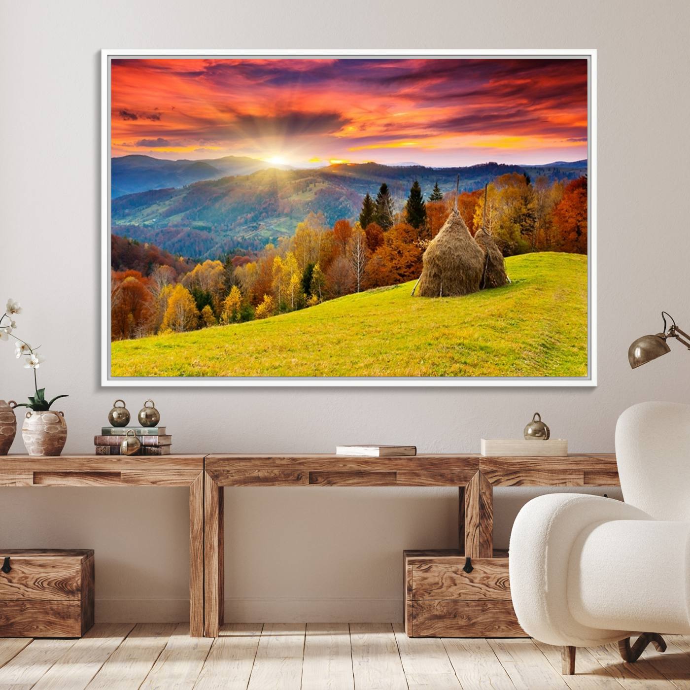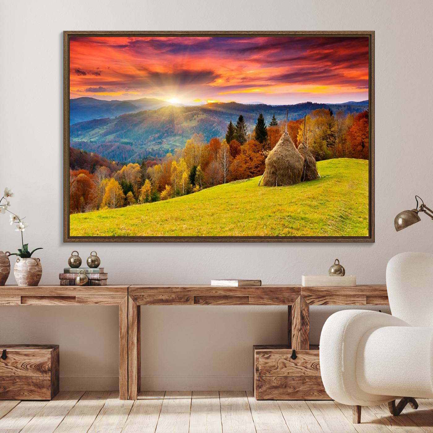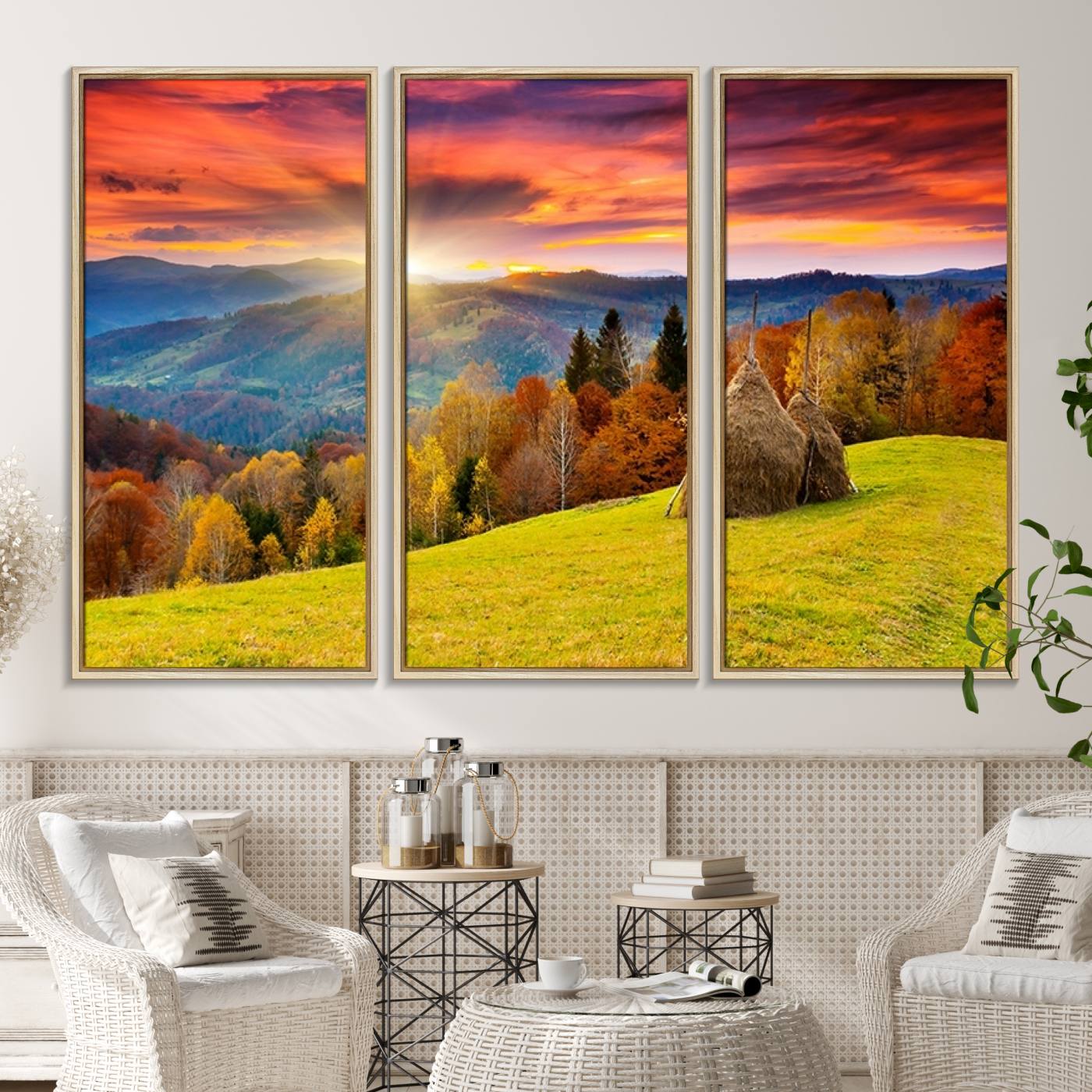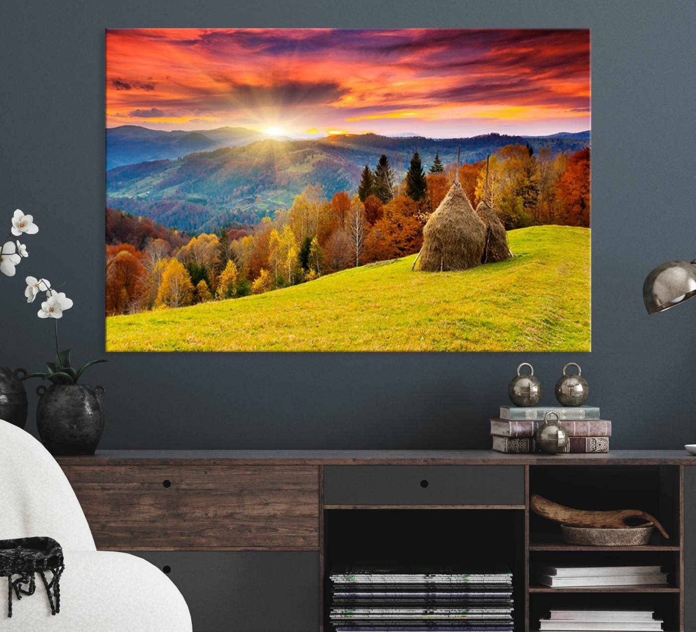 Impresión en lienzo de paisaje de arte de pared grande Todos los tonos de verde en el paisaje del atardecer