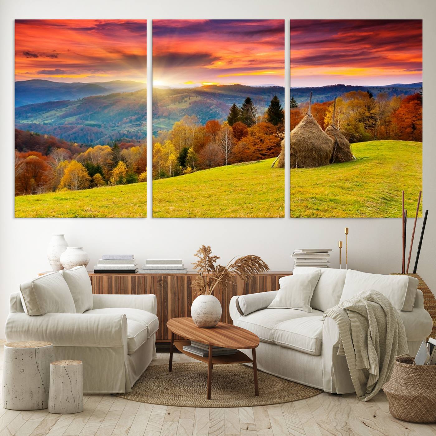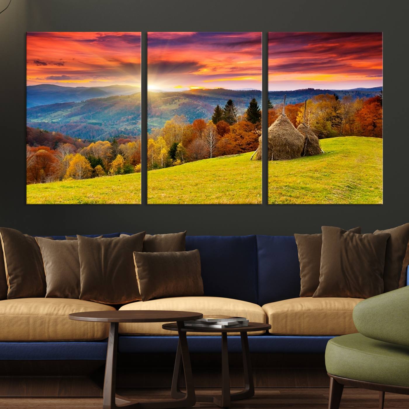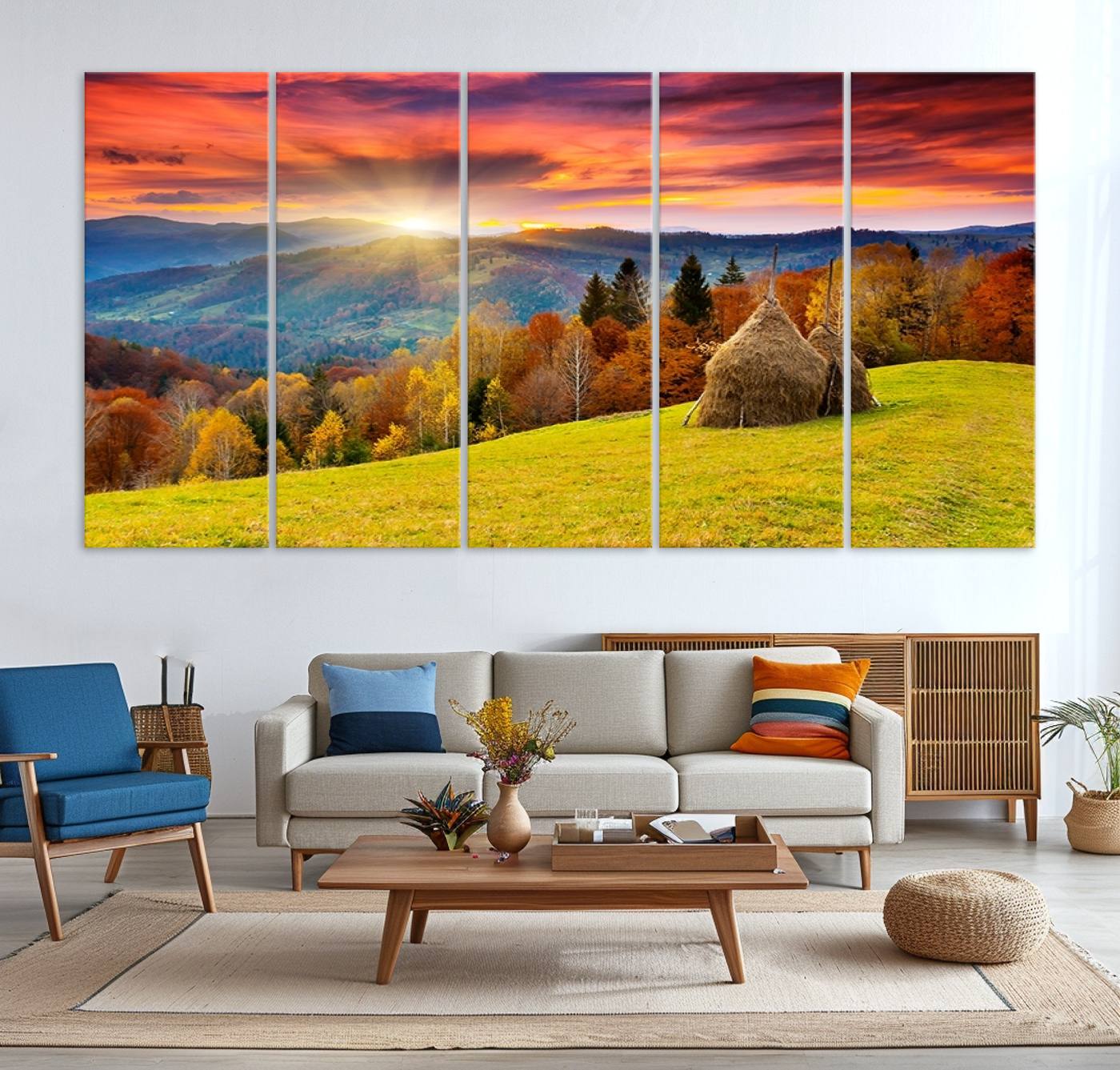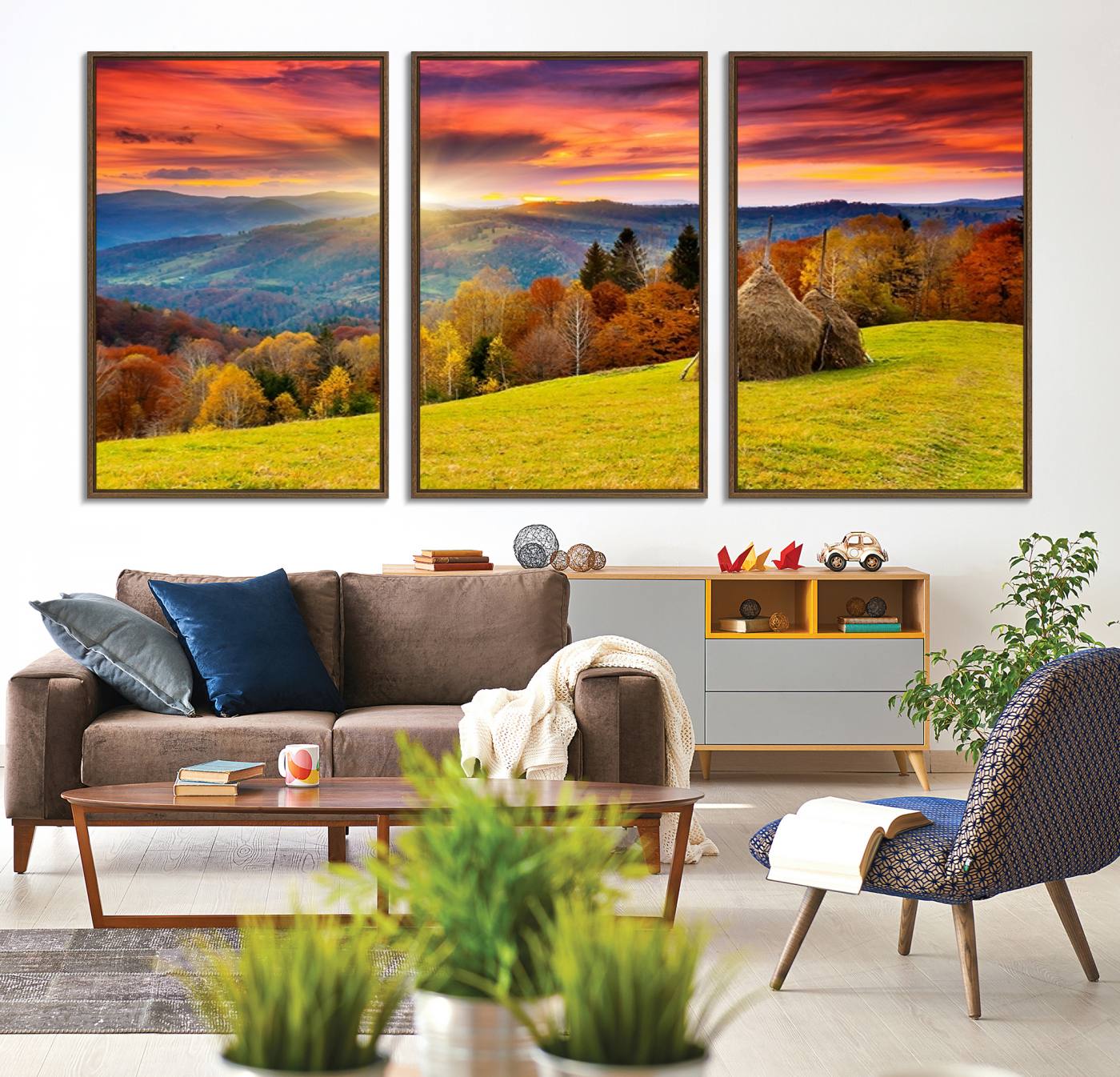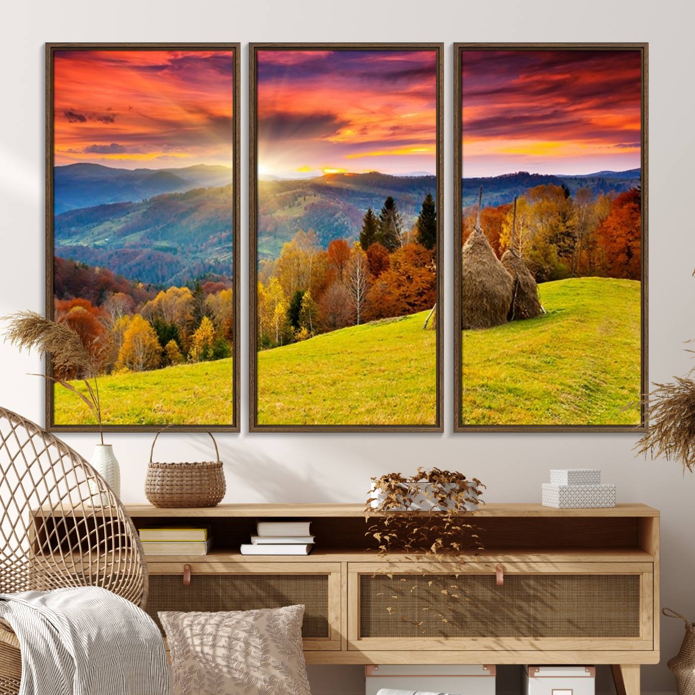 Impresión en lienzo de paisaje de arte de pared grande Todos los tonos de verde en el paisaje del atardecer