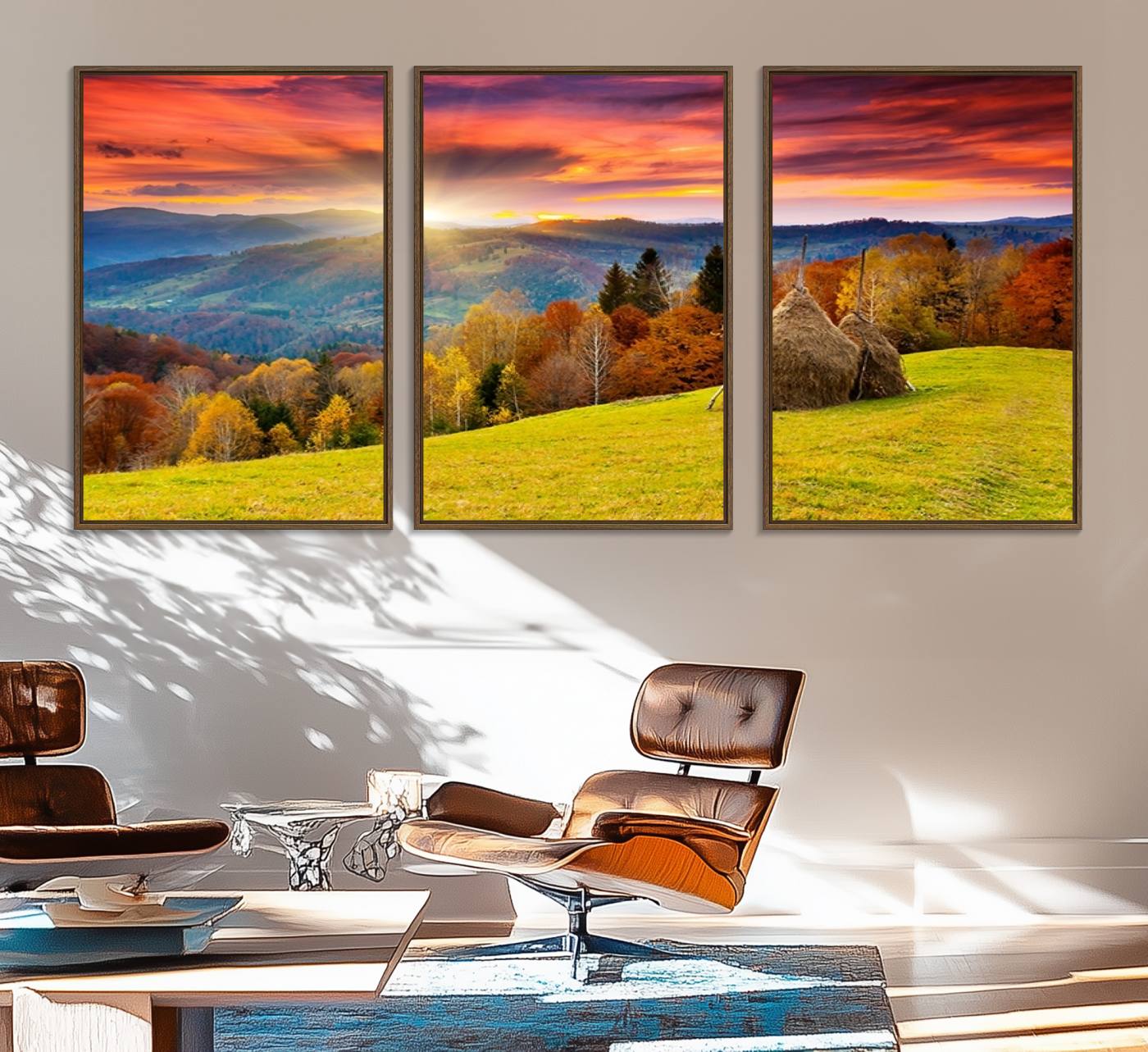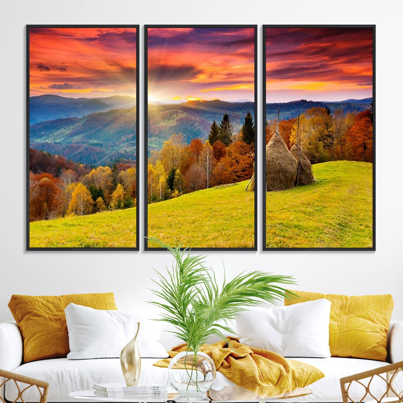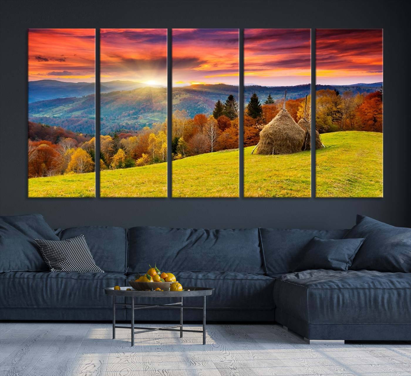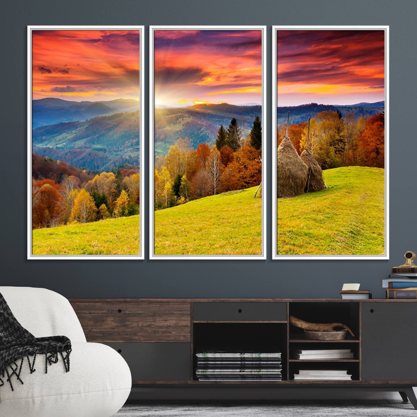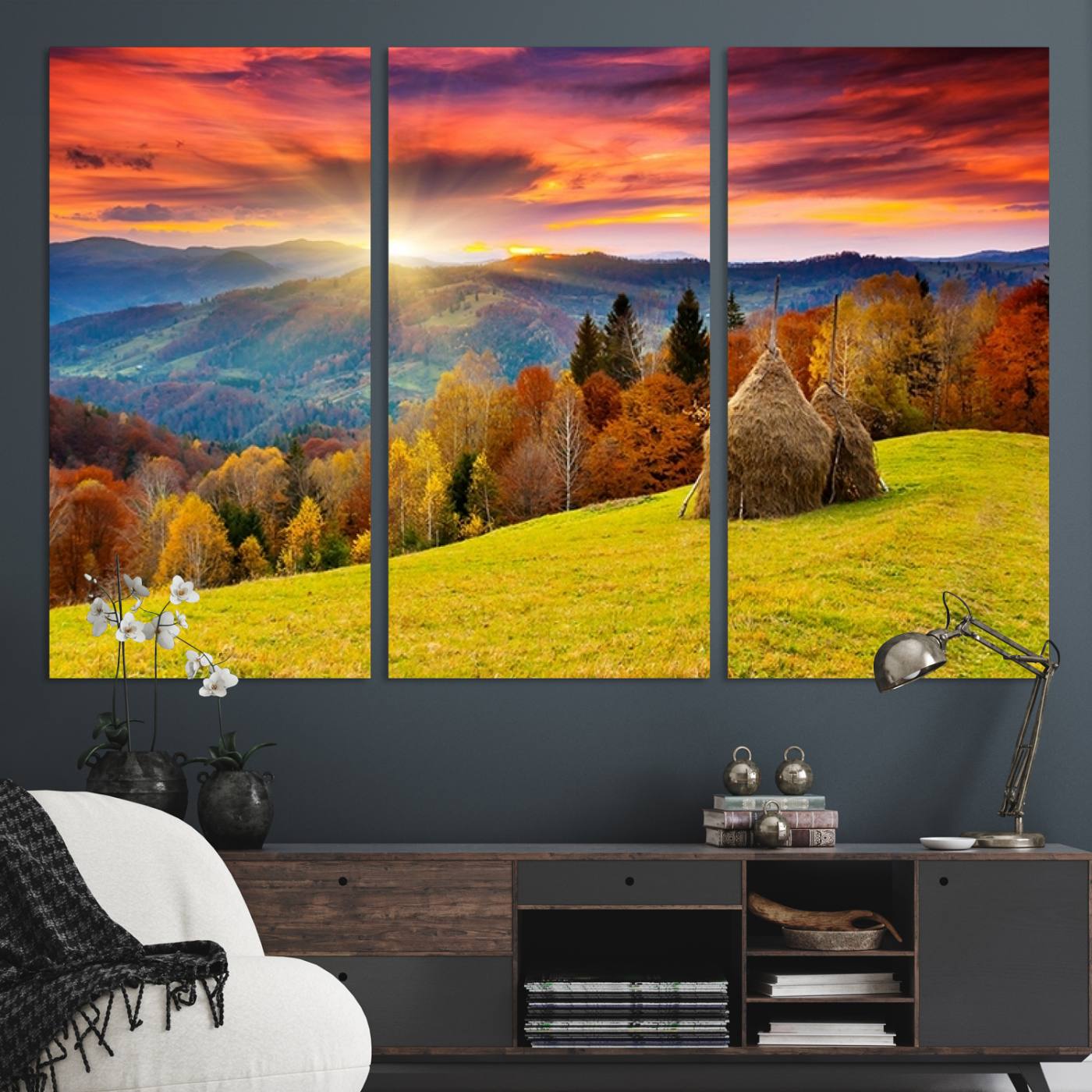 Impresión en lienzo de paisaje de arte de pared grande Todos los tonos de verde en el paisaje del atardecer