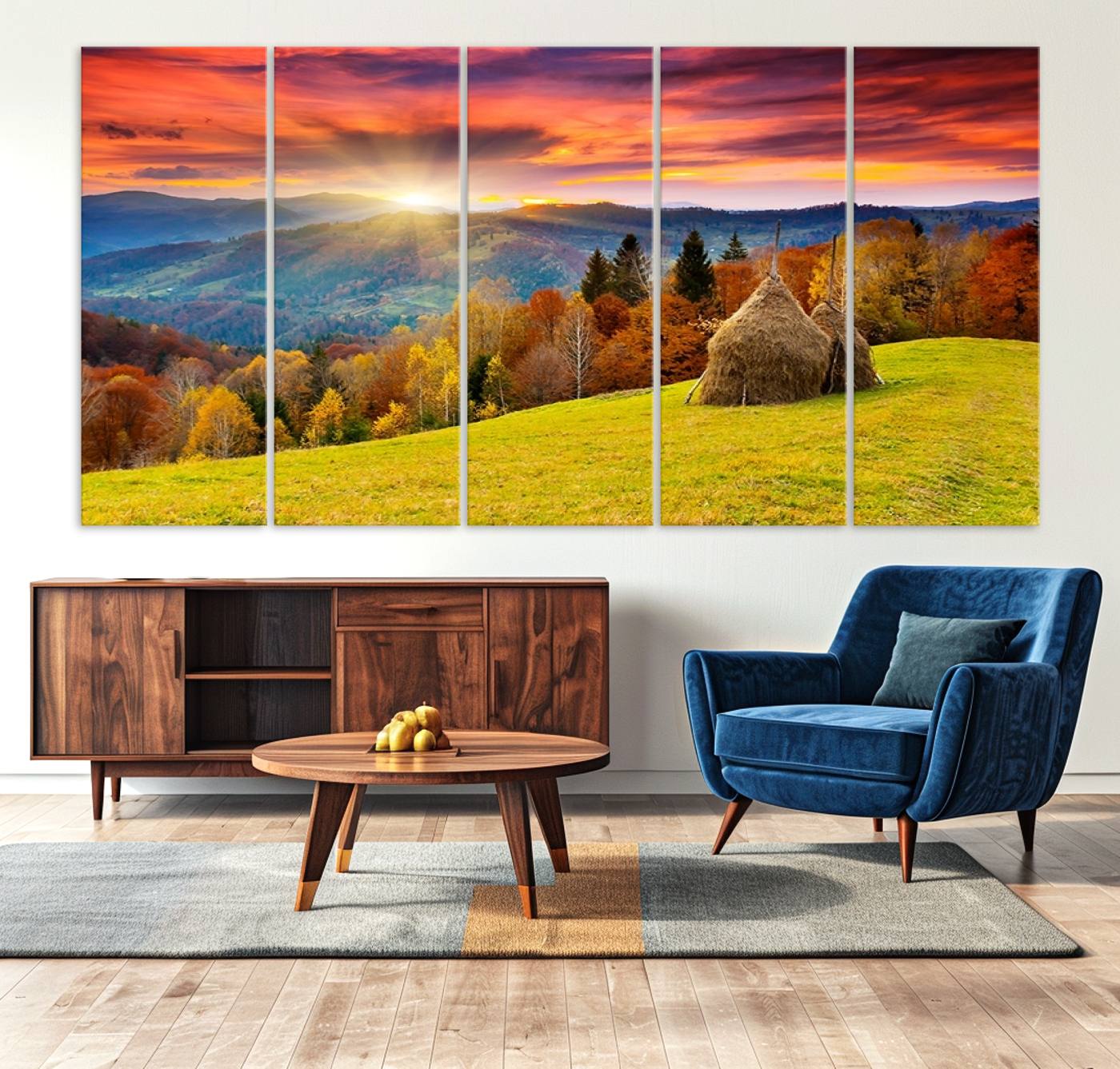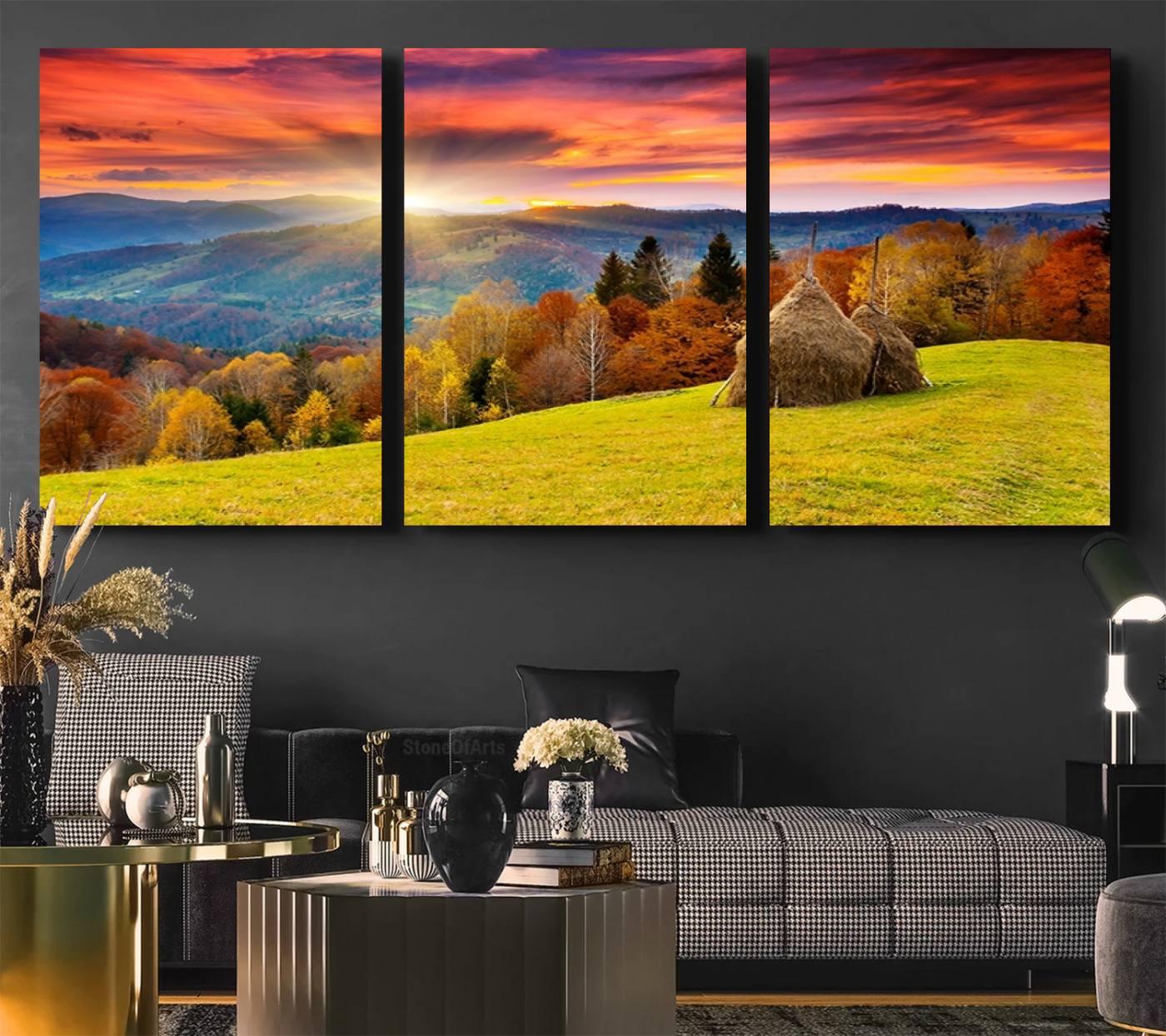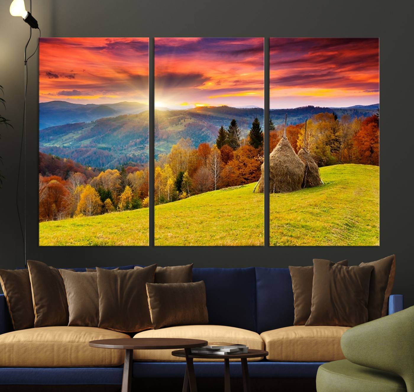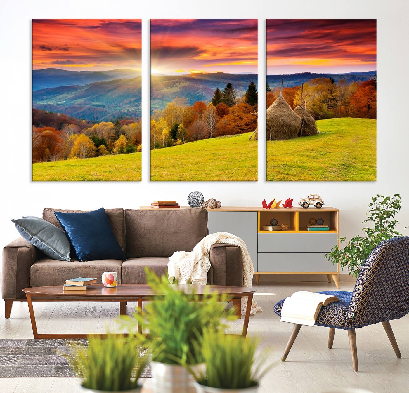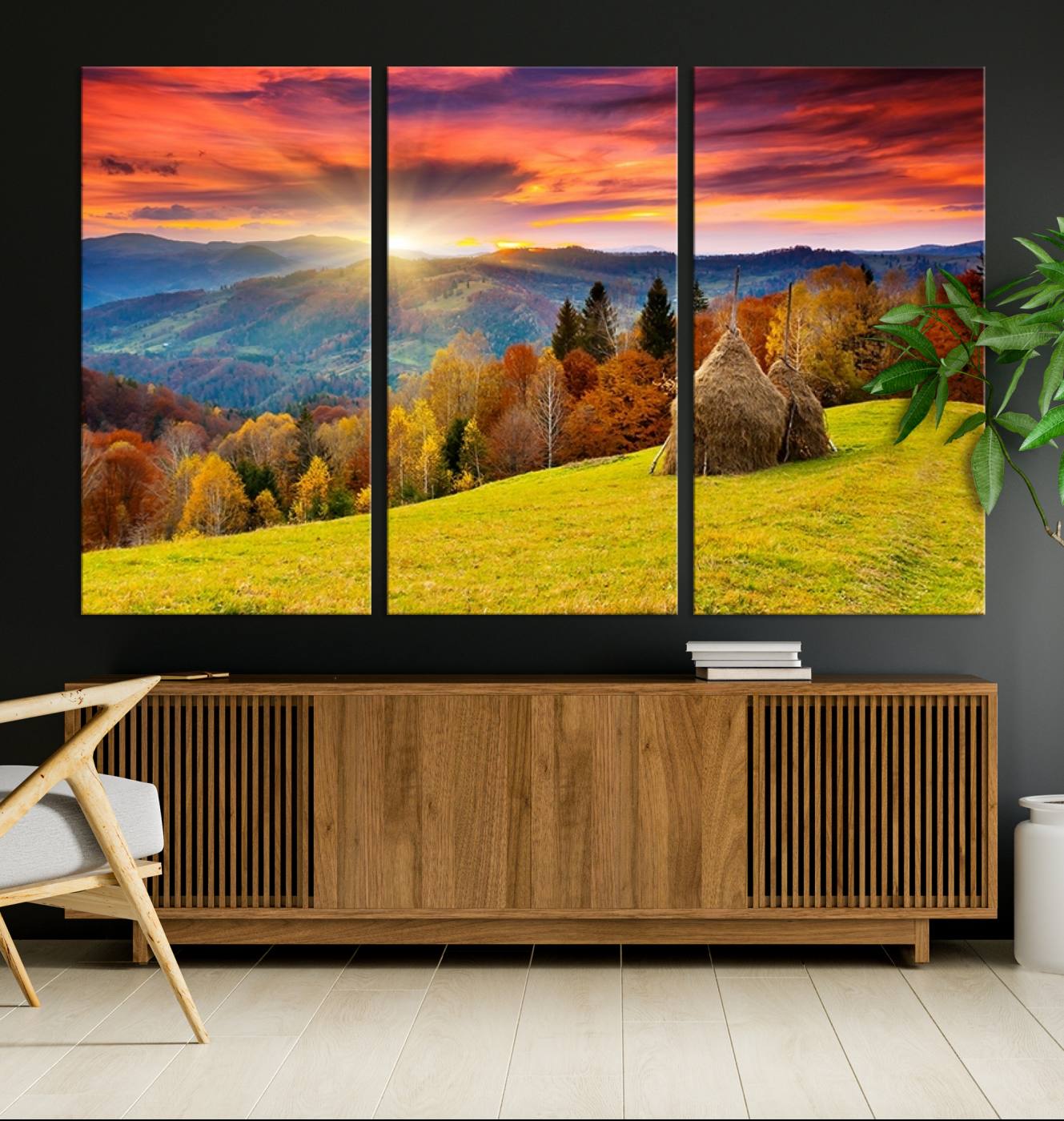 Impresión en lienzo de paisaje de arte de pared grande Todos los tonos de verde en el paisaje del atardecer