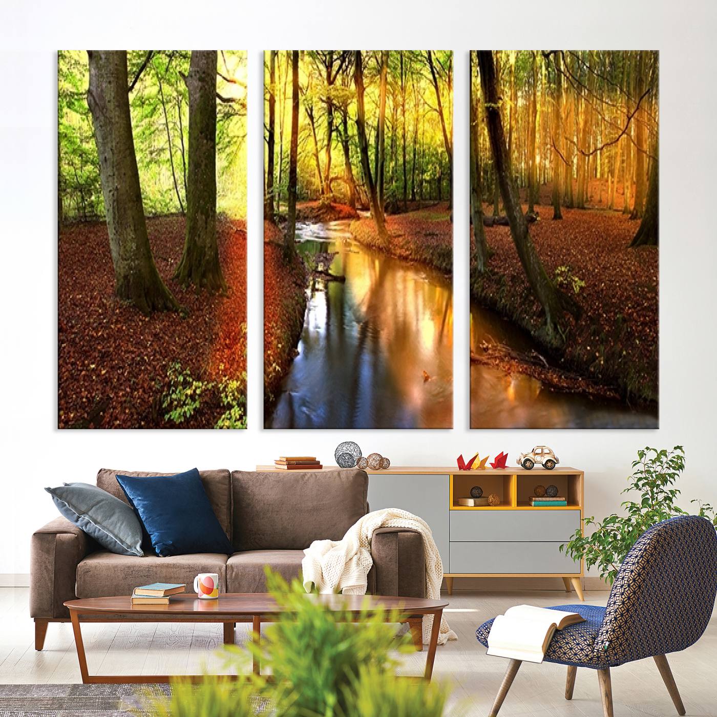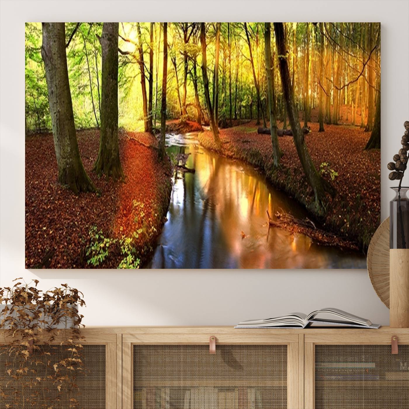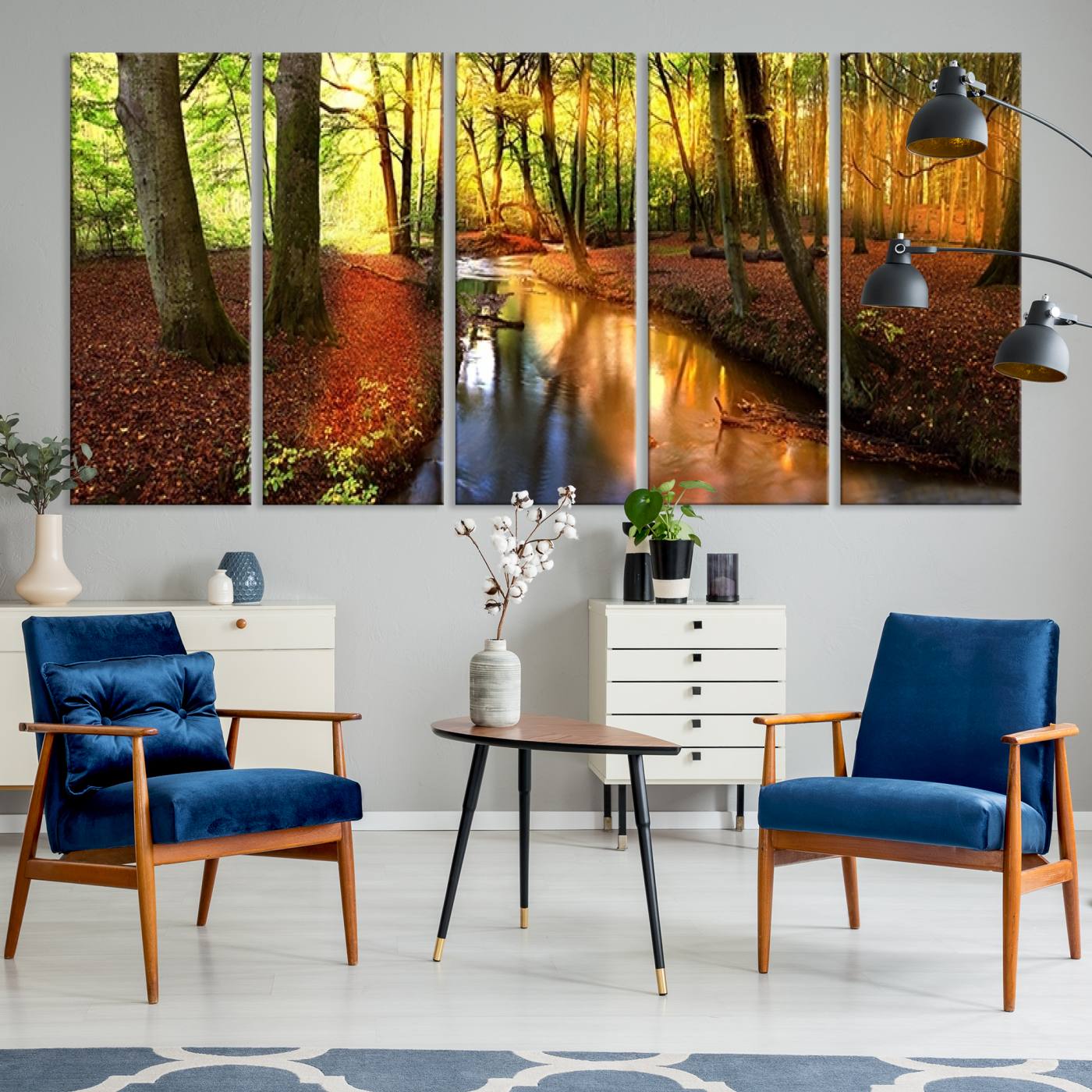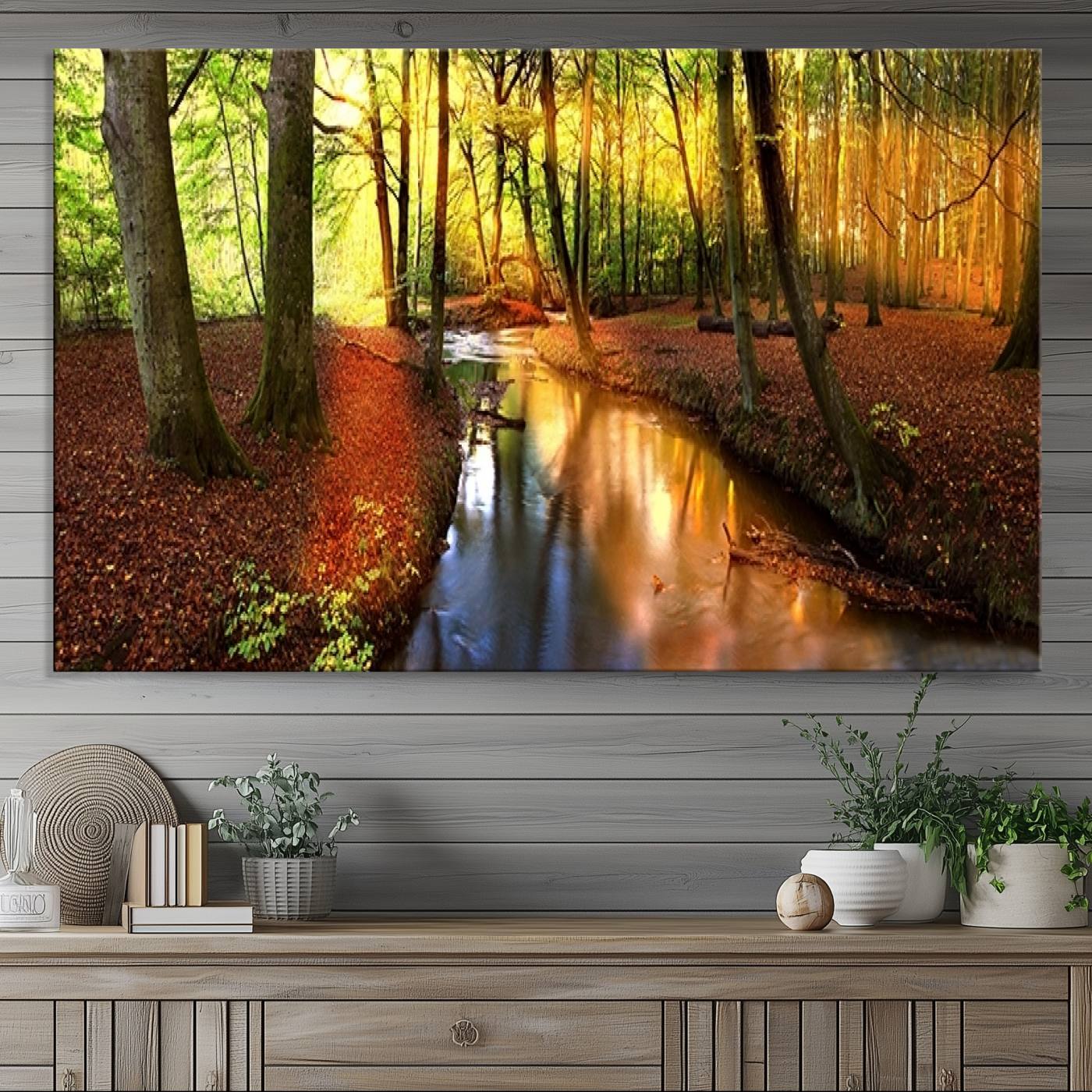 Impresión en lienzo de paisaje de arte de pared grande - Pequeño río dentro de un bosque colorido
