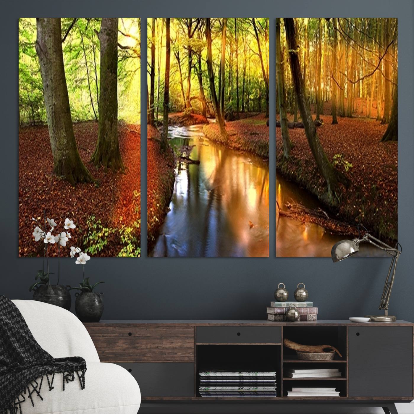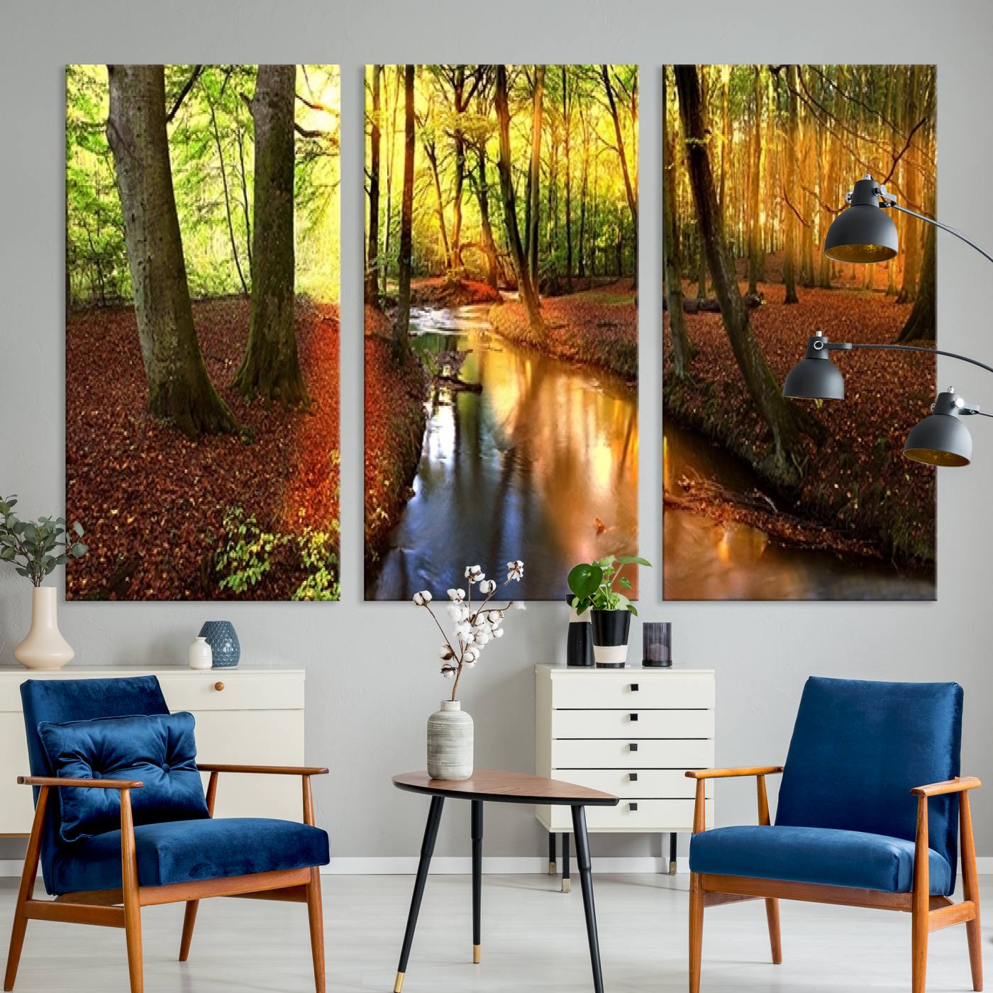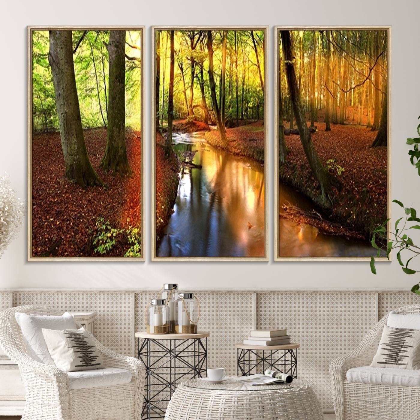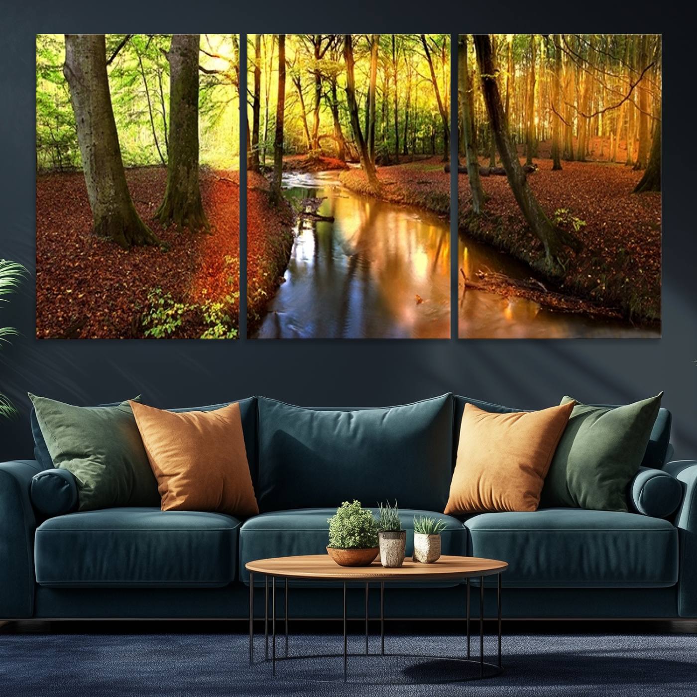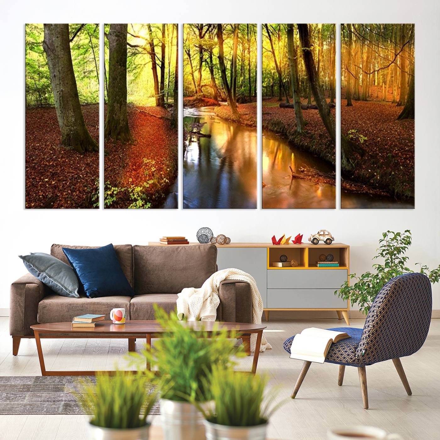 Impresión en lienzo de paisaje de arte de pared grande - Pequeño río dentro de un bosque colorido