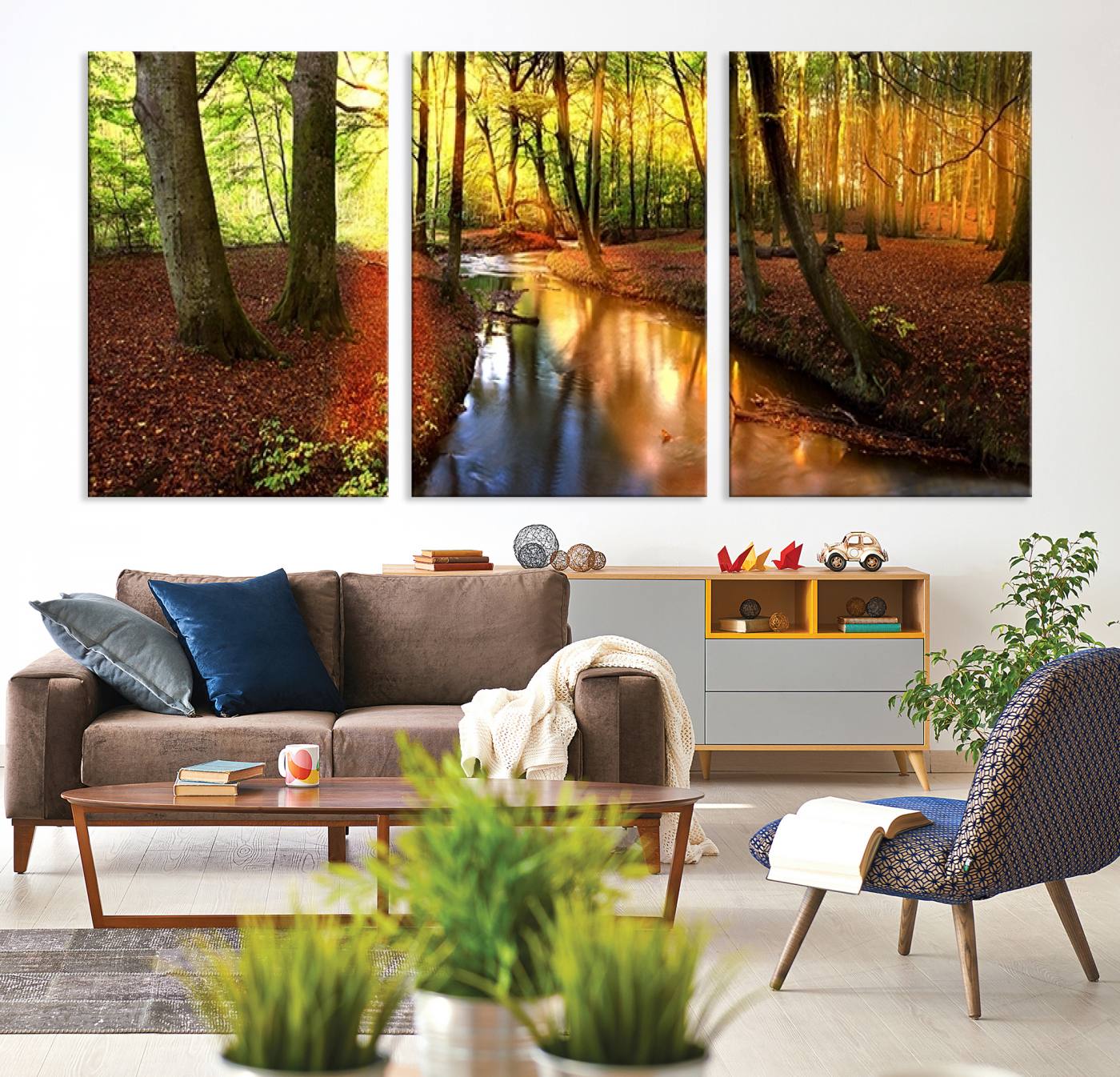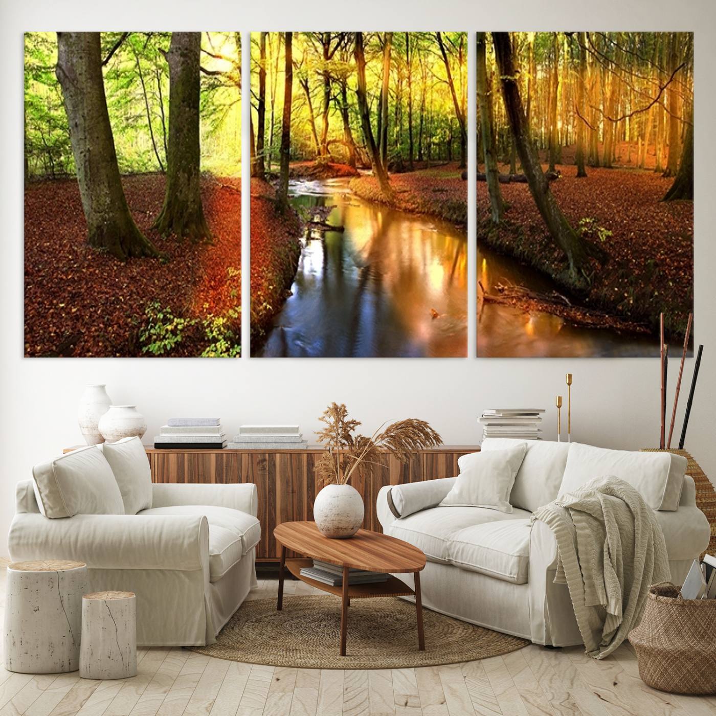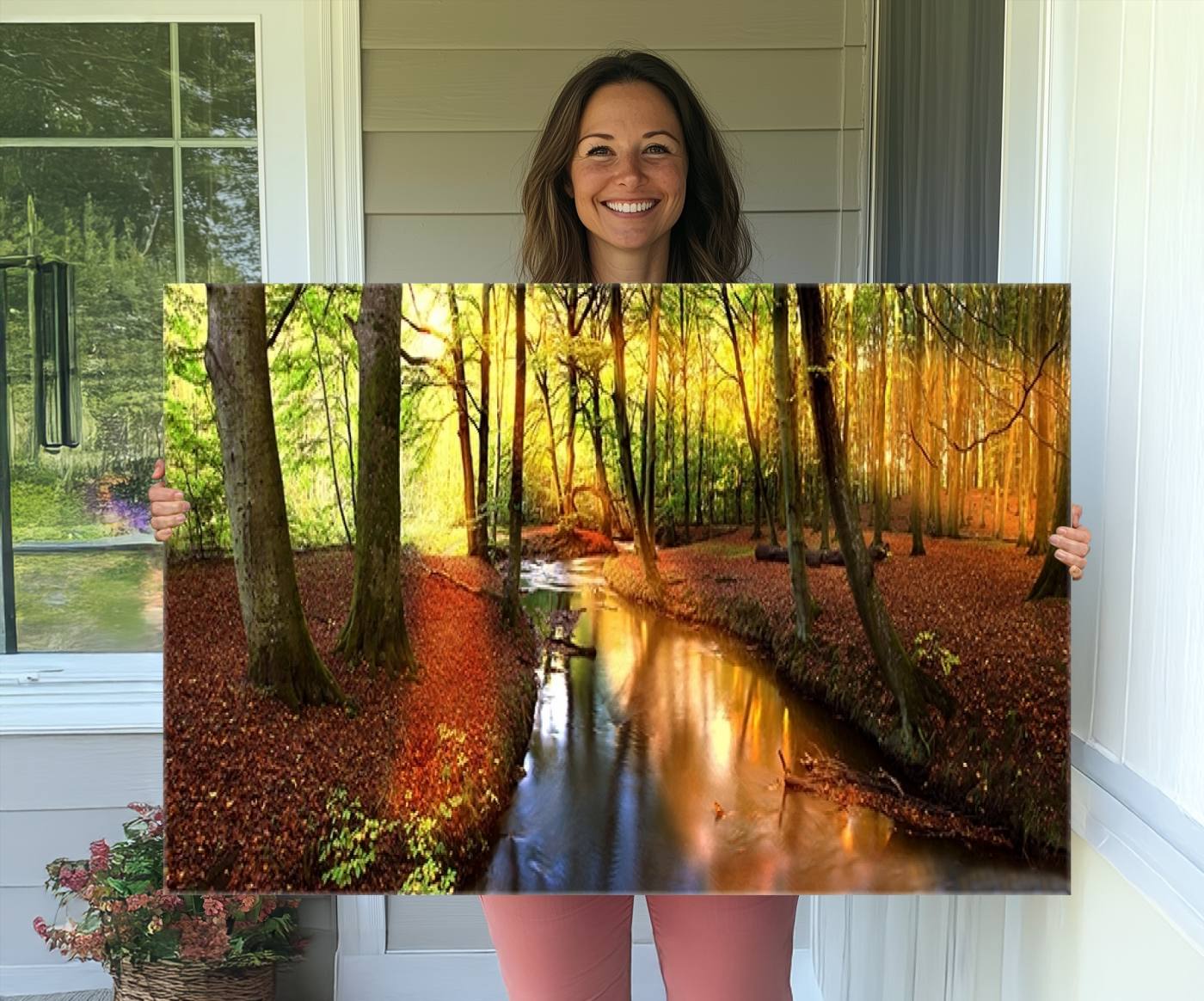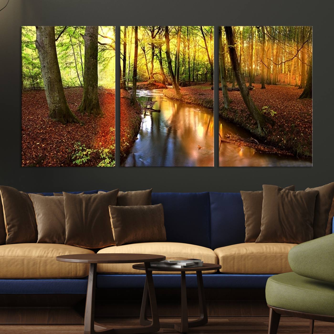 Impresión en lienzo de paisaje de arte de pared grande - Pequeño río dentro de un bosque colorido