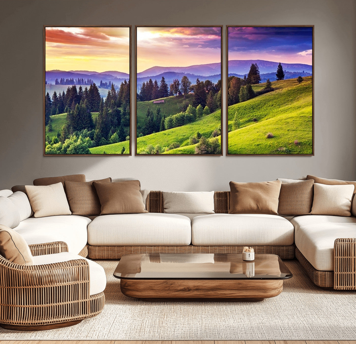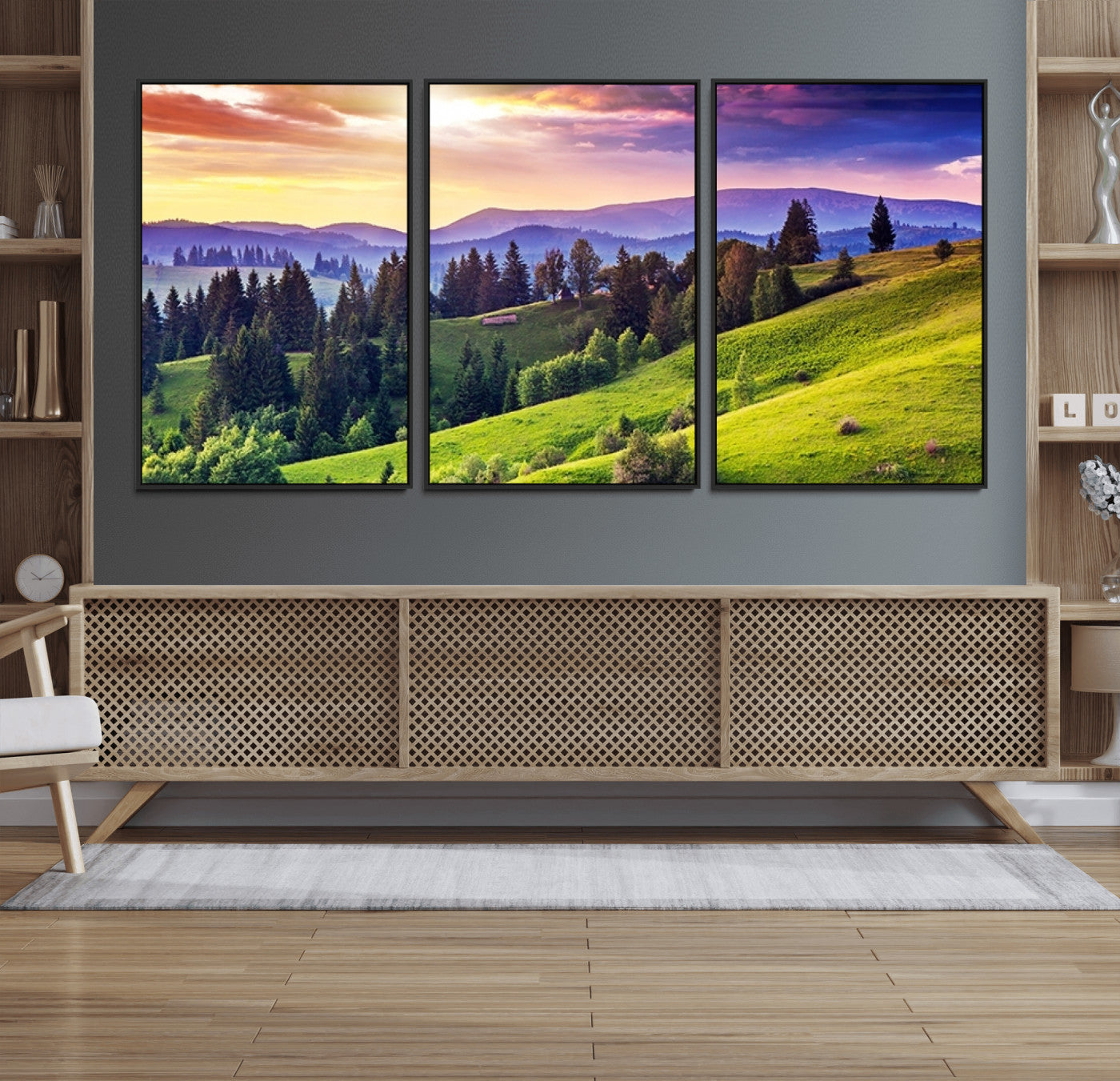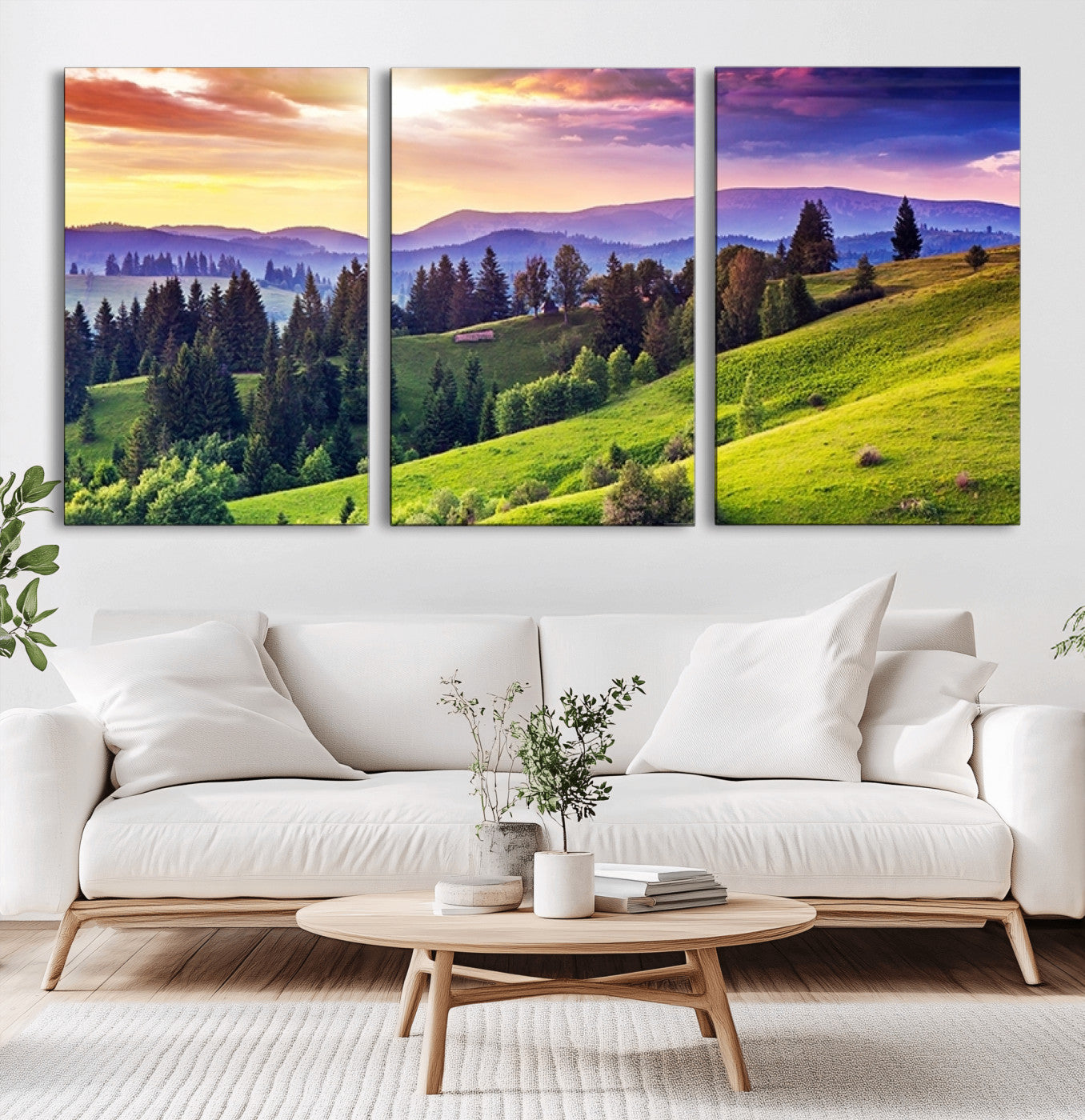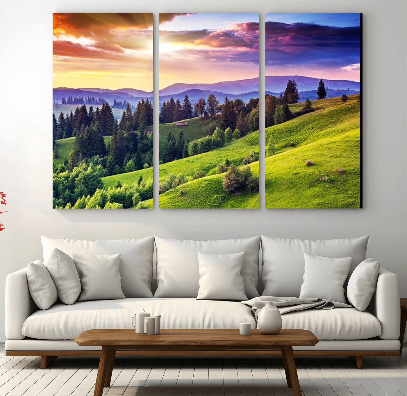 Impresión de lienzo de paisaje de arte de pared grande - Bosque disperso en la montaña al atardecer
