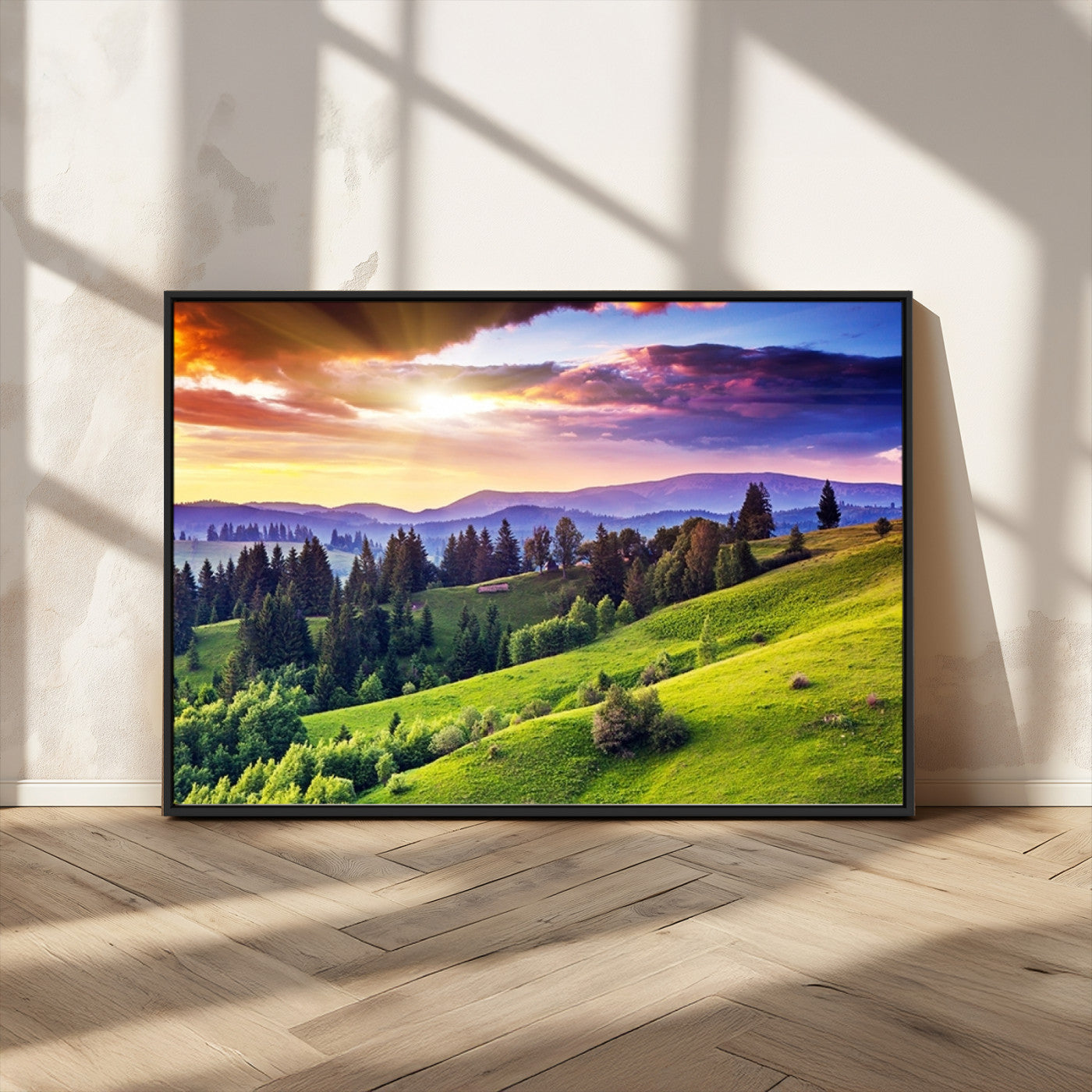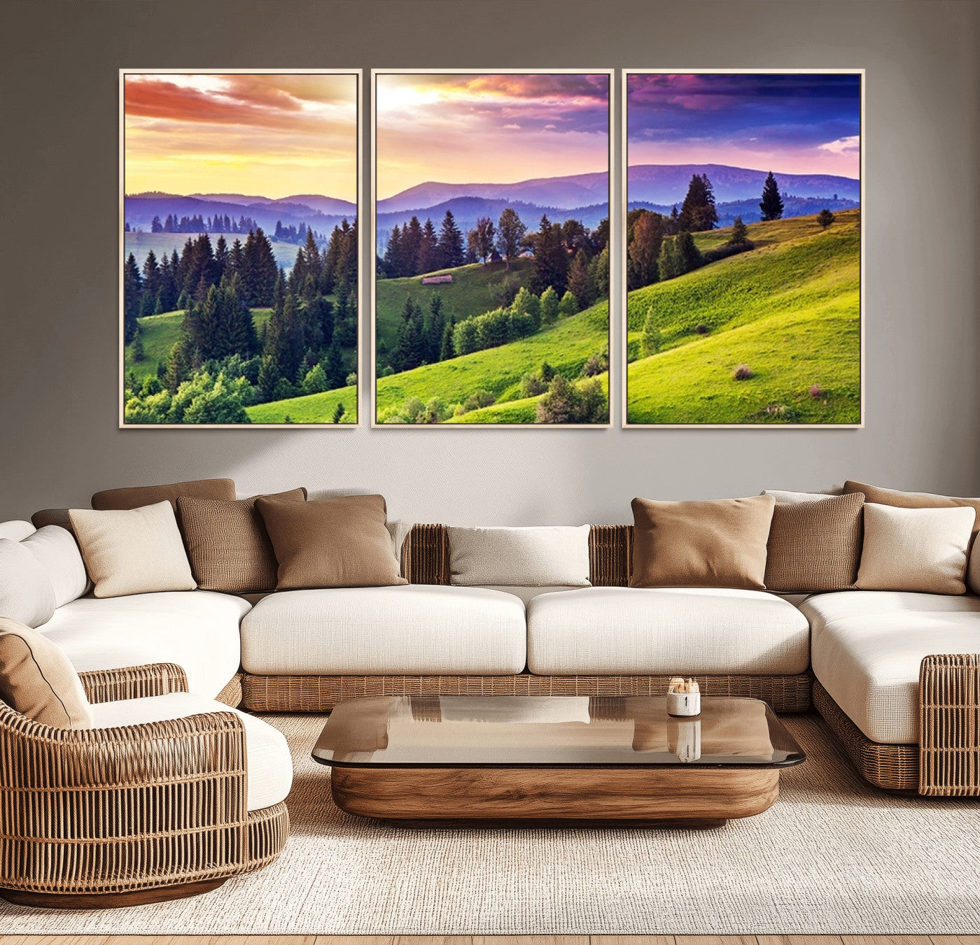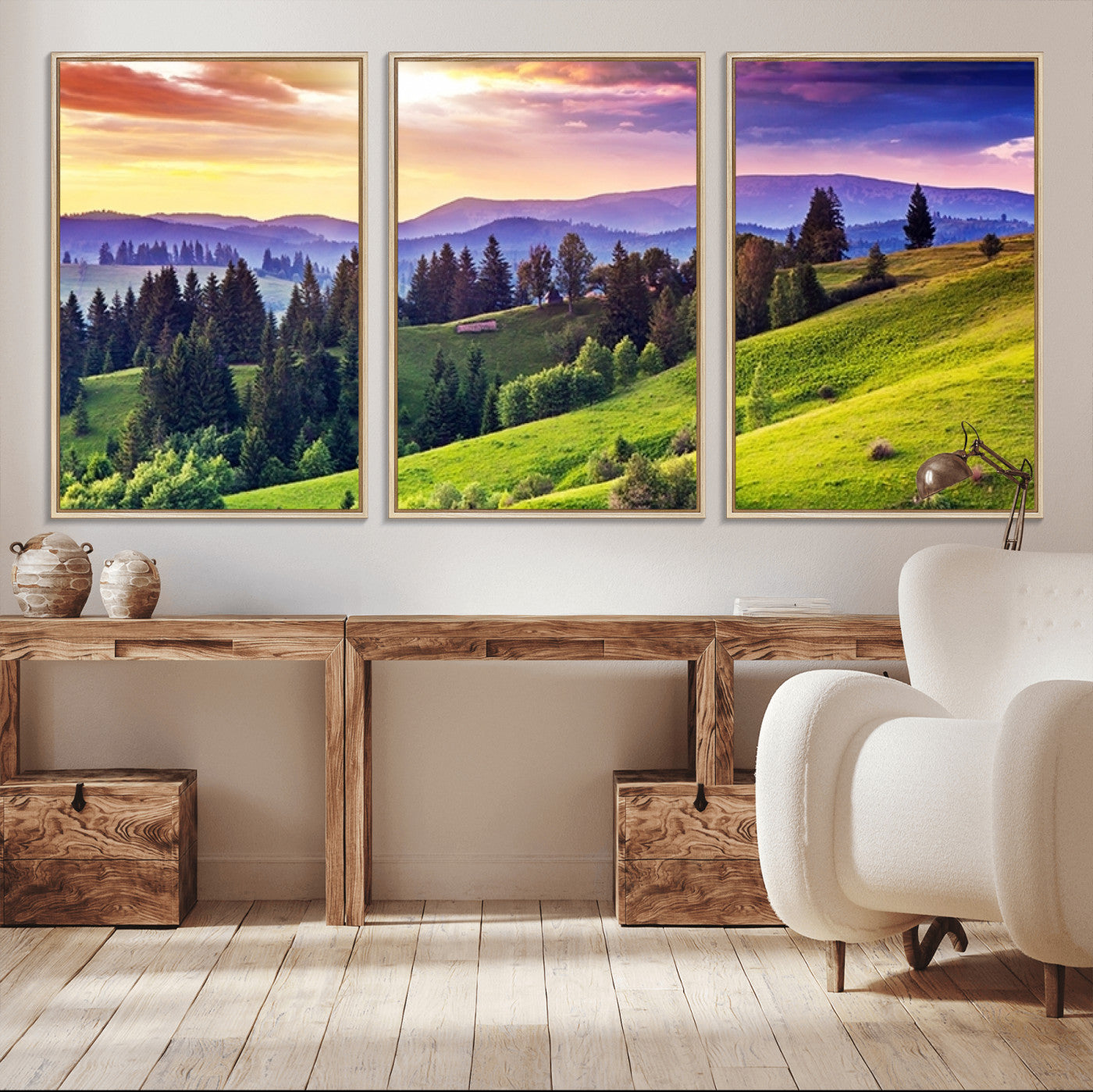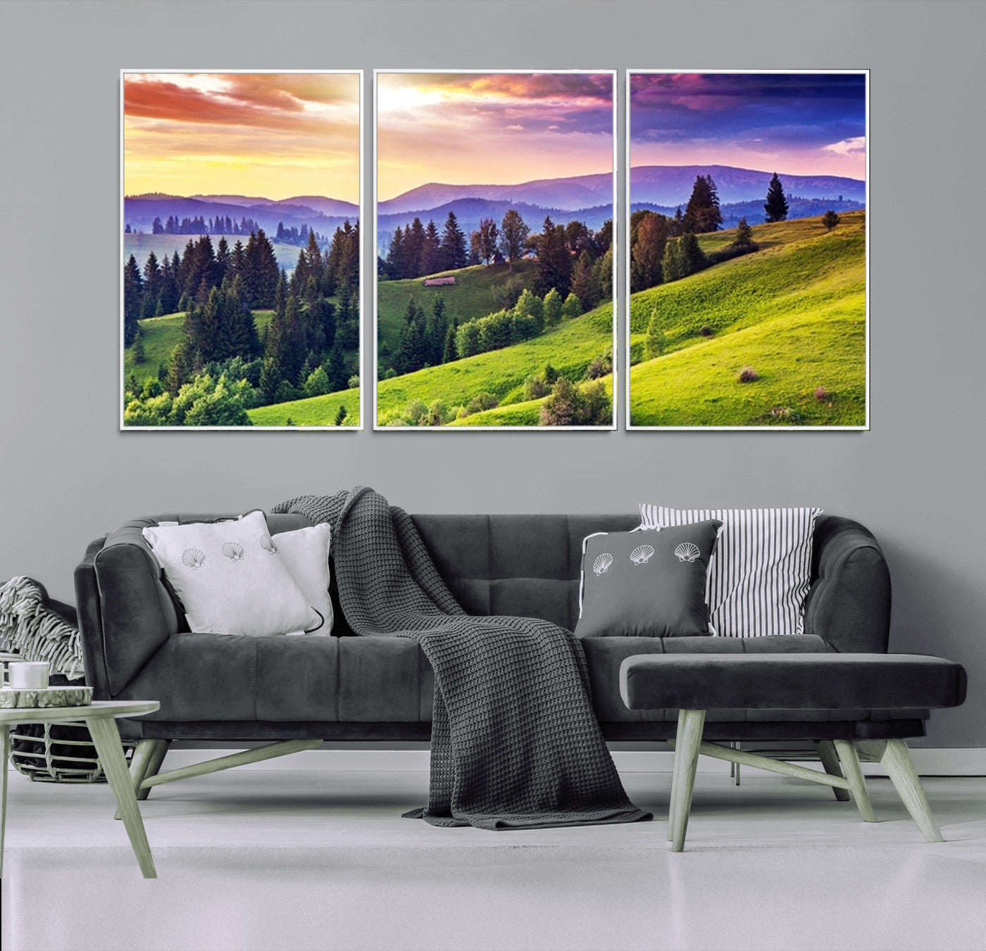 Impresión de lienzo de paisaje de arte de pared grande - Bosque disperso en la montaña al atardecer