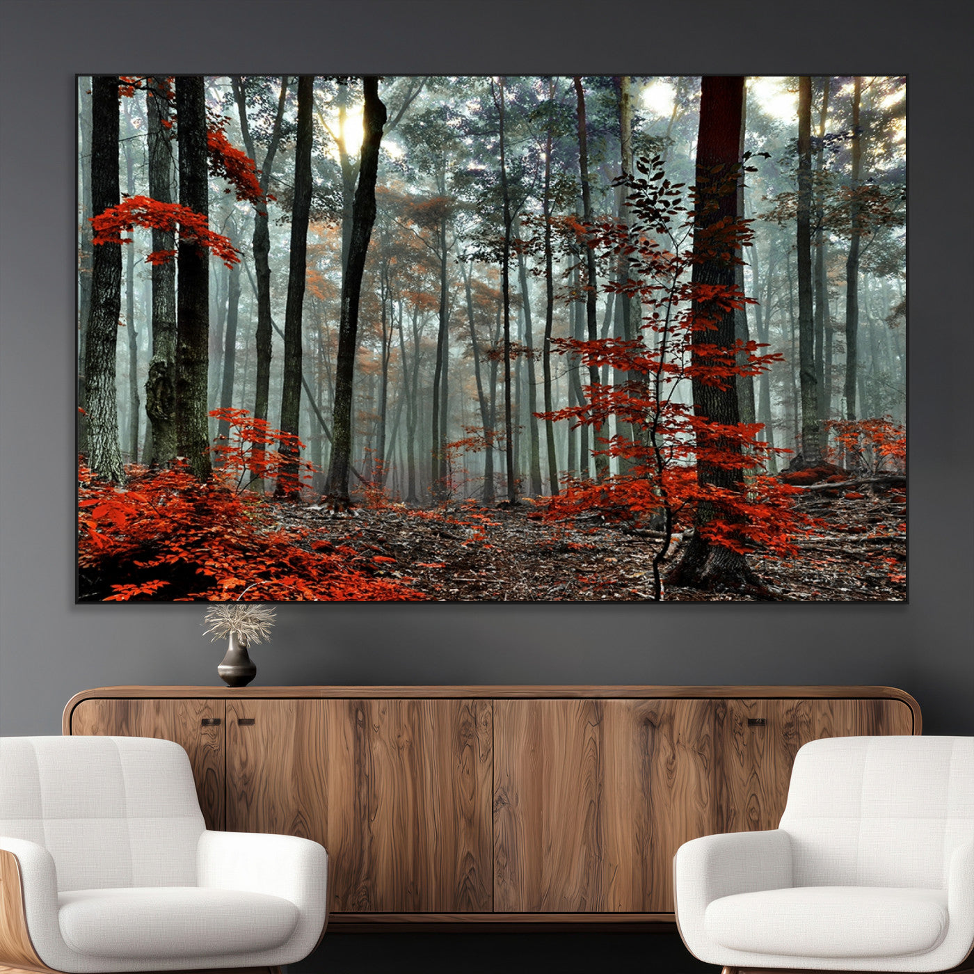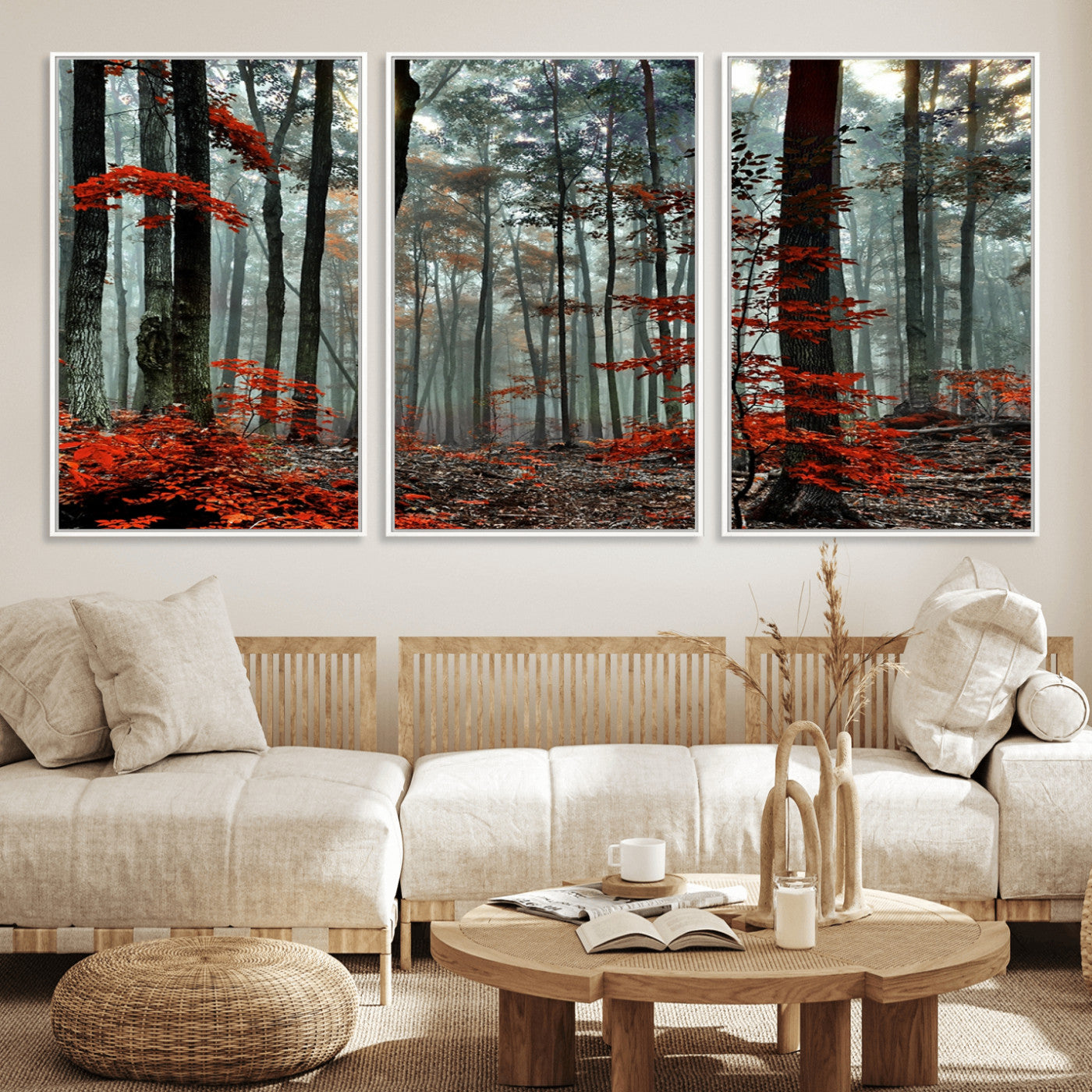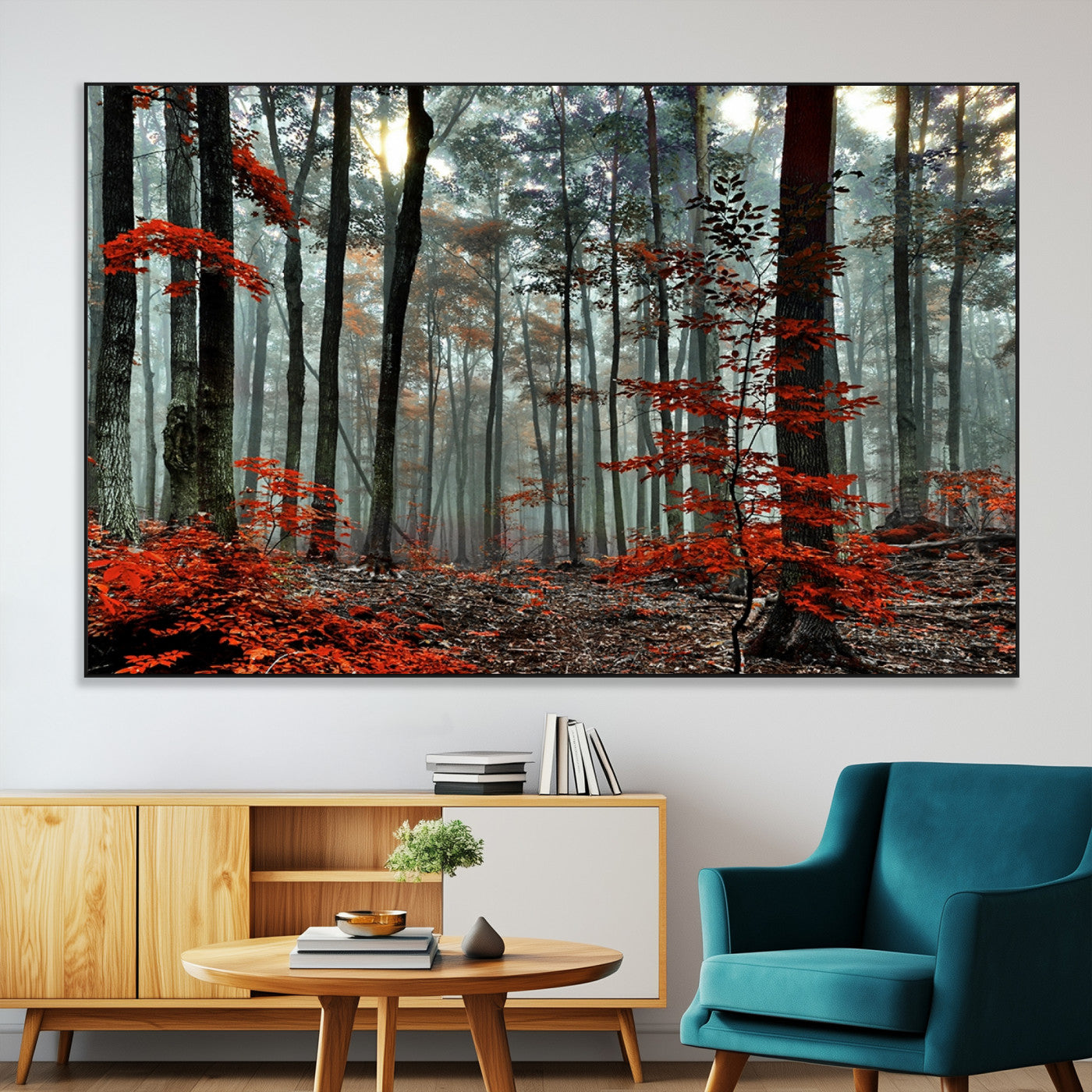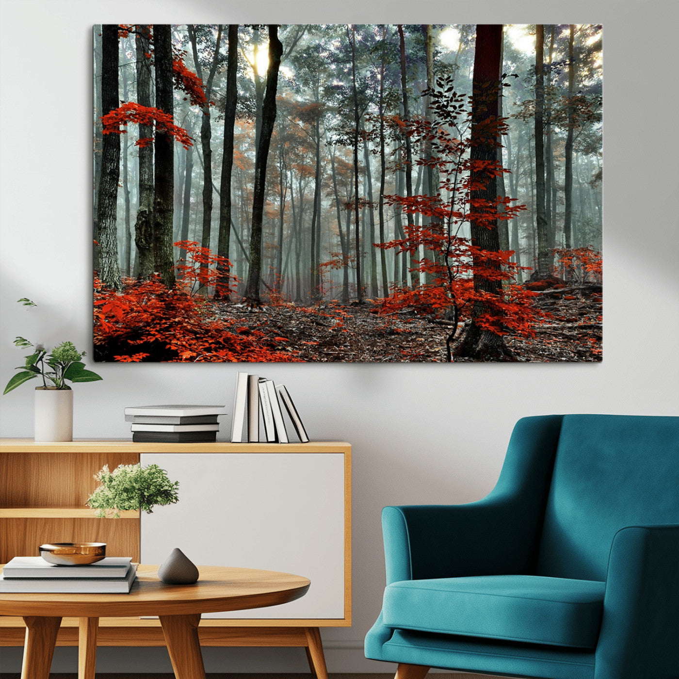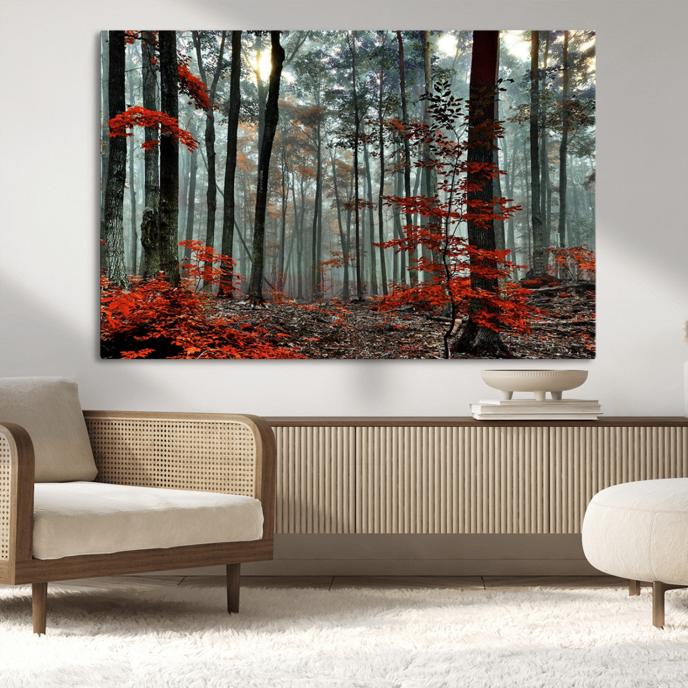 Arbres de la forêt rouge, art mural, impression sur toile, œuvre d'art murale