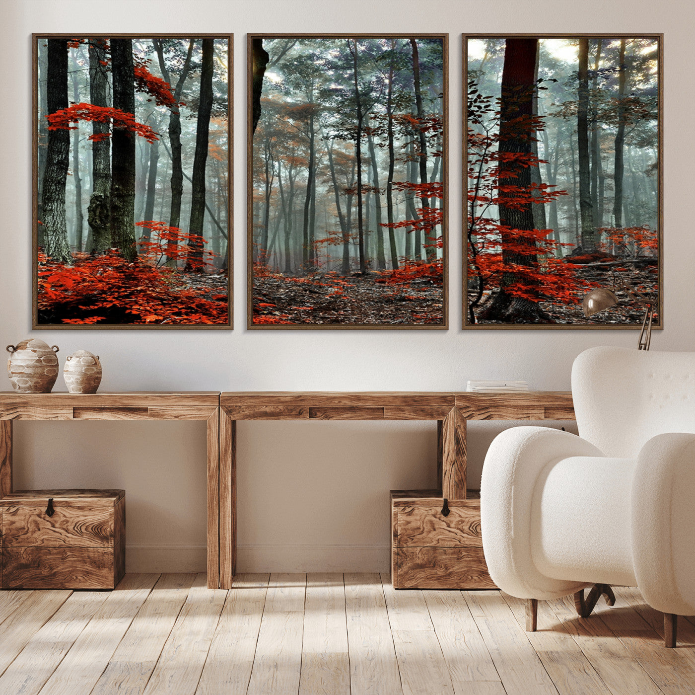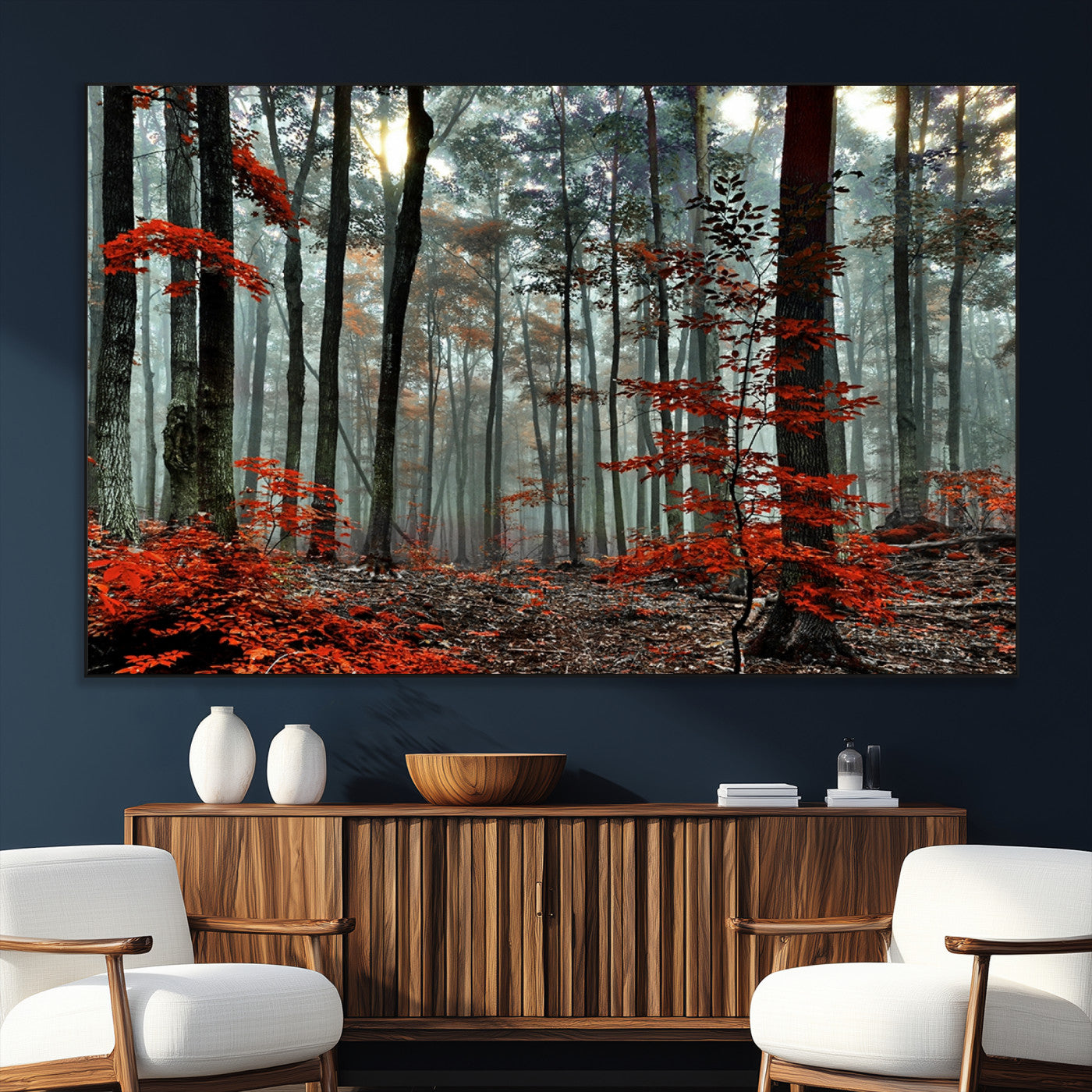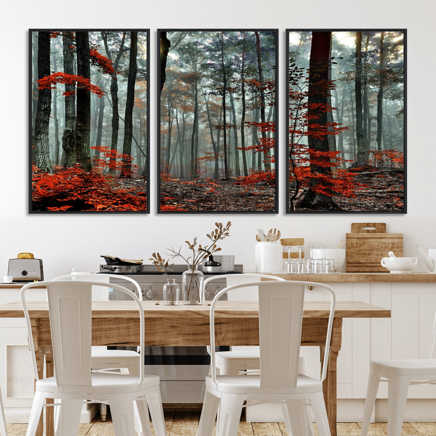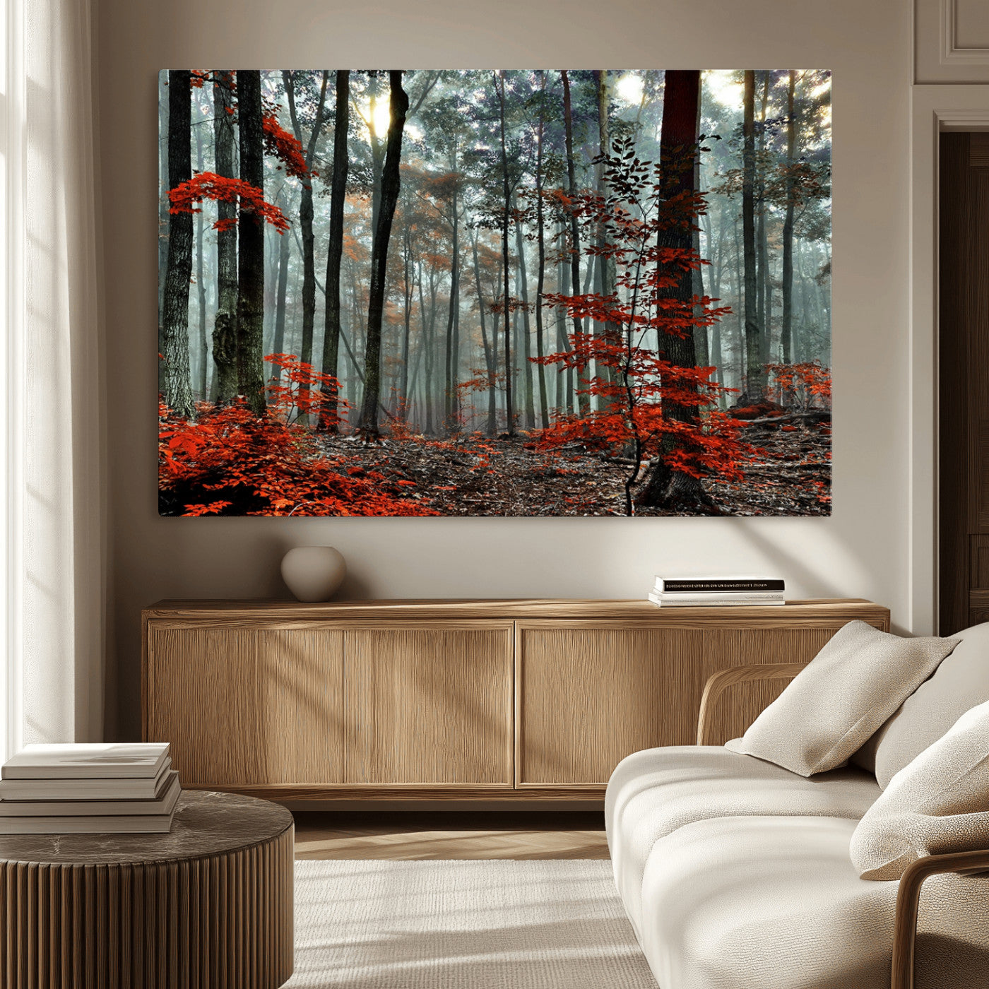 Arbres de la forêt rouge, art mural, impression sur toile, œuvre d'art murale