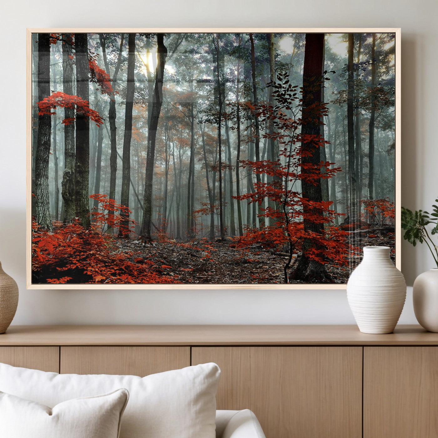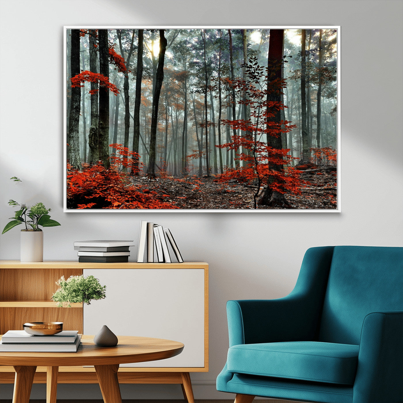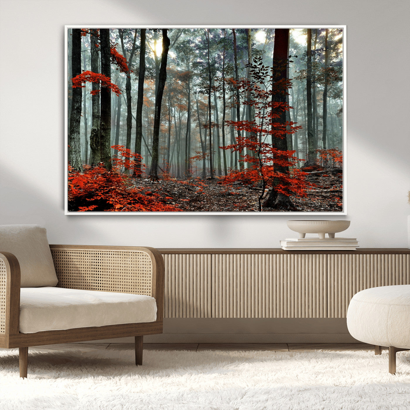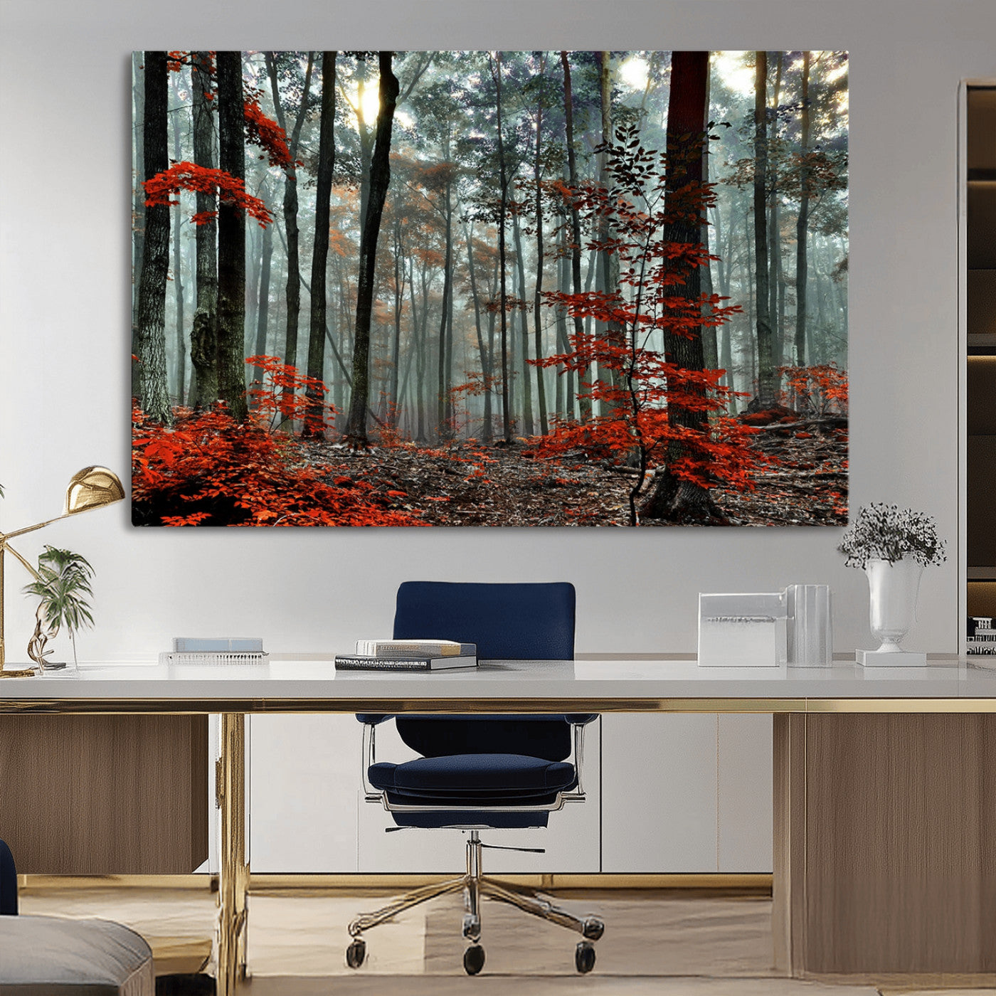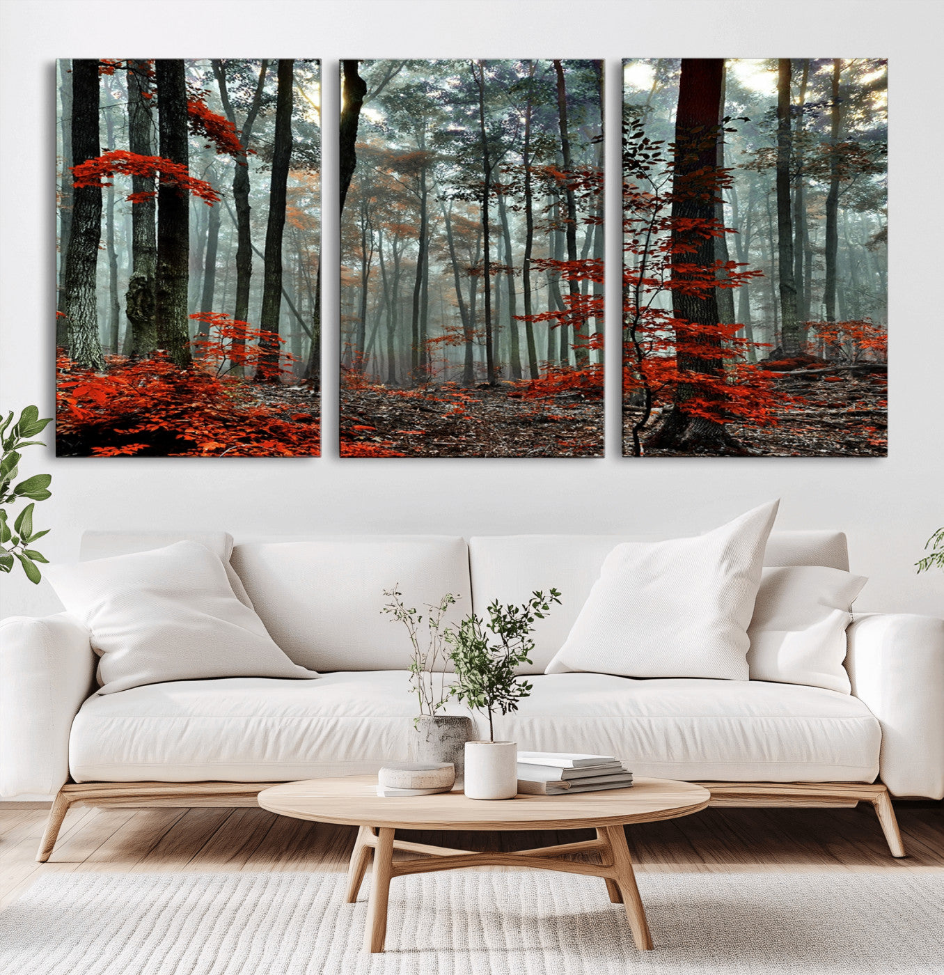 Arbres de la forêt rouge, art mural, impression sur toile, œuvre d'art murale