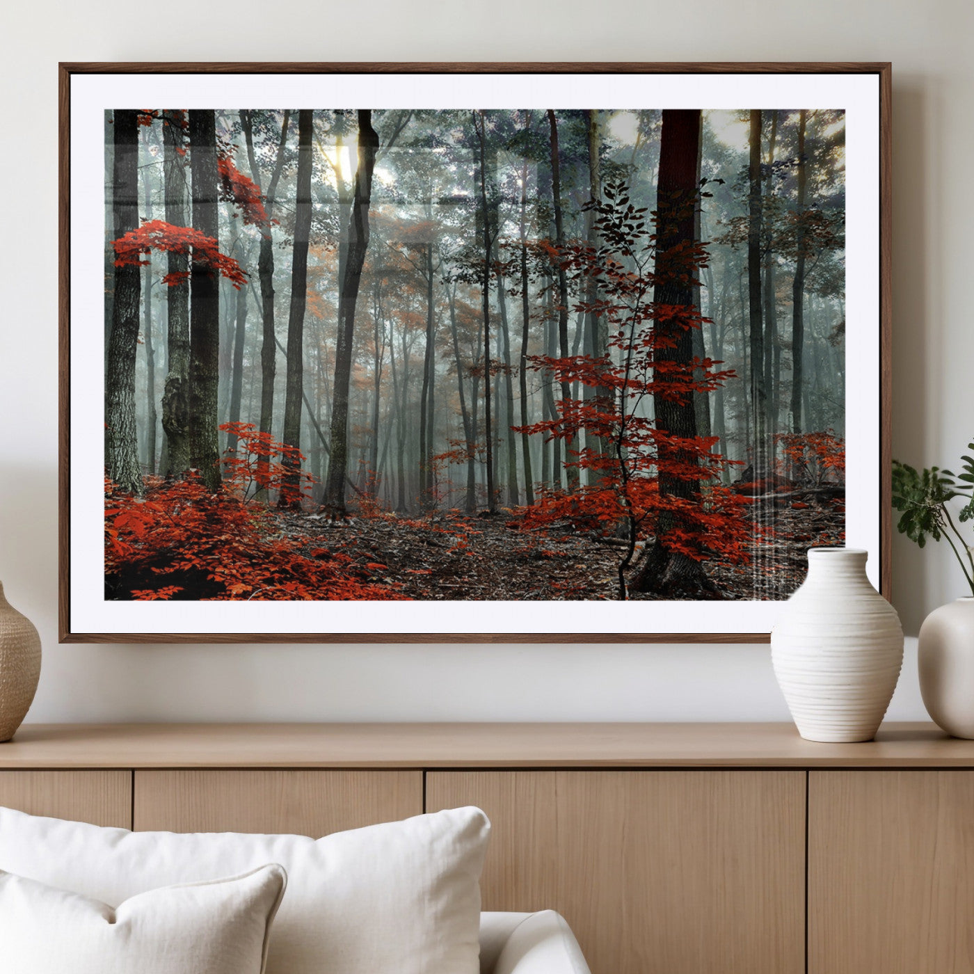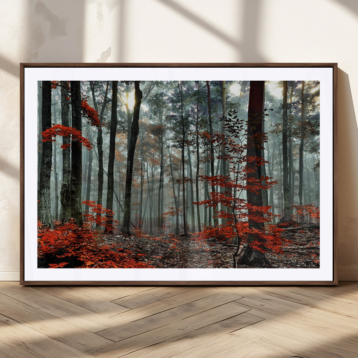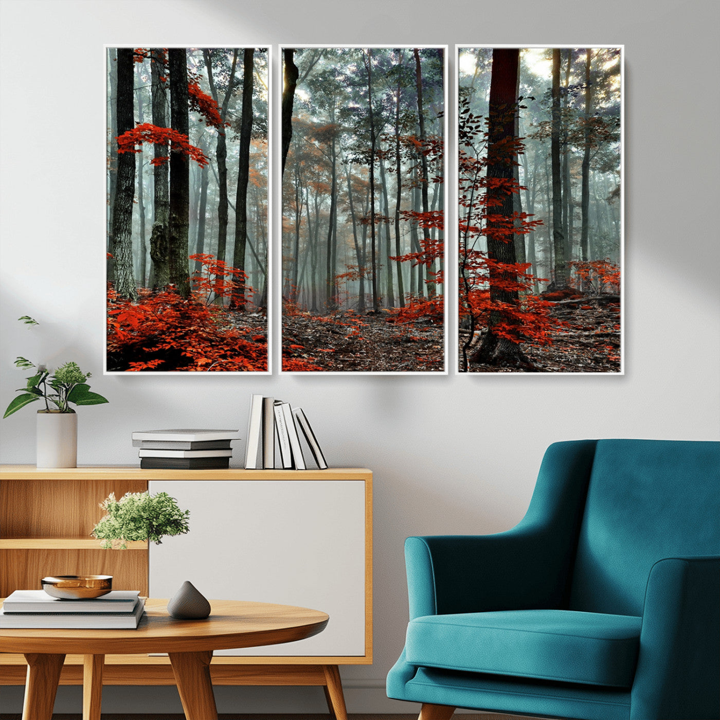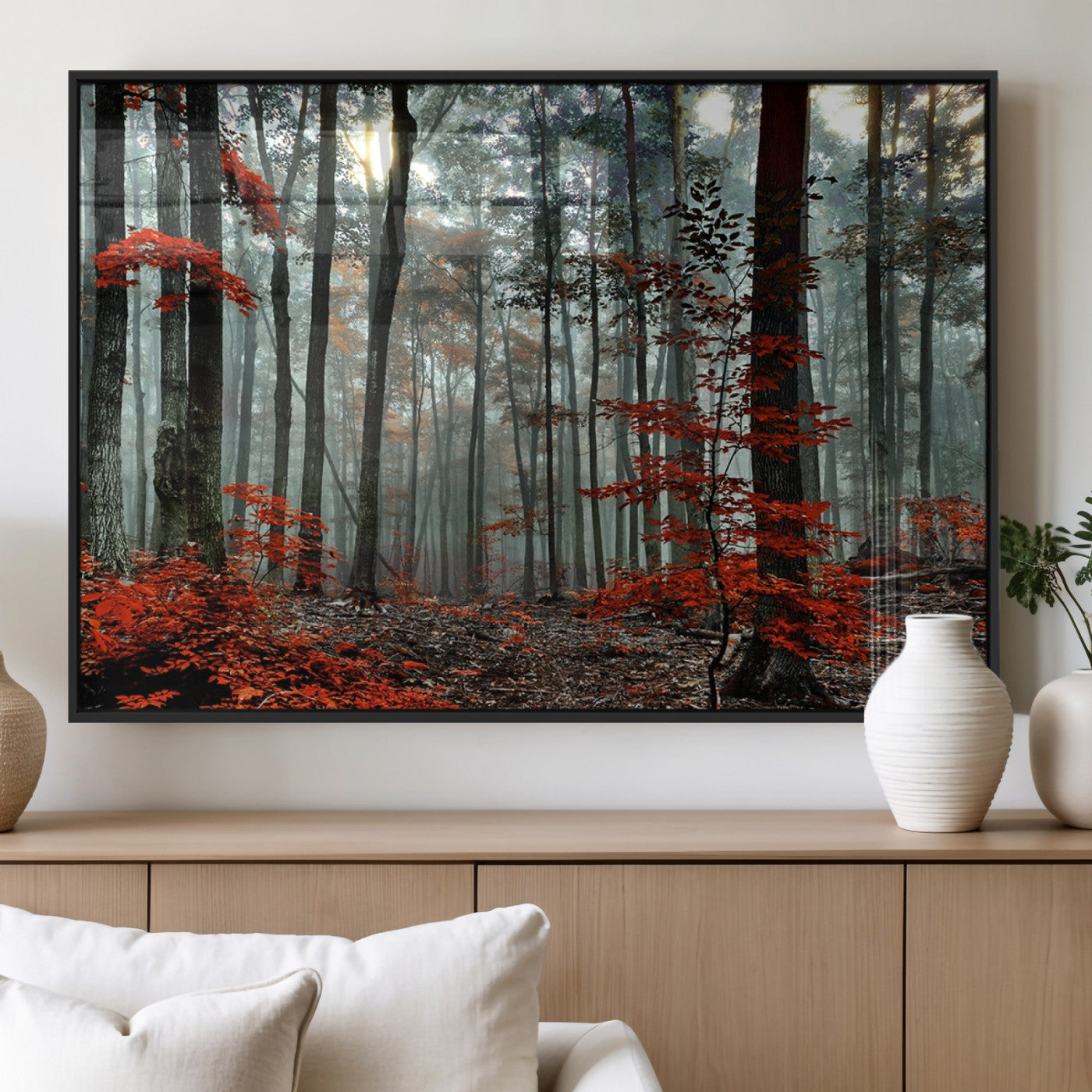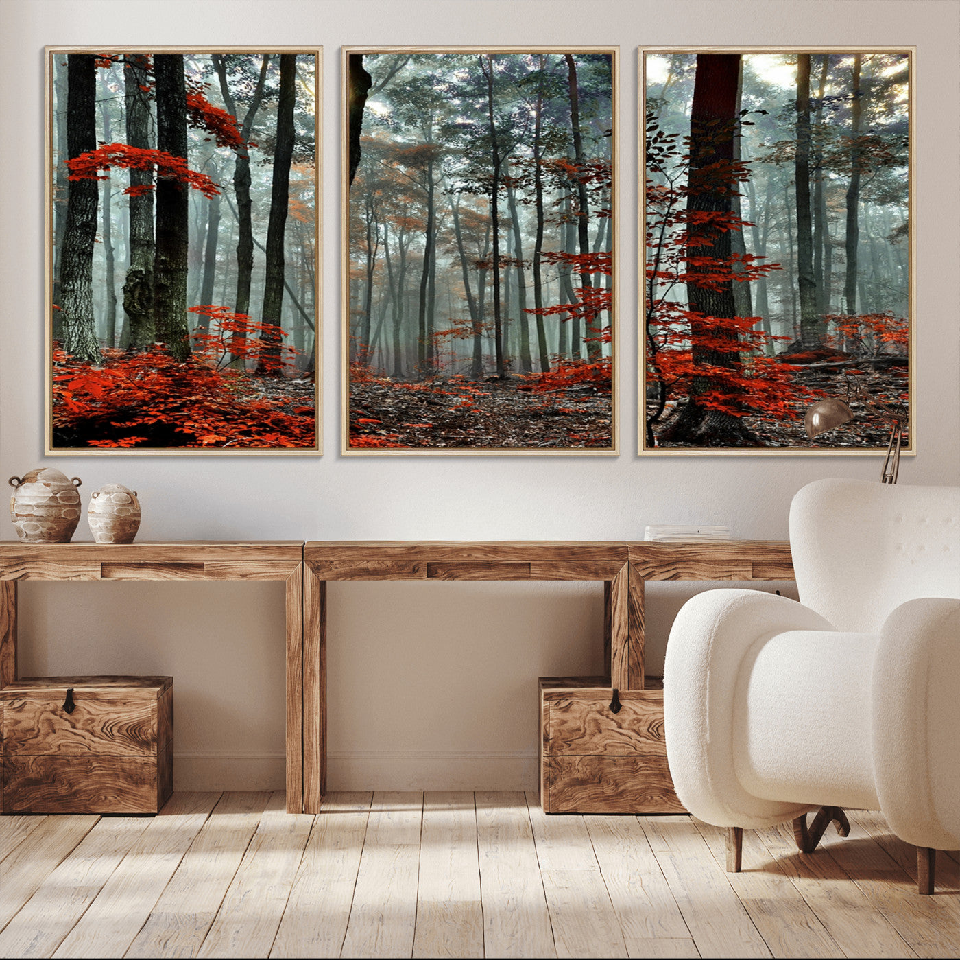 Arbres de la forêt rouge, art mural, impression sur toile, œuvre d'art murale
