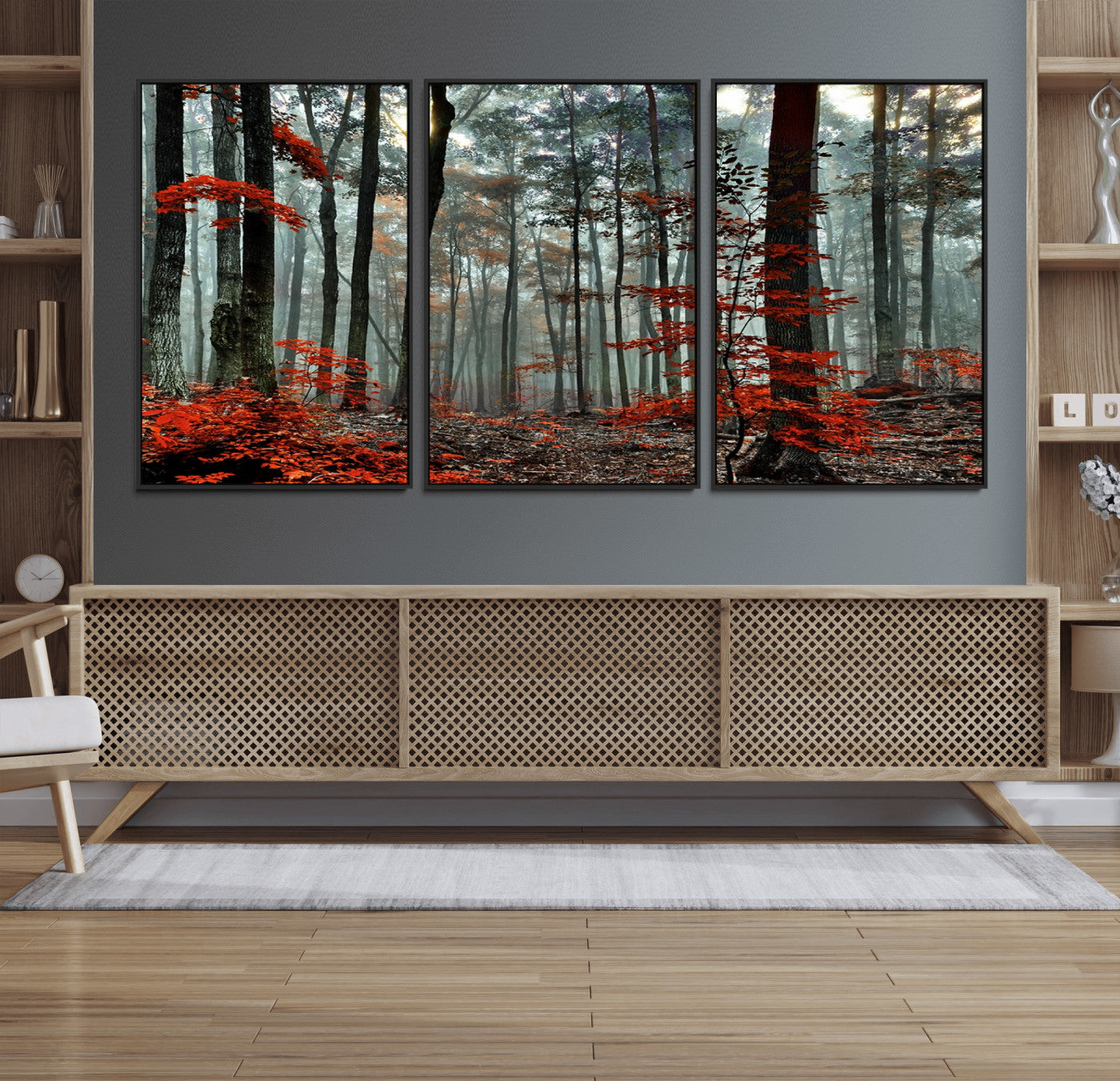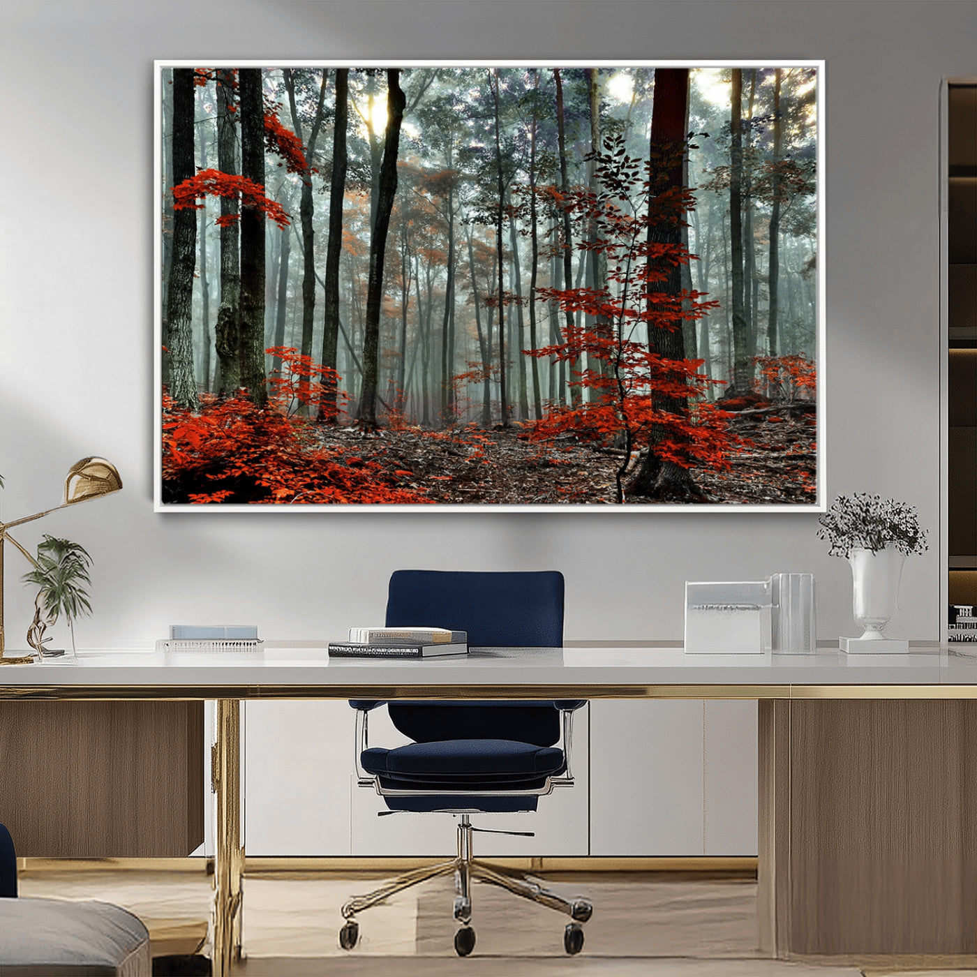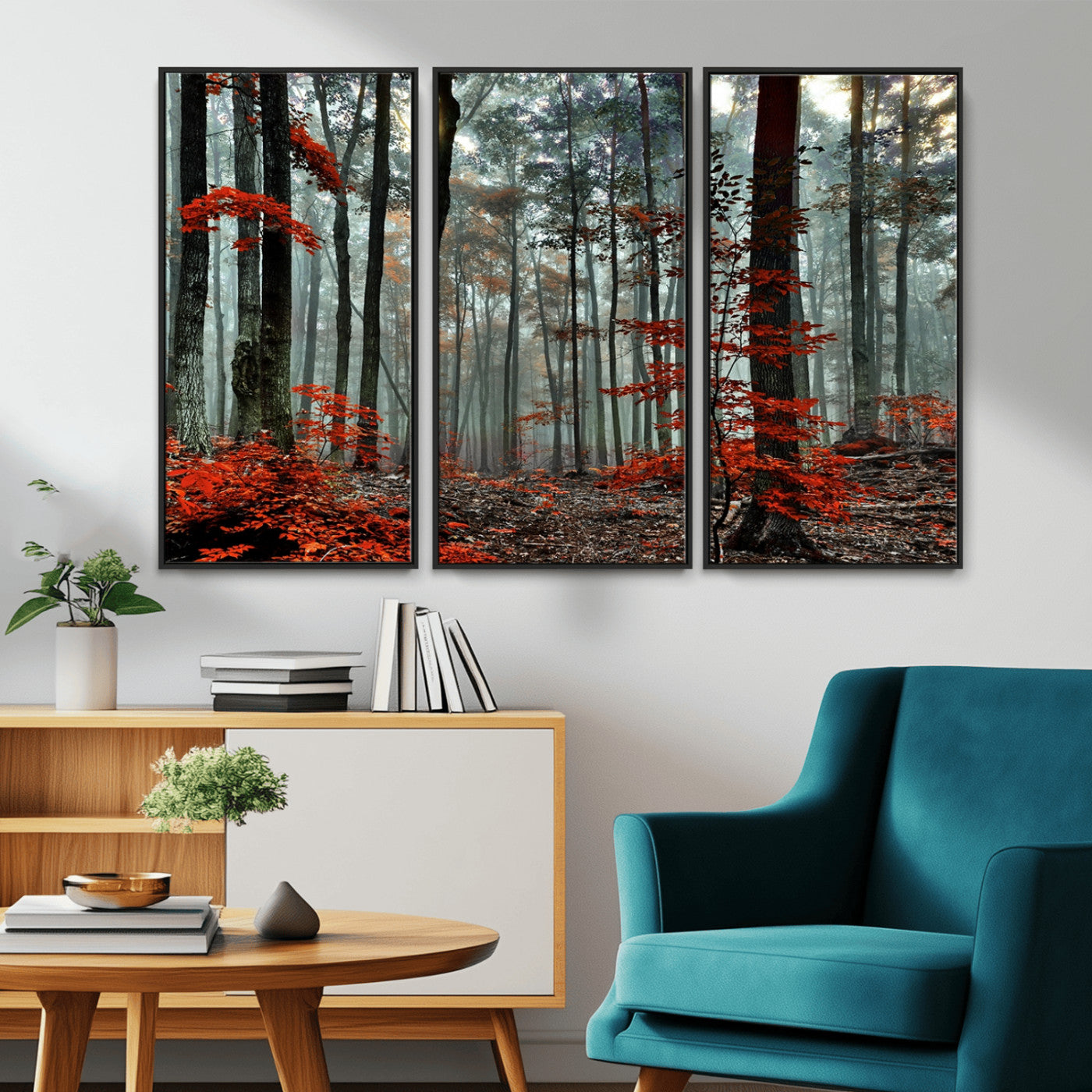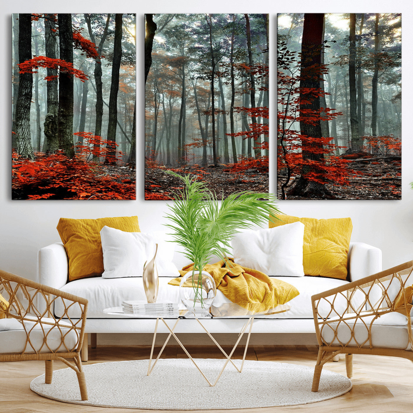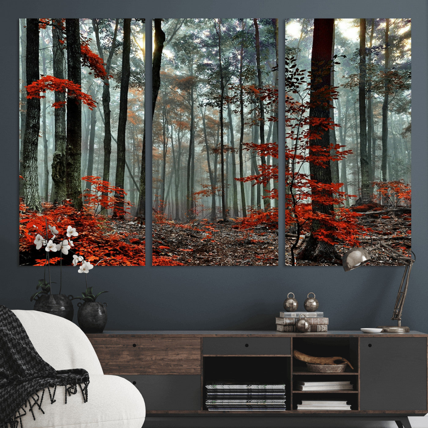 Arbres de la forêt rouge, art mural, impression sur toile, œuvre d'art murale