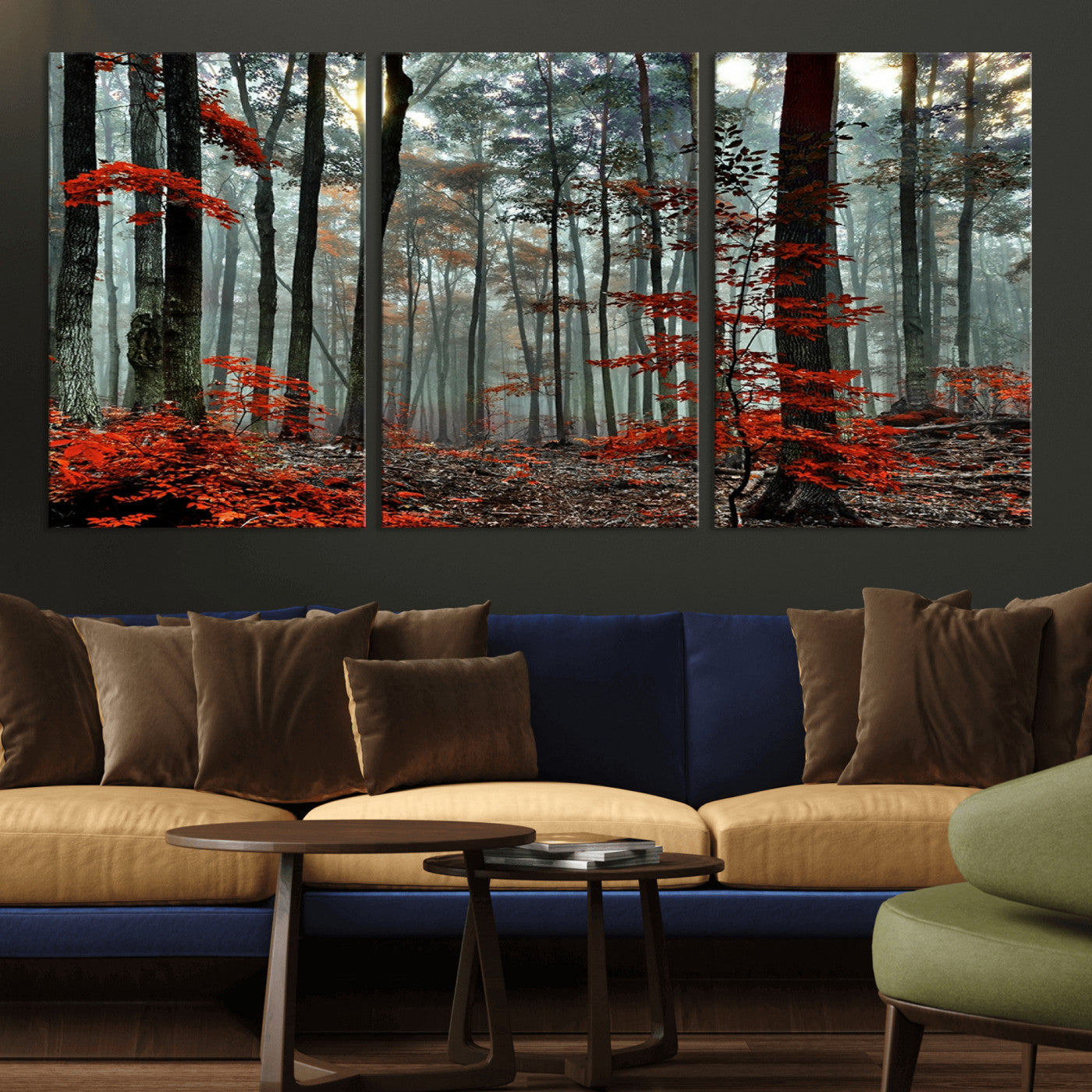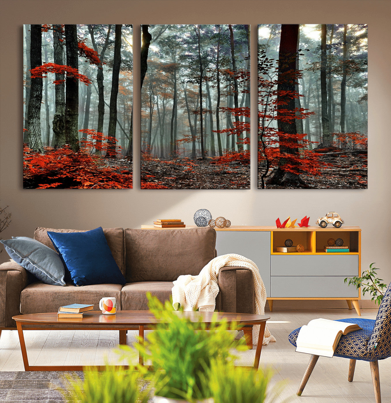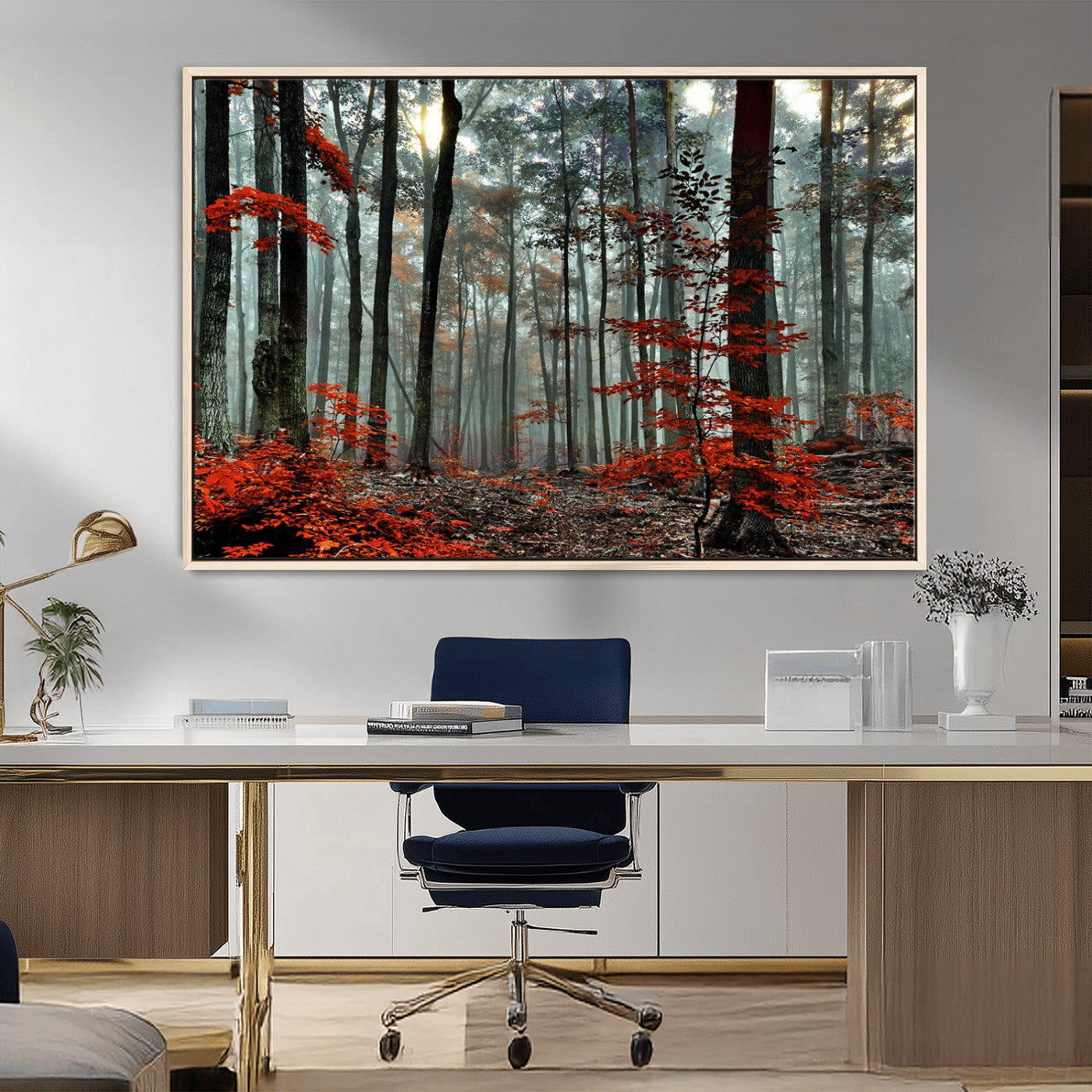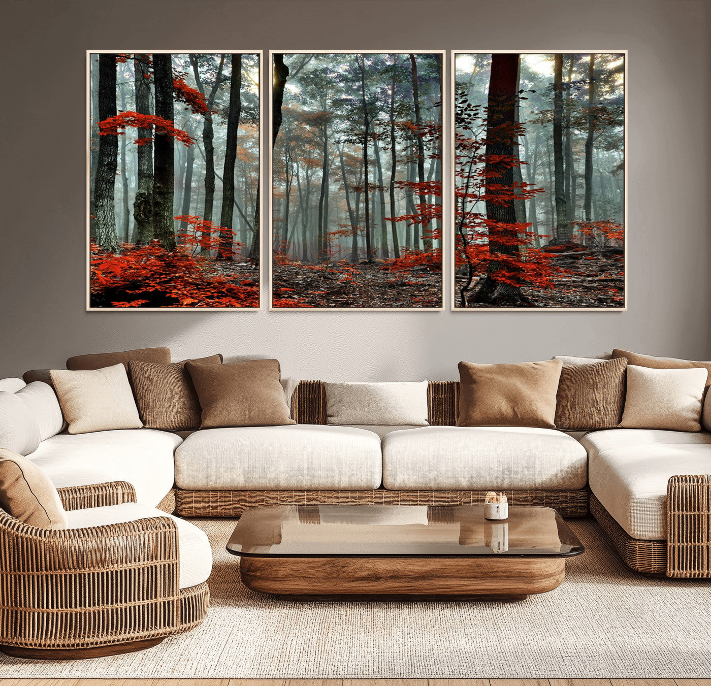 Arbres de la forêt rouge, art mural, impression sur toile, œuvre d'art murale