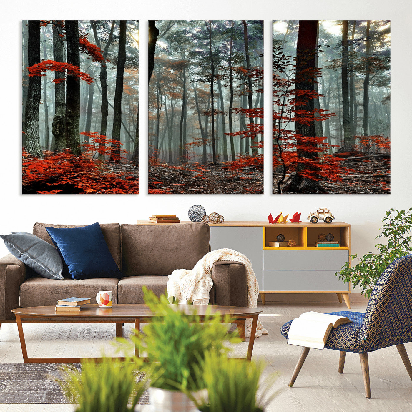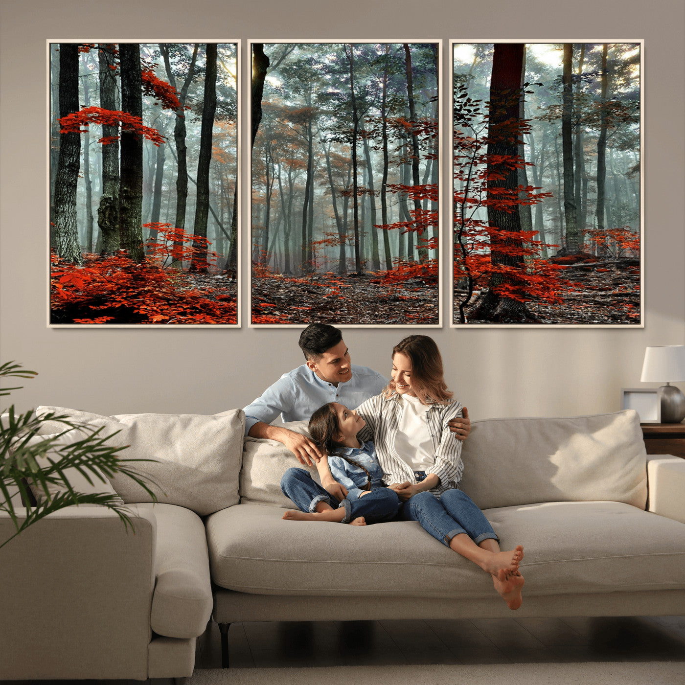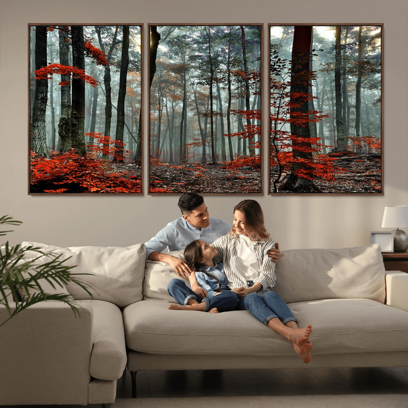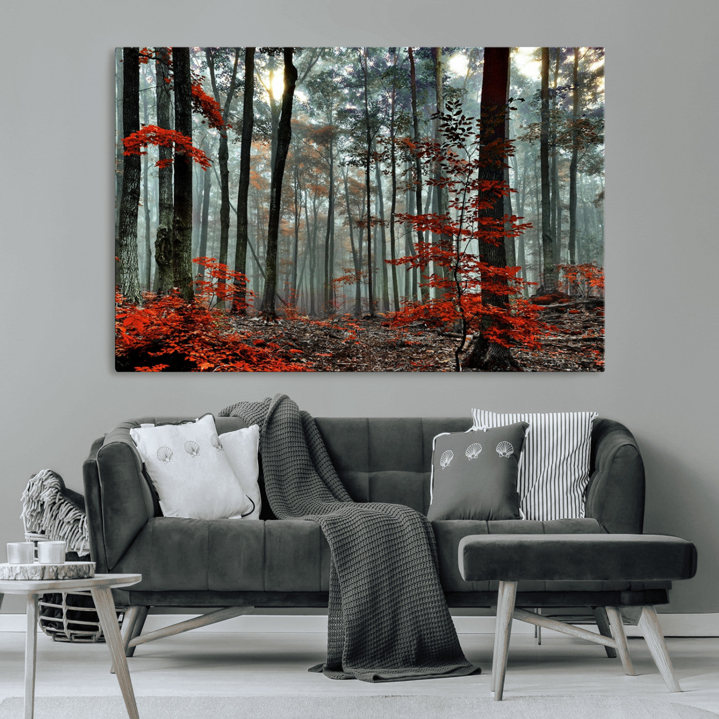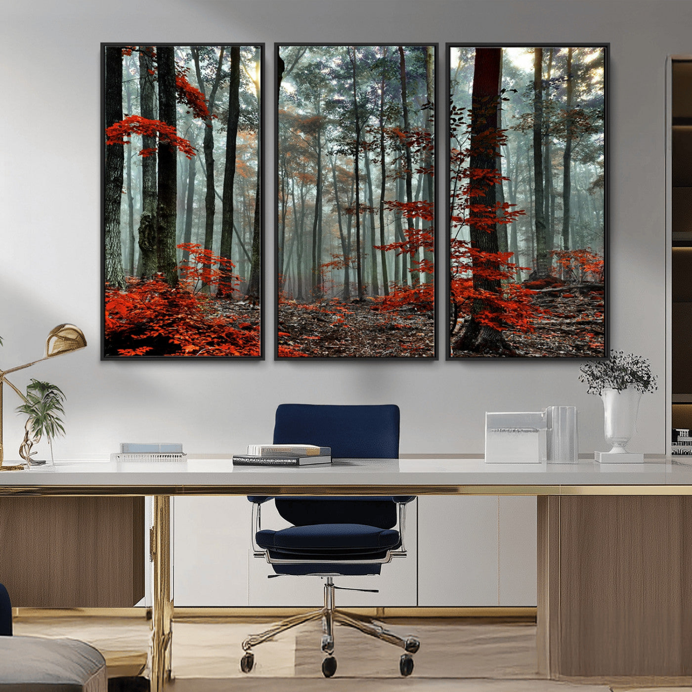 Arbres de la forêt rouge, art mural, impression sur toile, œuvre d'art murale