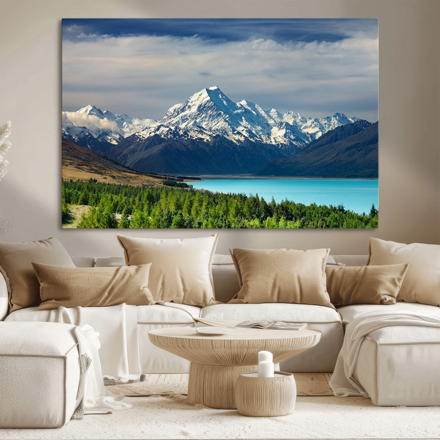 Impression d’art Mount Cook Nouvelle-Zélande Art mural Impression sur toile Lac et montagnes