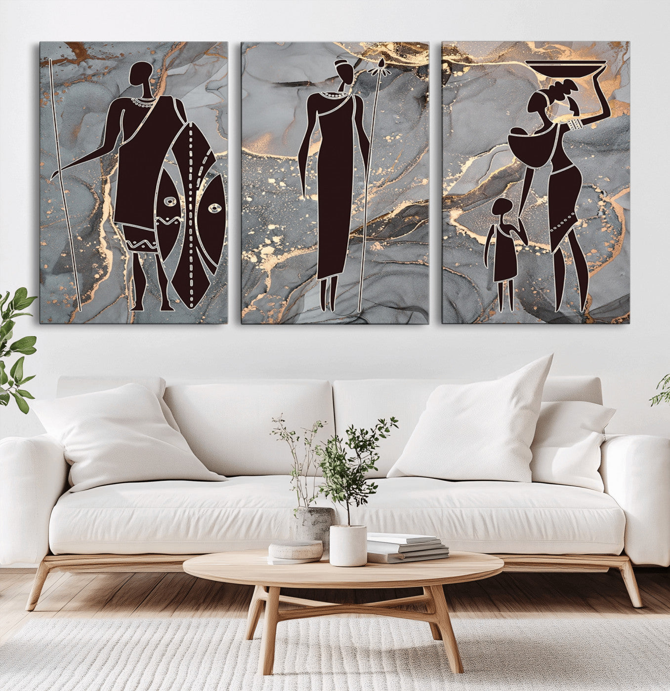 African American Wall Art – Elegant African Women Canvas Print, Modern Ethnic Painting for Living Room or Office Decor