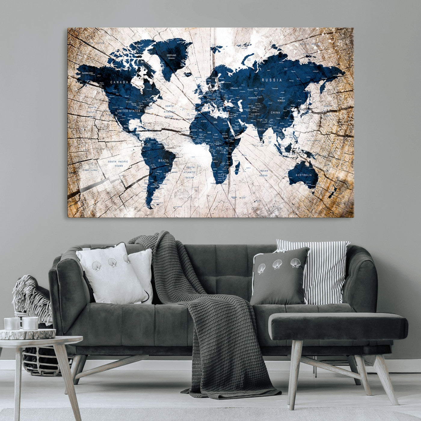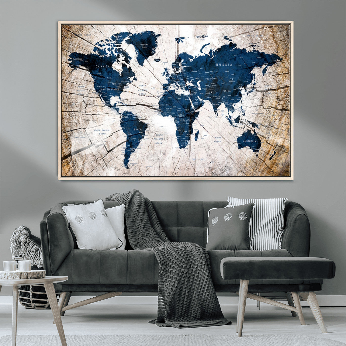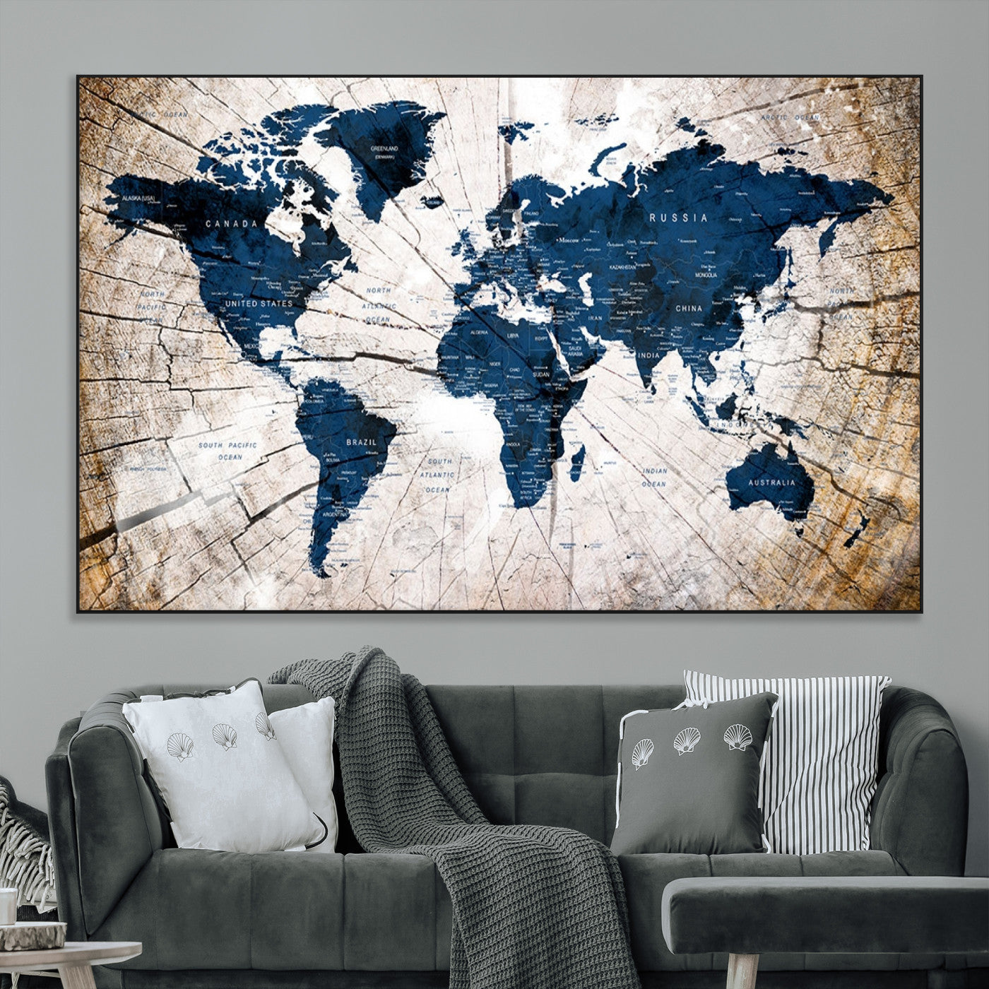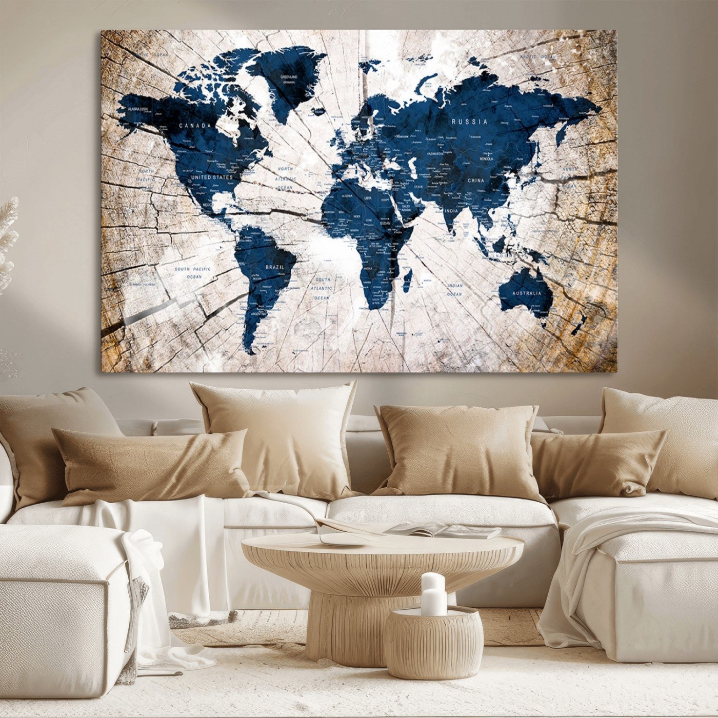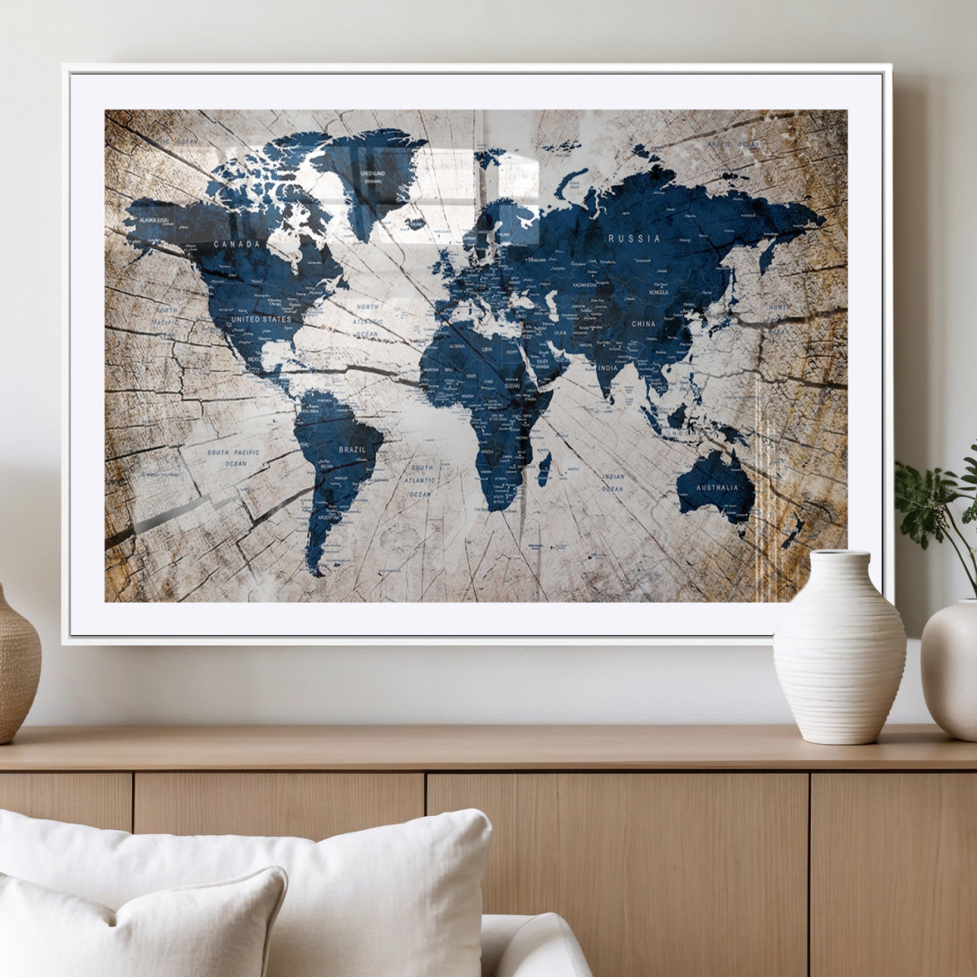 Push Pin World Map Canvas Print – Travel Tracker Wall Art for Couples, Perfect Anniversary Gift for Home or Office Decor