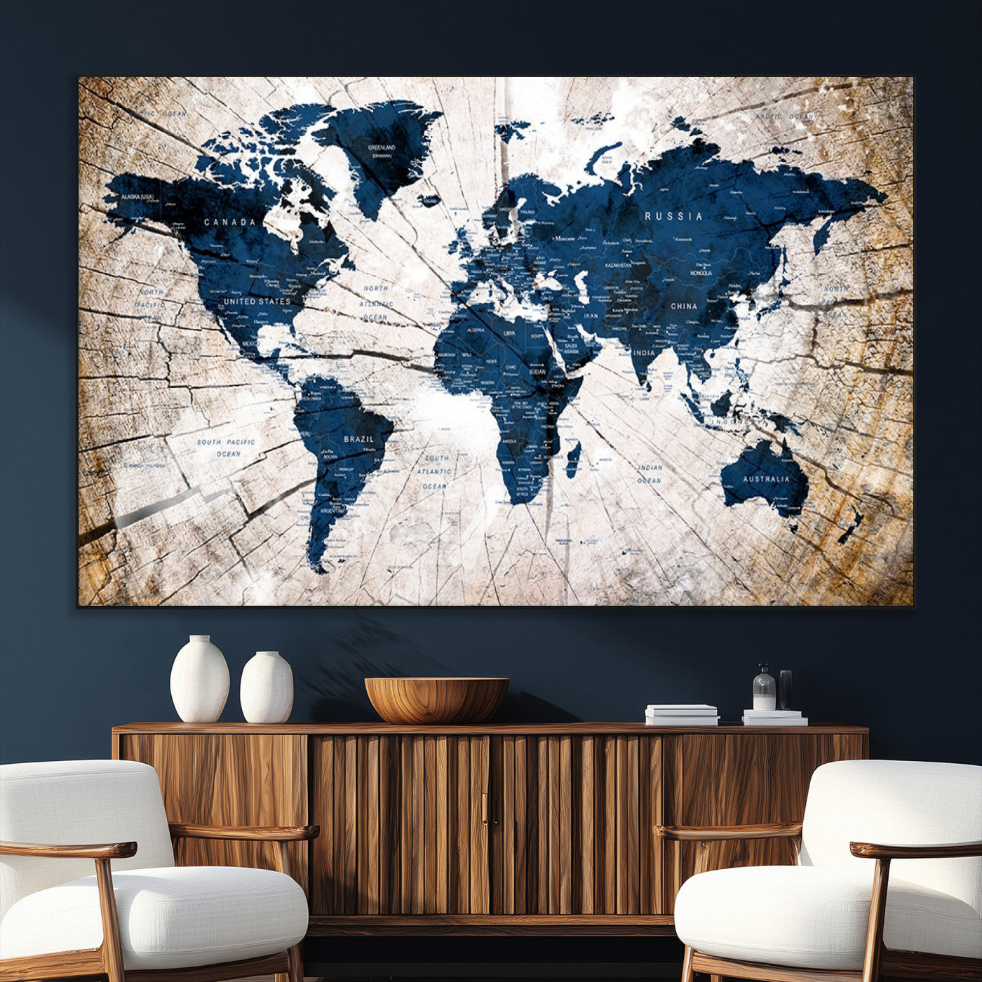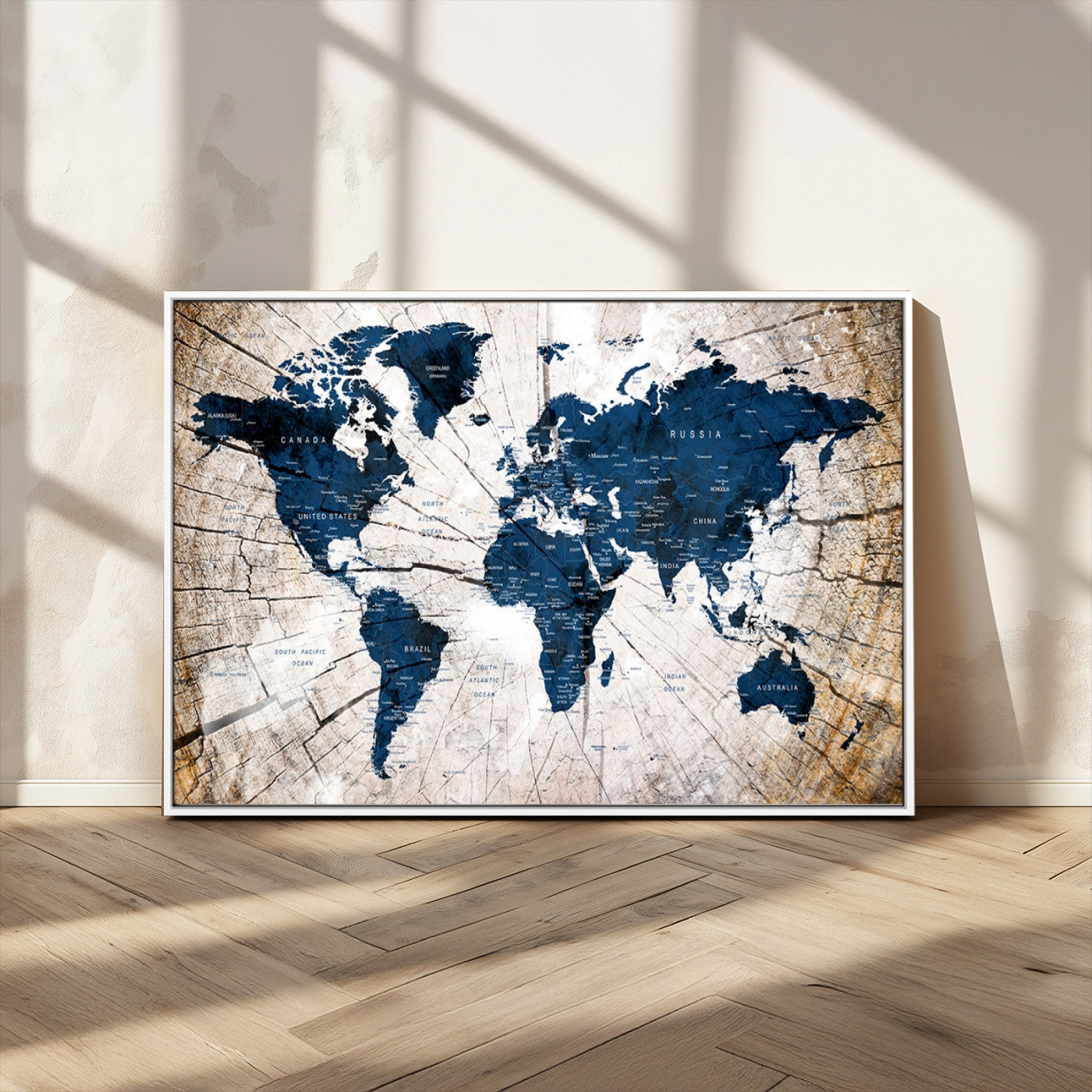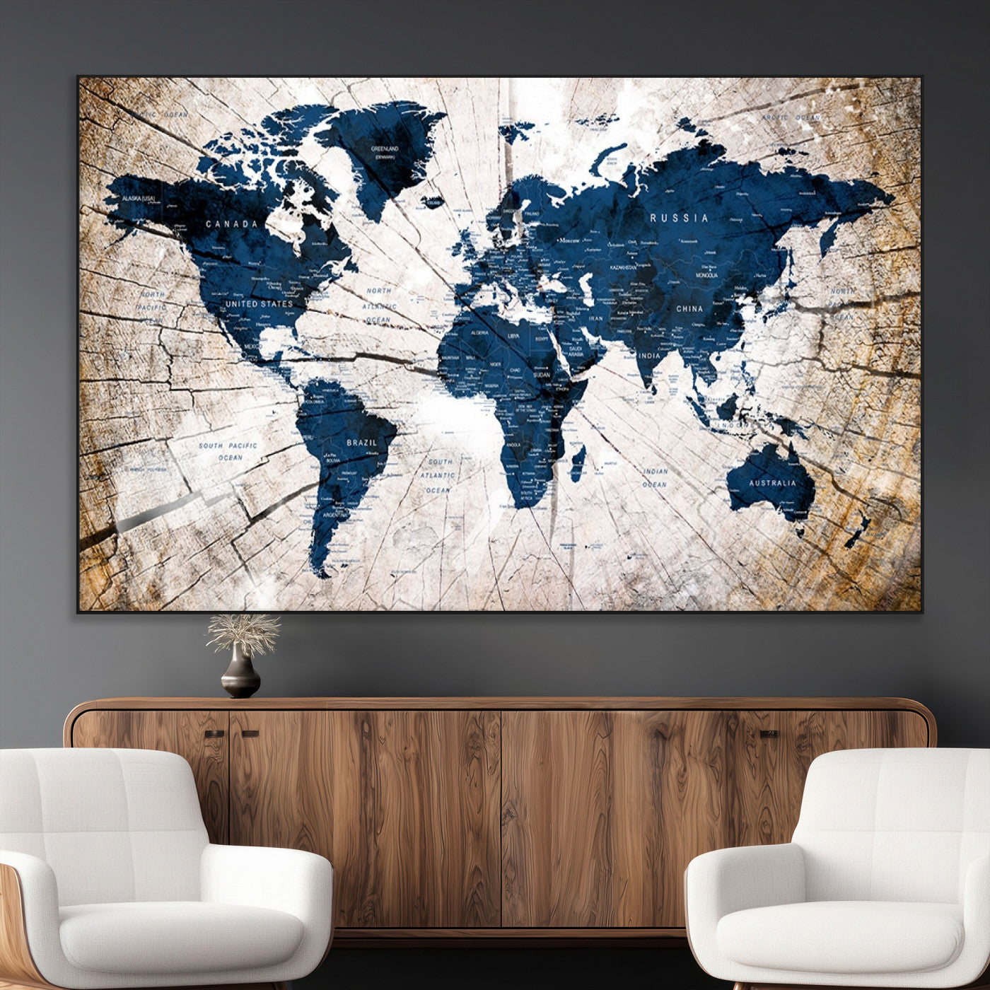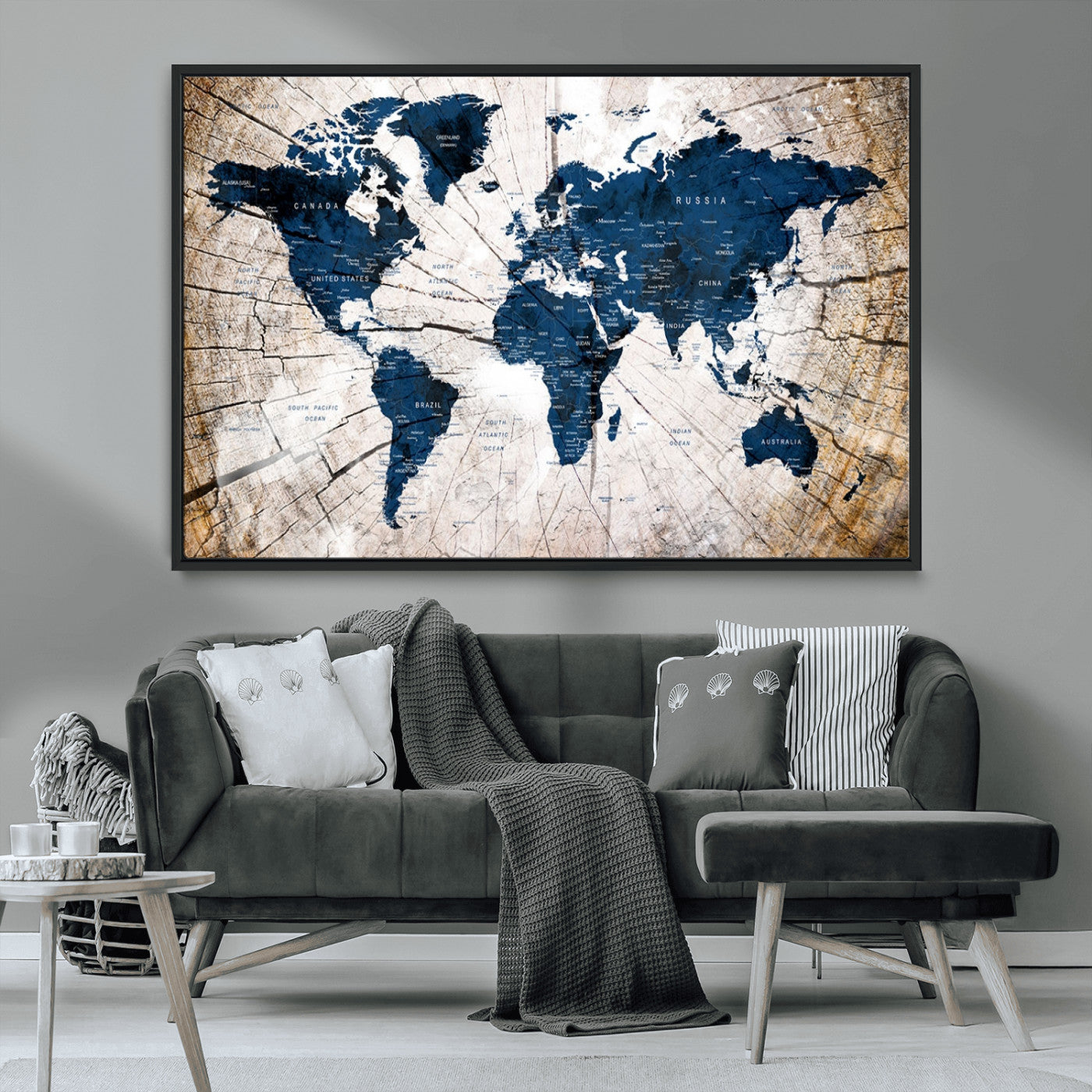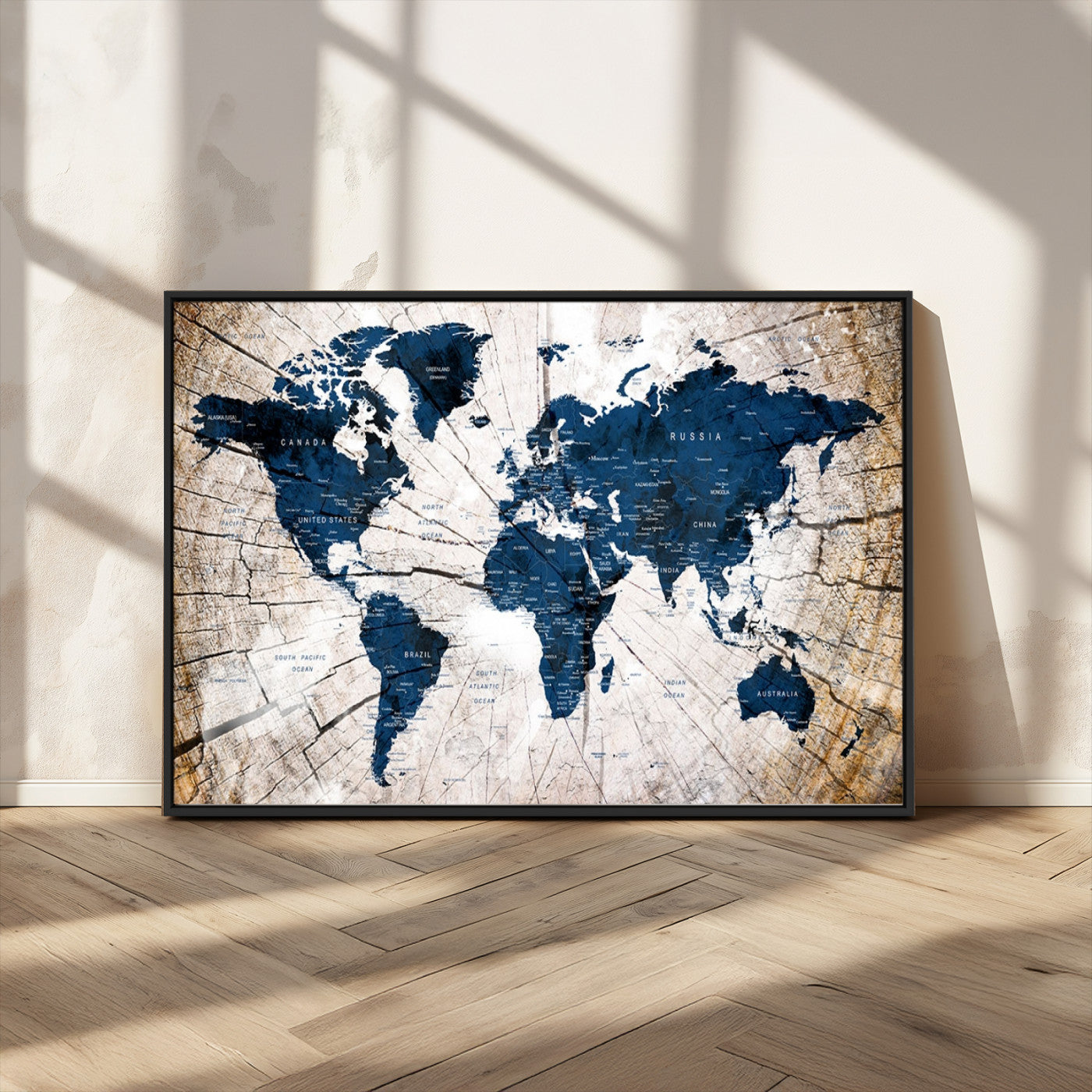 Push Pin World Map Canvas Print – Travel Tracker Wall Art for Couples, Perfect Anniversary Gift for Home or Office Decor