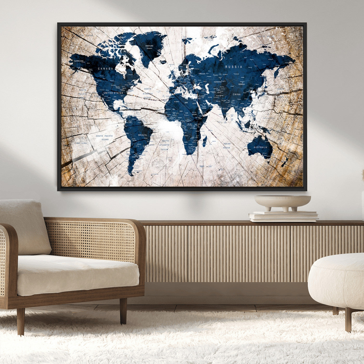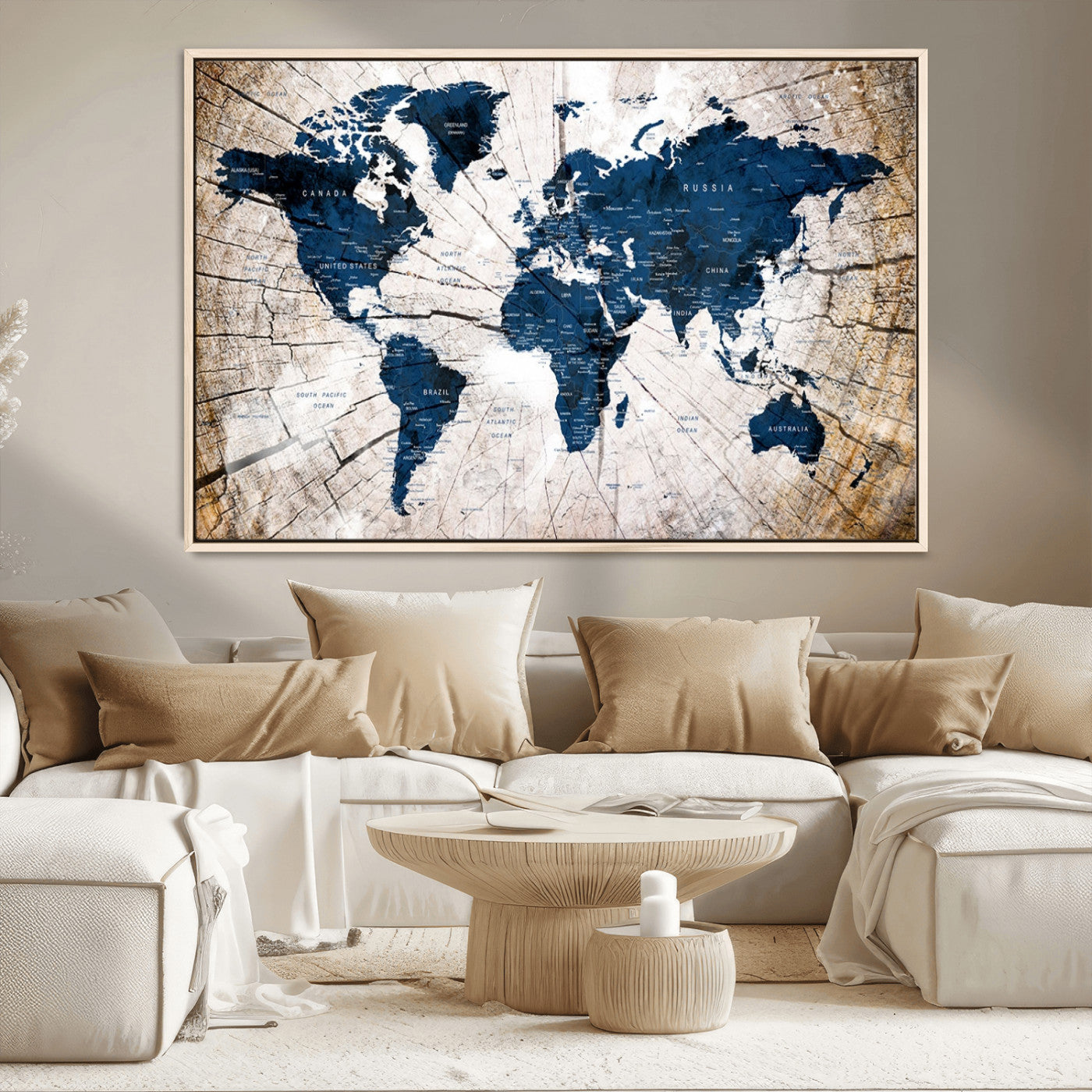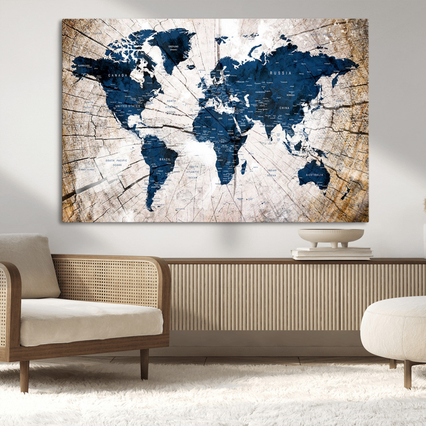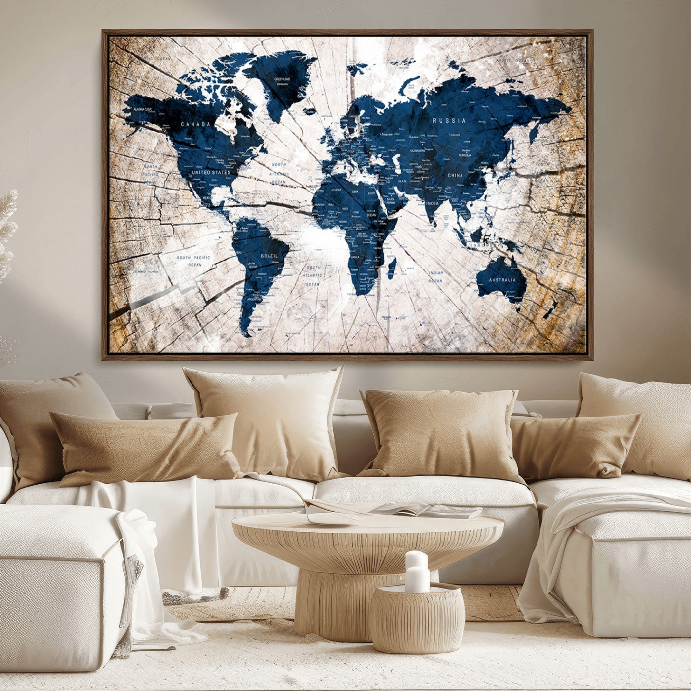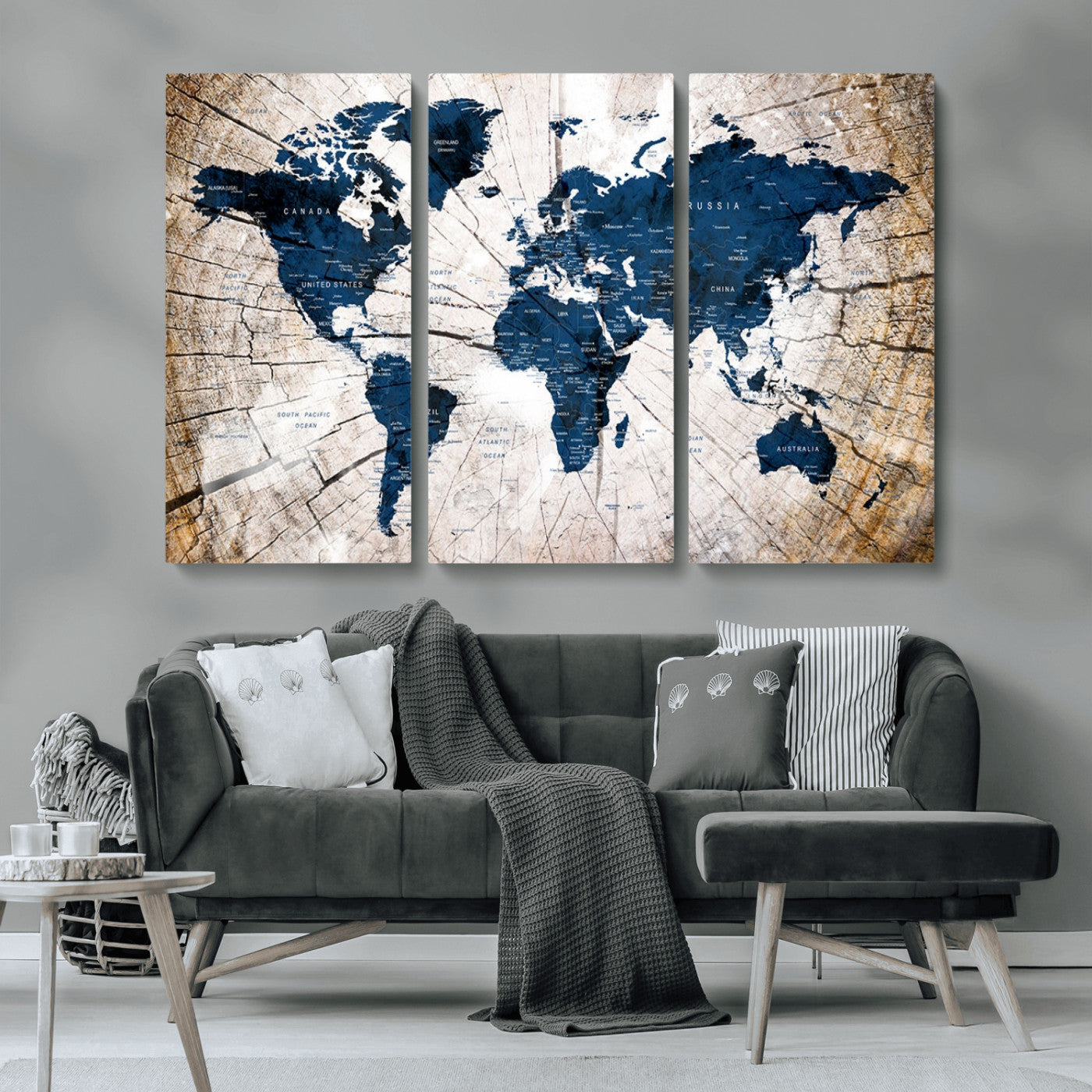 Push Pin World Map Canvas Print – Travel Tracker Wall Art for Couples, Perfect Anniversary Gift for Home or Office Decor