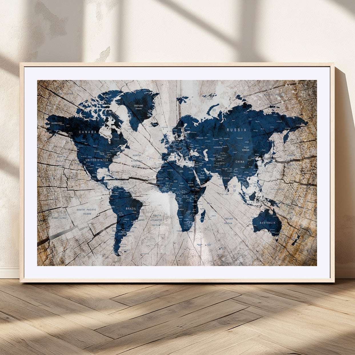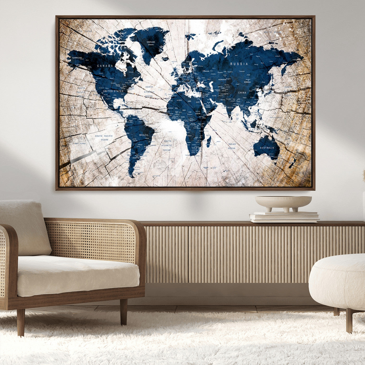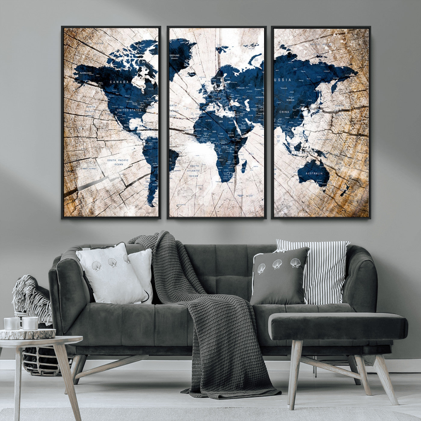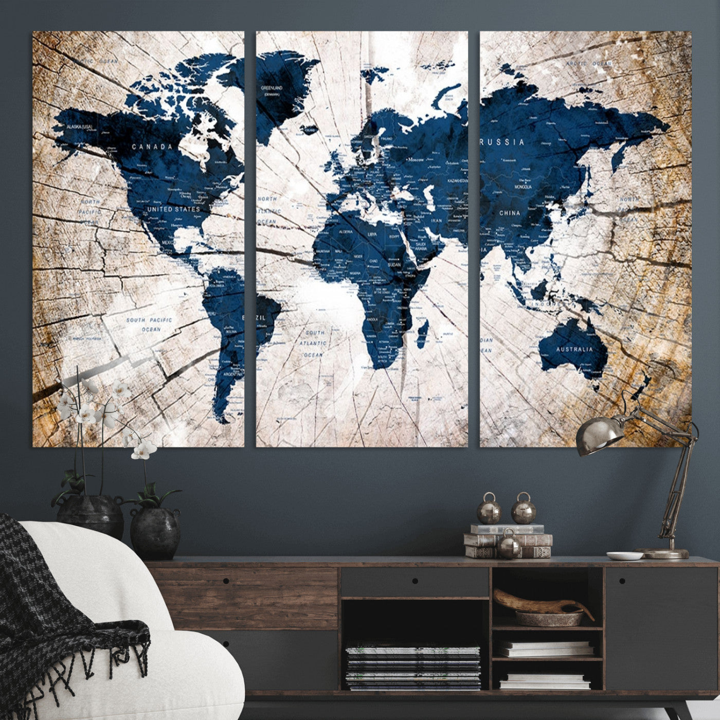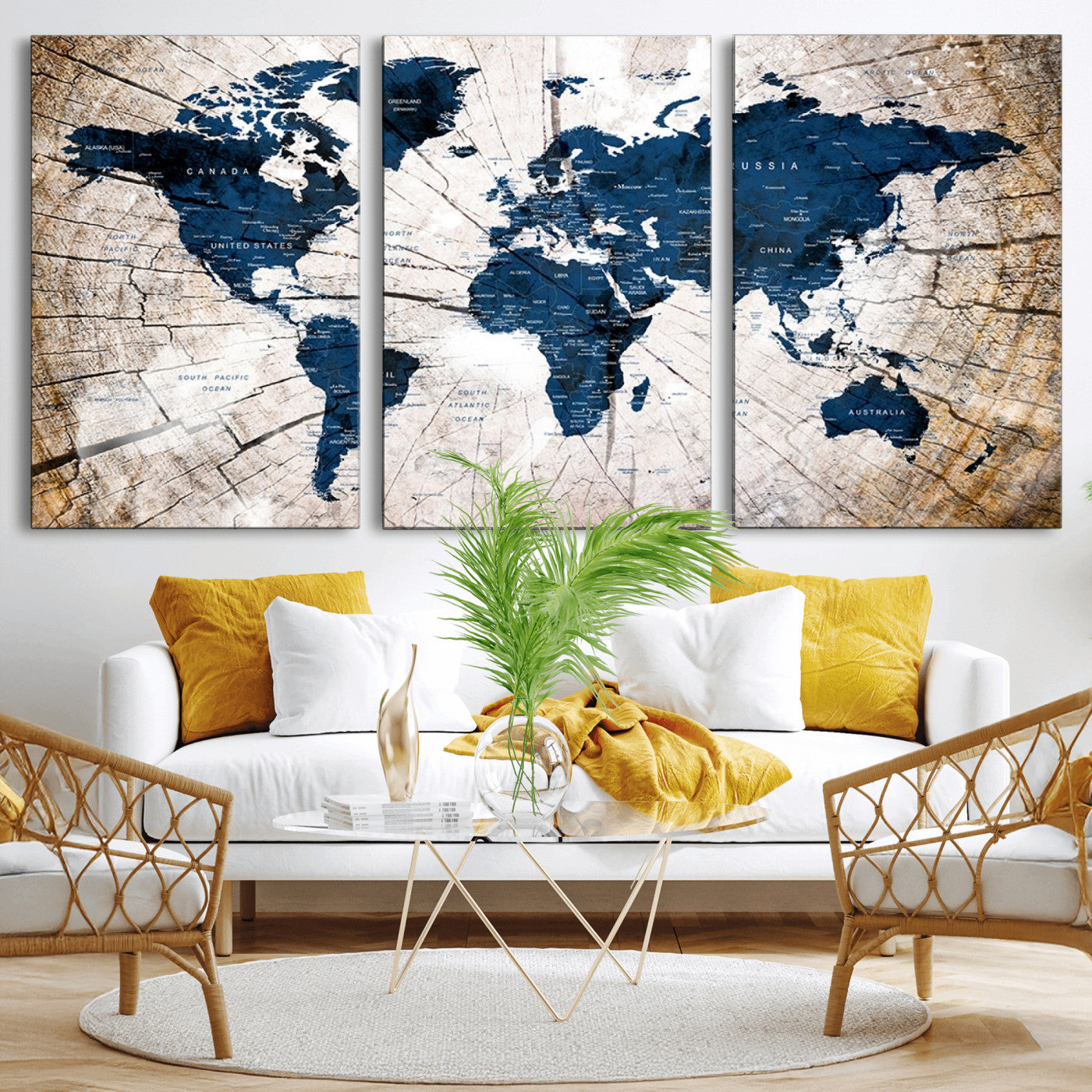 Push Pin World Map Canvas Print – Travel Tracker Wall Art for Couples, Perfect Anniversary Gift for Home or Office Decor