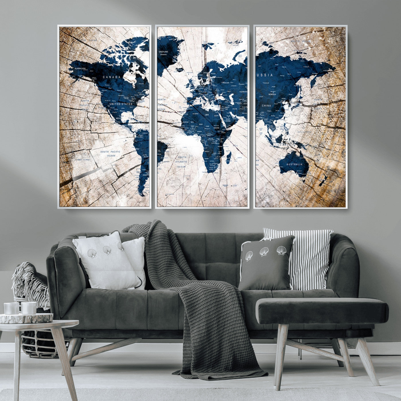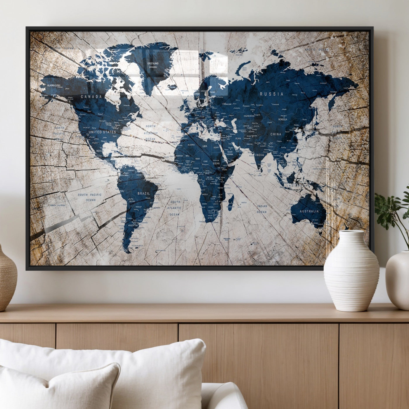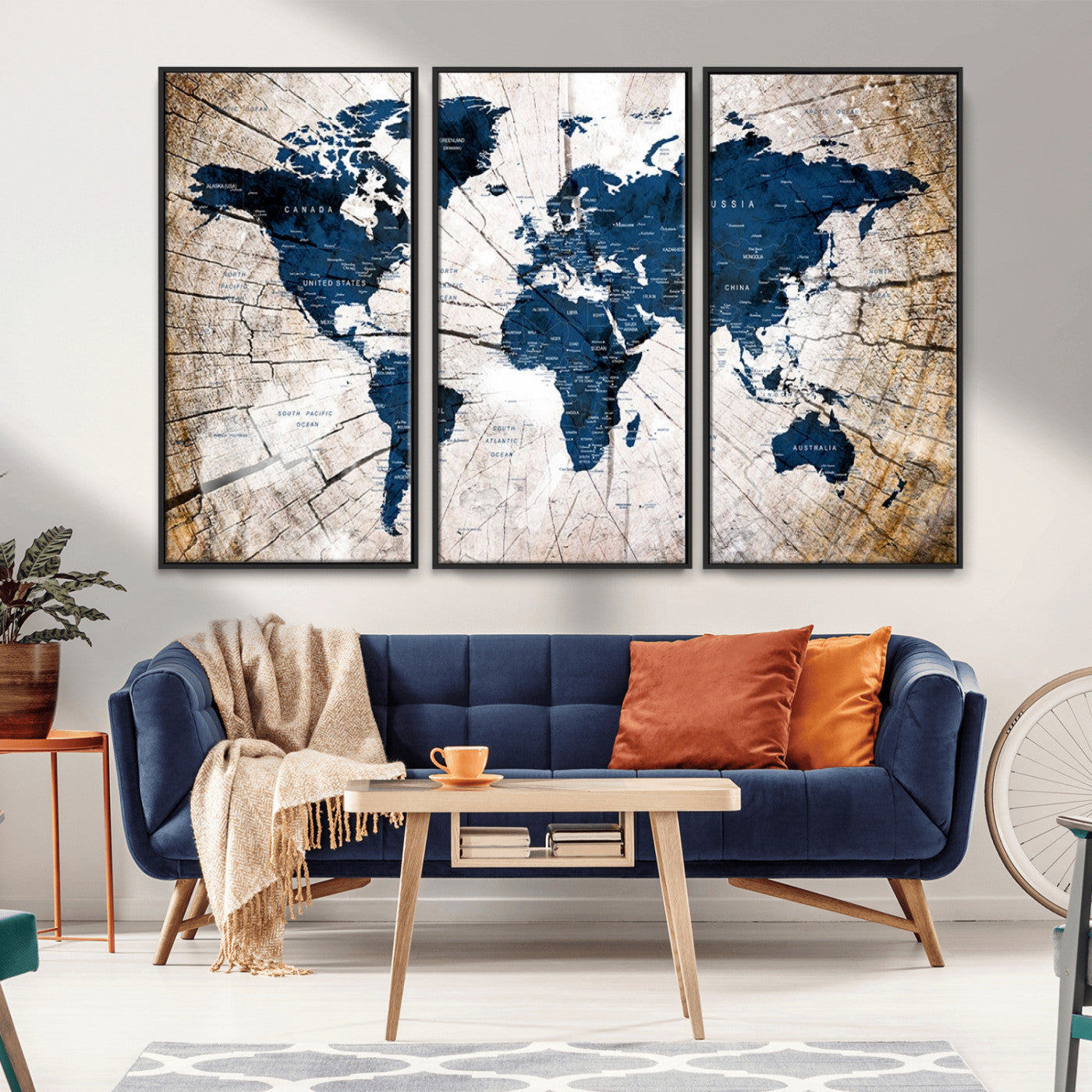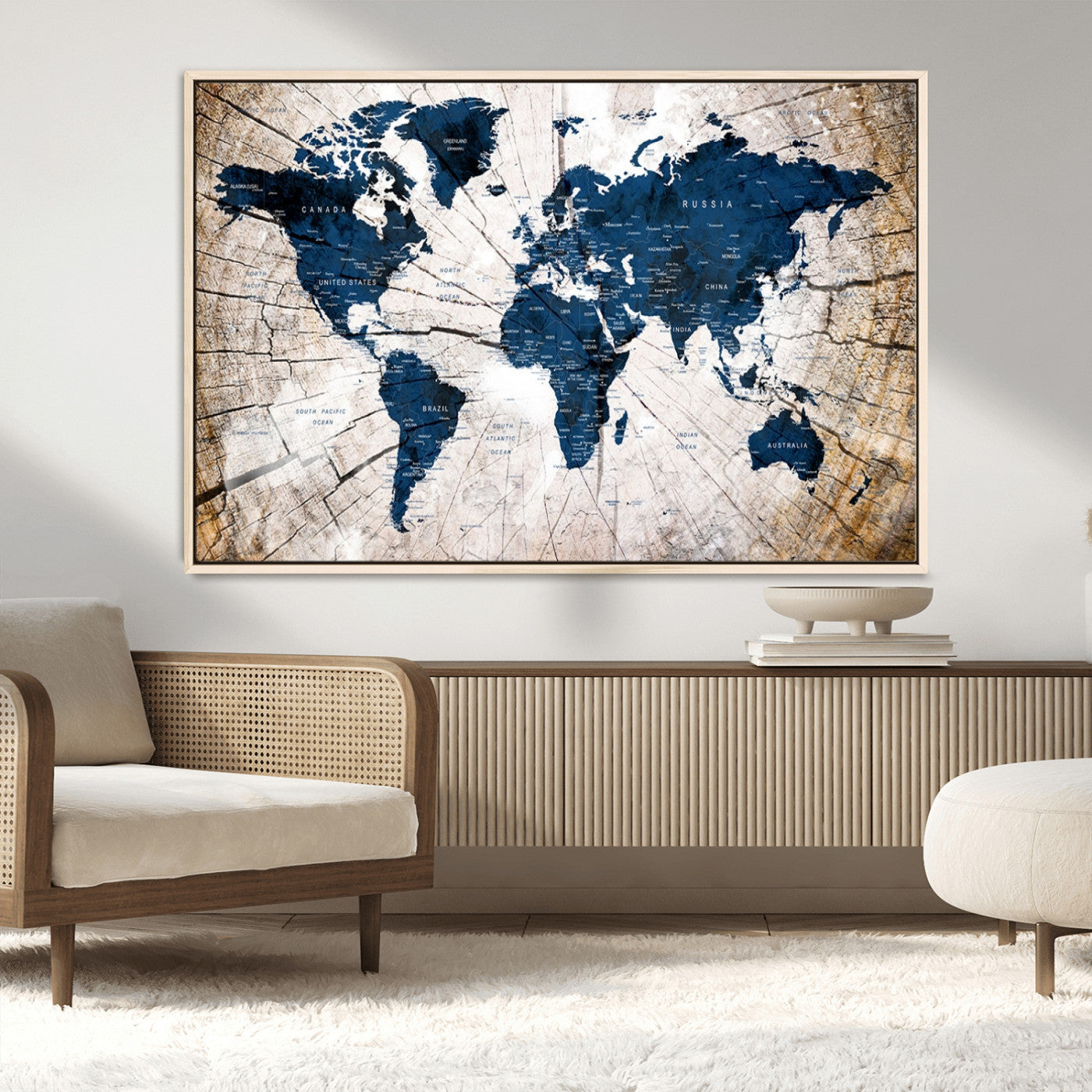 Push Pin World Map Canvas Print – Travel Tracker Wall Art for Couples, Perfect Anniversary Gift for Home or Office Decor