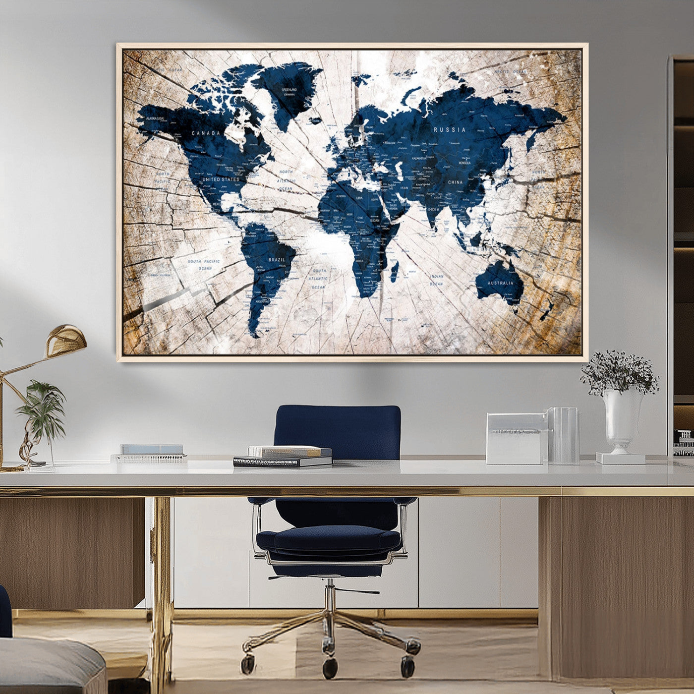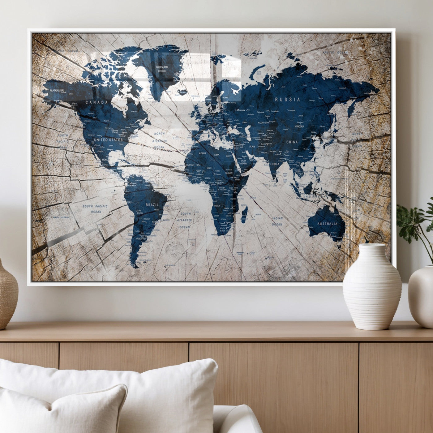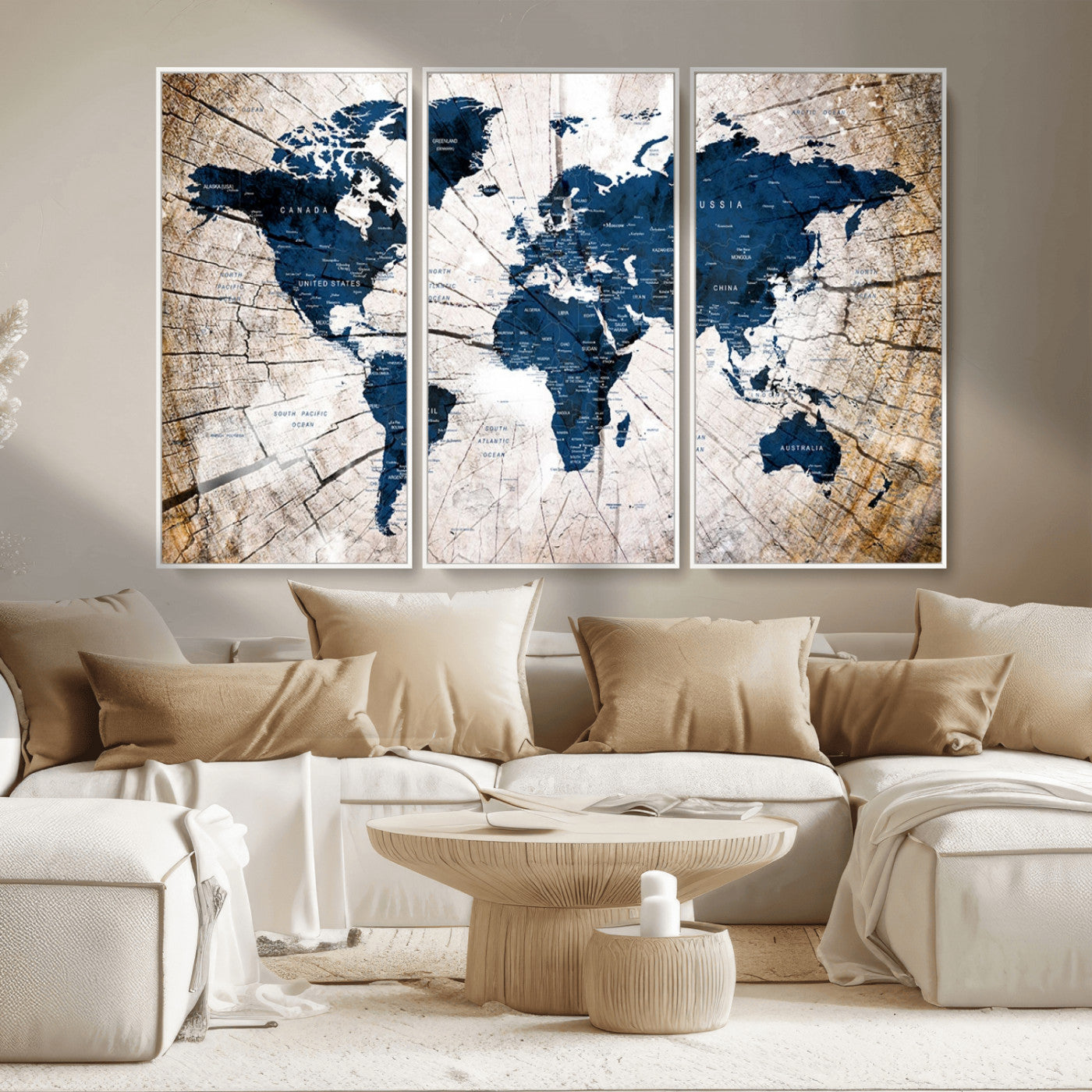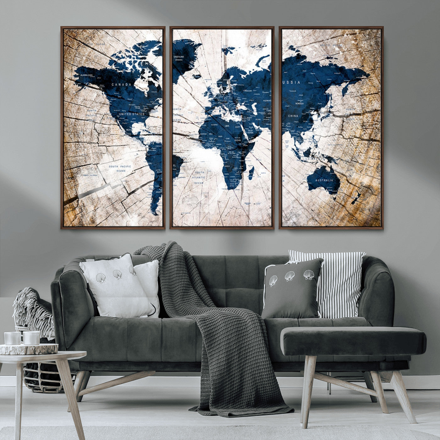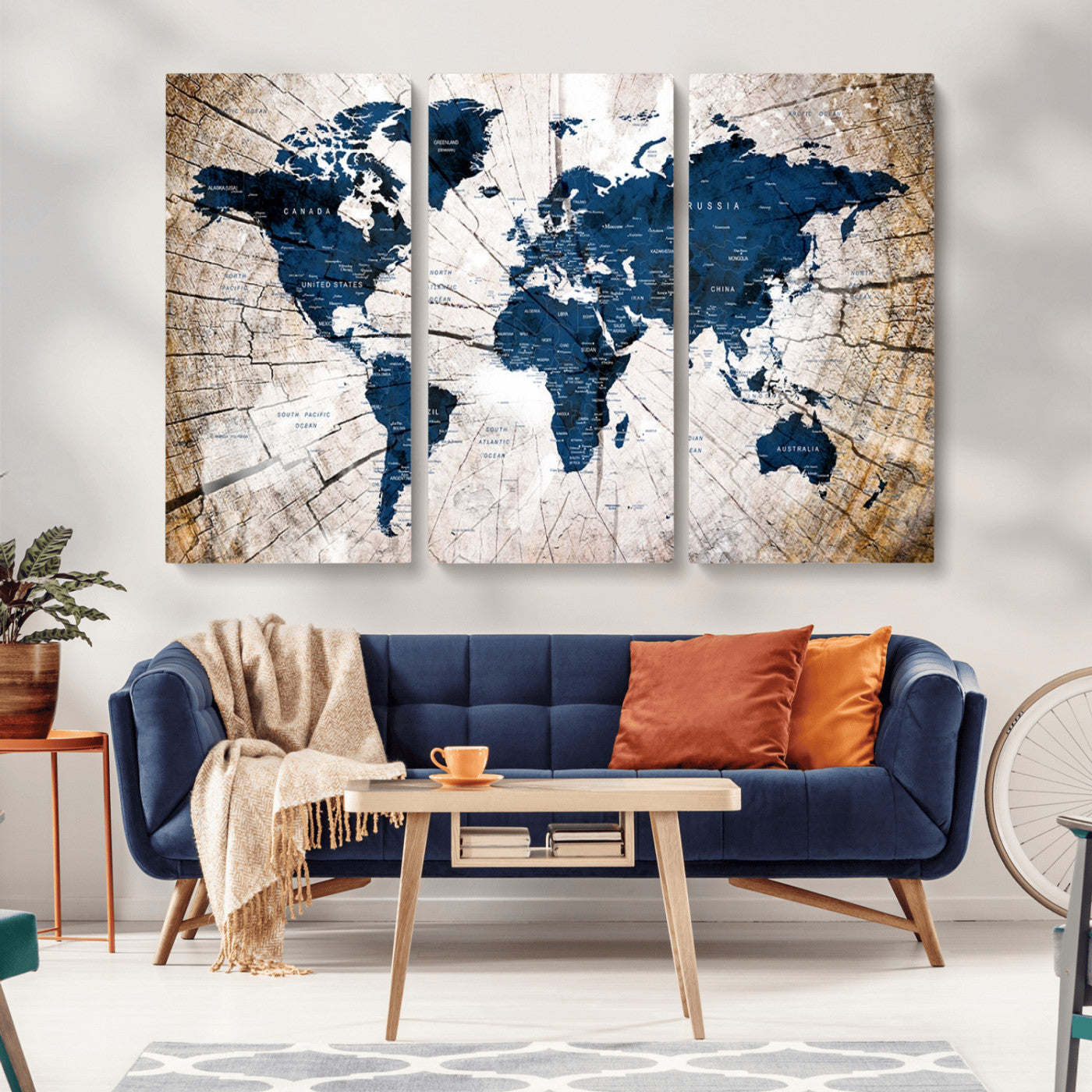 Push Pin World Map Canvas Print – Travel Tracker Wall Art for Couples, Perfect Anniversary Gift for Home or Office Decor