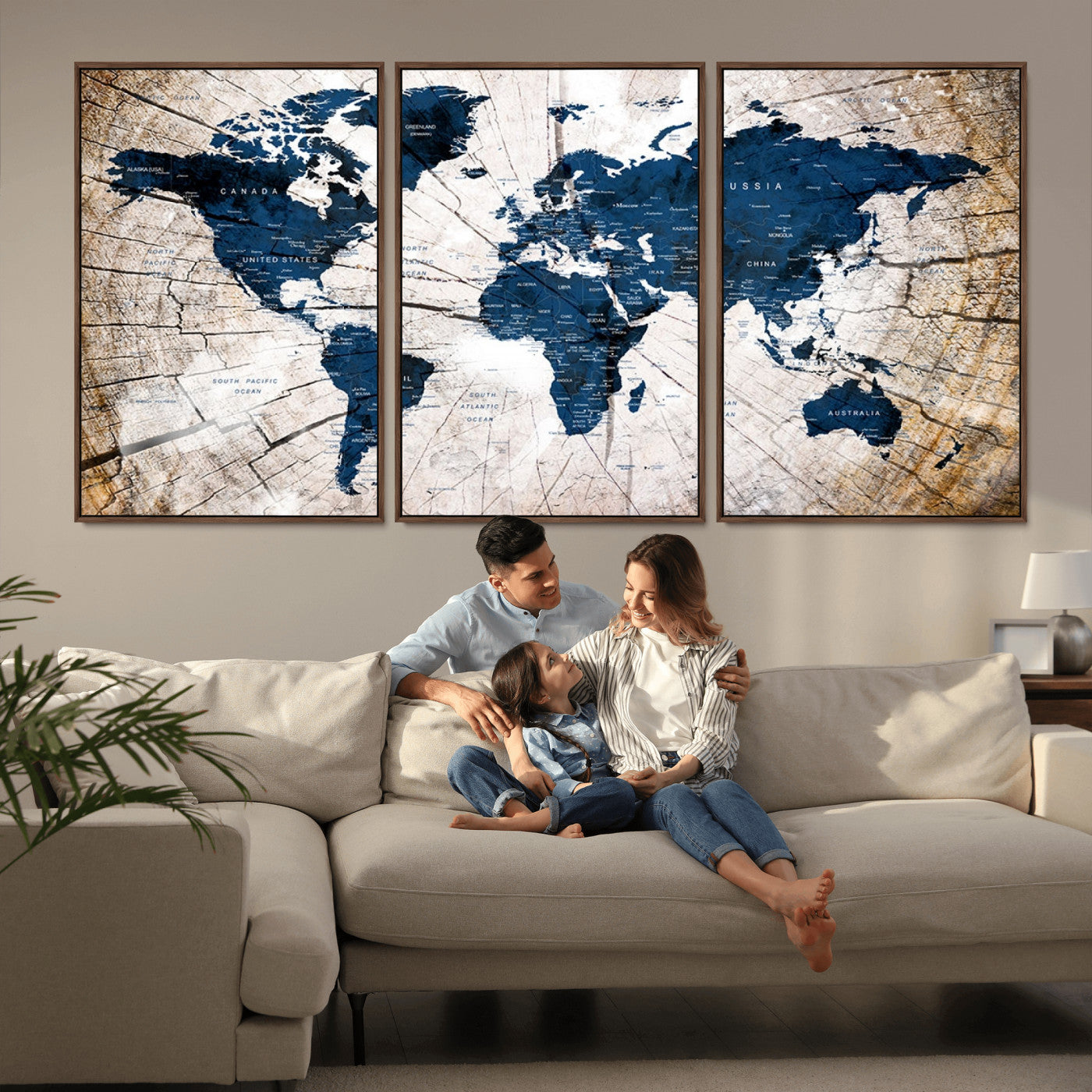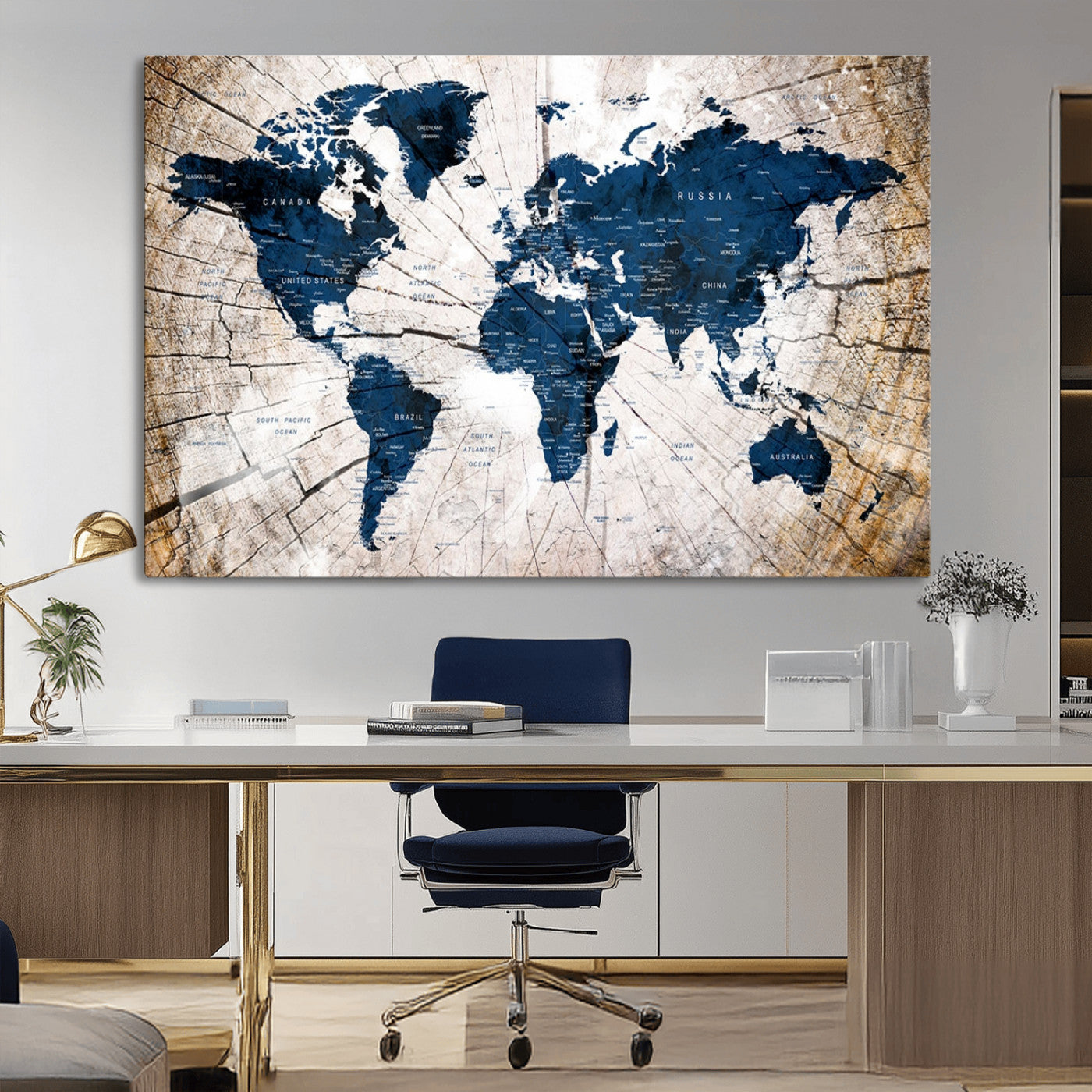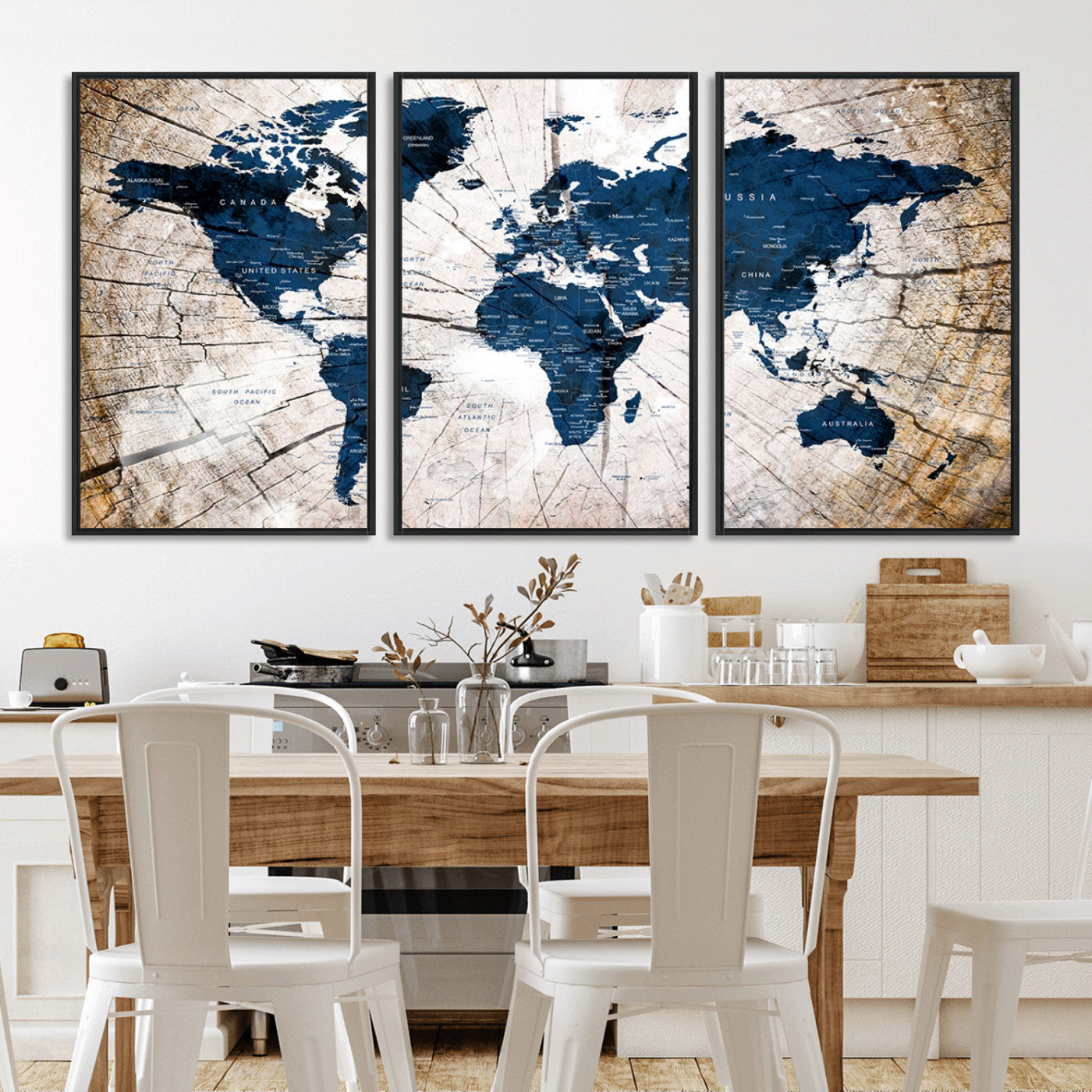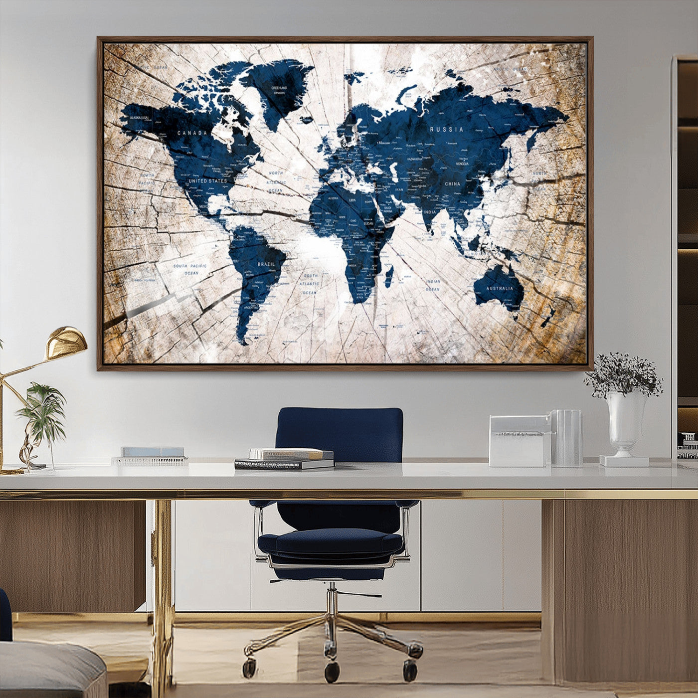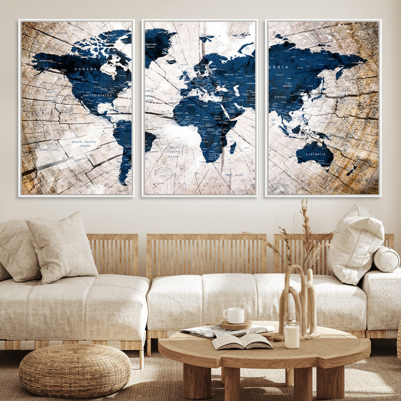 Push Pin World Map Canvas Print – Travel Tracker Wall Art for Couples, Perfect Anniversary Gift for Home or Office Decor