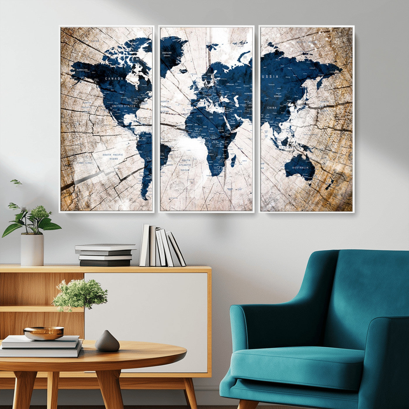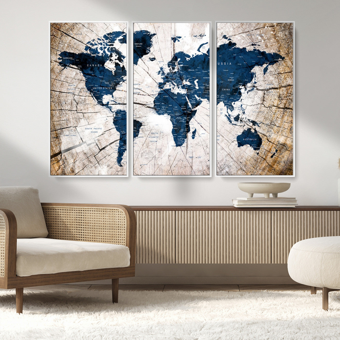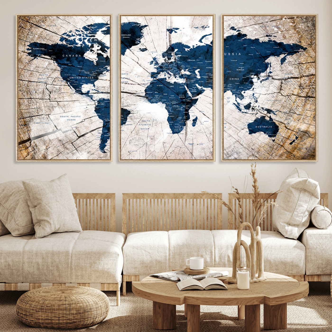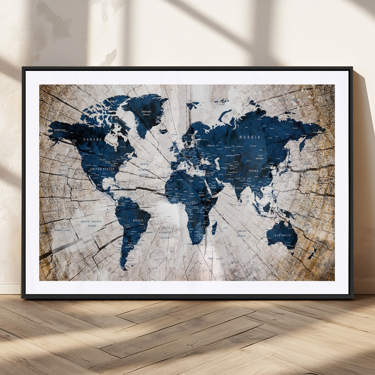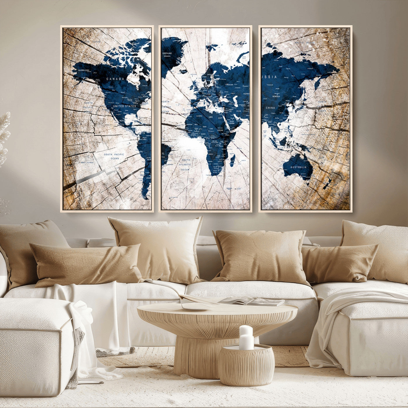 Push Pin World Map Canvas Print – Travel Tracker Wall Art for Couples, Perfect Anniversary Gift for Home or Office Decor