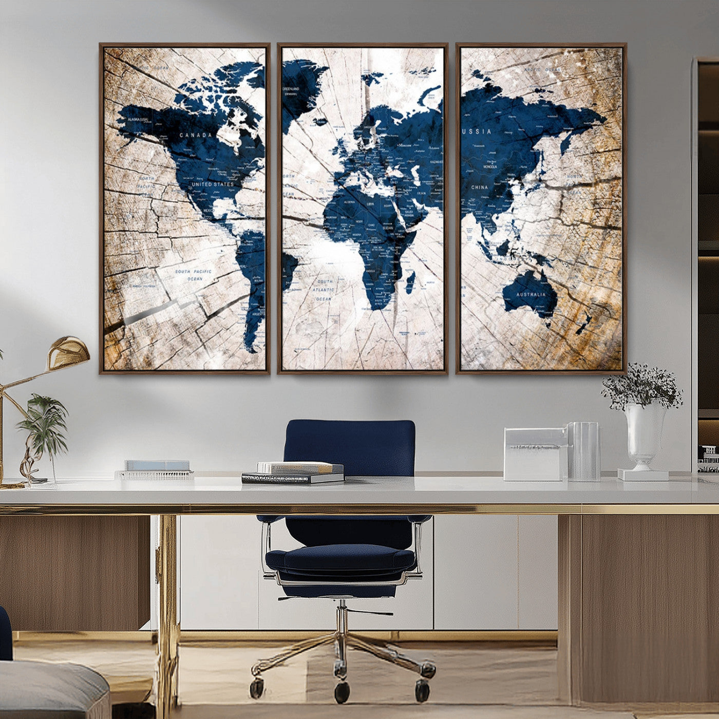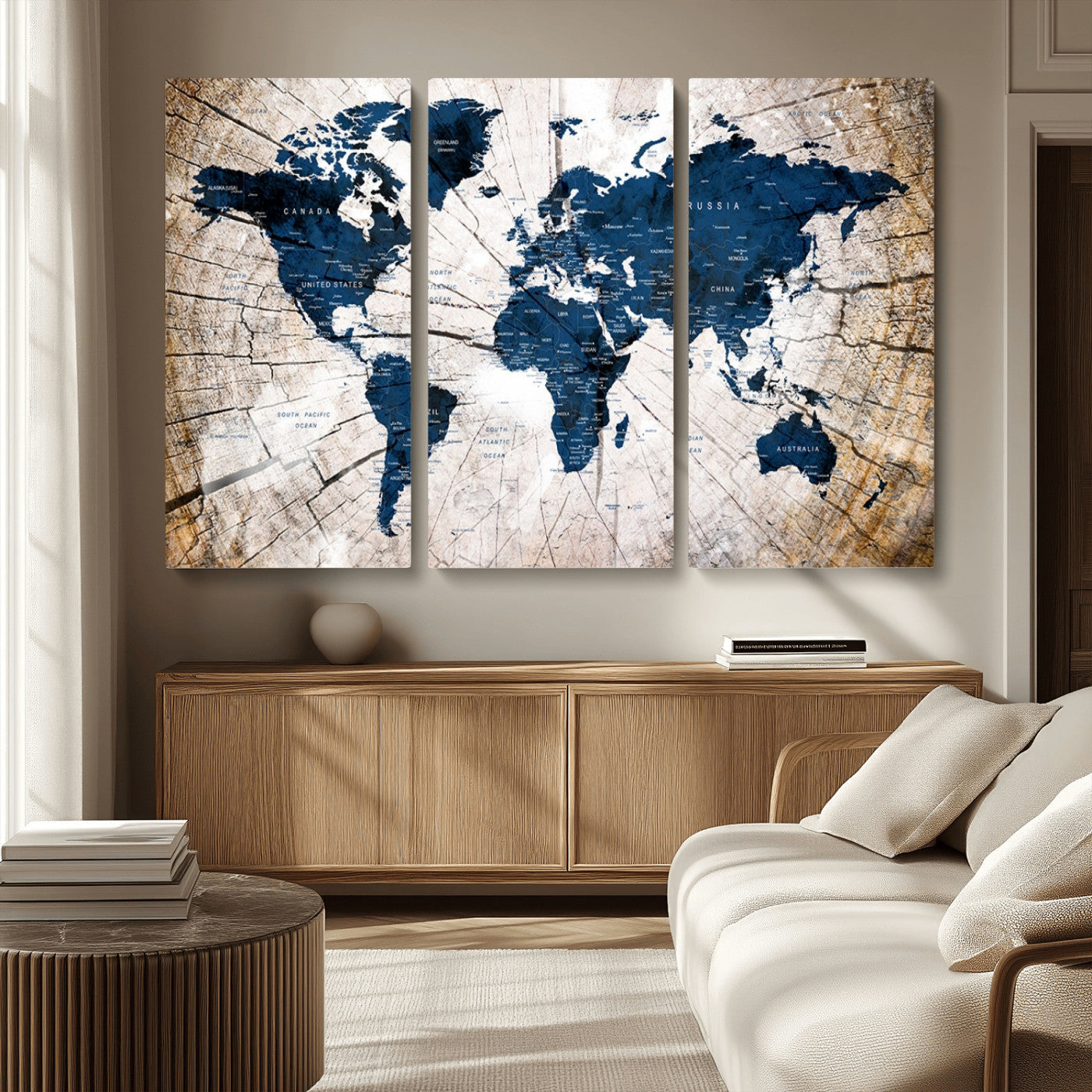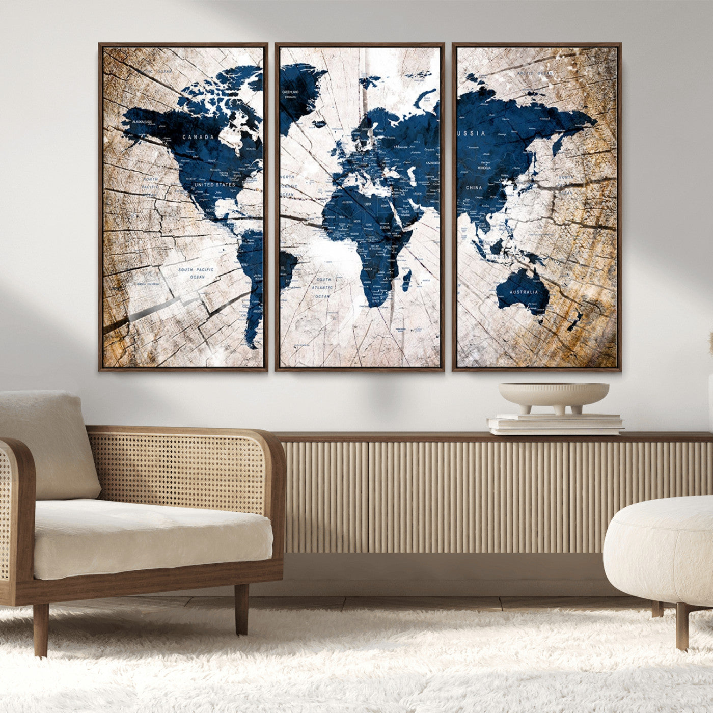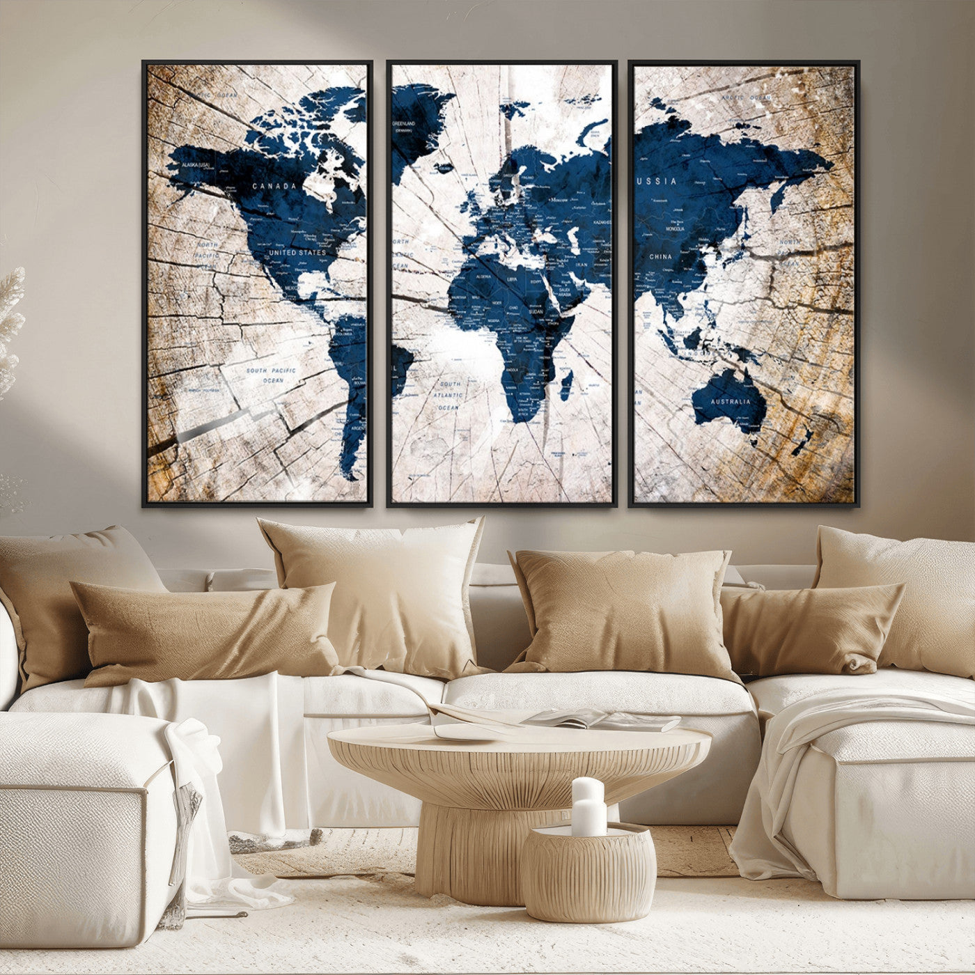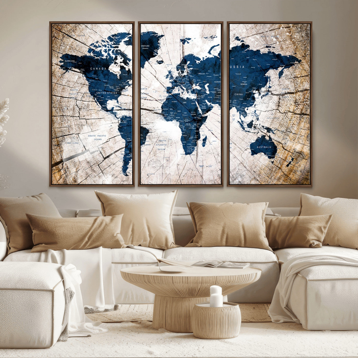 Push Pin World Map Canvas Print – Travel Tracker Wall Art for Couples, Perfect Anniversary Gift for Home or Office Decor