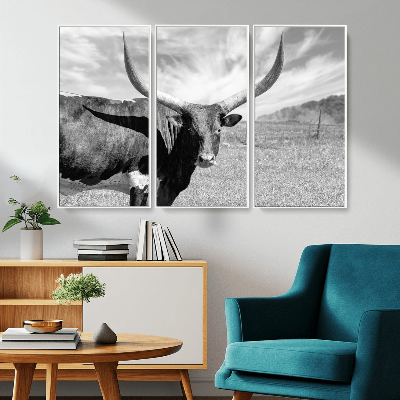 Longhorn Wall Art Canvas Print, Framed Ranch Wall Art Canvas Print